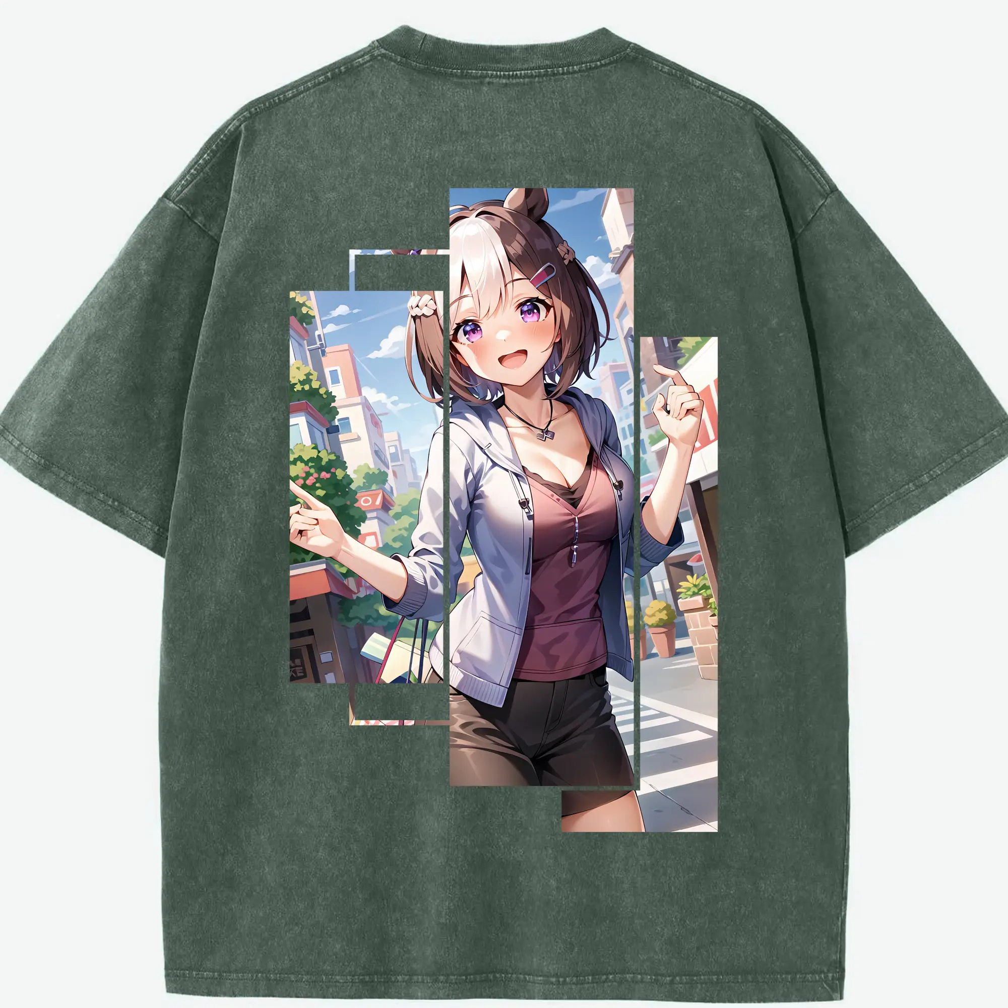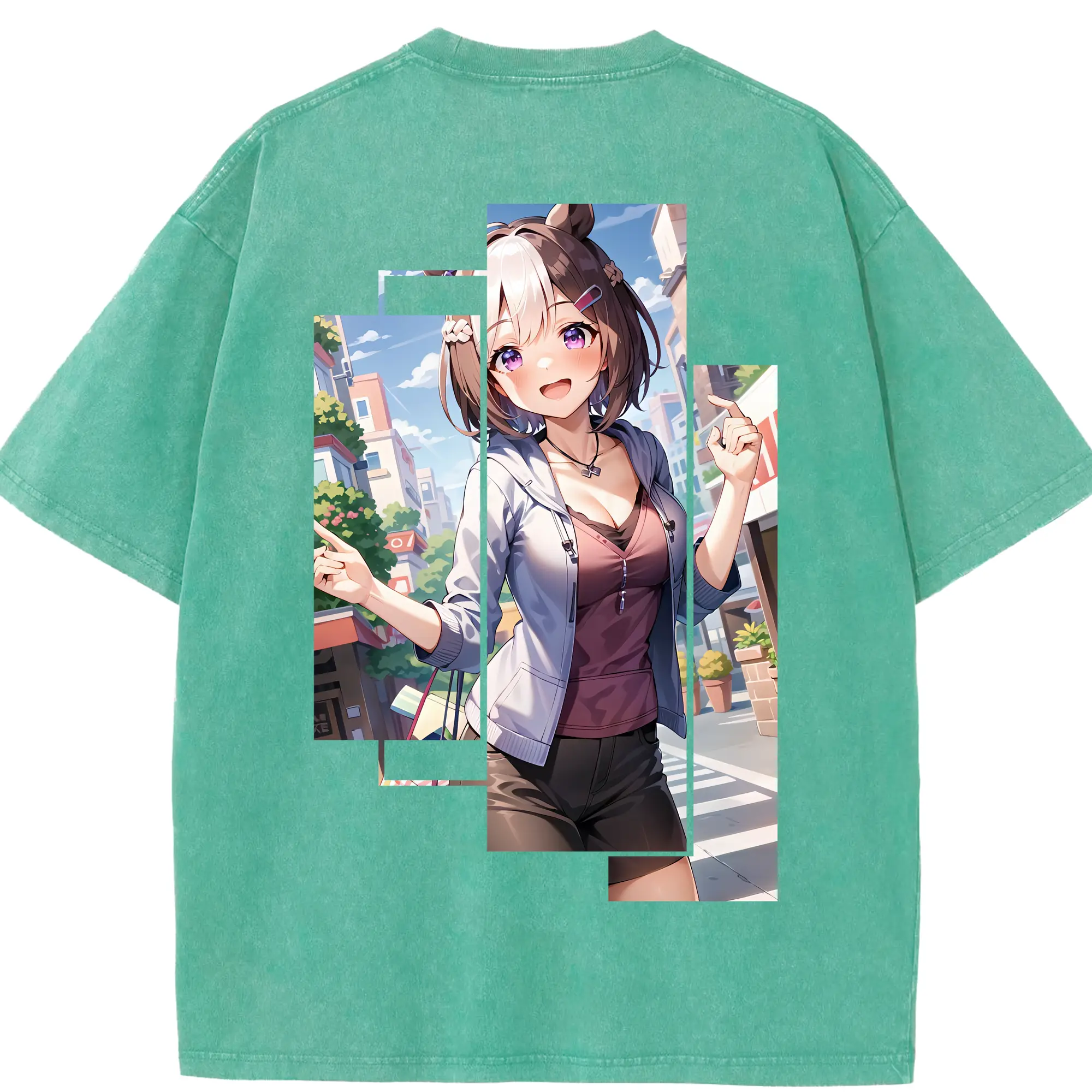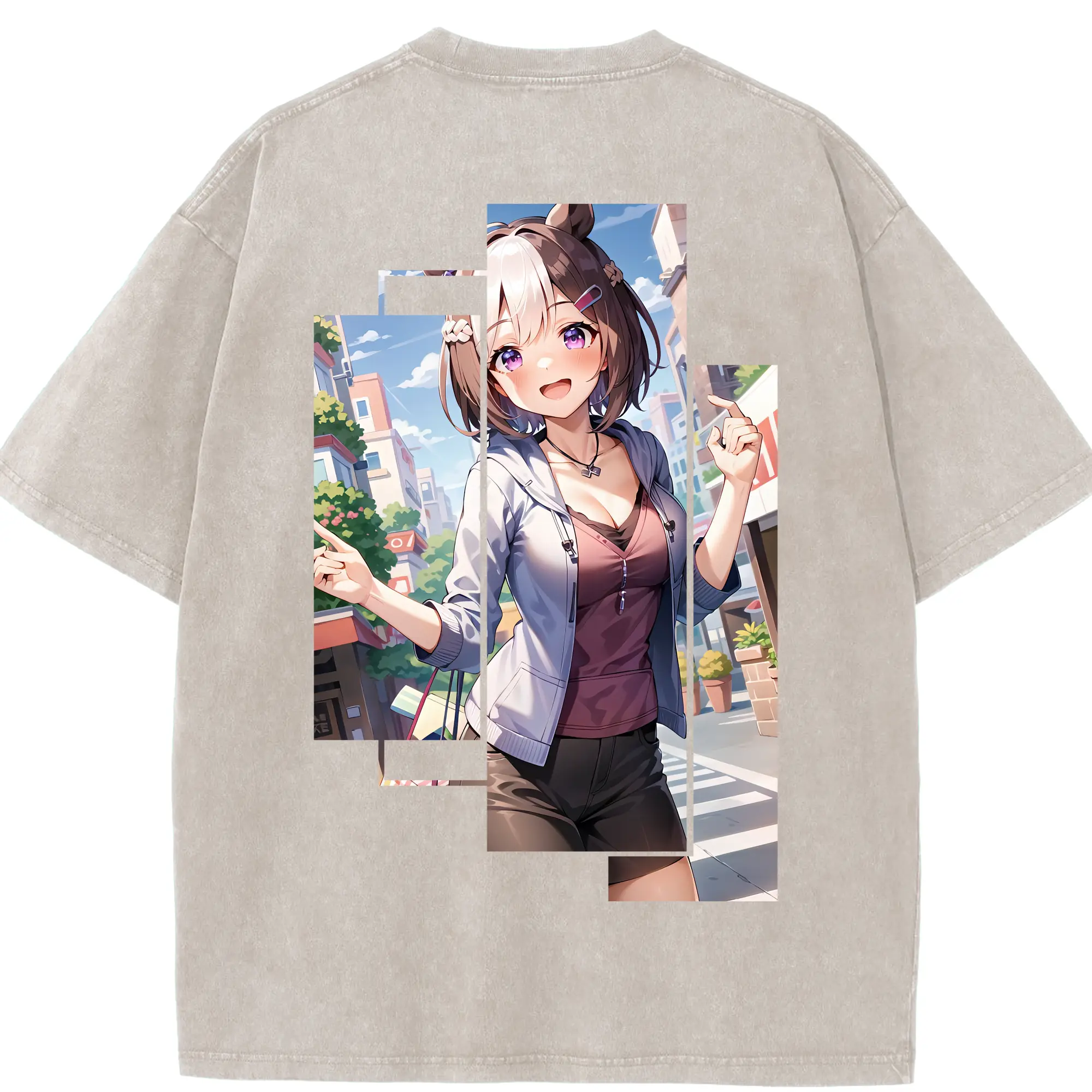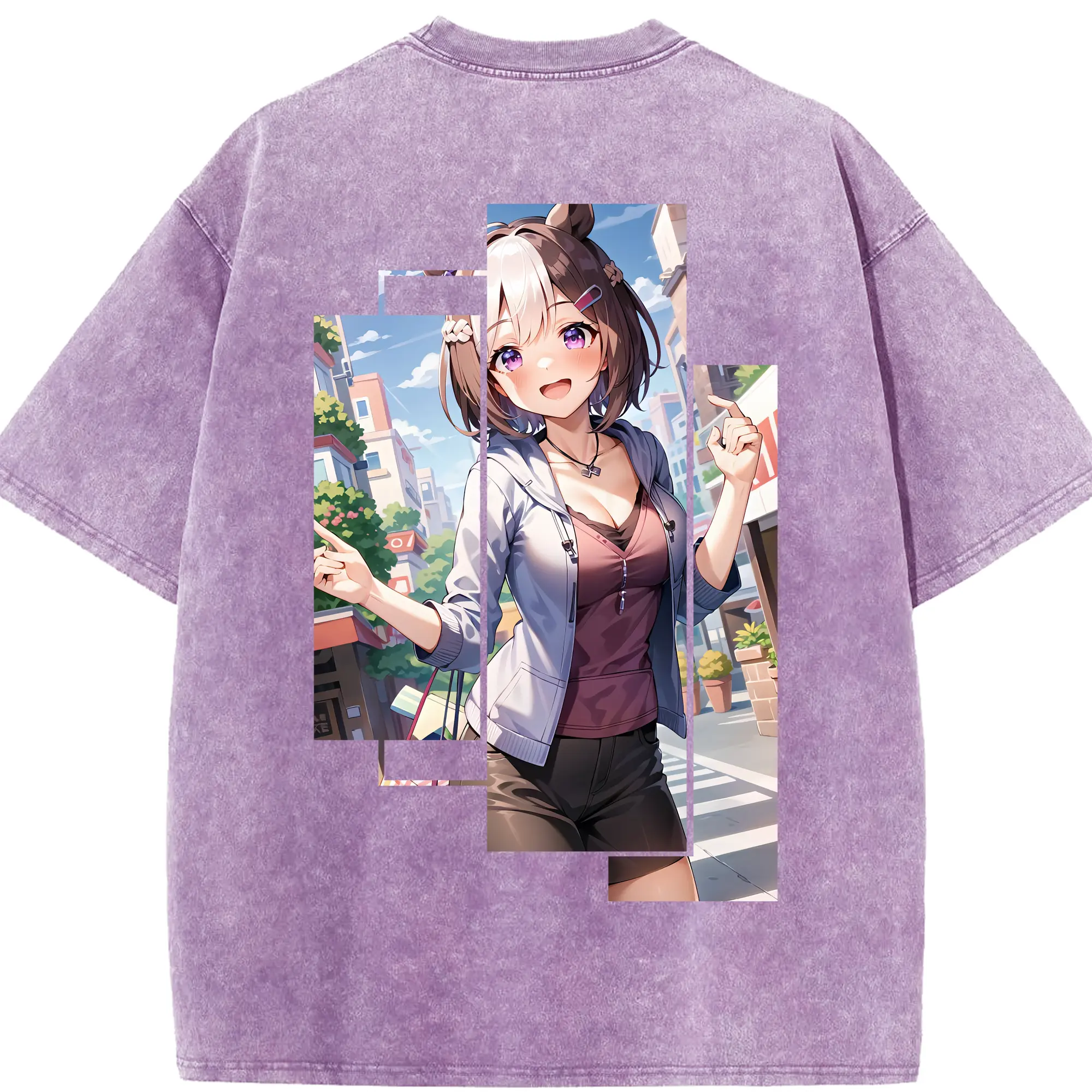 銀魂 グッズ 神楽 - 綿100% ヴィンテージ風 半袖Tシャツ ・ 背面プリント ・ 柔らか肌触り ・ 通気性 快適 ・ スポーツ カジュアル 外出用