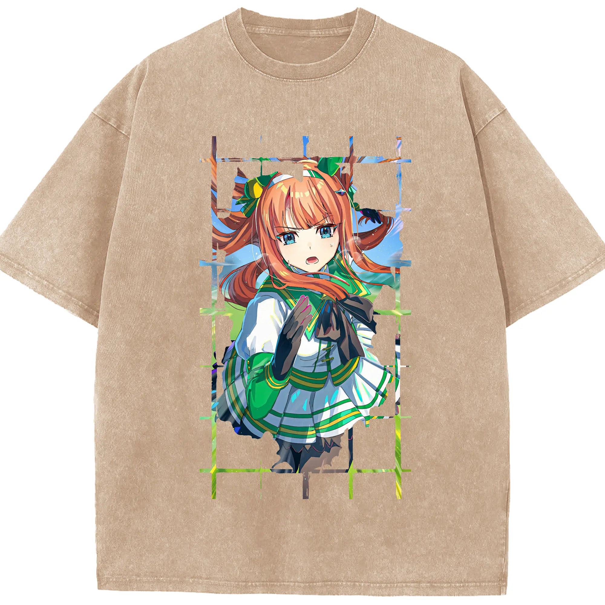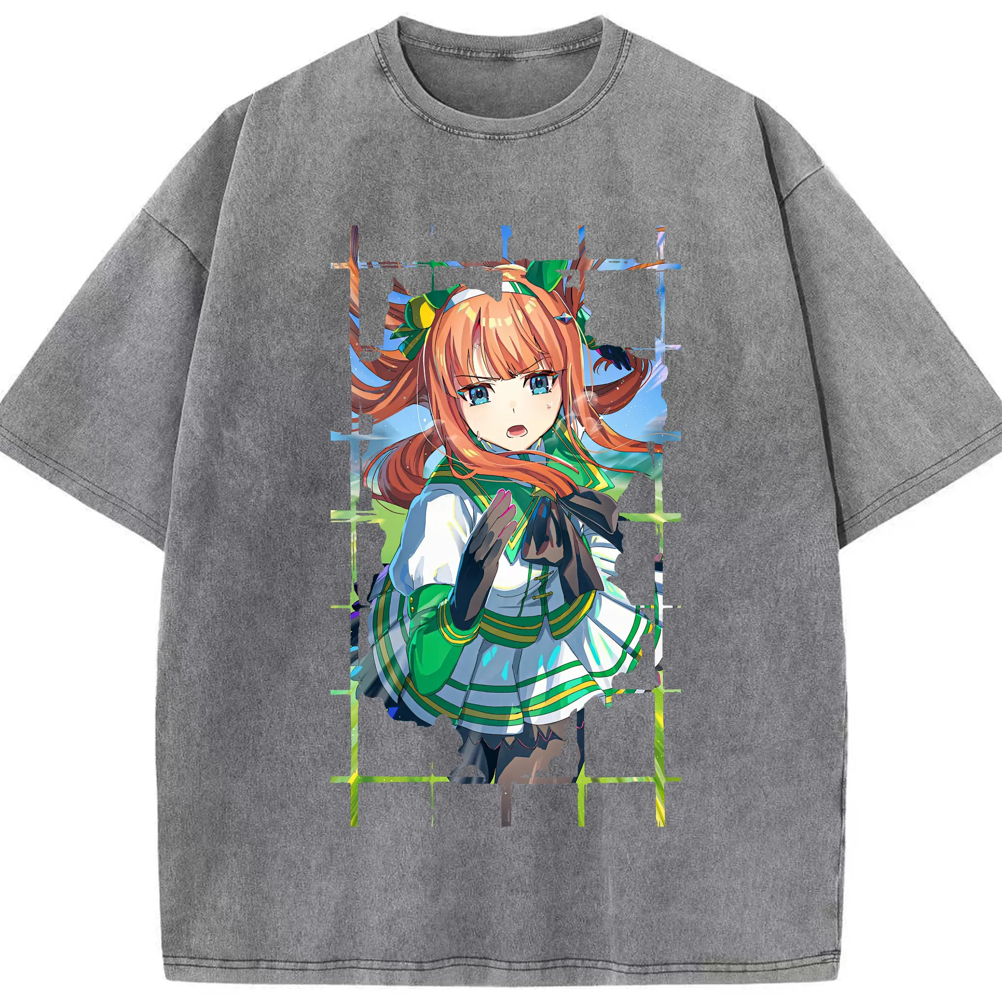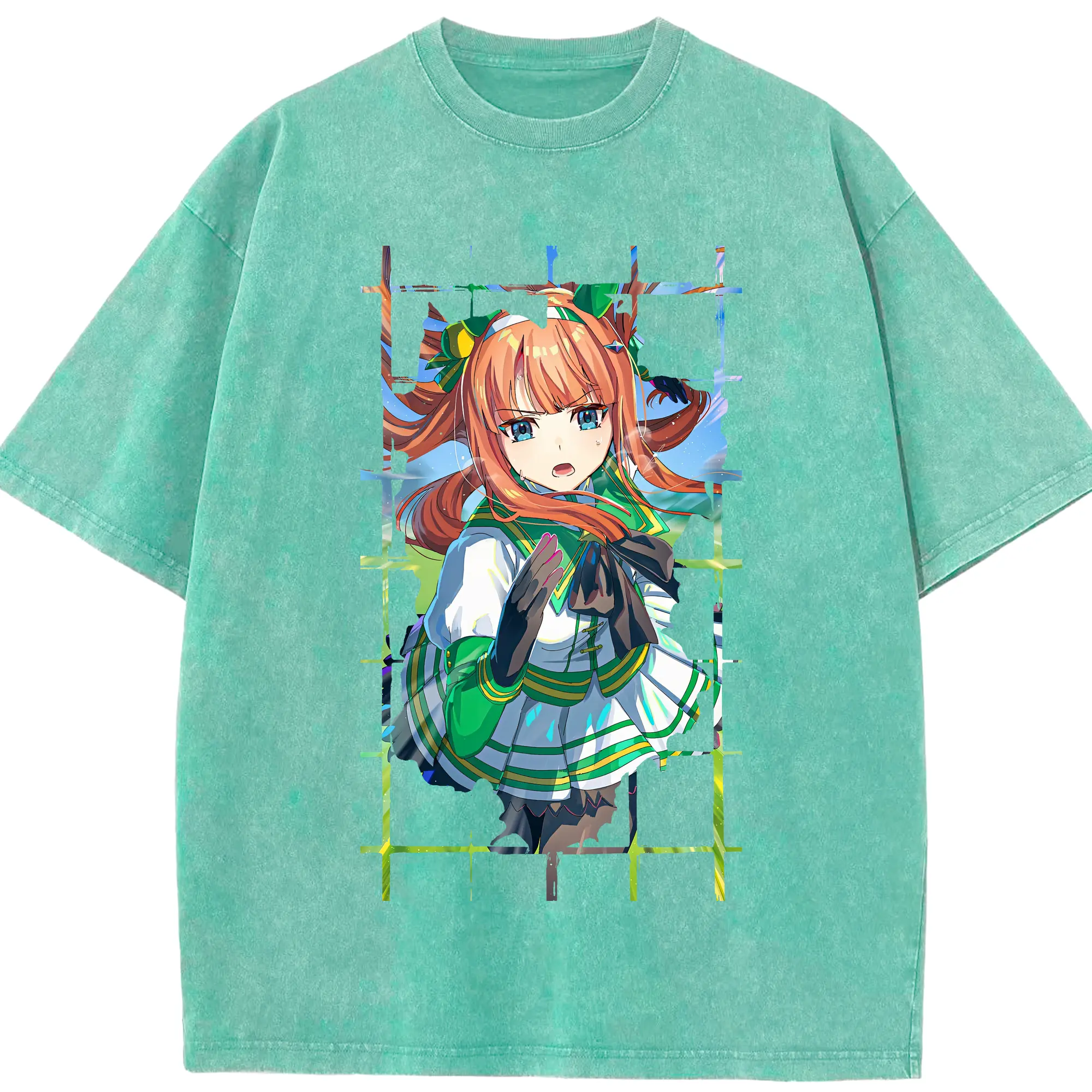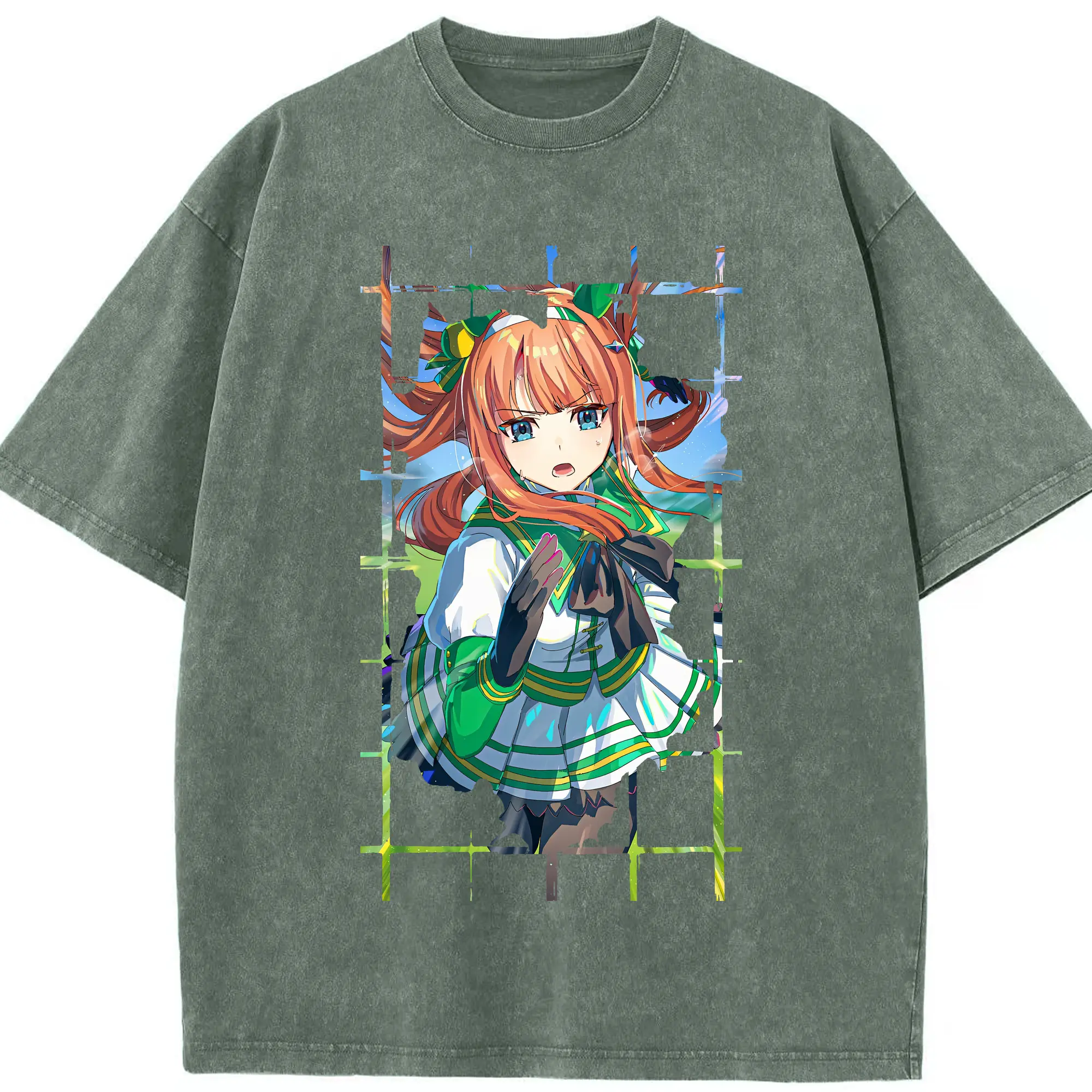 ウマ娘 プリティーダービー グッズ サイレンススズカ - 綿100% ヴィンテージ風 半袖Tシャツ ・ 背面プリント ・ 柔らか肌触り ・ 通気性 快適 ・ スポーツ カジュアル 外出用