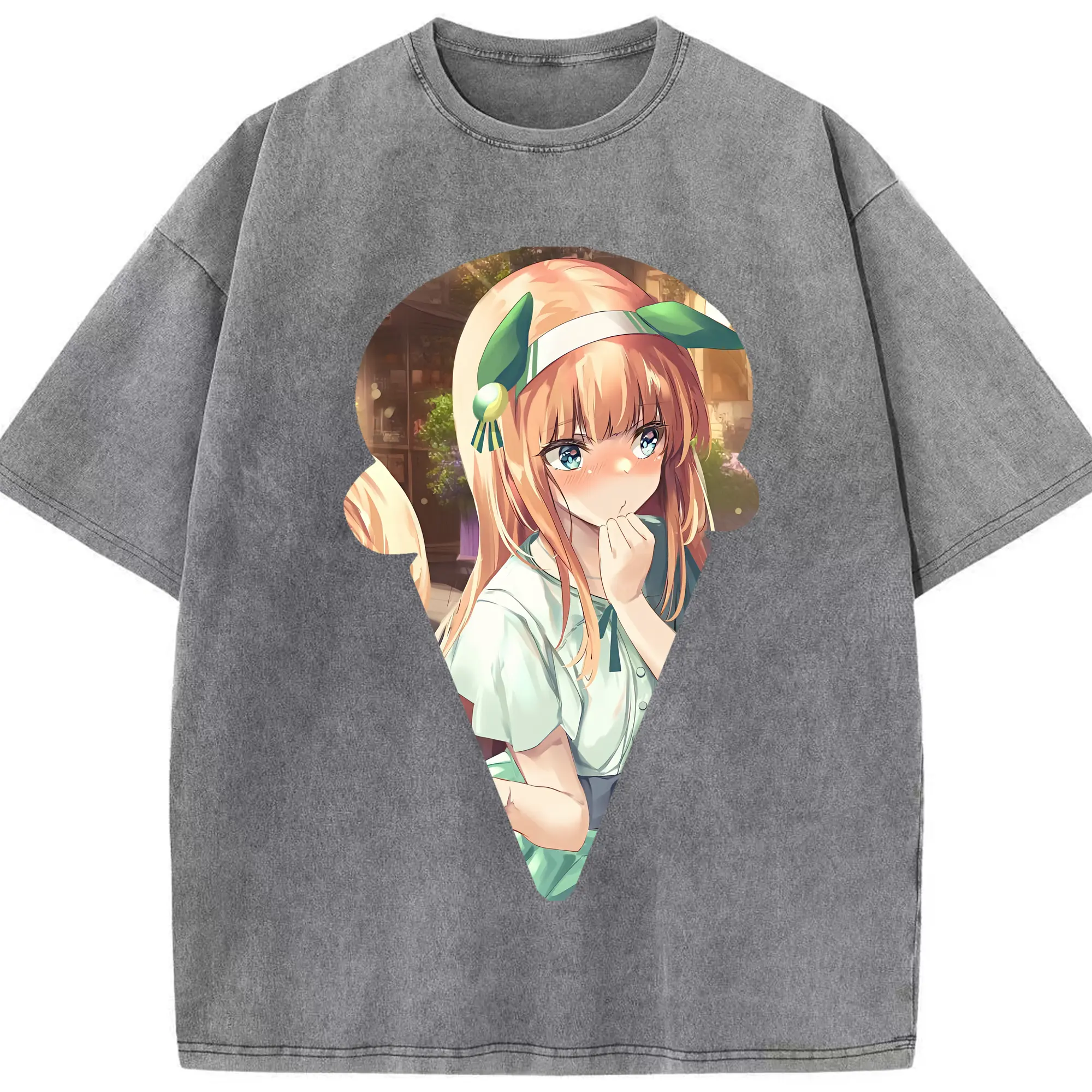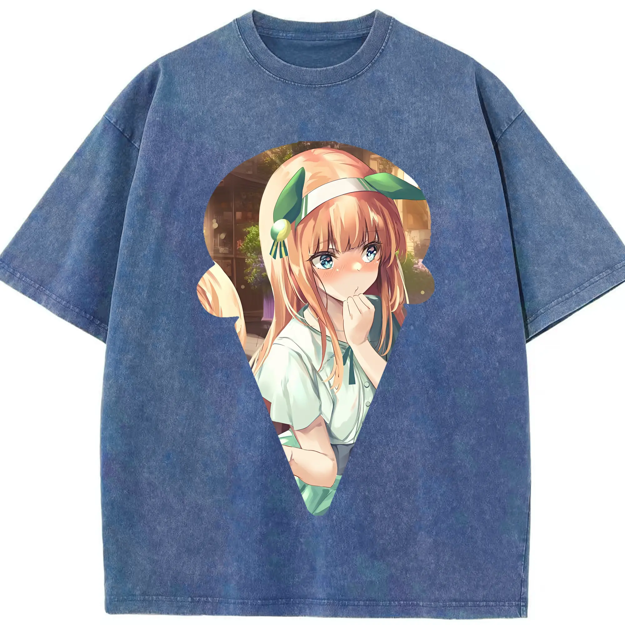 ウマ娘 プリティーダービー グッズ サイレンススズカ - 綿100% ヴィンテージ風 半袖Tシャツ ・ 背面プリント ・ 柔らか肌触り ・ 通気性 快適 ・ スポーツ カジュアル 外出用
