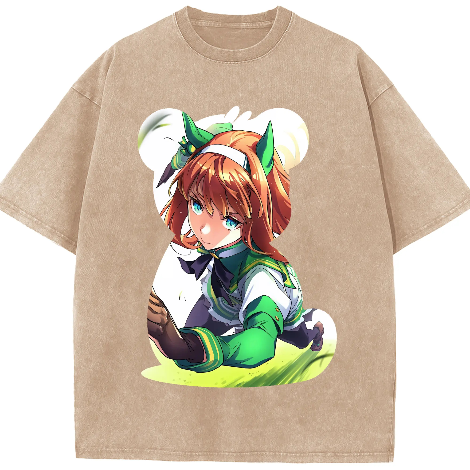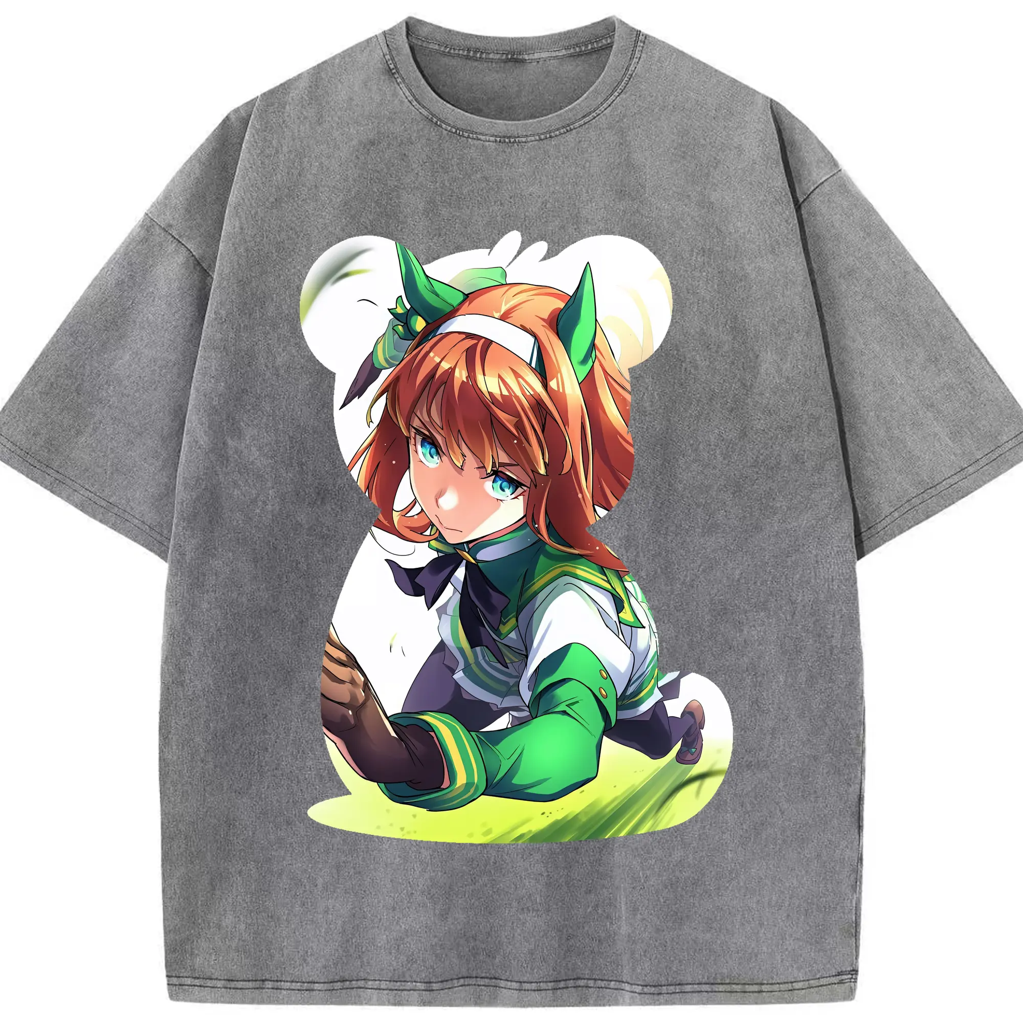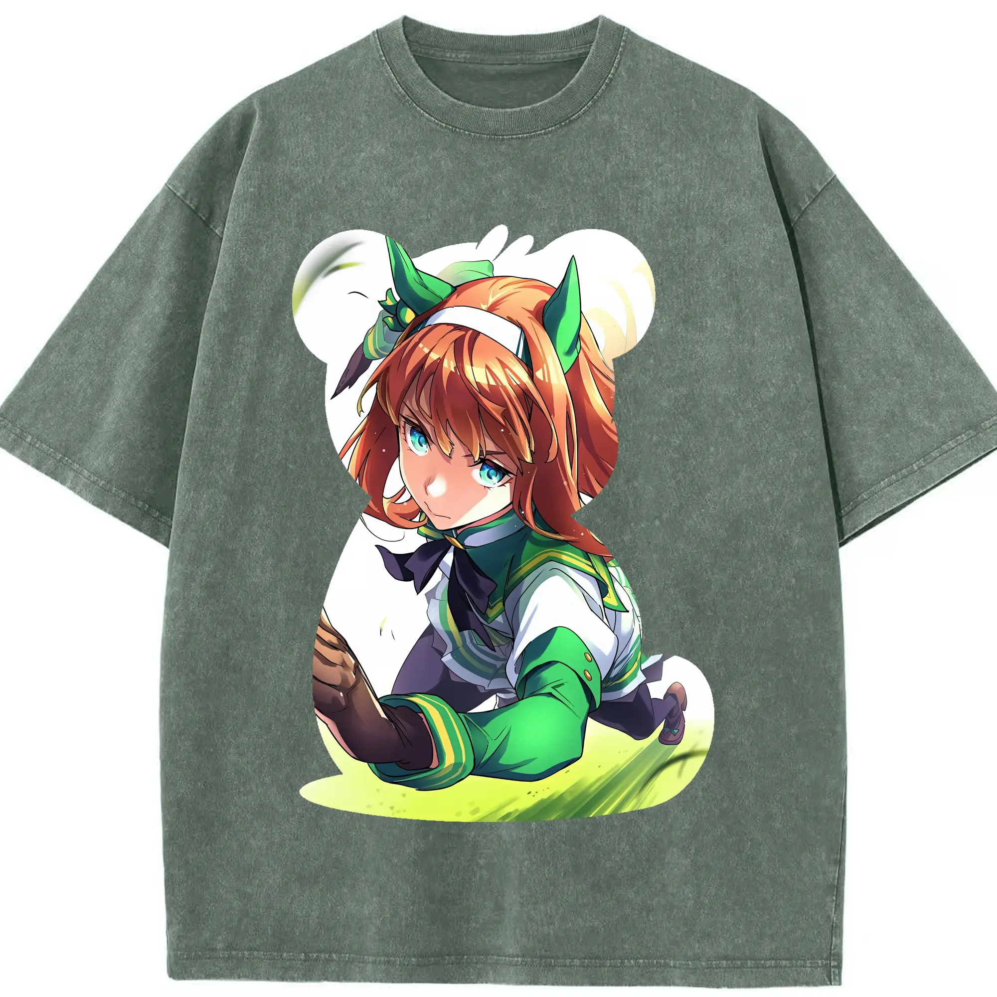 ウマ娘 プリティーダービー グッズ サイレンススズカ - 綿100% ヴィンテージ風 半袖Tシャツ ・ 背面プリント ・ 柔らか肌触り ・ 通気性 快適 ・ スポーツ カジュアル 外出用