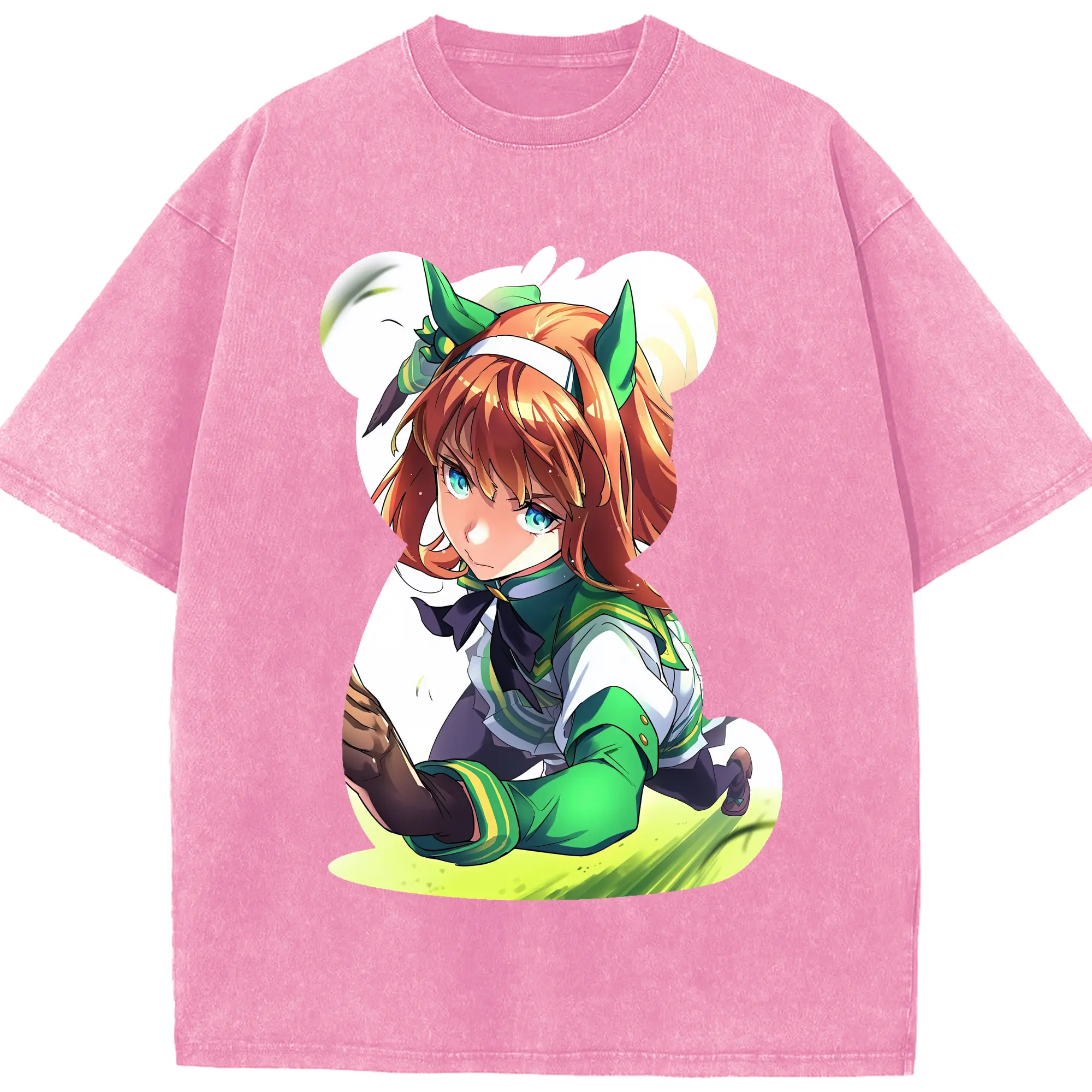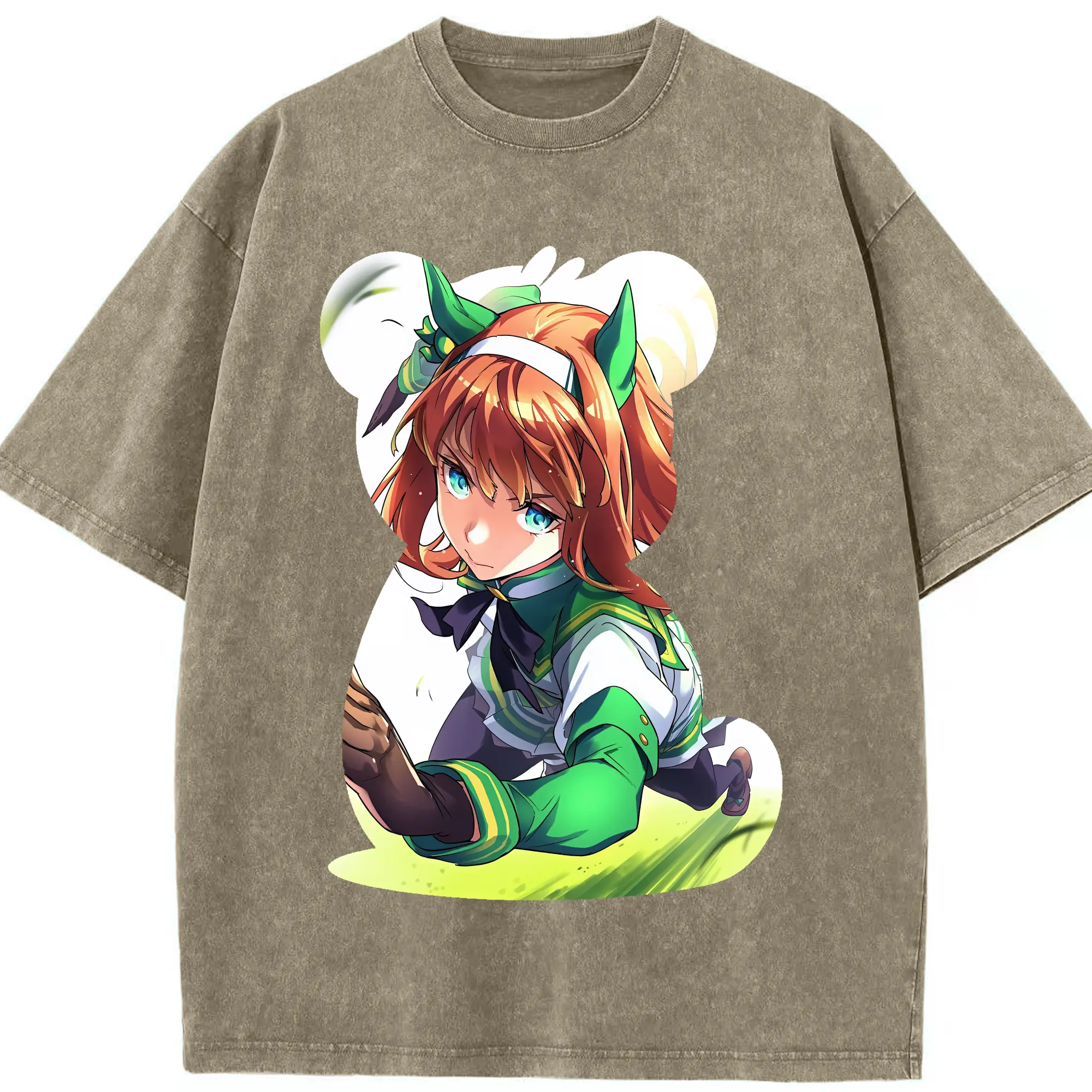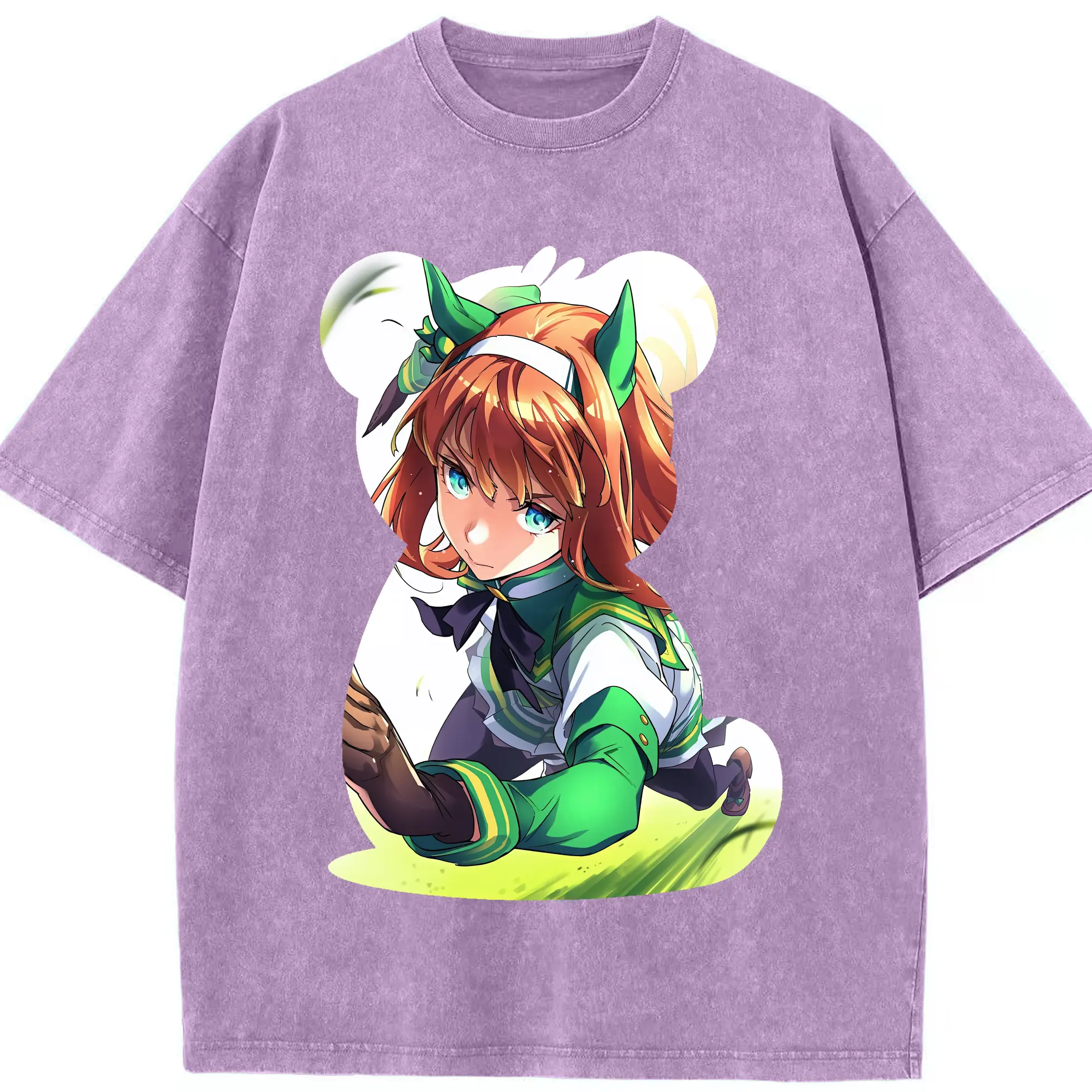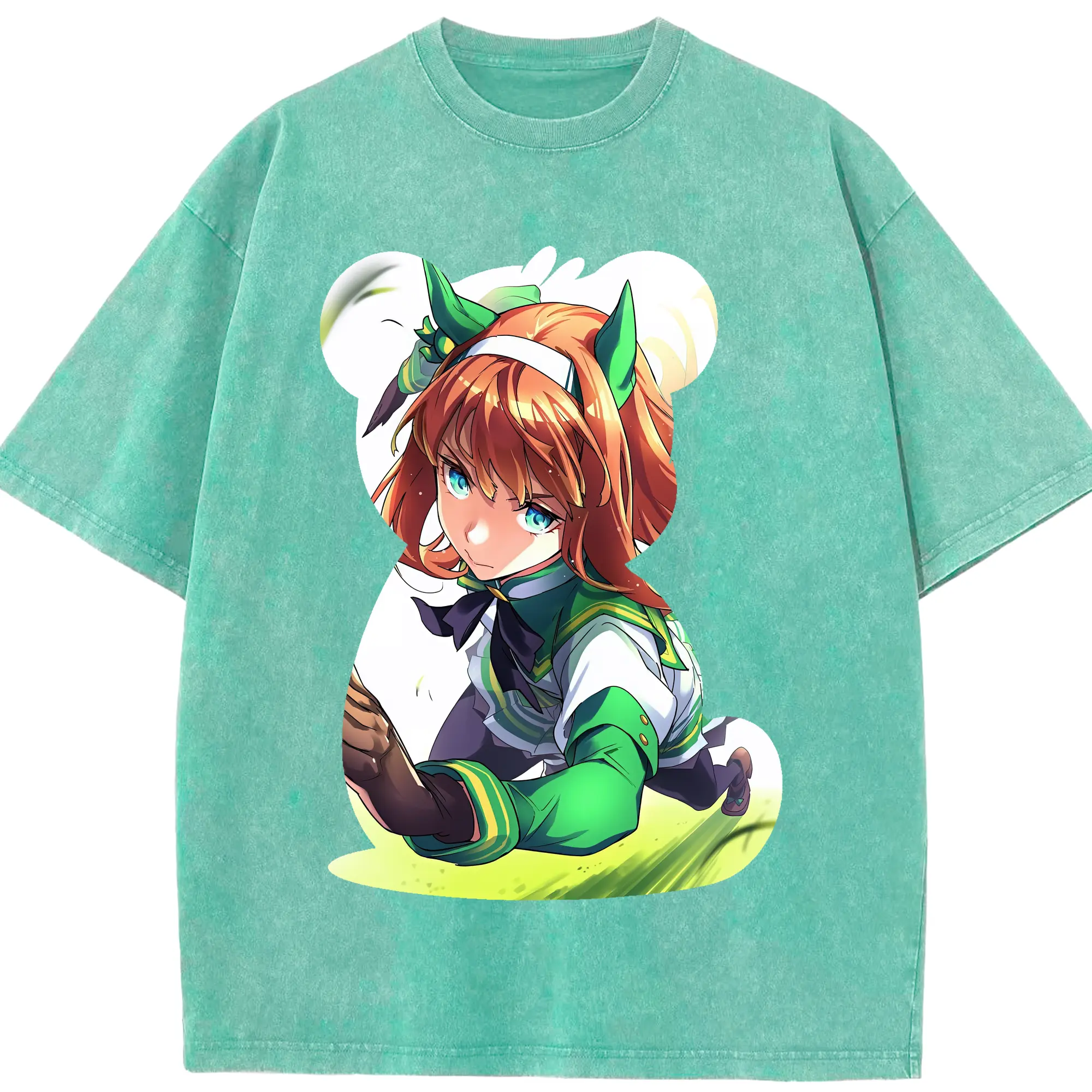 ウマ娘 プリティーダービー グッズ サイレンススズカ - 綿100% ヴィンテージ風 半袖Tシャツ ・ 背面プリント ・ 柔らか肌触り ・ 通気性 快適 ・ スポーツ カジュアル 外出用