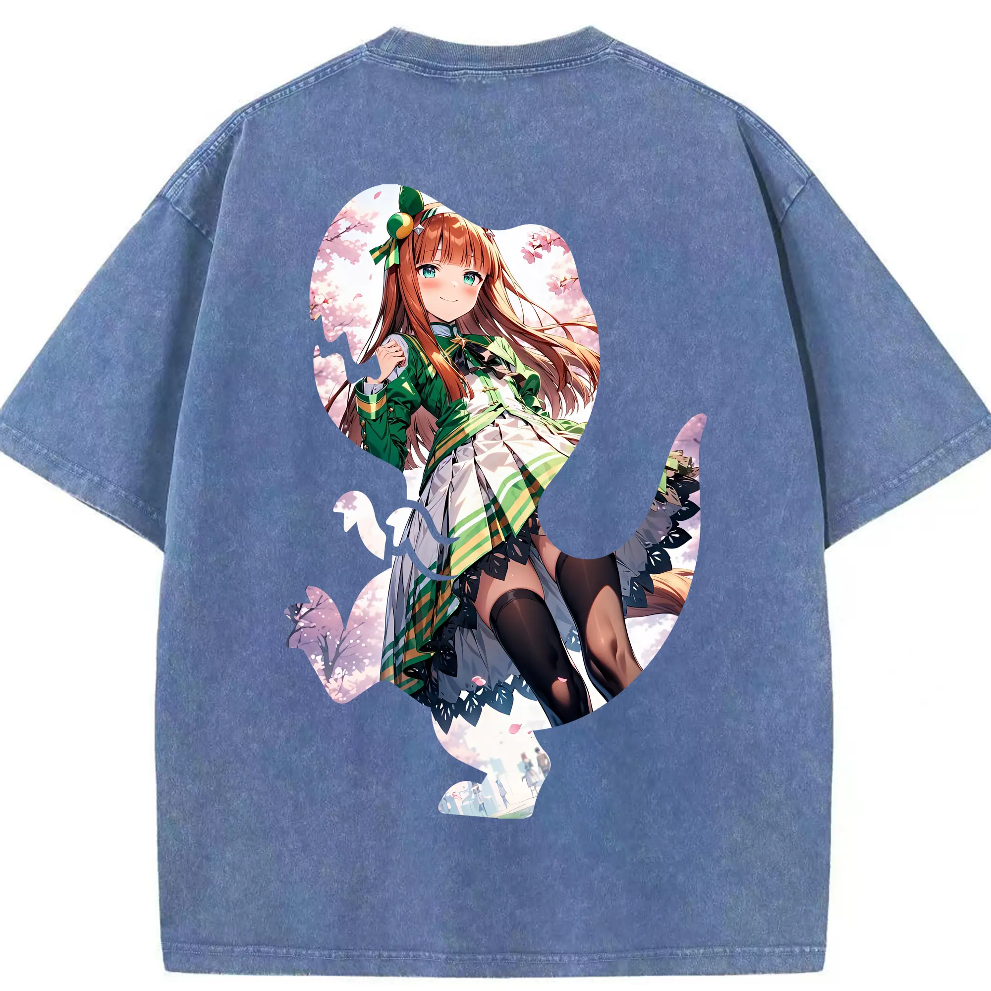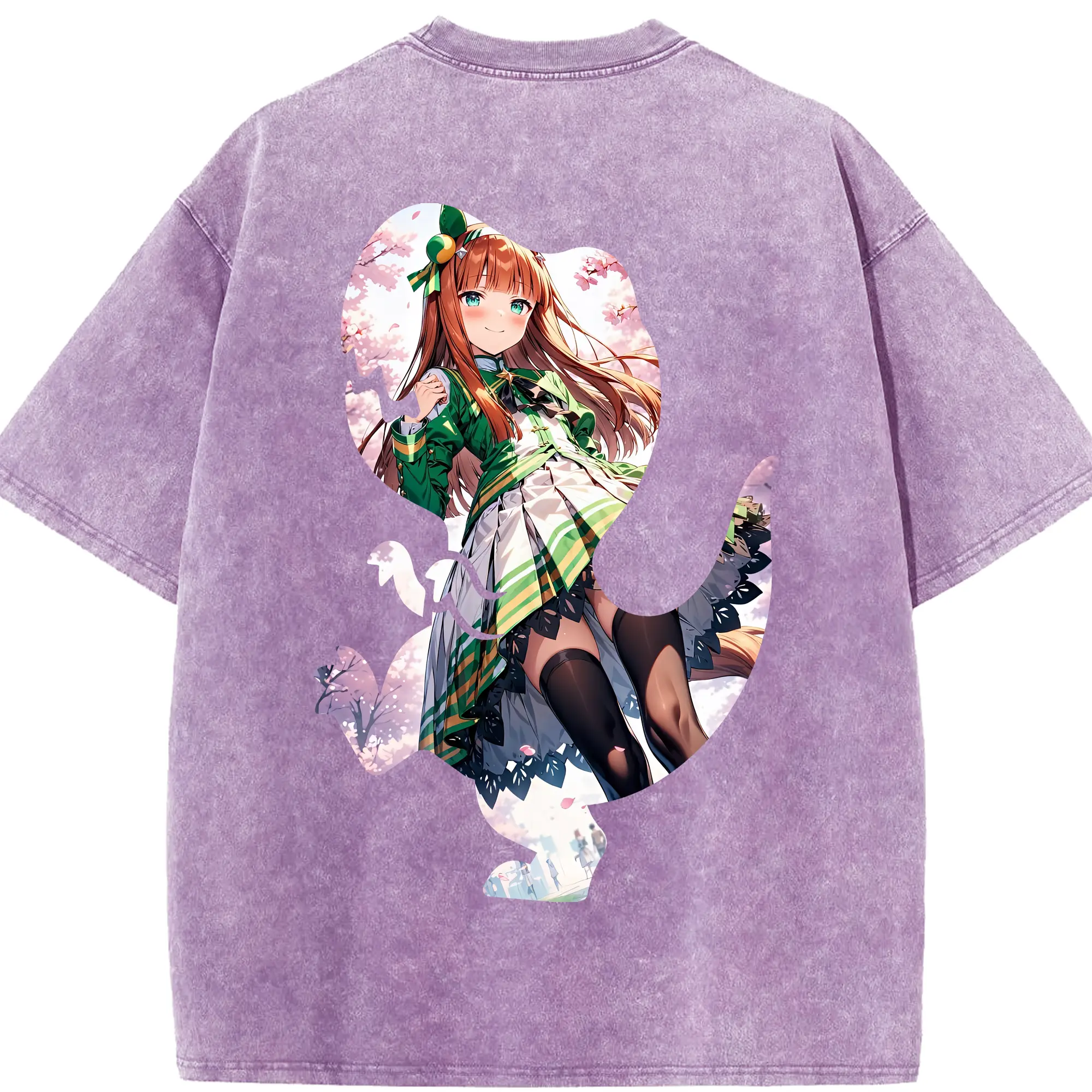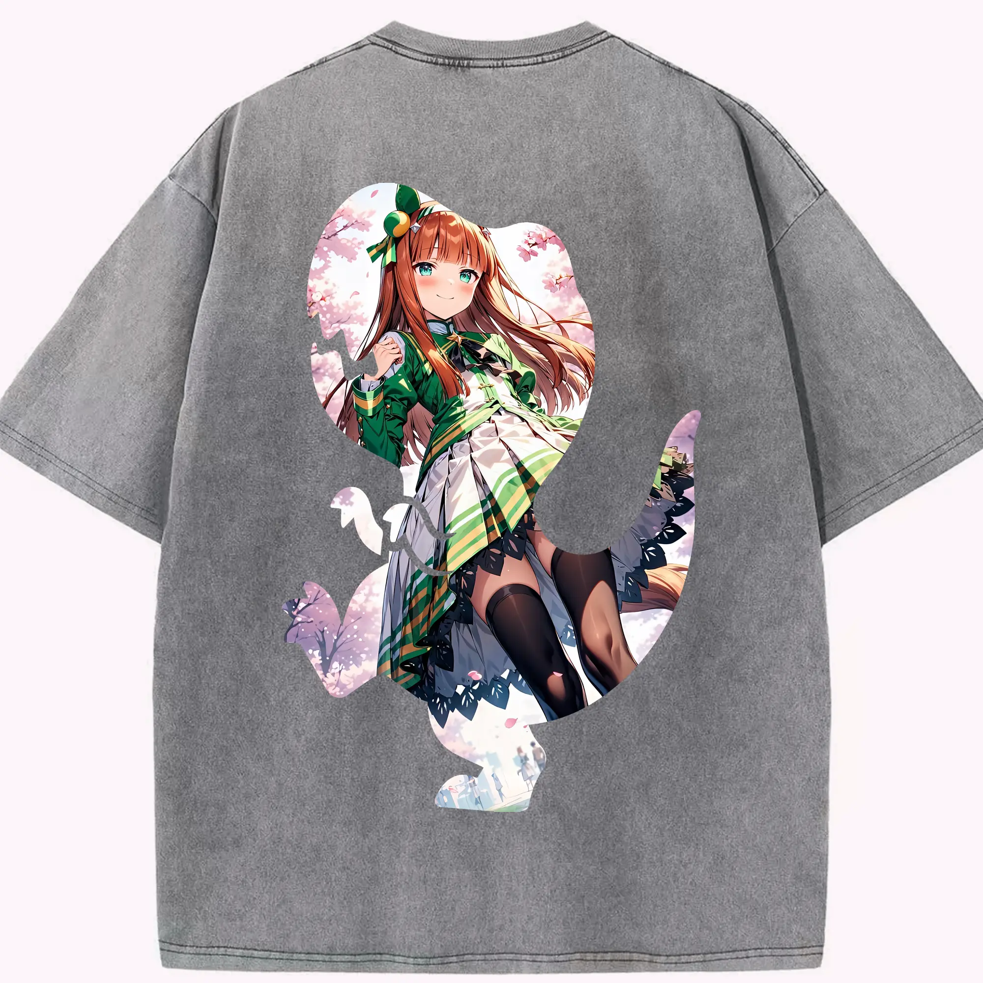 ウマ娘 プリティーダービー グッズ サイレンススズカ - 綿100% ヴィンテージ風 半袖Tシャツ ・ フロントプリント ・ 柔らか肌触り ・ 通気性 快適 ・ スポーツ カジュアル 外出用