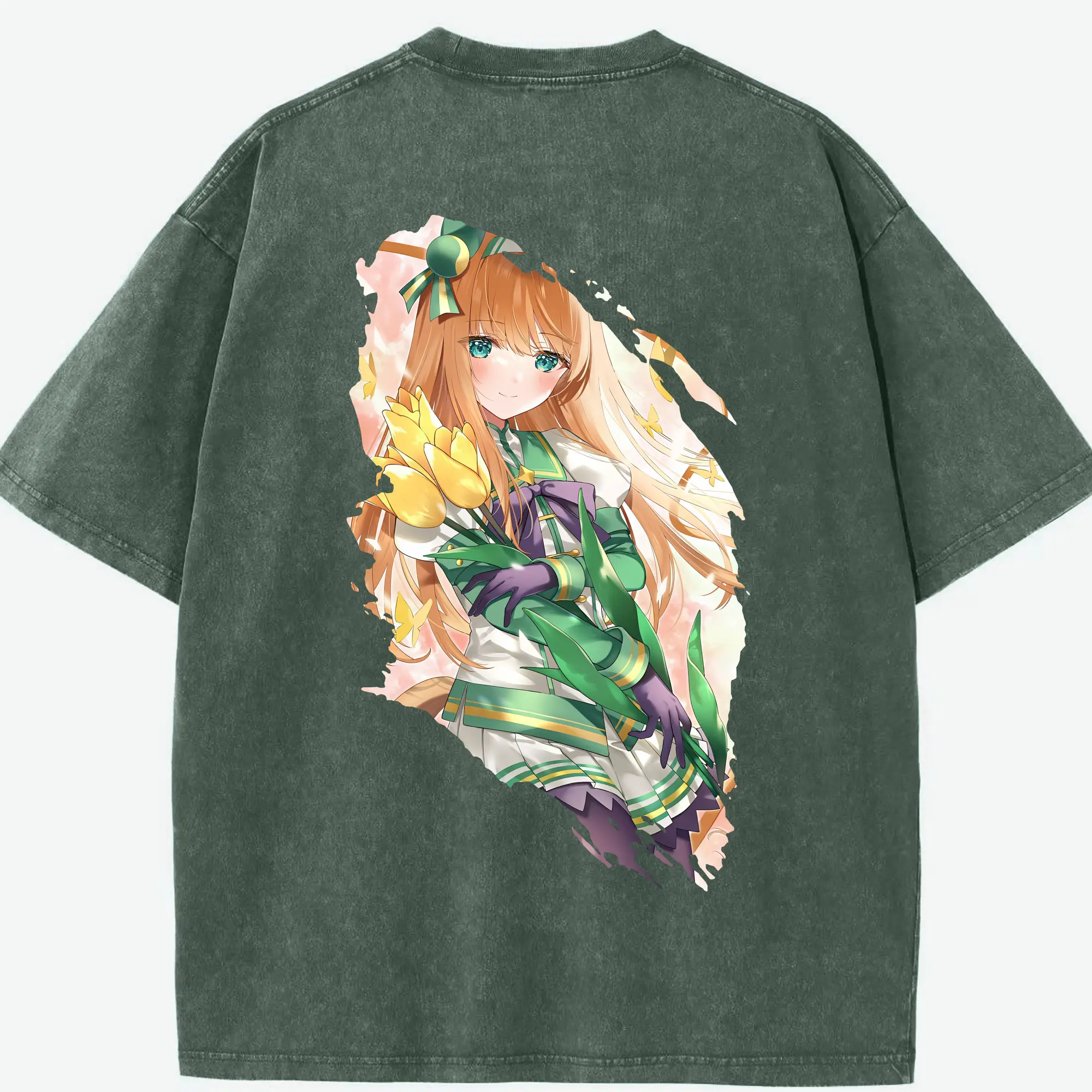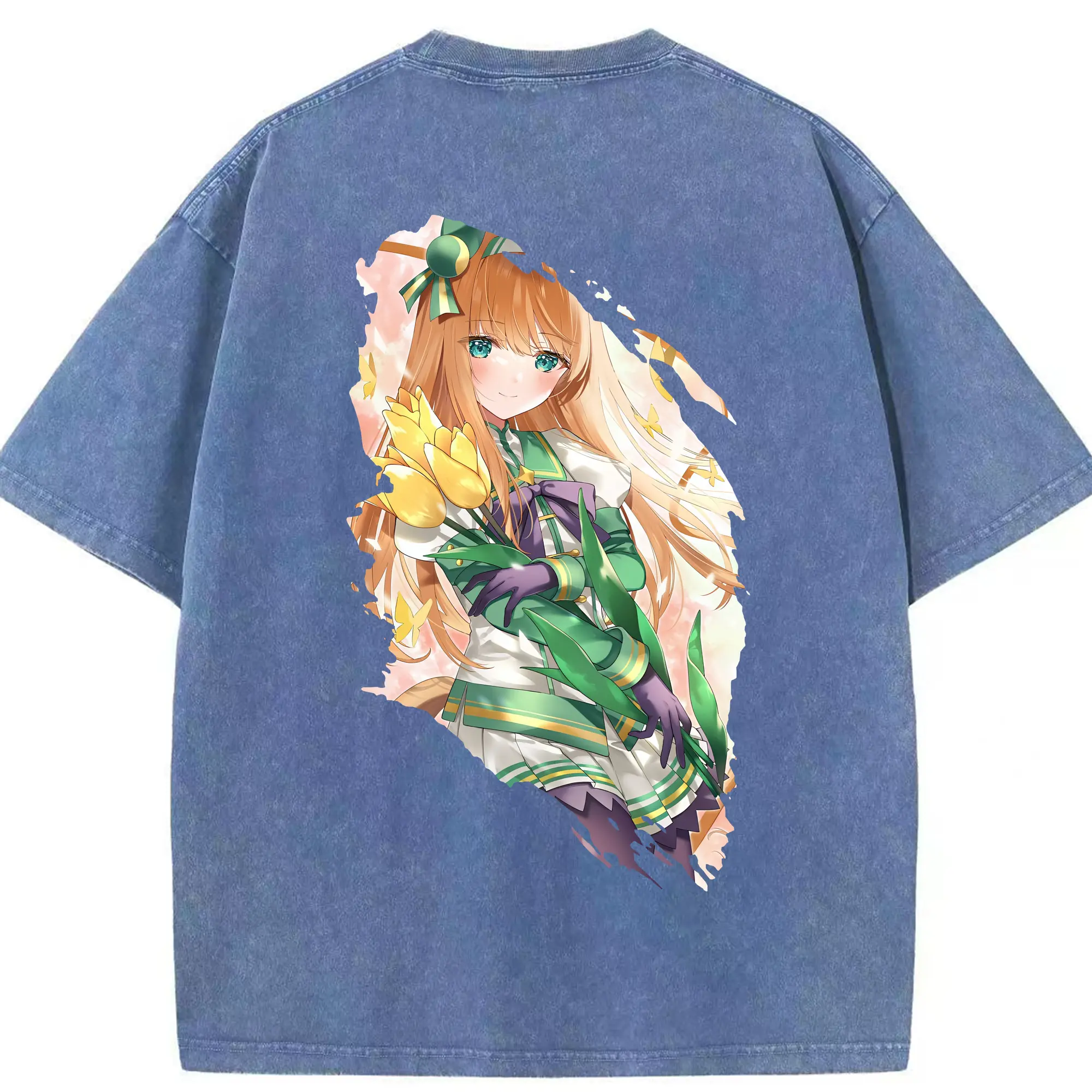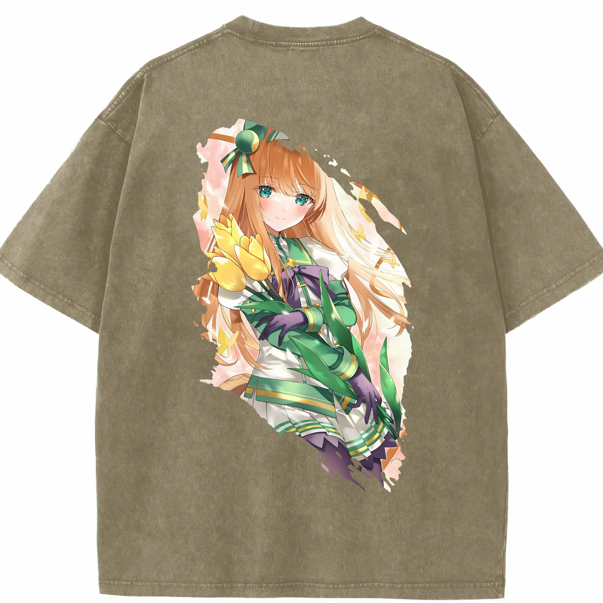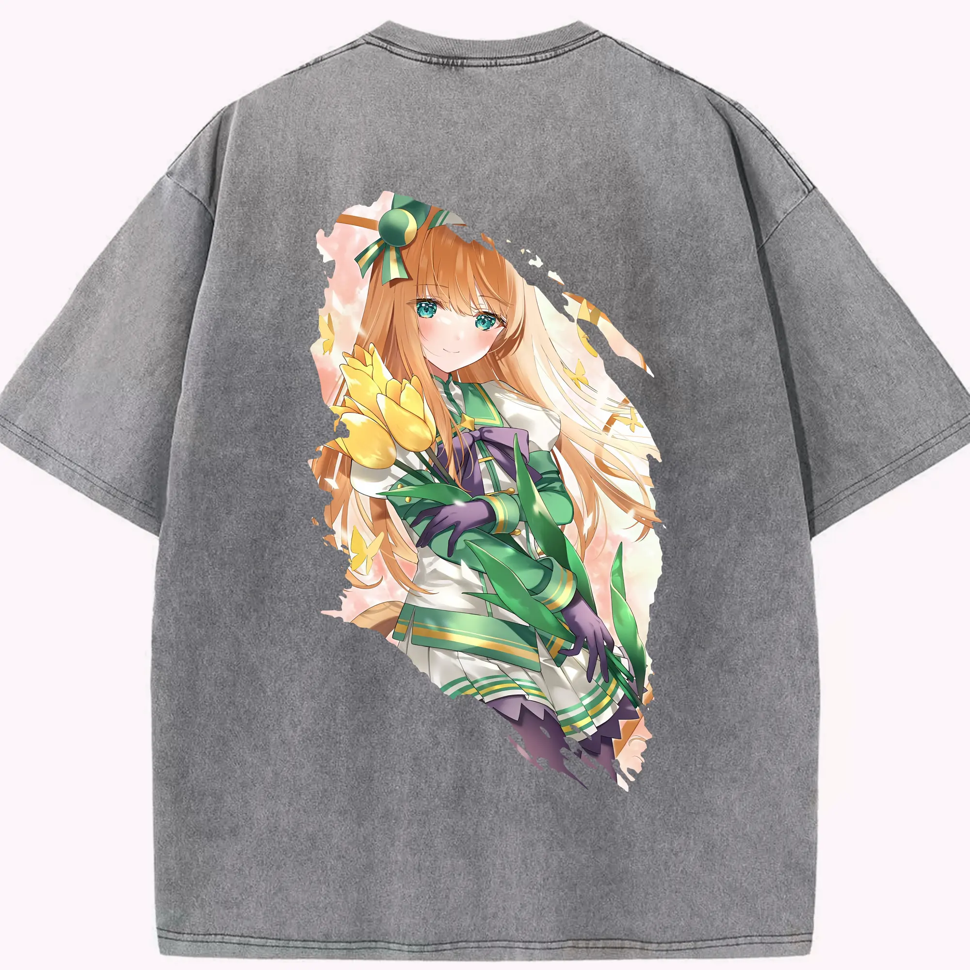 ウマ娘 プリティーダービー グッズ サイレンススズカ - 綿100% ヴィンテージ風 半袖Tシャツ ・ フロントプリント ・ 柔らか肌触り ・ 通気性 快適 ・ スポーツ カジュアル 外出用