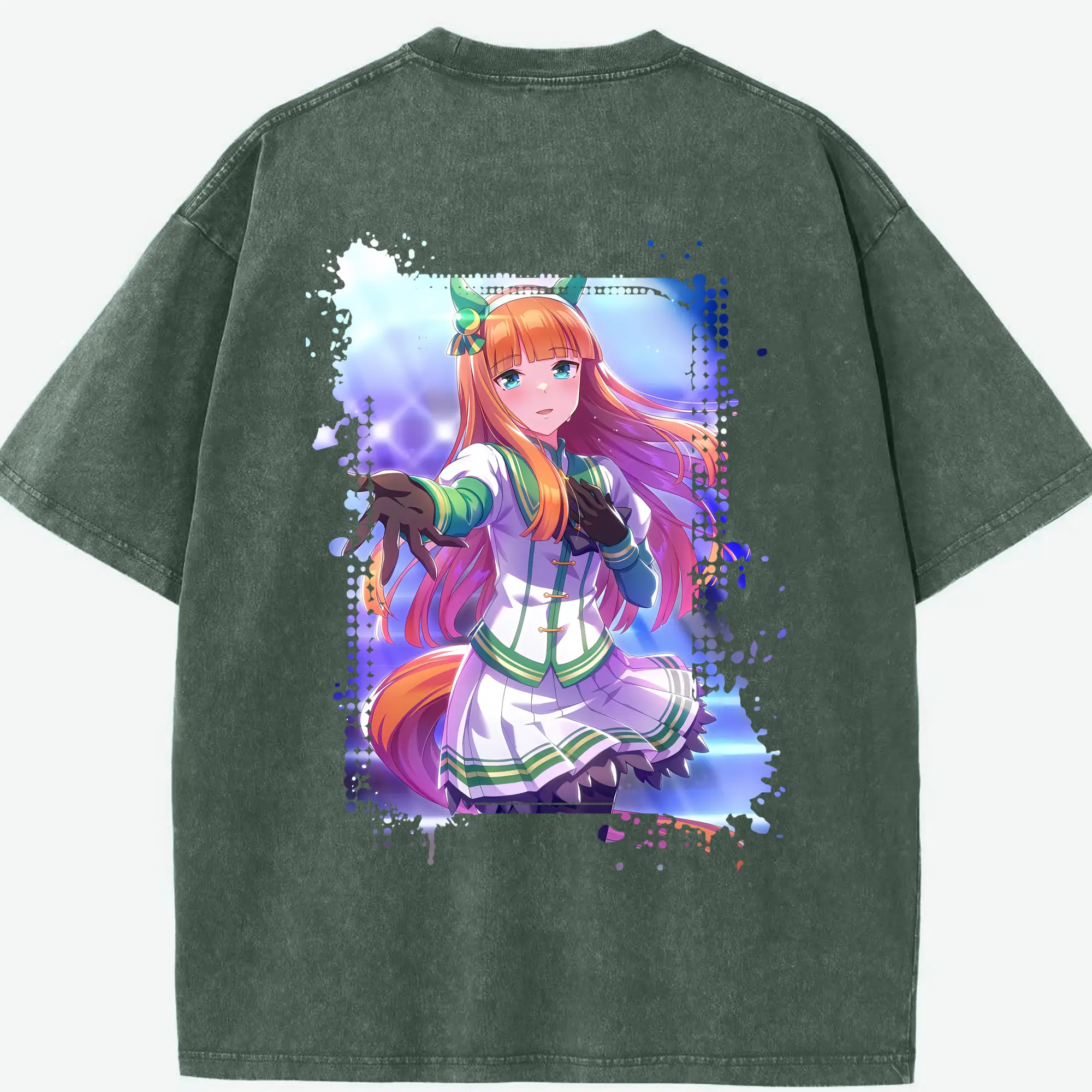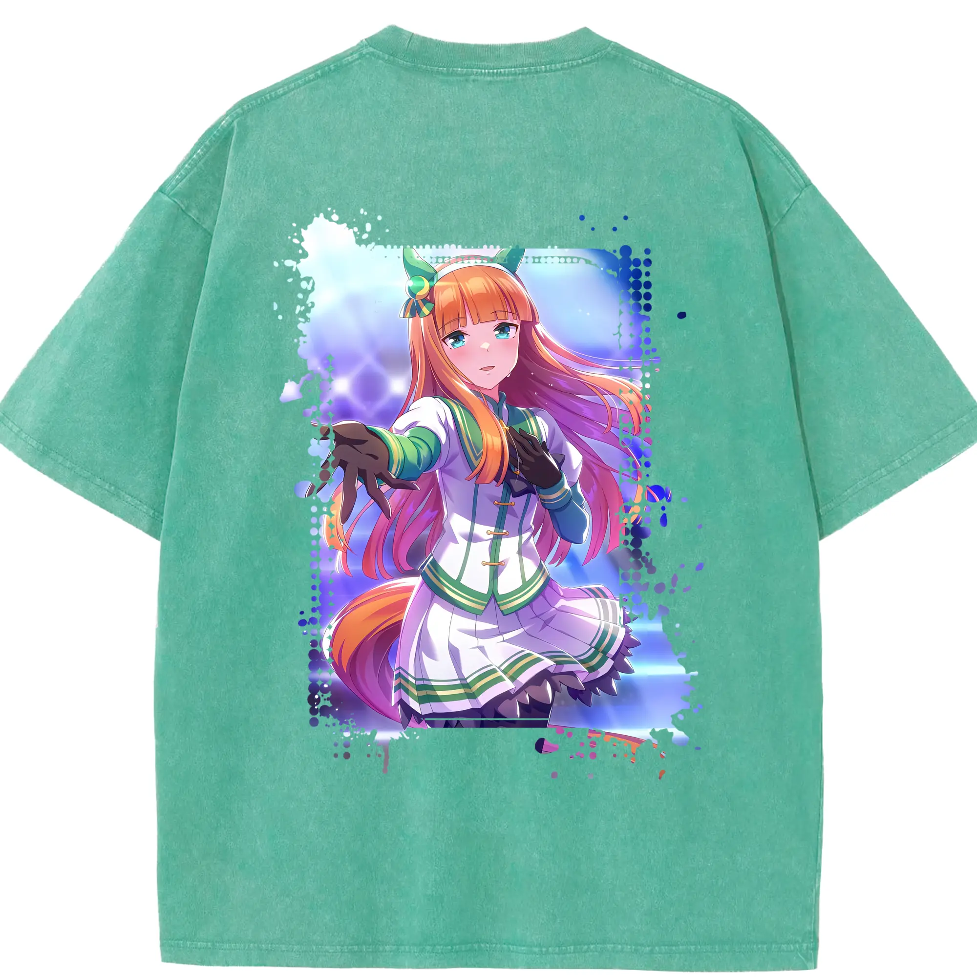 ウマ娘 プリティーダービー グッズ サイレンススズカ - 綿100% ヴィンテージ風 半袖Tシャツ ・ フロントプリント ・ 柔らか肌触り ・ 通気性 快適 ・ スポーツ カジュアル 外出用