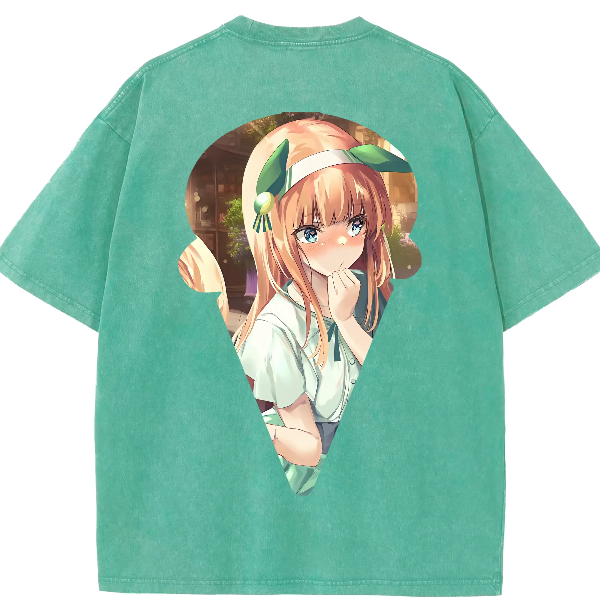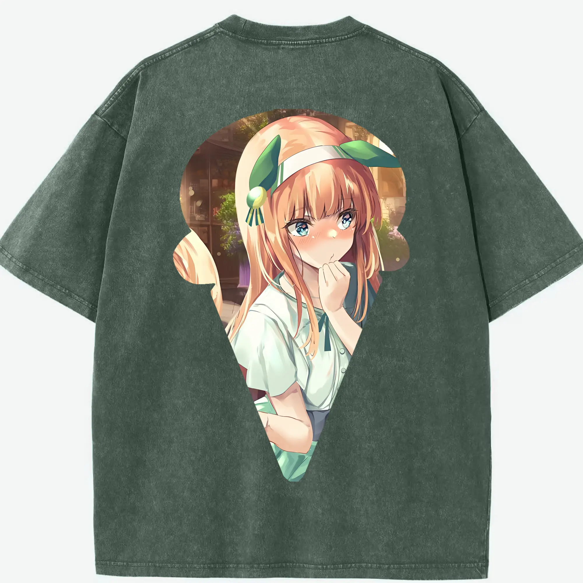 鳴潮 グッズ ザンニー - 綿100% ヴィンテージ風 半袖Tシャツ ・ 背面プリント ・ 柔らか肌触り ・ 通気性 快適 ・ スポーツ カジュアル 外出用