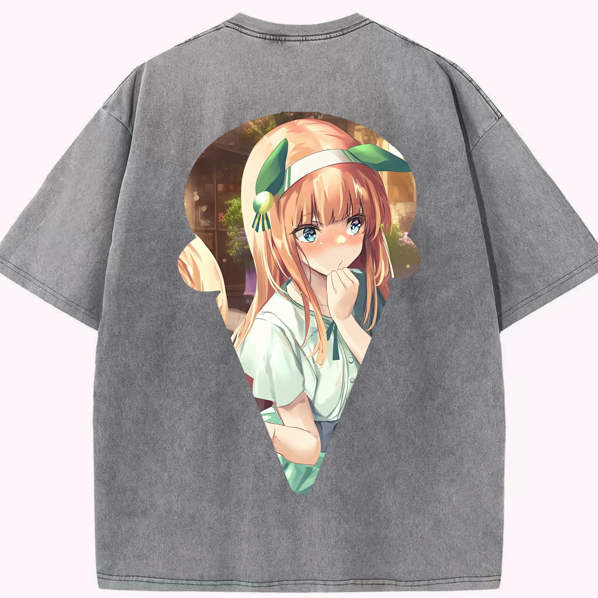 ウマ娘 プリティーダービー グッズ サイレンススズカ - 綿100% ヴィンテージ風 半袖Tシャツ ・ フロントプリント ・ 柔らか肌触り ・ 通気性 快適 ・ スポーツ カジュアル 外出用