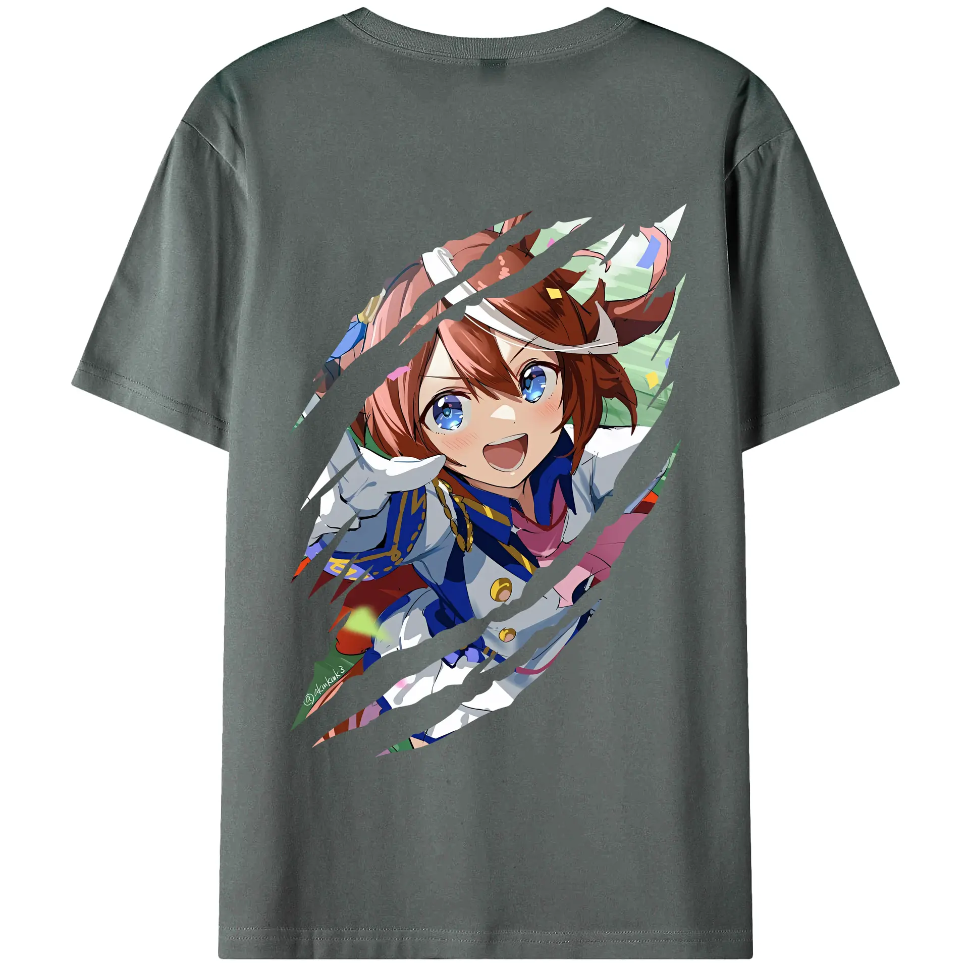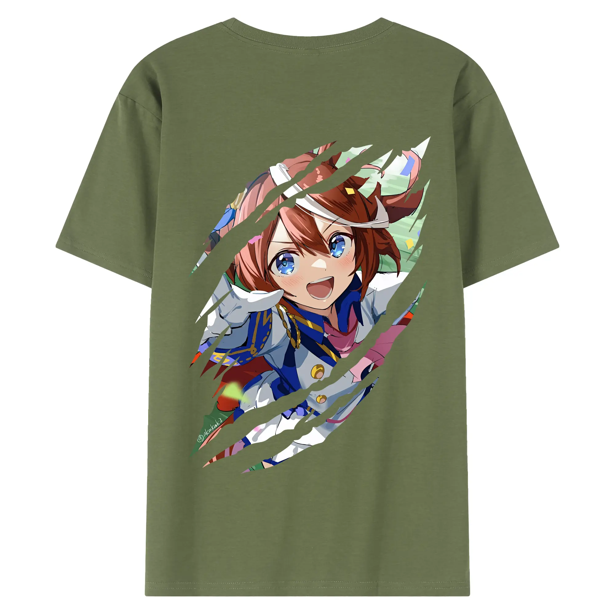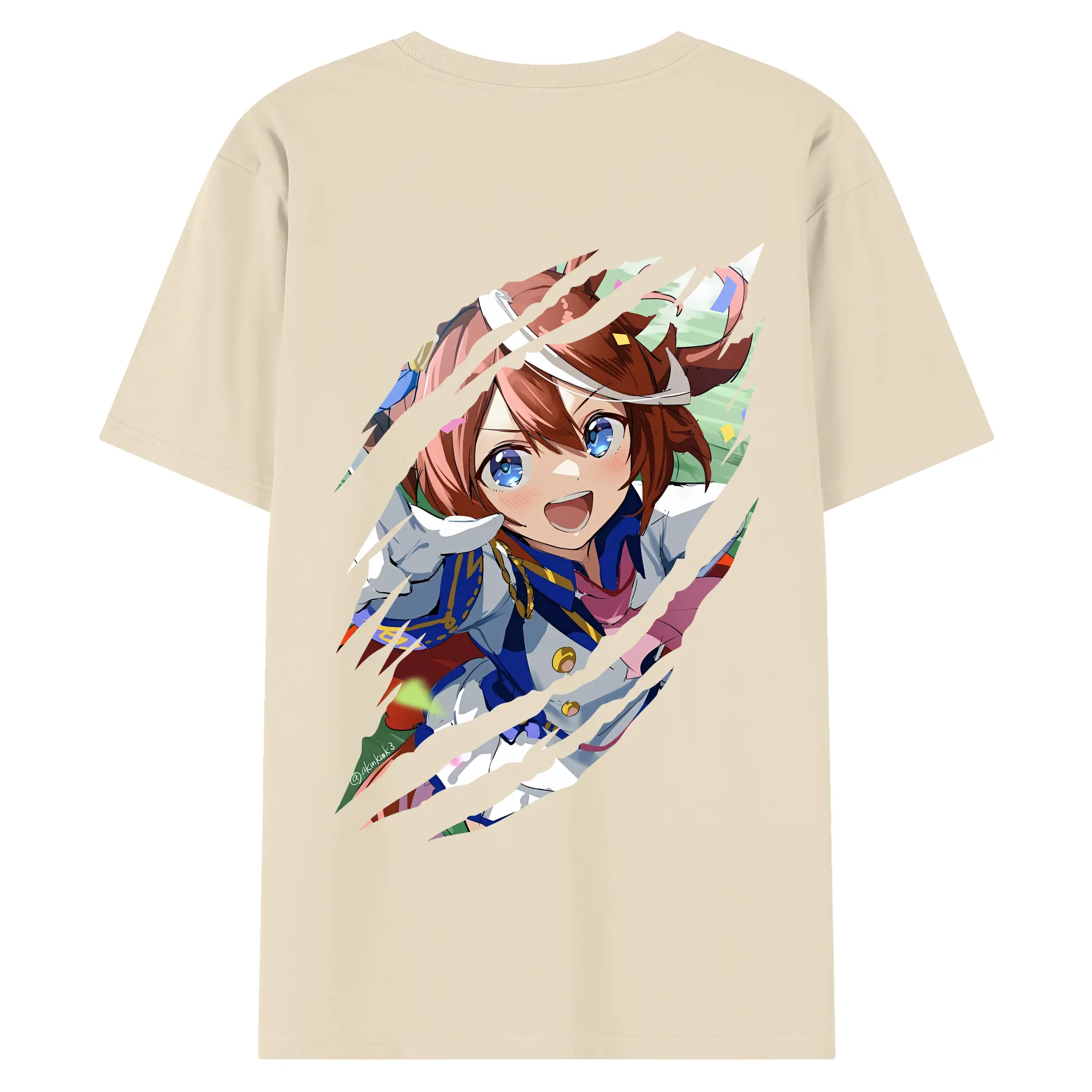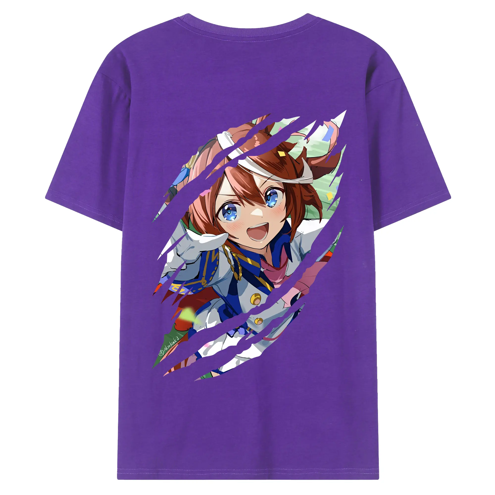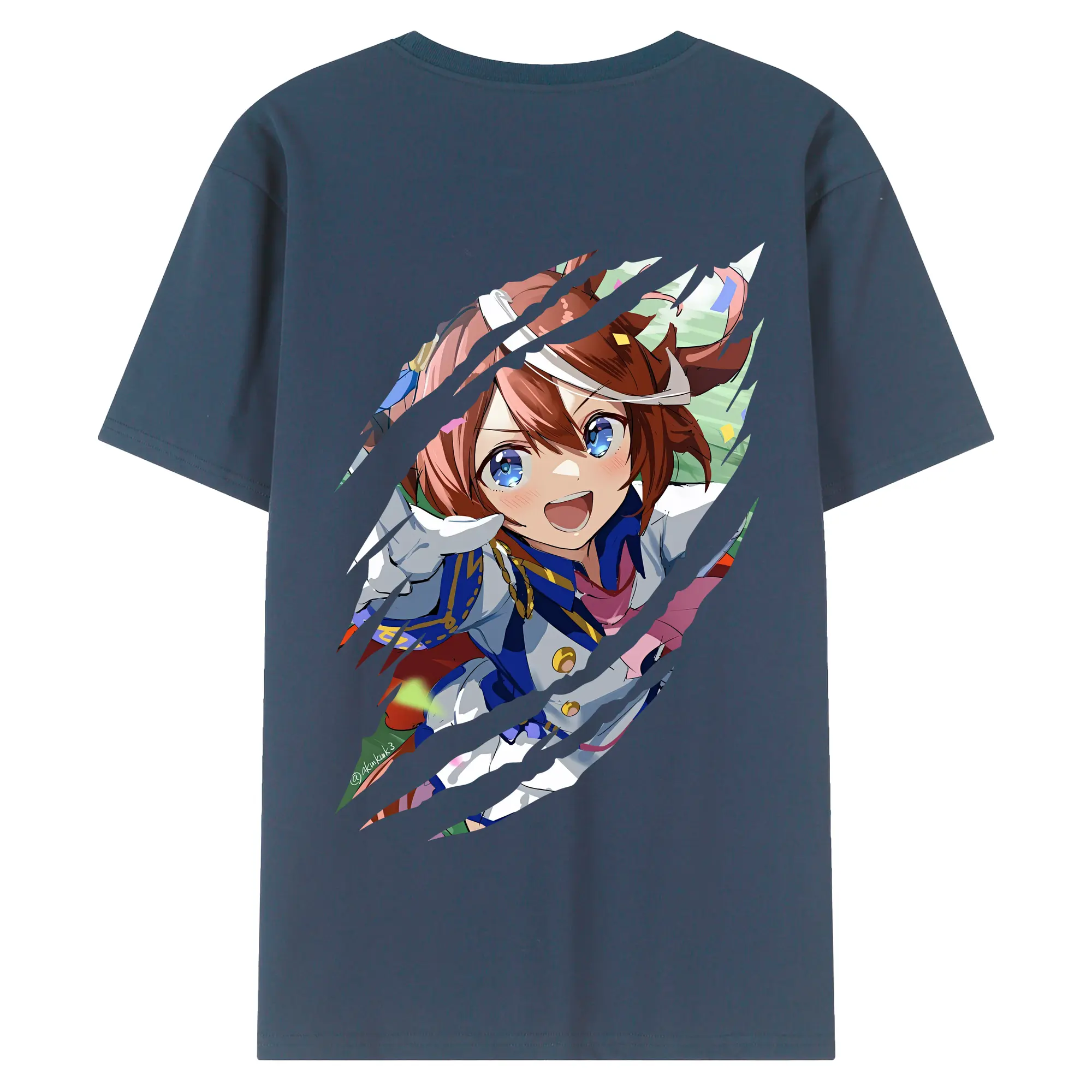 ウマ娘 プリティーダービー グッズ トウカイテイオー - 綿100% ヴィンテージ風 半袖Tシャツ ・ 背面プリント ・ 柔らか肌触り ・ 通気性 快適 ・ スポーツ カジュアル 外出用