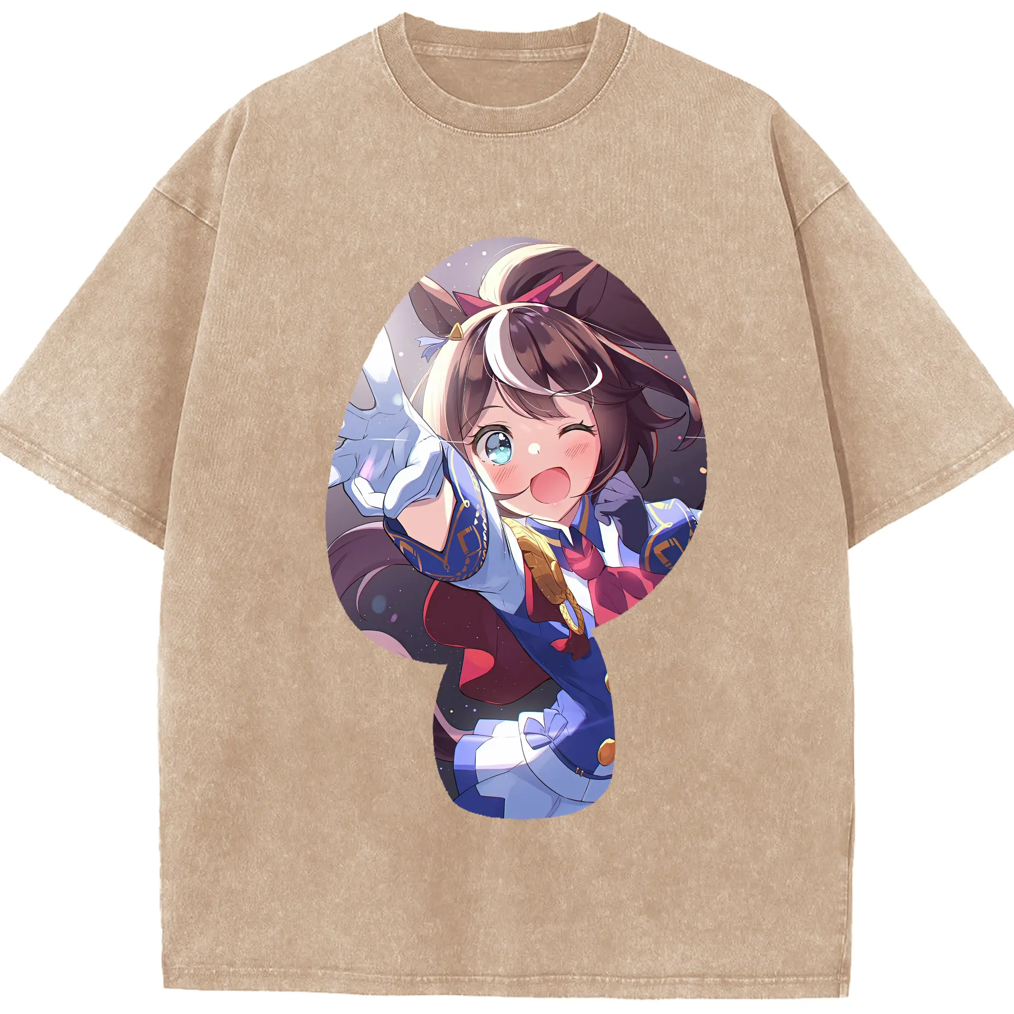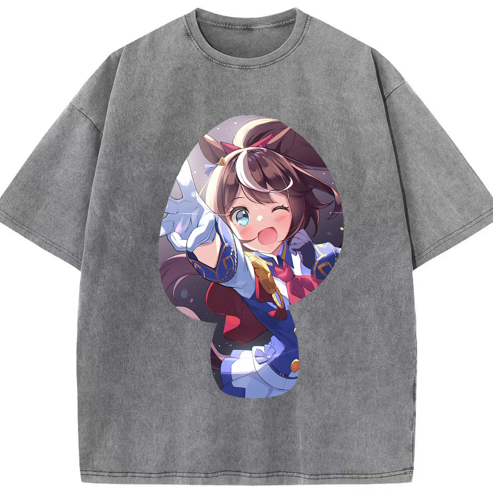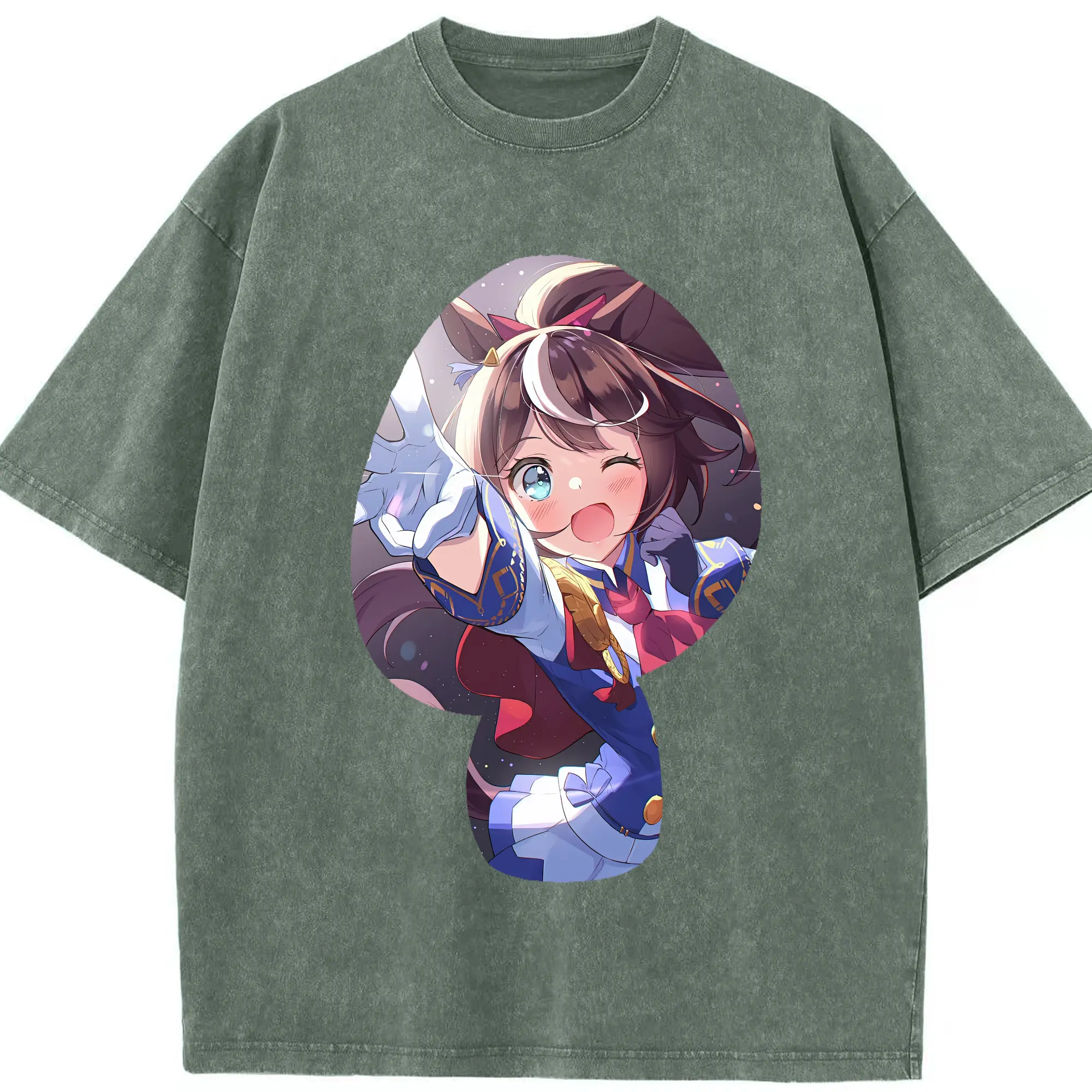 ウマ娘 プリティーダービー グッズ トウカイテイオー - 綿100% ヴィンテージ風 半袖Tシャツ ・ 背面プリント ・ 柔らか肌触り ・ 通気性 快適 ・ スポーツ カジュアル 外出用