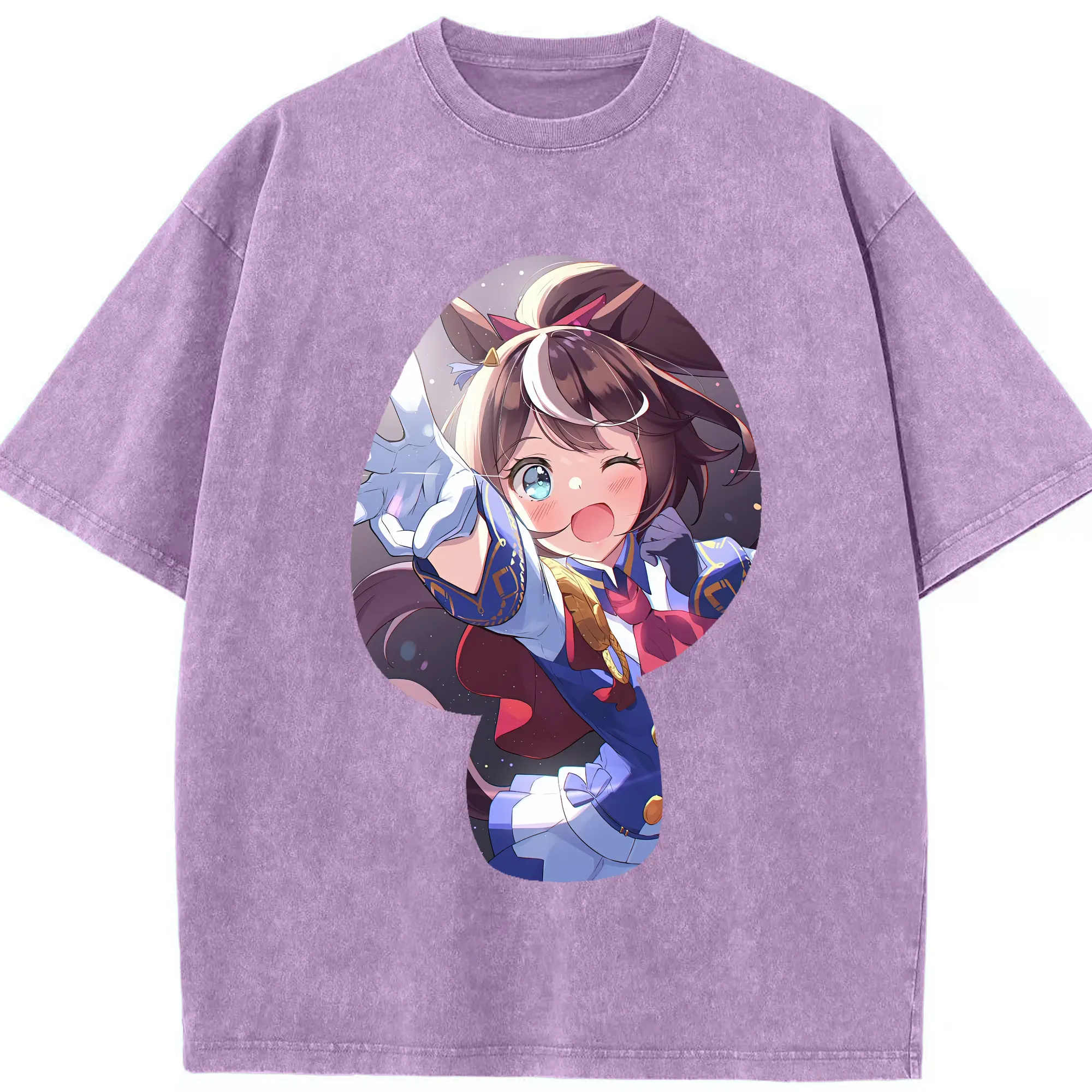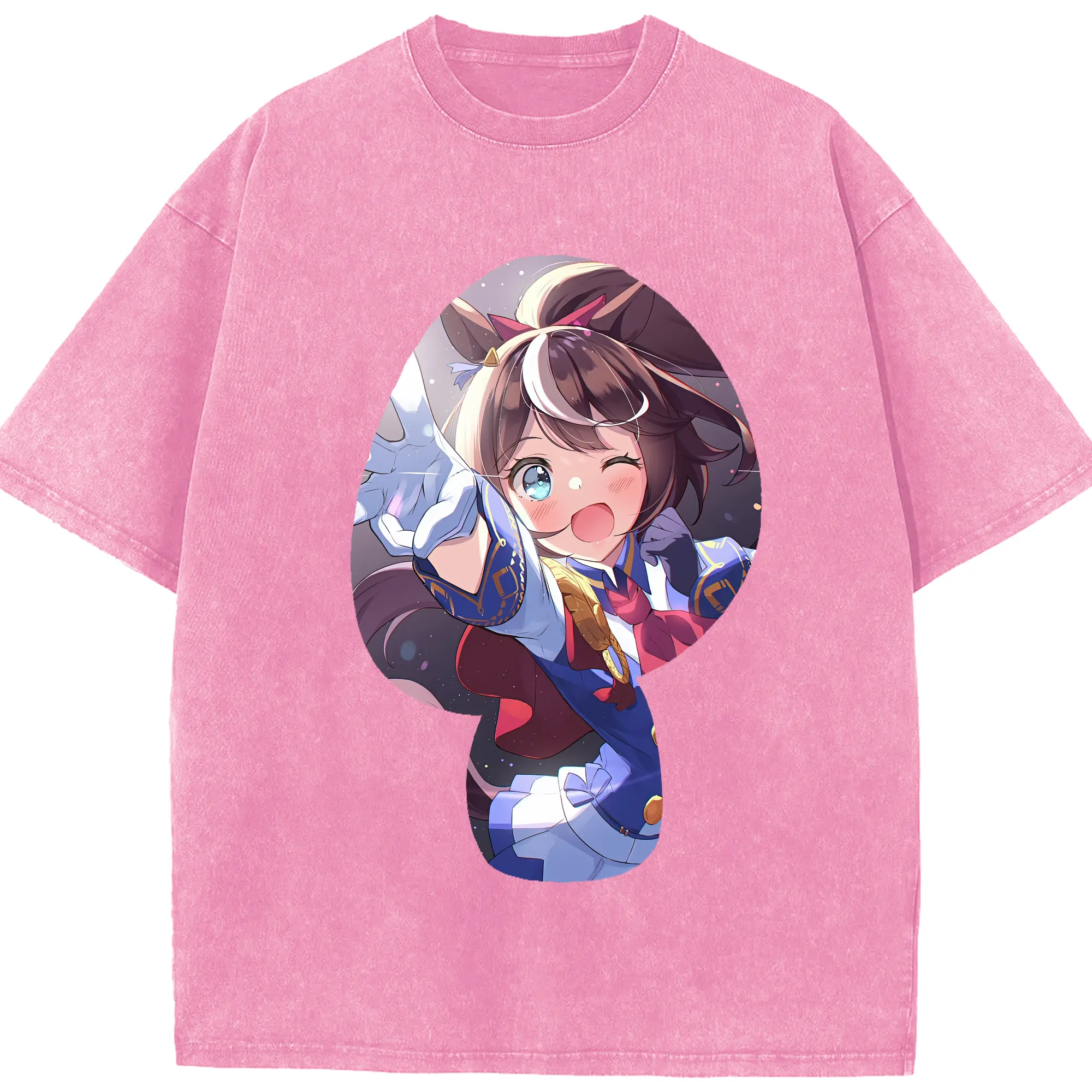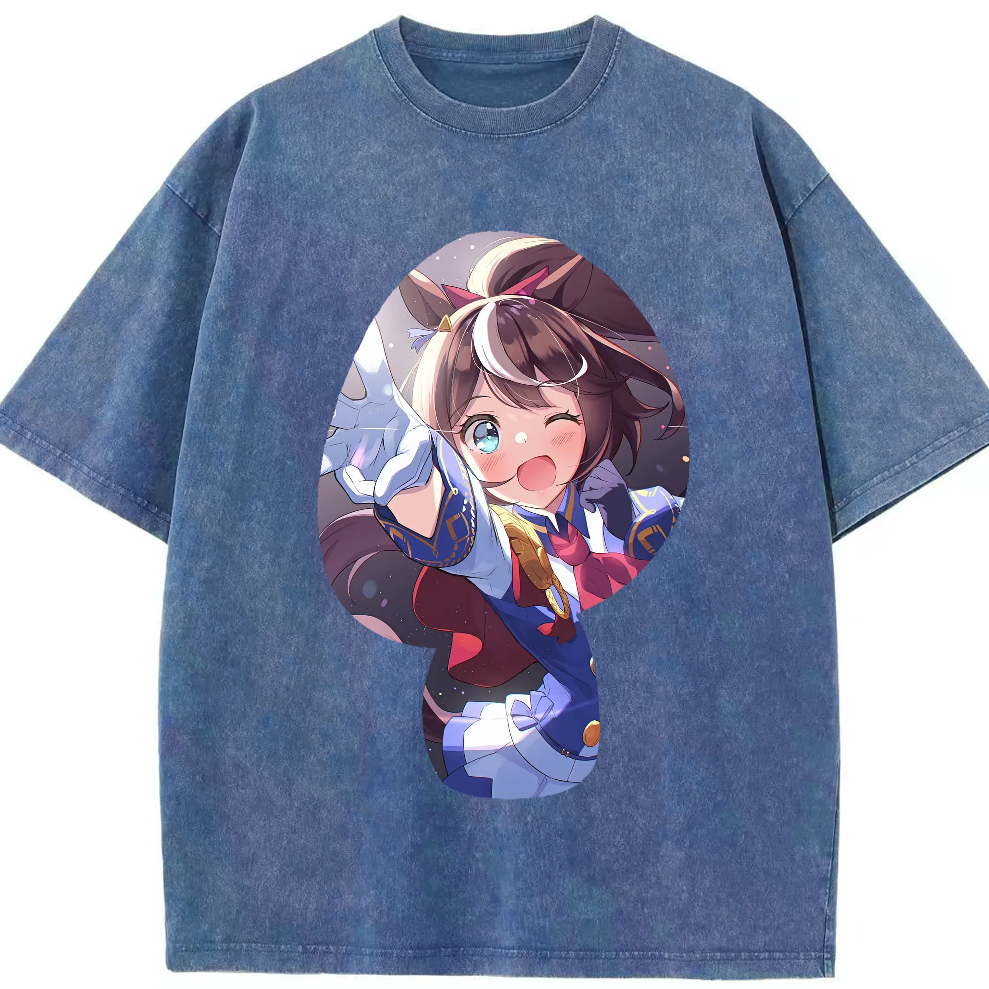 ウマ娘 プリティーダービー グッズ トウカイテイオー - 綿100% ヴィンテージ風 半袖Tシャツ ・ 背面プリント ・ 柔らか肌触り ・ 通気性 快適 ・ スポーツ カジュアル 外出用