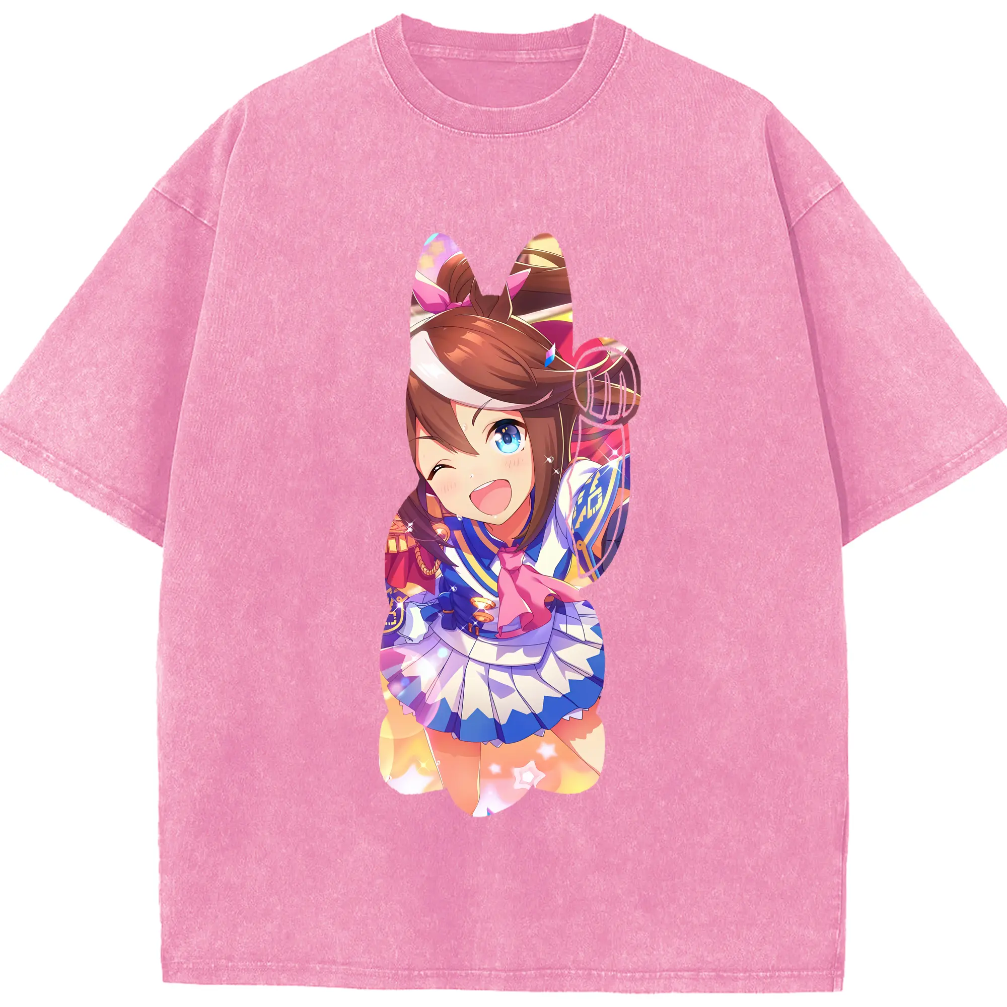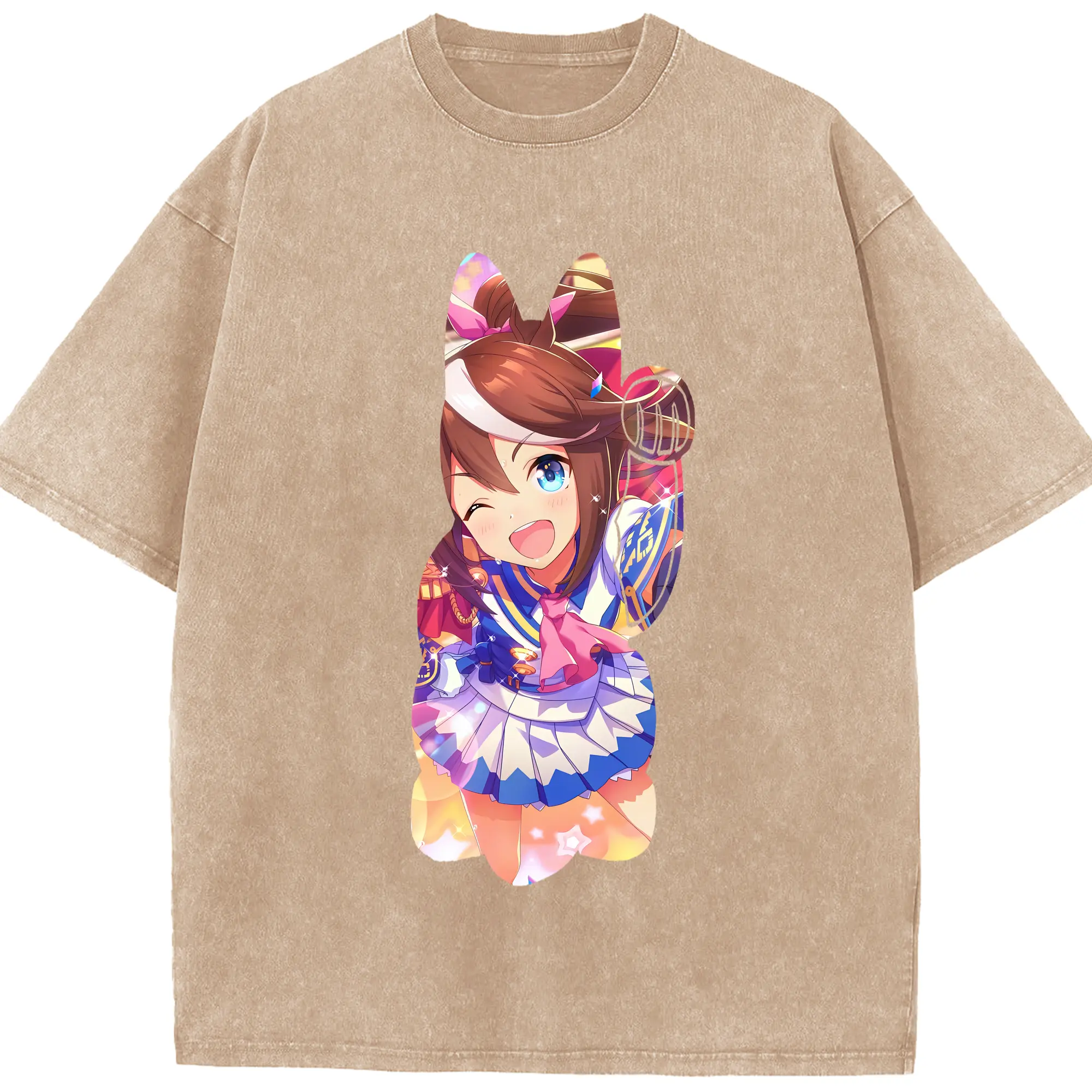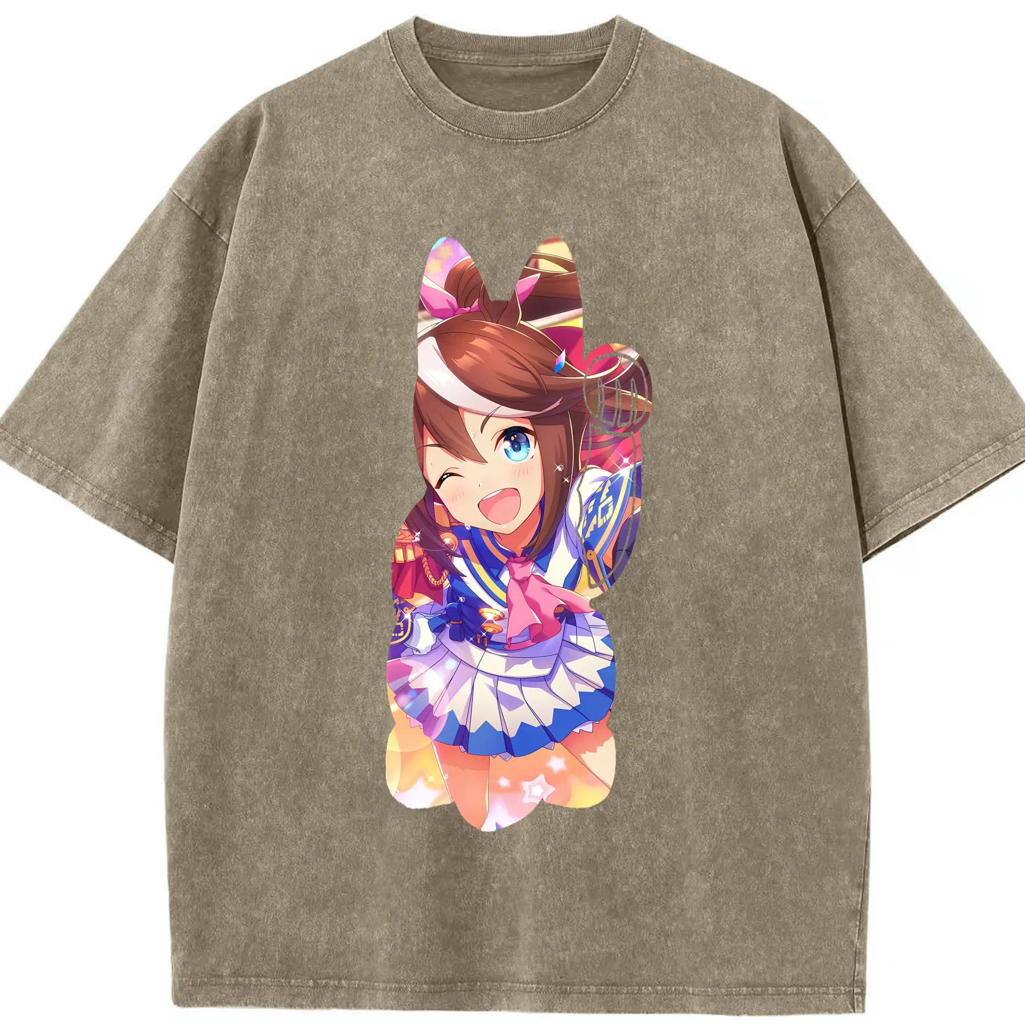ウマ娘 プリティーダービー グッズ トウカイテイオー - 綿100% ヴィンテージ風 半袖Tシャツ ・ 背面プリント ・ 柔らか肌触り ・ 通気性 快適 ・ スポーツ カジュアル 外出用
