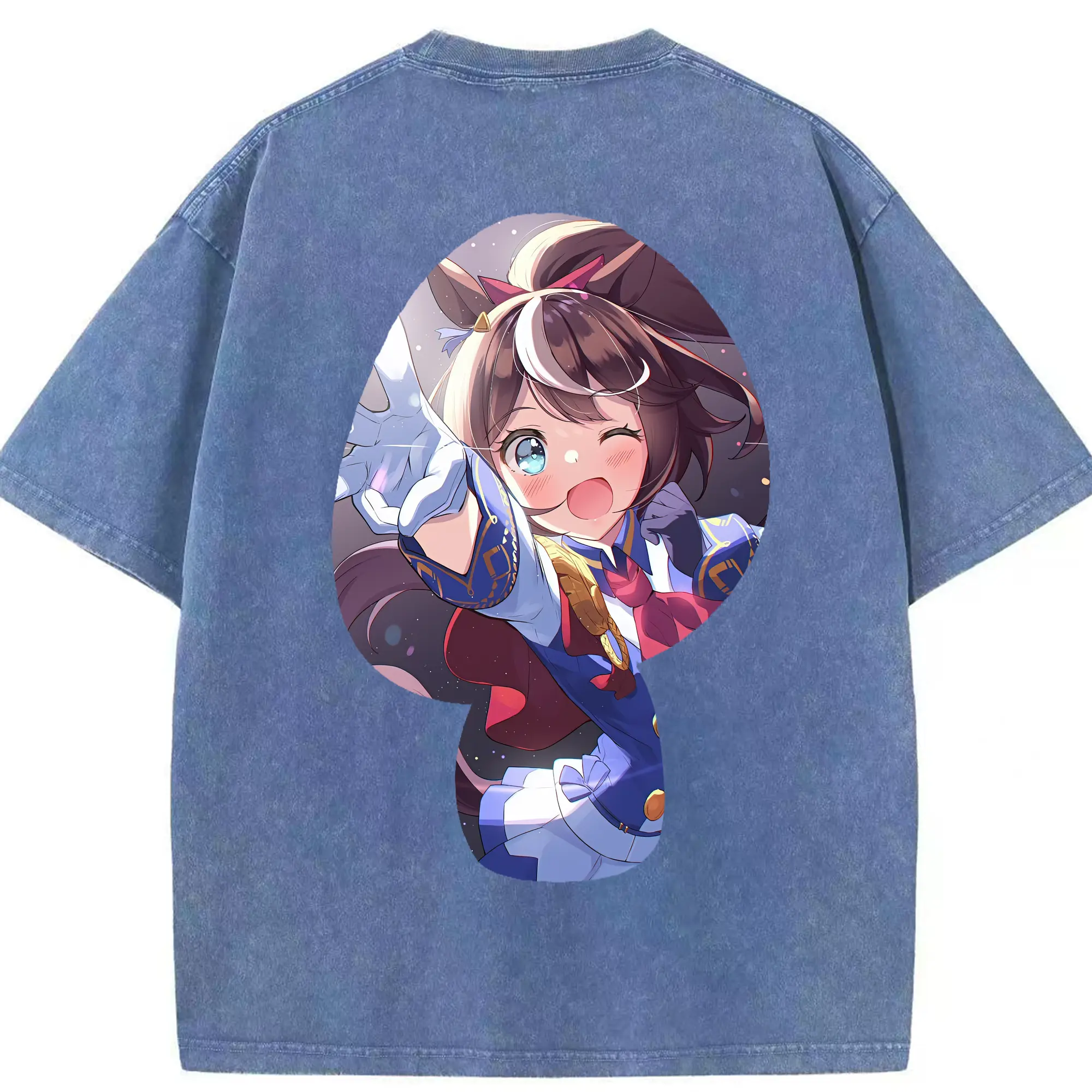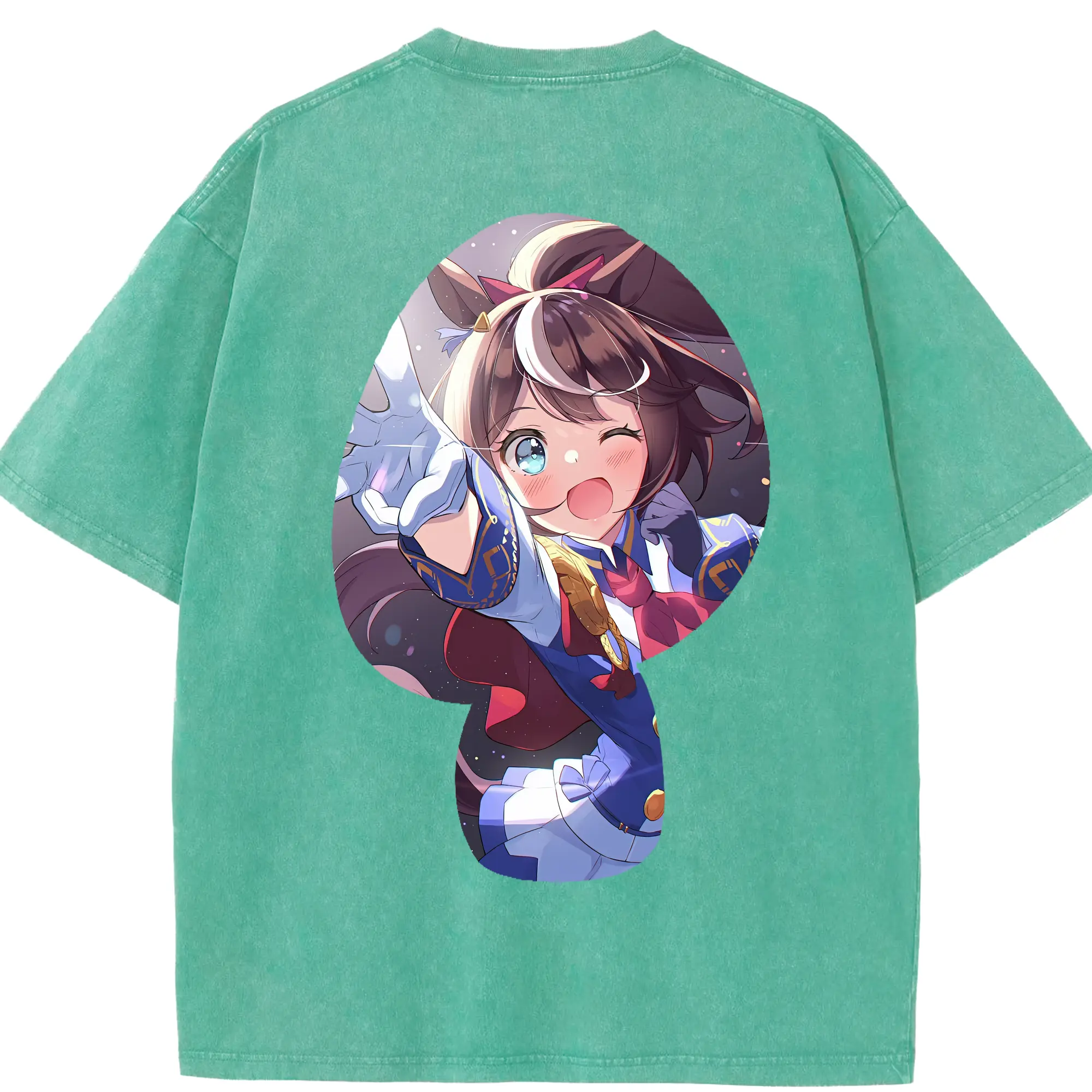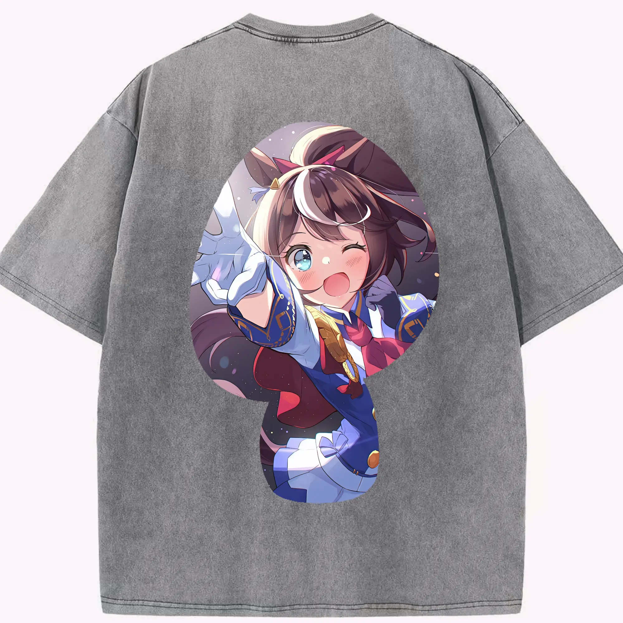 ウマ娘 プリティーダービー グッズ トウカイテイオー - 綿100% ヴィンテージ風 半袖Tシャツ ・ フロントプリント ・ 柔らか肌触り ・ 通気性 快適 ・ スポーツ カジュアル 外出用