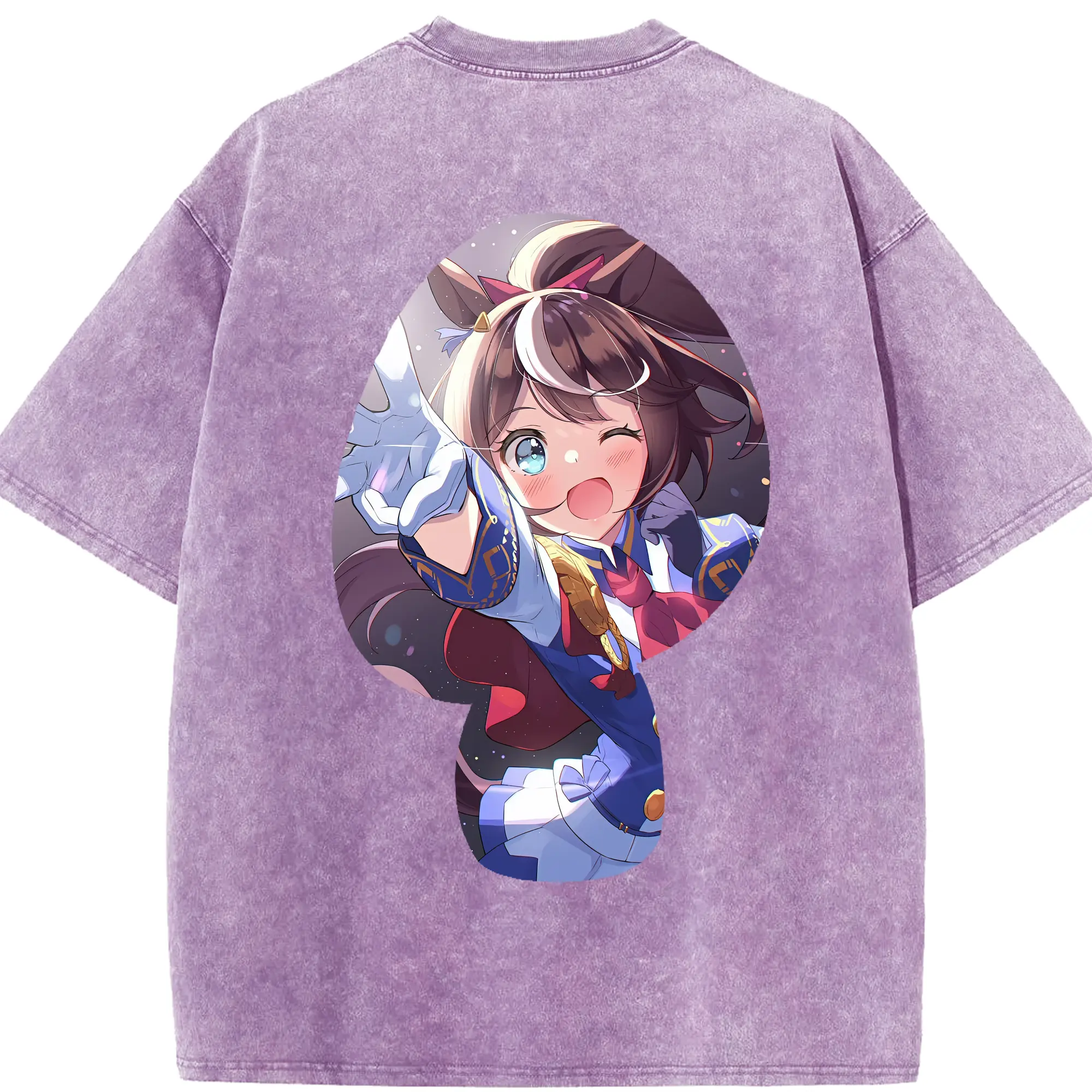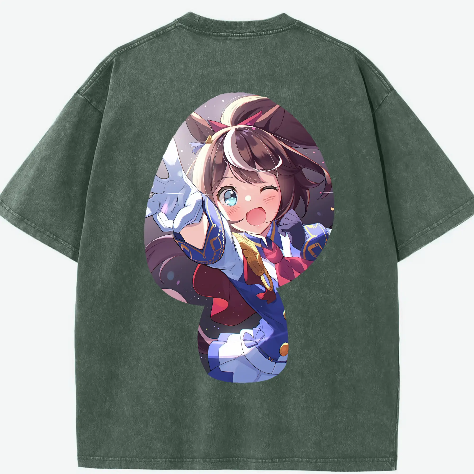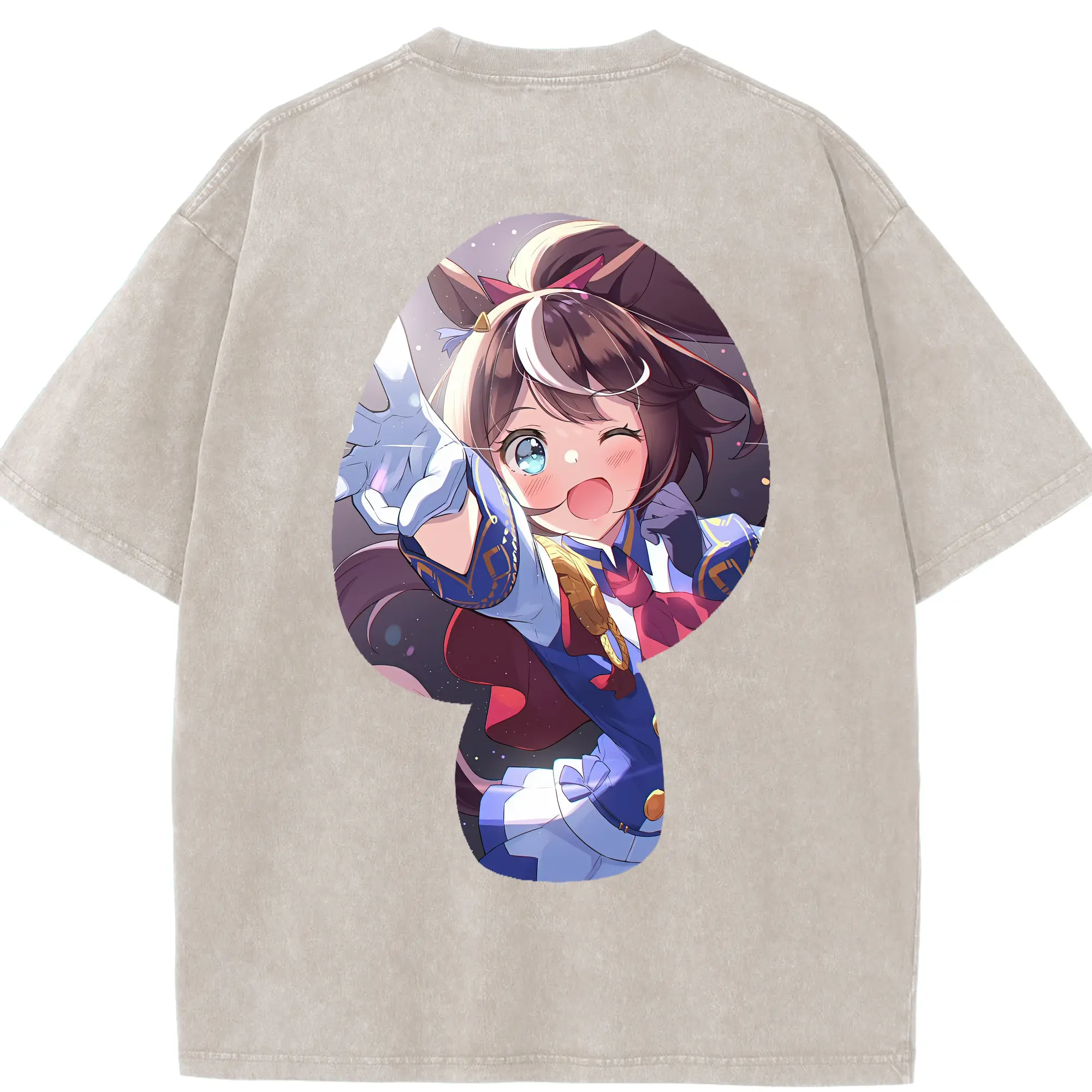 ウマ娘 プリティーダービー グッズ トウカイテイオー - 綿100% ヴィンテージ風 半袖Tシャツ ・ フロントプリント ・ 柔らか肌触り ・ 通気性 快適 ・ スポーツ カジュアル 外出用