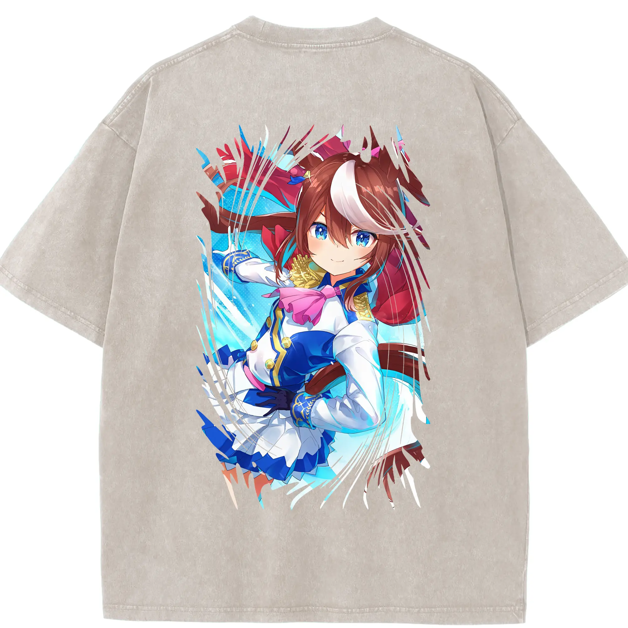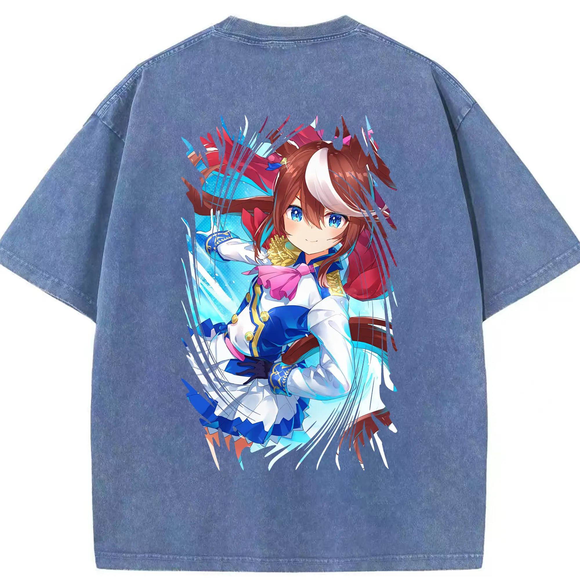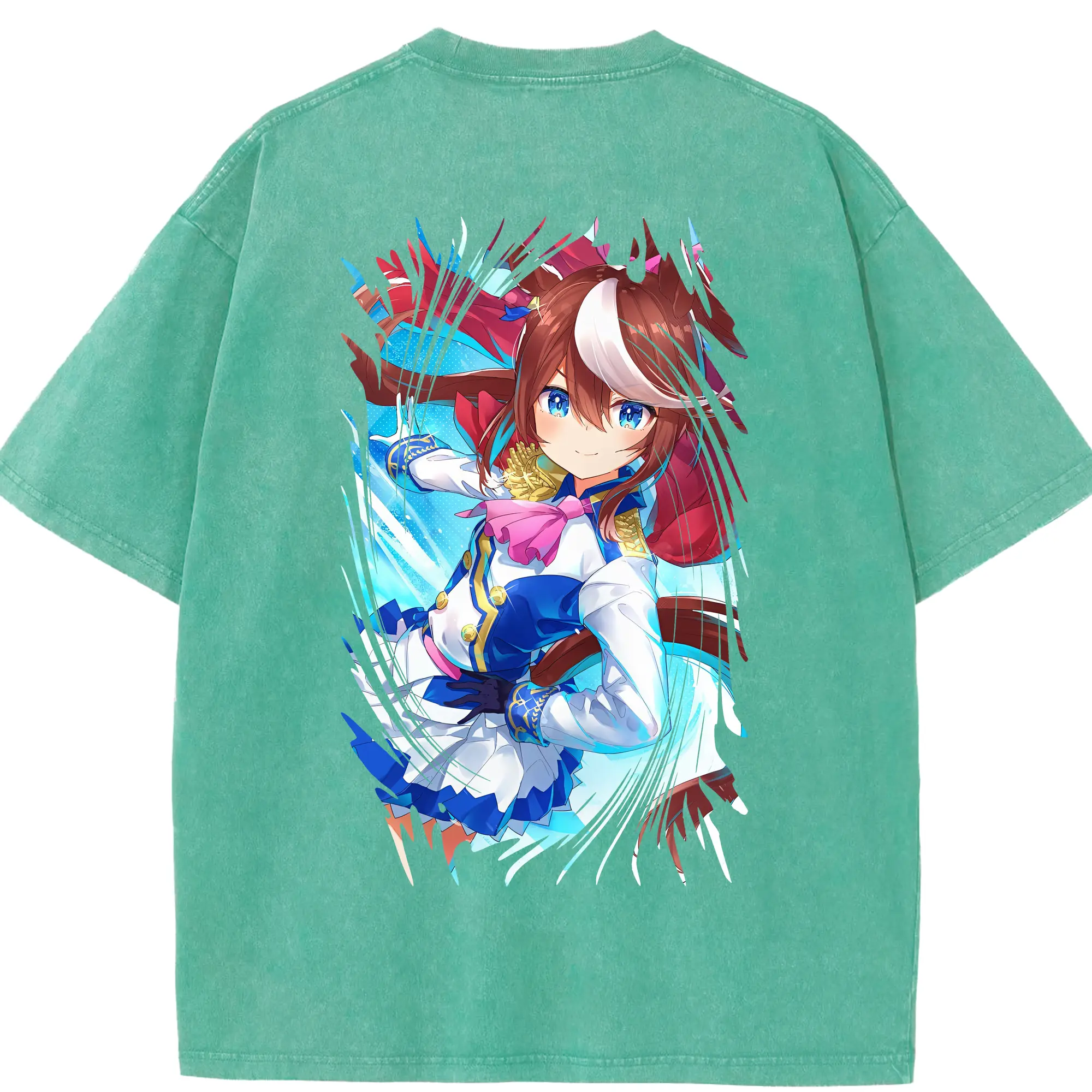 ウマ娘 プリティーダービー グッズ トウカイテイオー - 綿100% ヴィンテージ風 半袖Tシャツ ・ フロントプリント ・ 柔らか肌触り ・ 通気性 快適 ・ スポーツ カジュアル 外出用