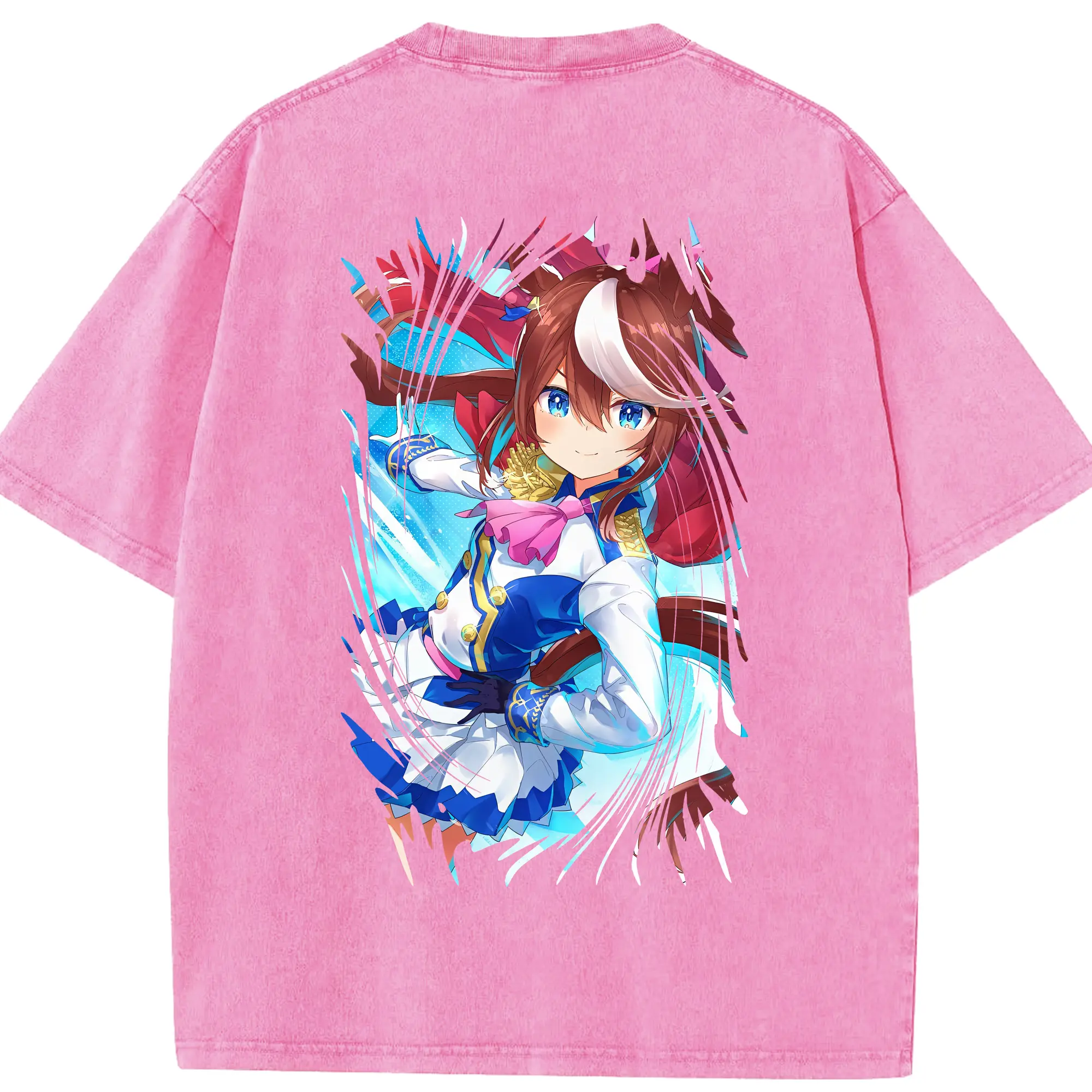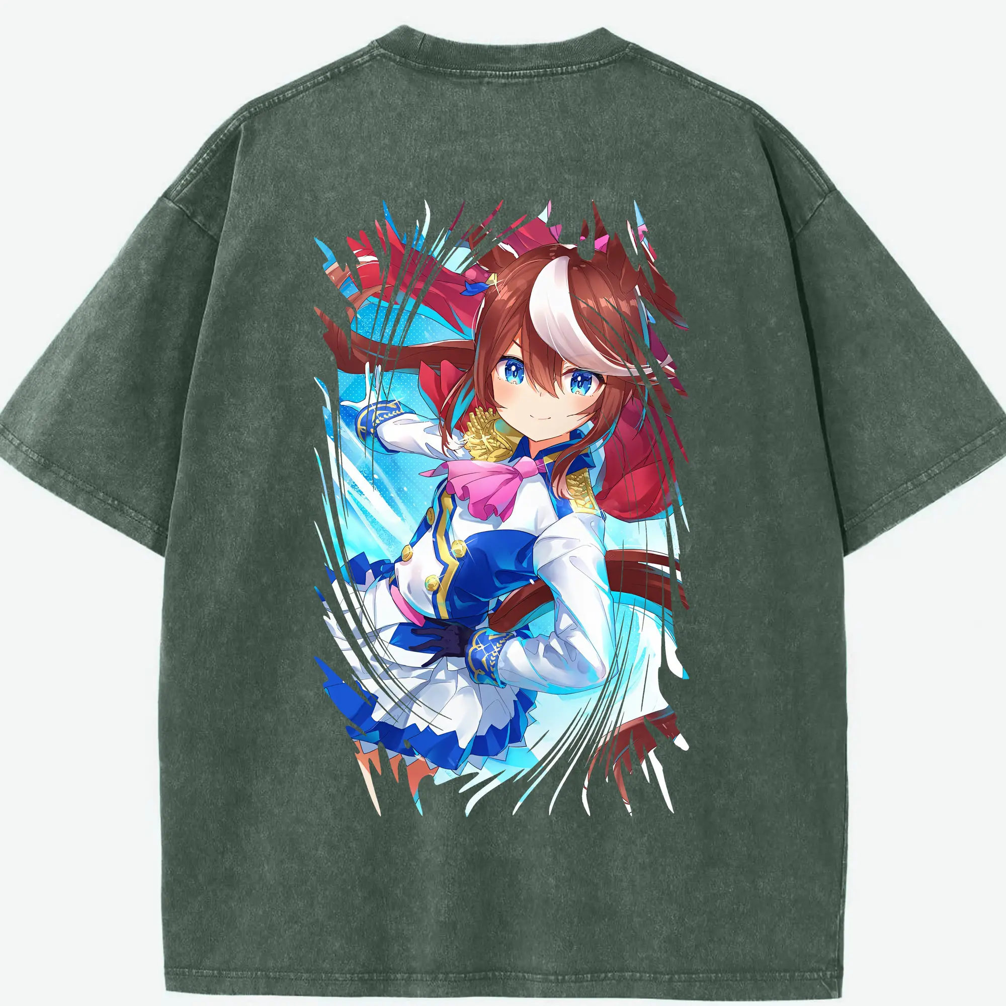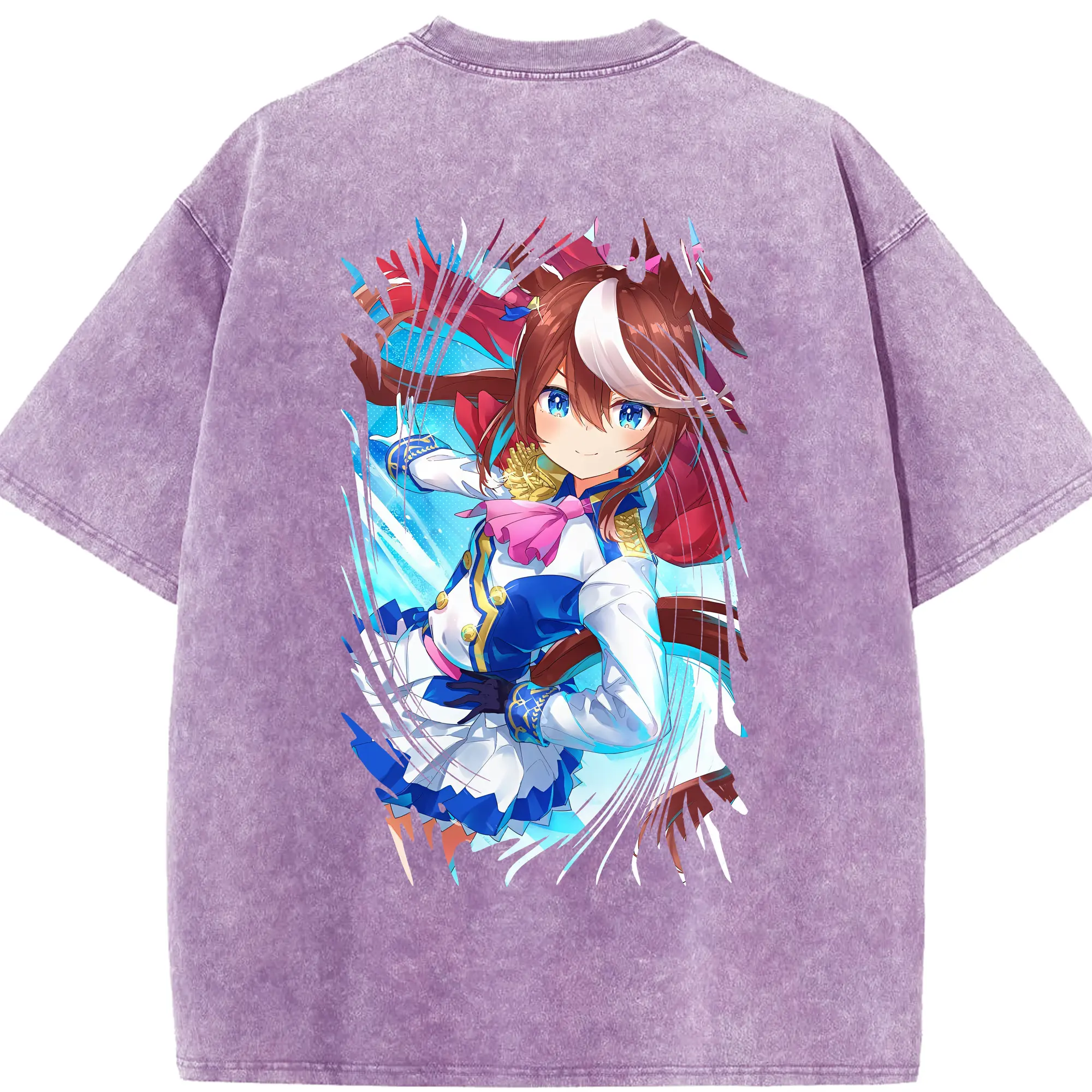 ウマ娘 プリティーダービー グッズ トウカイテイオー - 綿100% ヴィンテージ風 半袖Tシャツ ・ フロントプリント ・ 柔らか肌触り ・ 通気性 快適 ・ スポーツ カジュアル 外出用