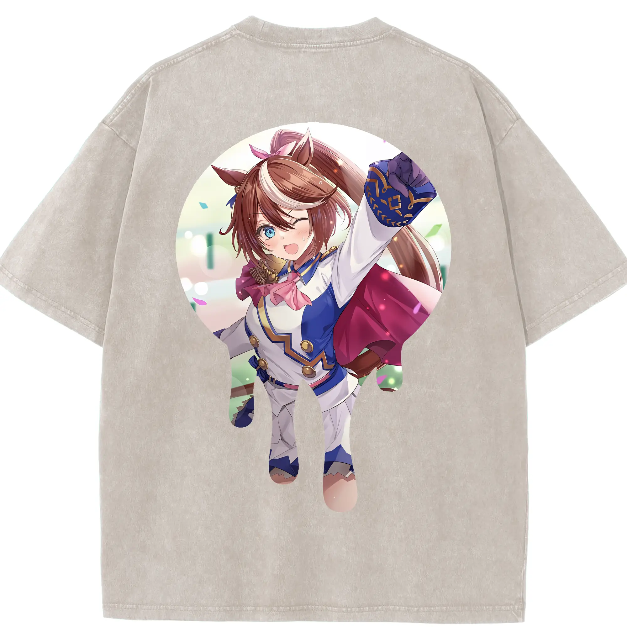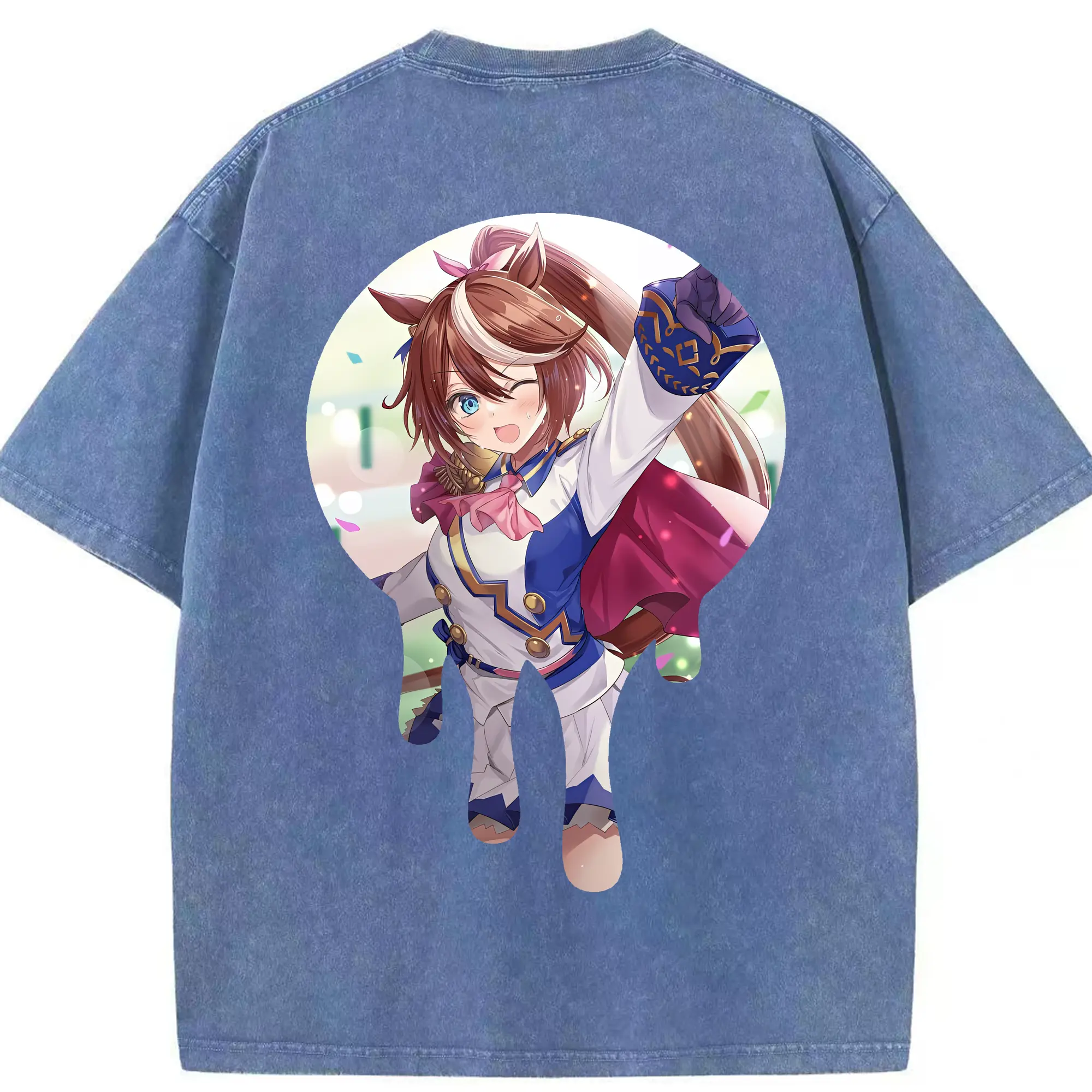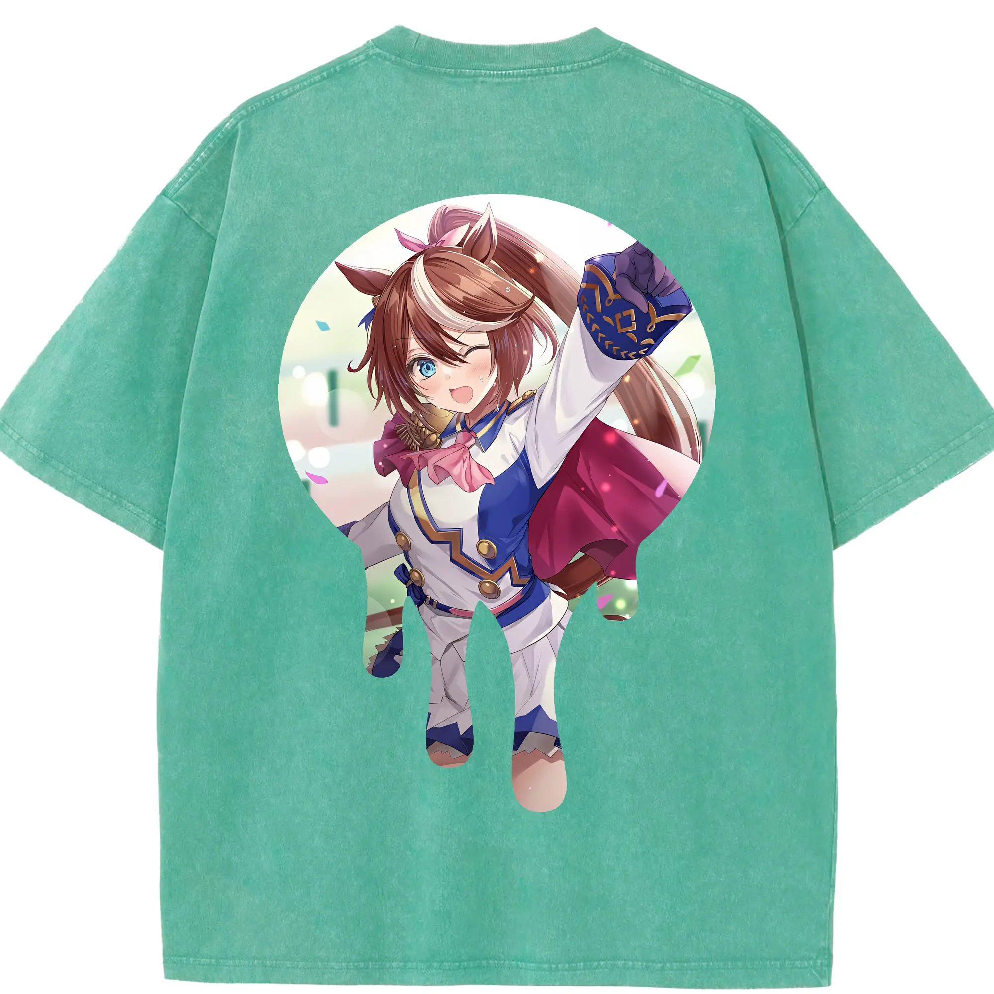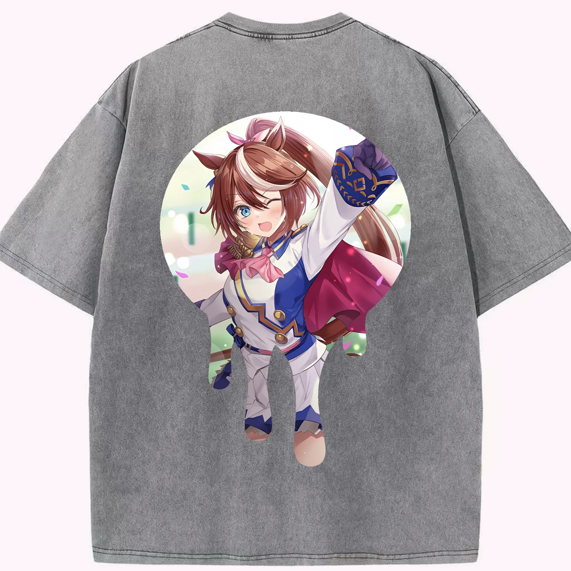 ウマ娘 プリティーダービー グッズ トウカイテイオー - 綿100% ヴィンテージ風 半袖Tシャツ ・ フロントプリント ・ 柔らか肌触り ・ 通気性 快適 ・ スポーツ カジュアル 外出用