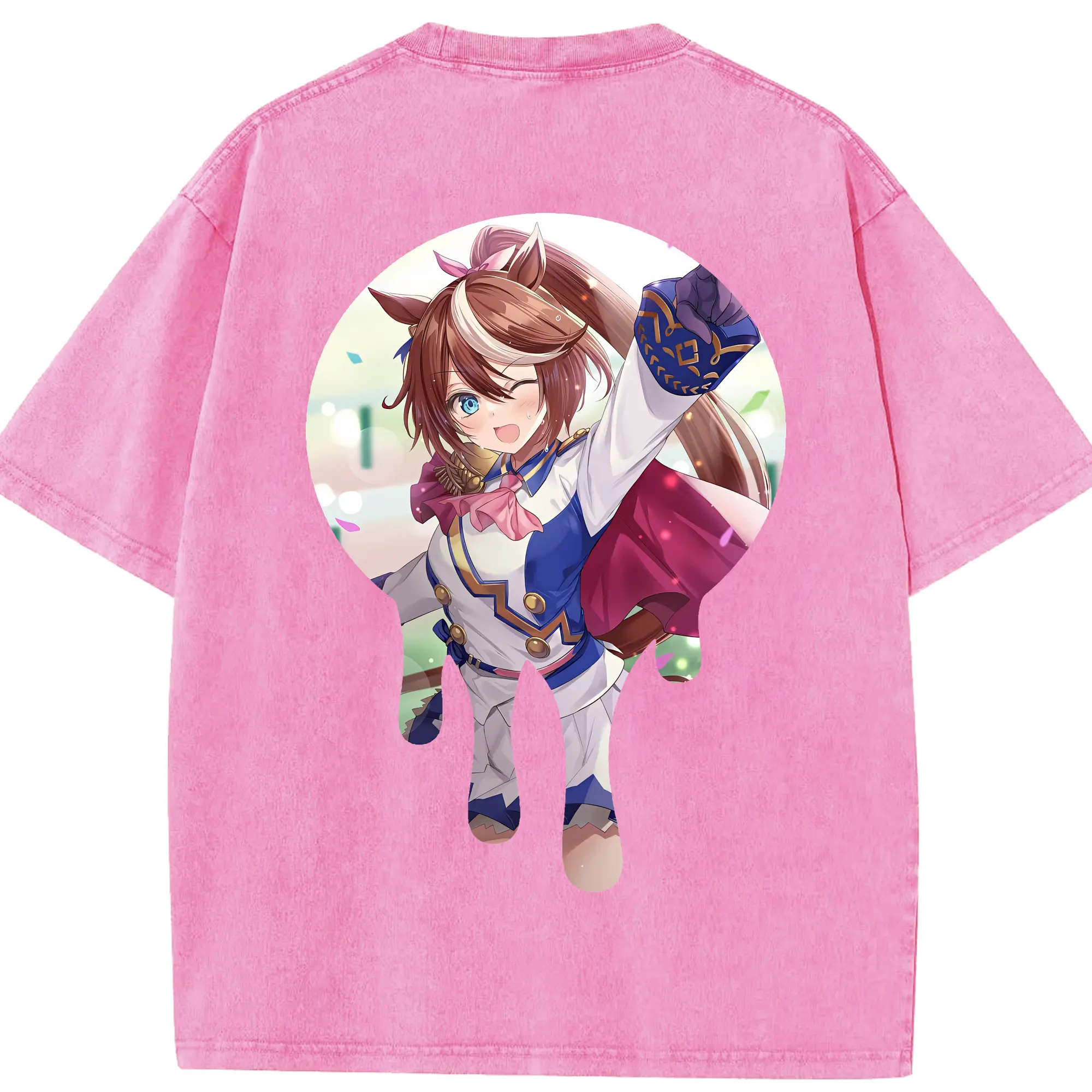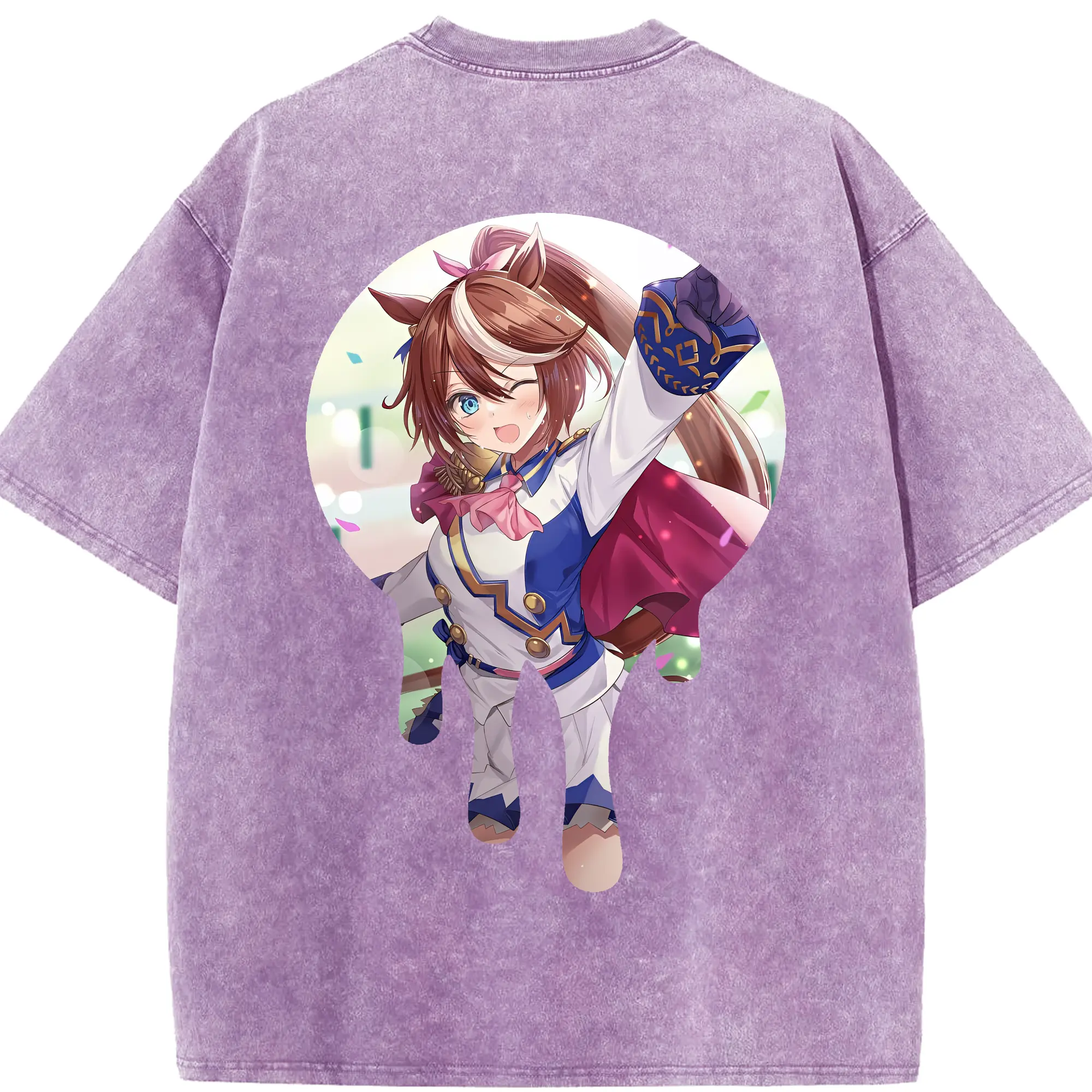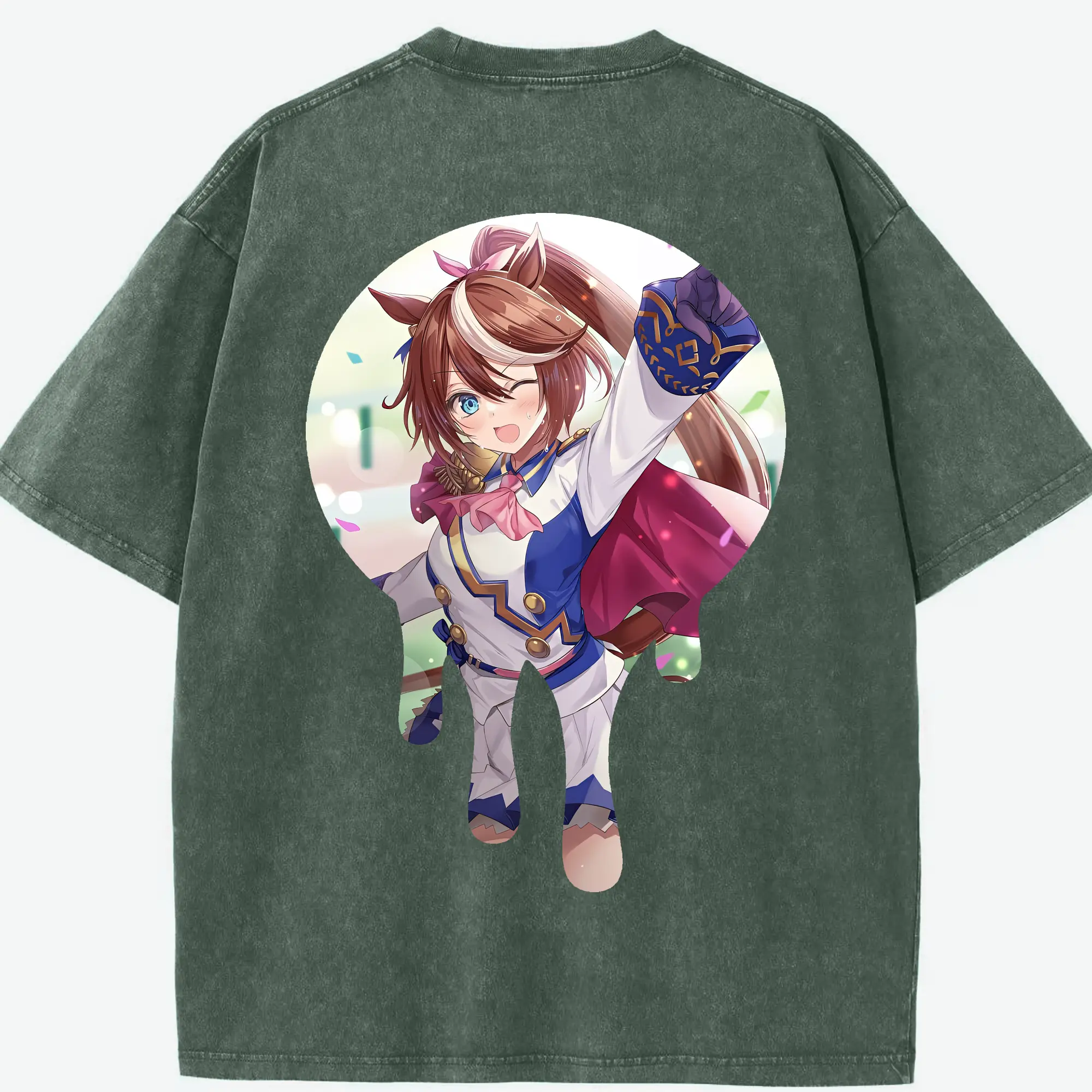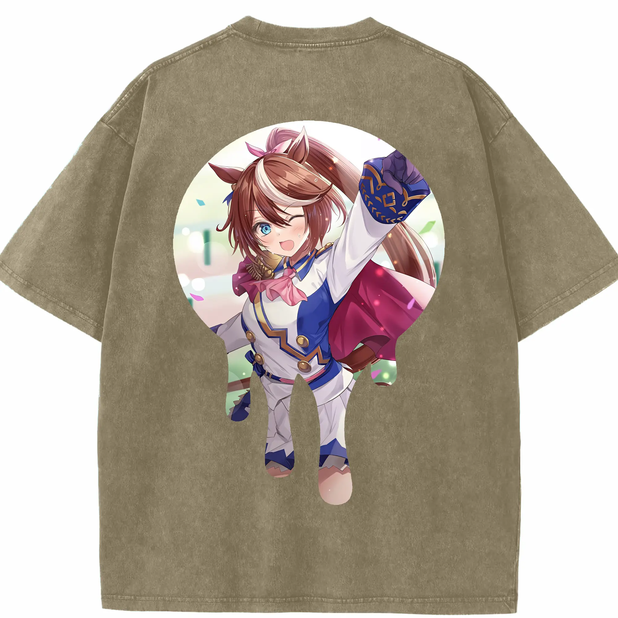 ウマ娘 プリティーダービー グッズ トウカイテイオー - 綿100% ヴィンテージ風 半袖Tシャツ ・ フロントプリント ・ 柔らか肌触り ・ 通気性 快適 ・ スポーツ カジュアル 外出用