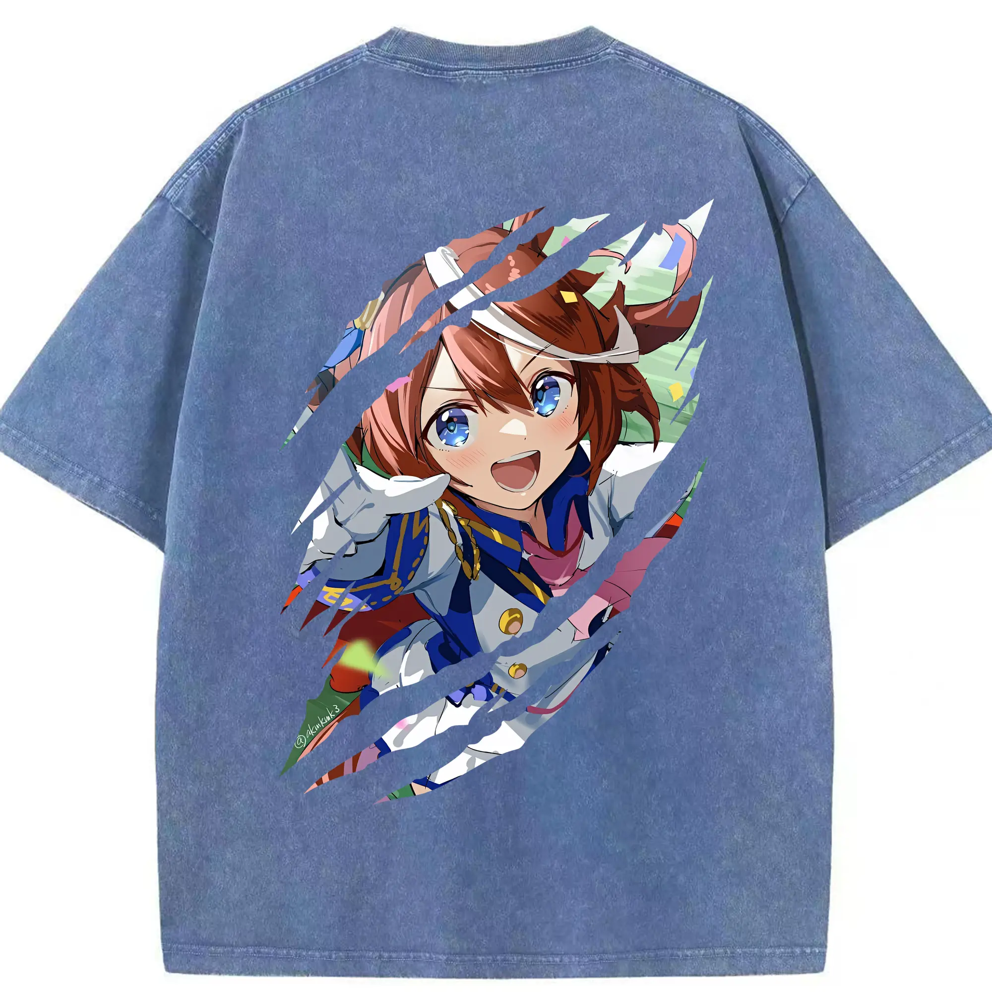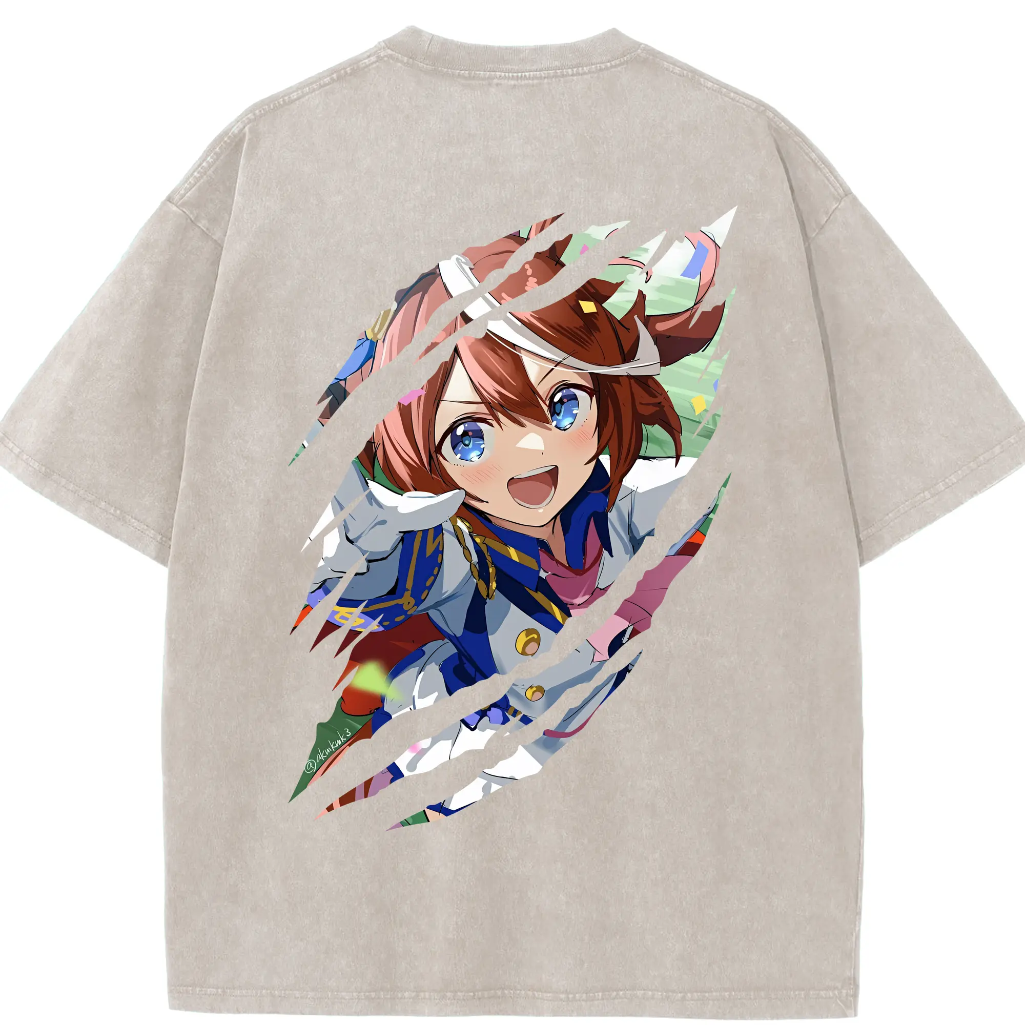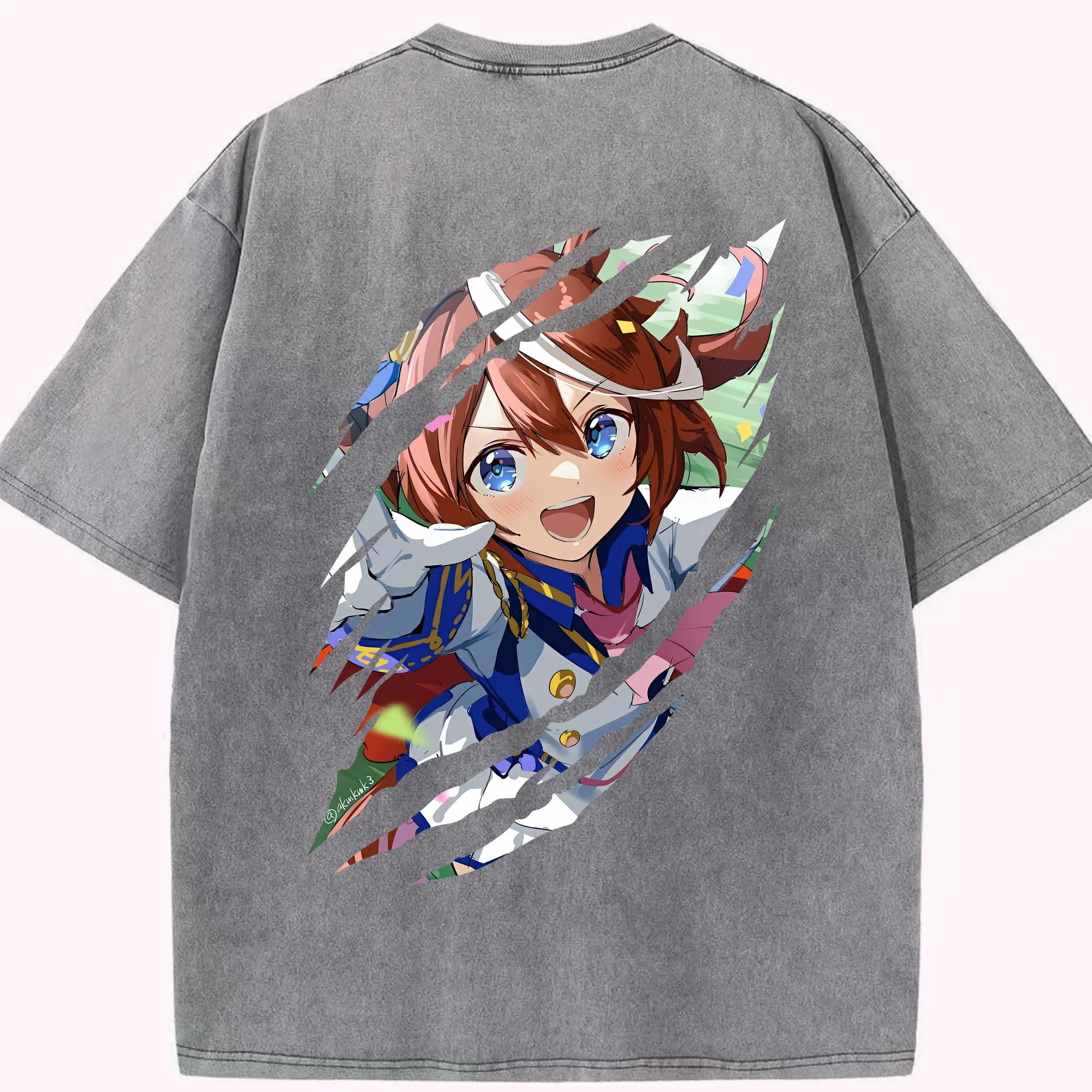 ウマ娘 プリティーダービー グッズ トウカイテイオー - 綿100% ヴィンテージ風 半袖Tシャツ ・ フロントプリント ・ 柔らか肌触り ・ 通気性 快適 ・ スポーツ カジュアル 外出用