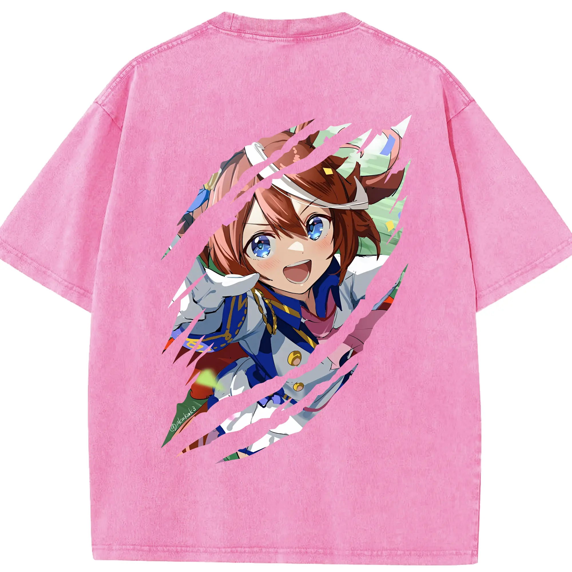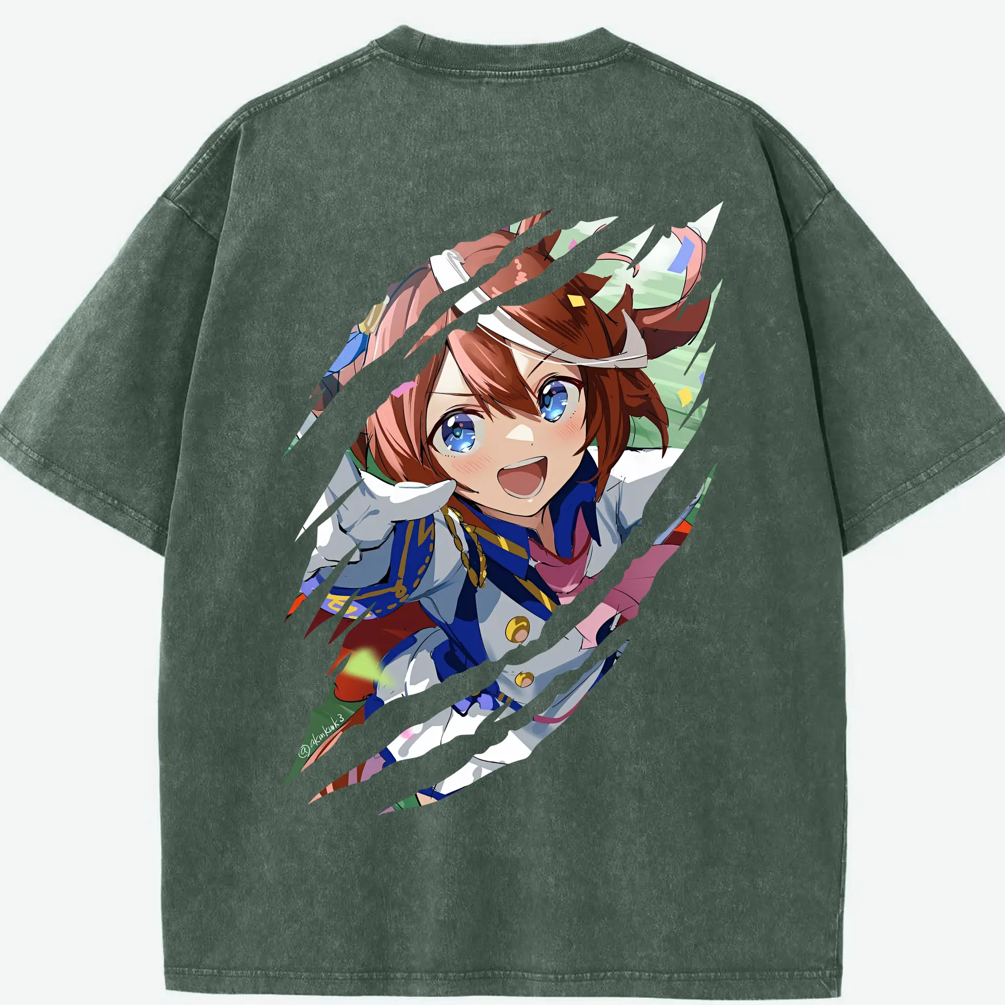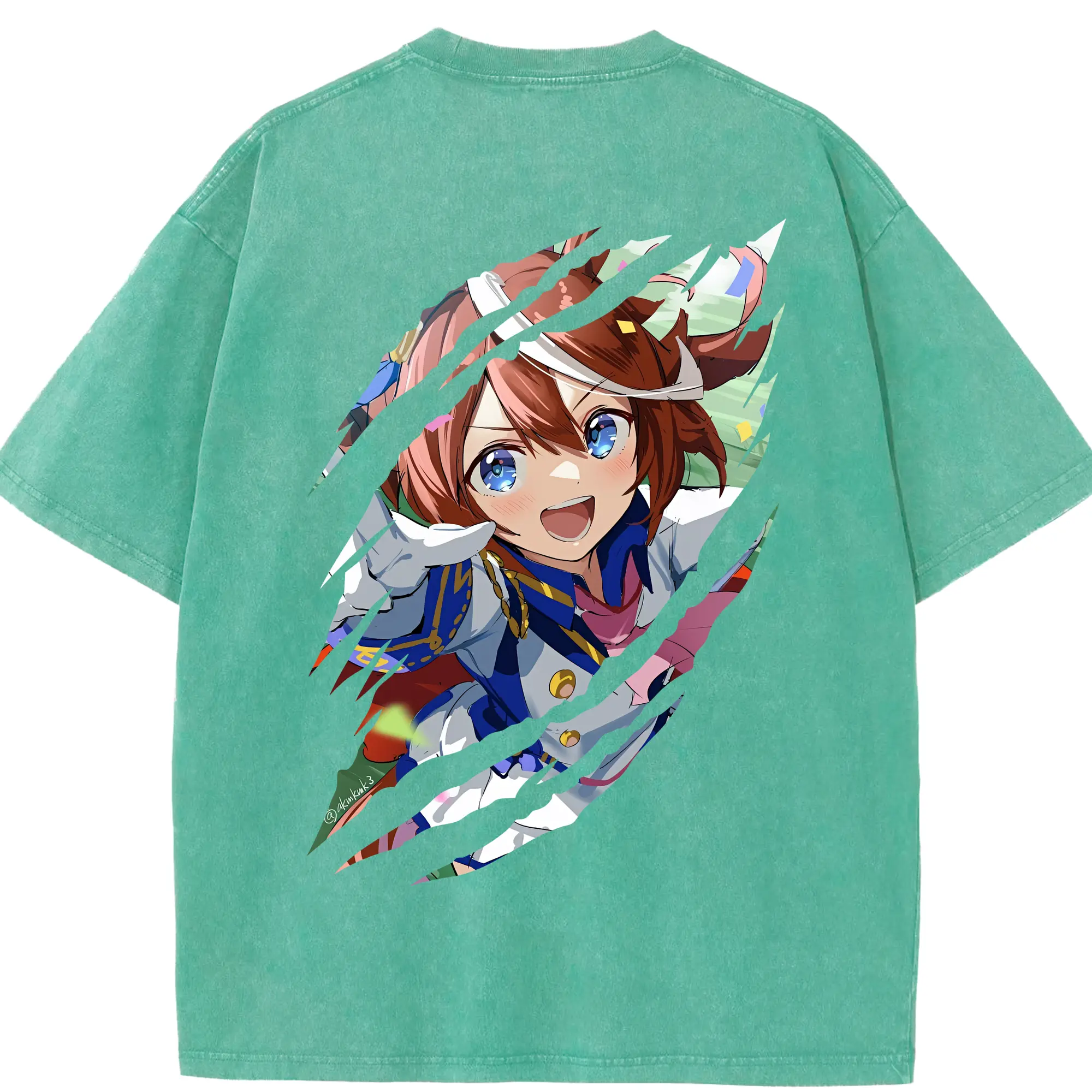 ウマ娘 プリティーダービー グッズ トウカイテイオー - 綿100% ヴィンテージ風 半袖Tシャツ ・ フロントプリント ・ 柔らか肌触り ・ 通気性 快適 ・ スポーツ カジュアル 外出用
