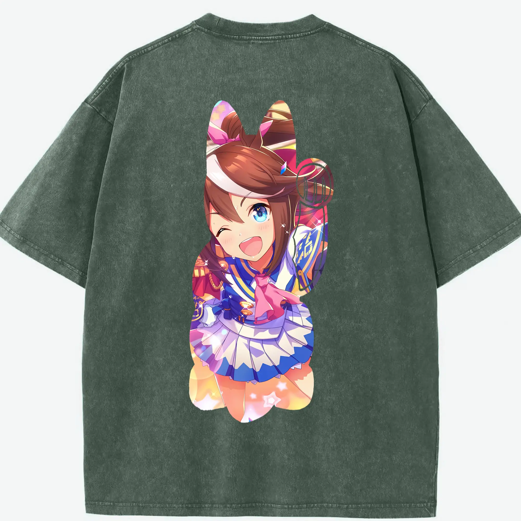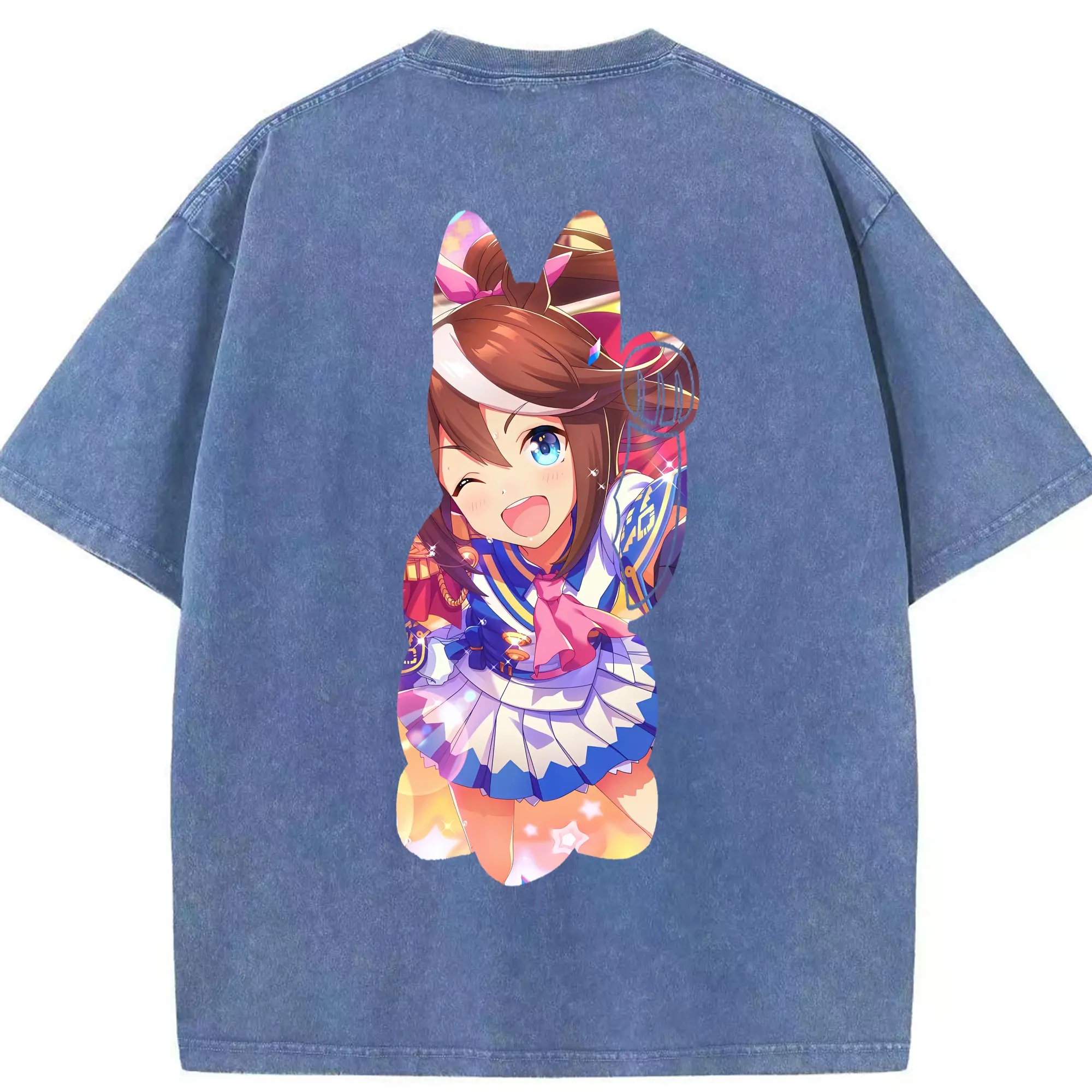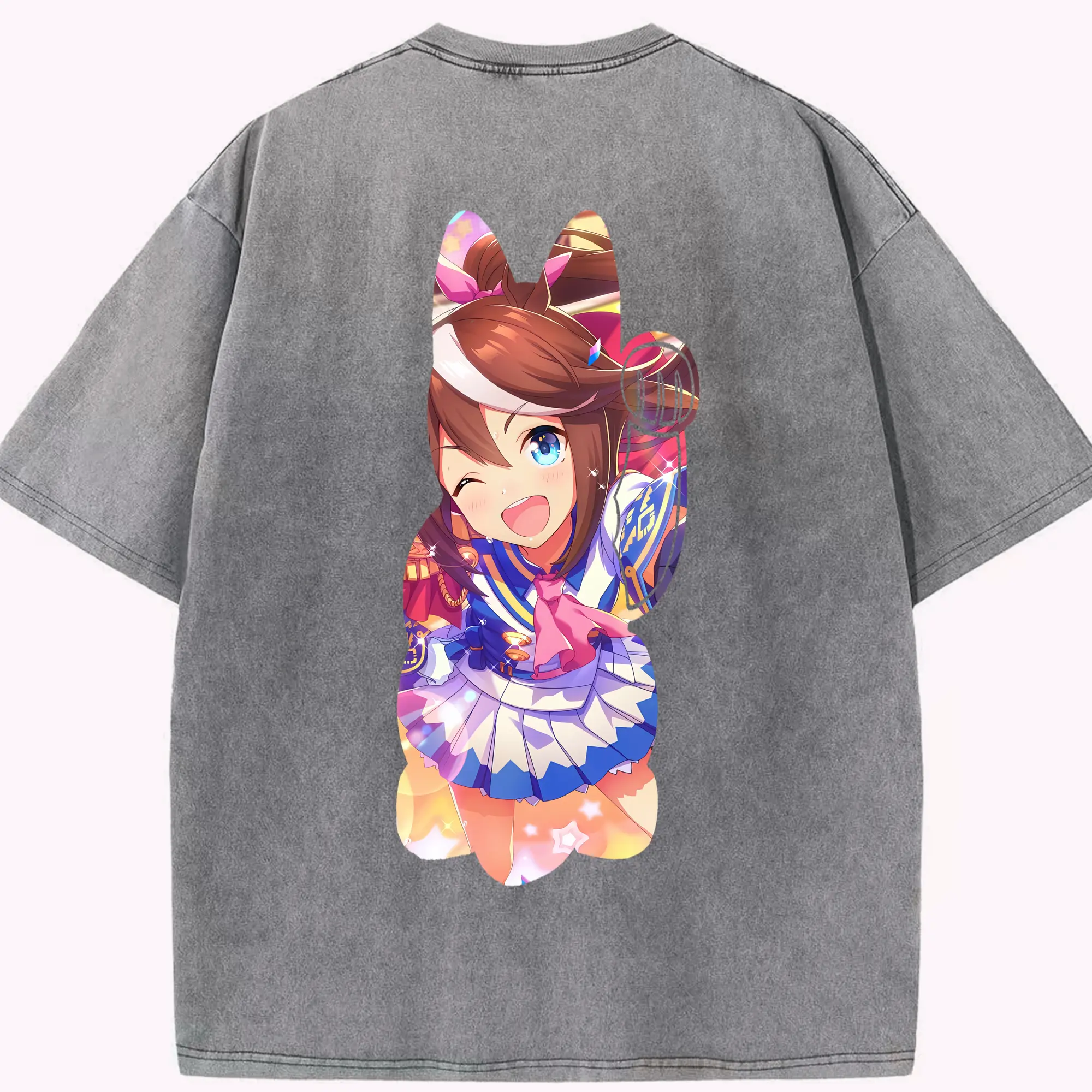 ウマ娘 プリティーダービー グッズ トウカイテイオー - 綿100% ヴィンテージ風 半袖Tシャツ ・ フロントプリント ・ 柔らか肌触り ・ 通気性 快適 ・ スポーツ カジュアル 外出用