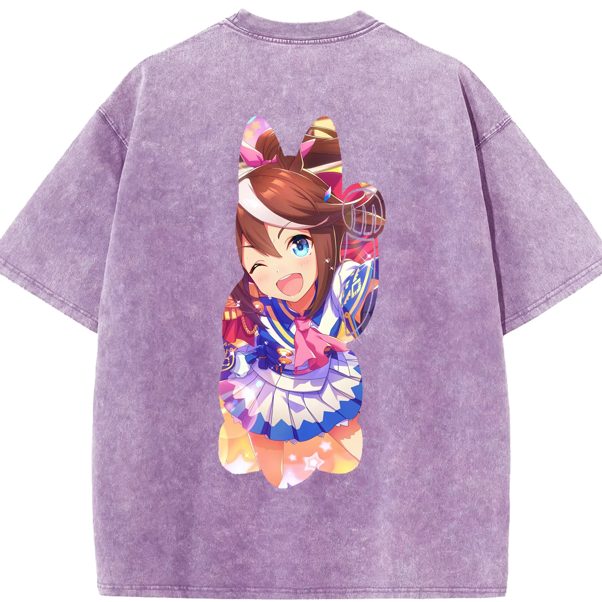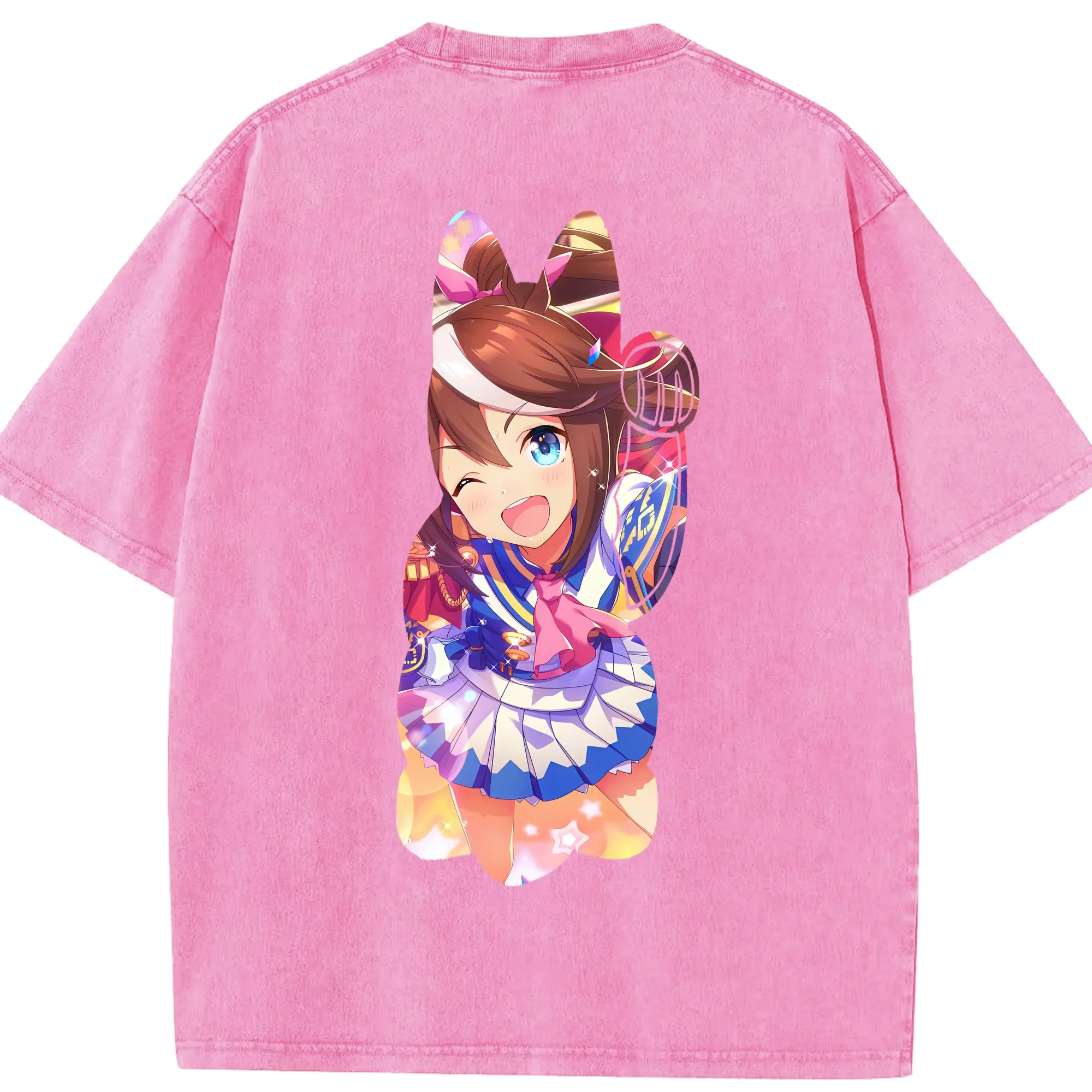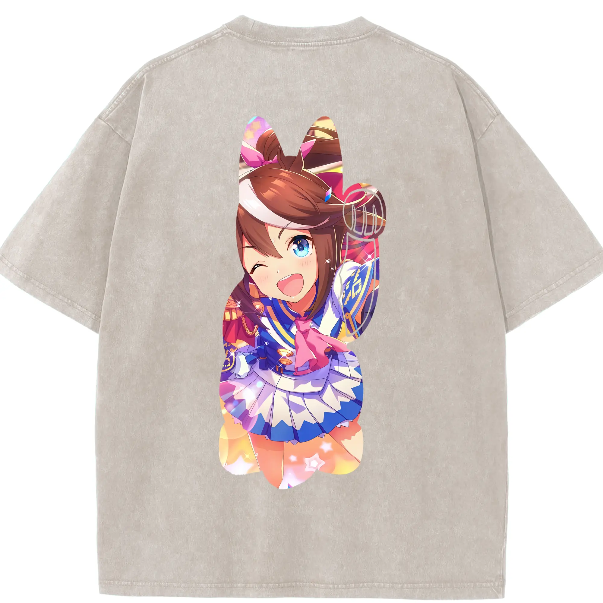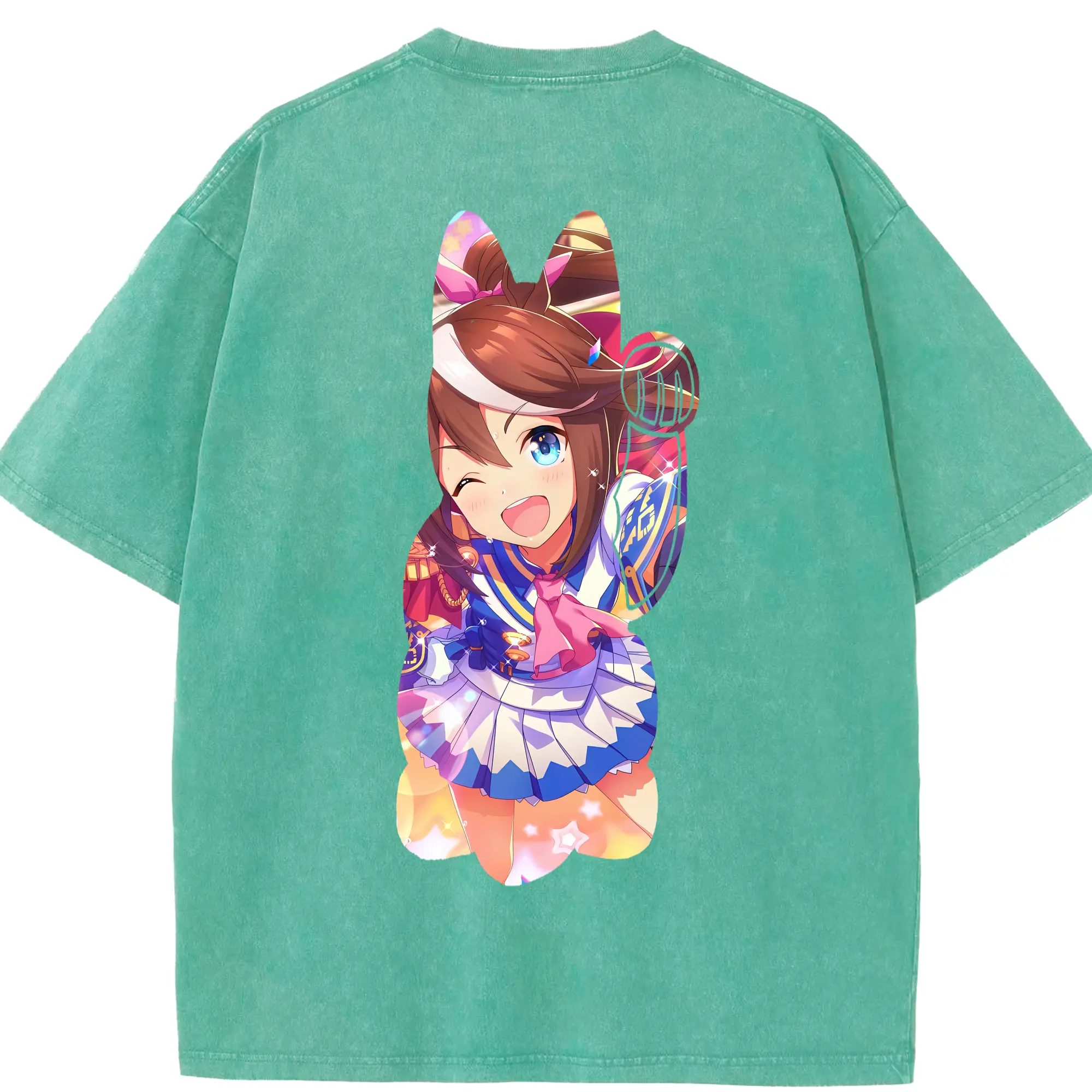 ウマ娘 プリティーダービー グッズ トウカイテイオー - 綿100% ヴィンテージ風 半袖Tシャツ ・ フロントプリント ・ 柔らか肌触り ・ 通気性 快適 ・ スポーツ カジュアル 外出用