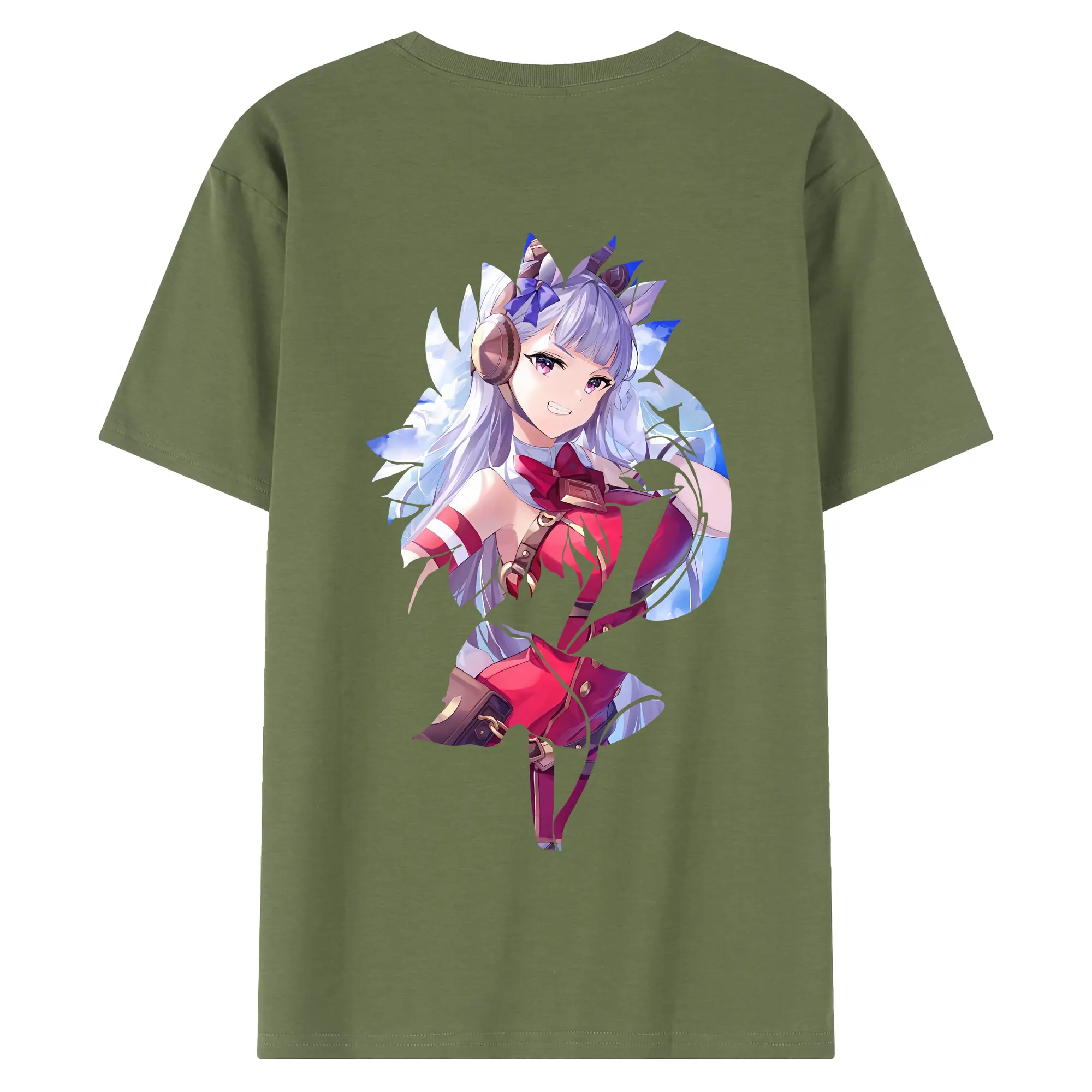 ウマ娘 プリティーダービー グッズ ゴールドシップ - 綿100% ヴィンテージ風 半袖Tシャツ ・ 背面プリント ・ 柔らか肌触り ・ 通気性 快適 ・ スポーツ カジュアル 外出用