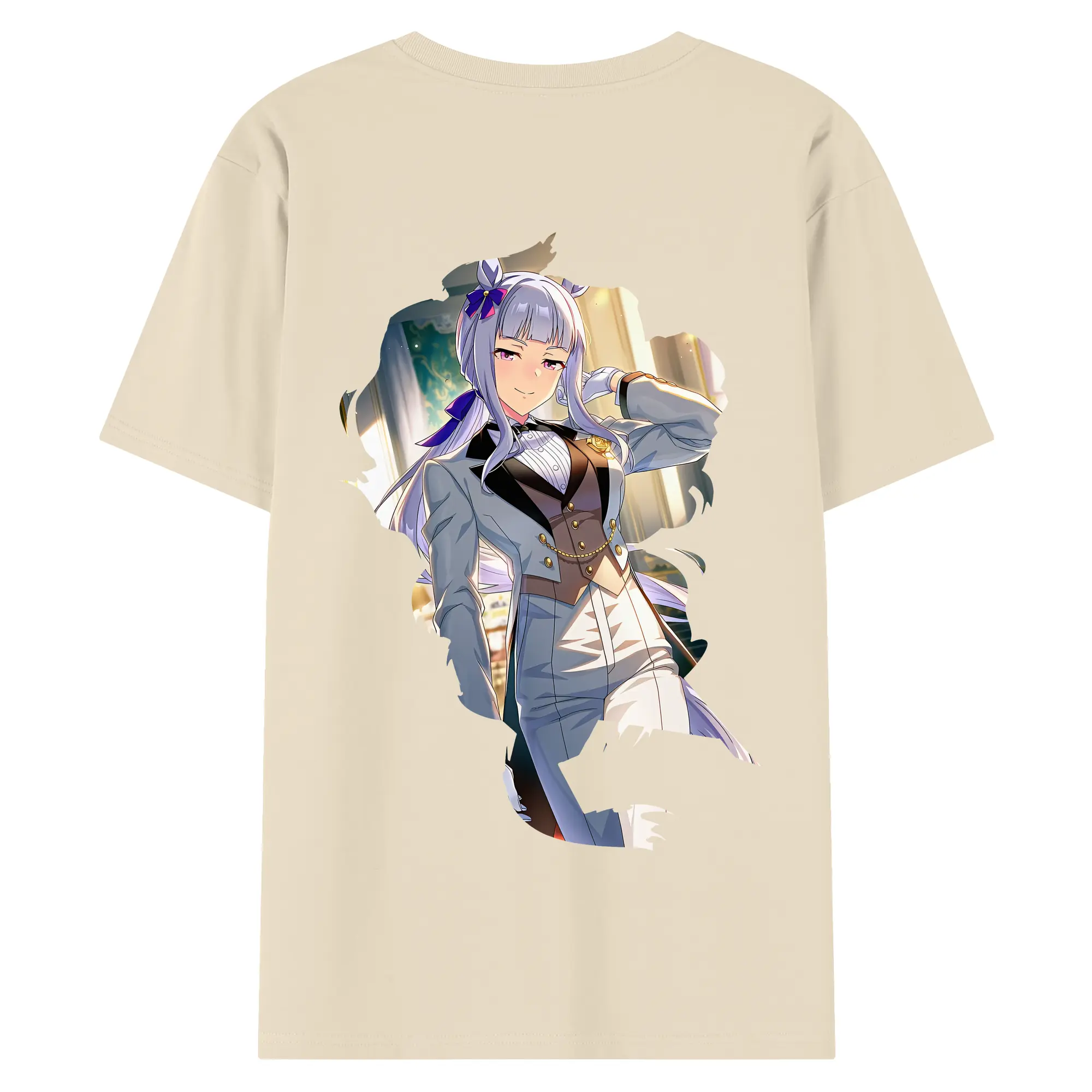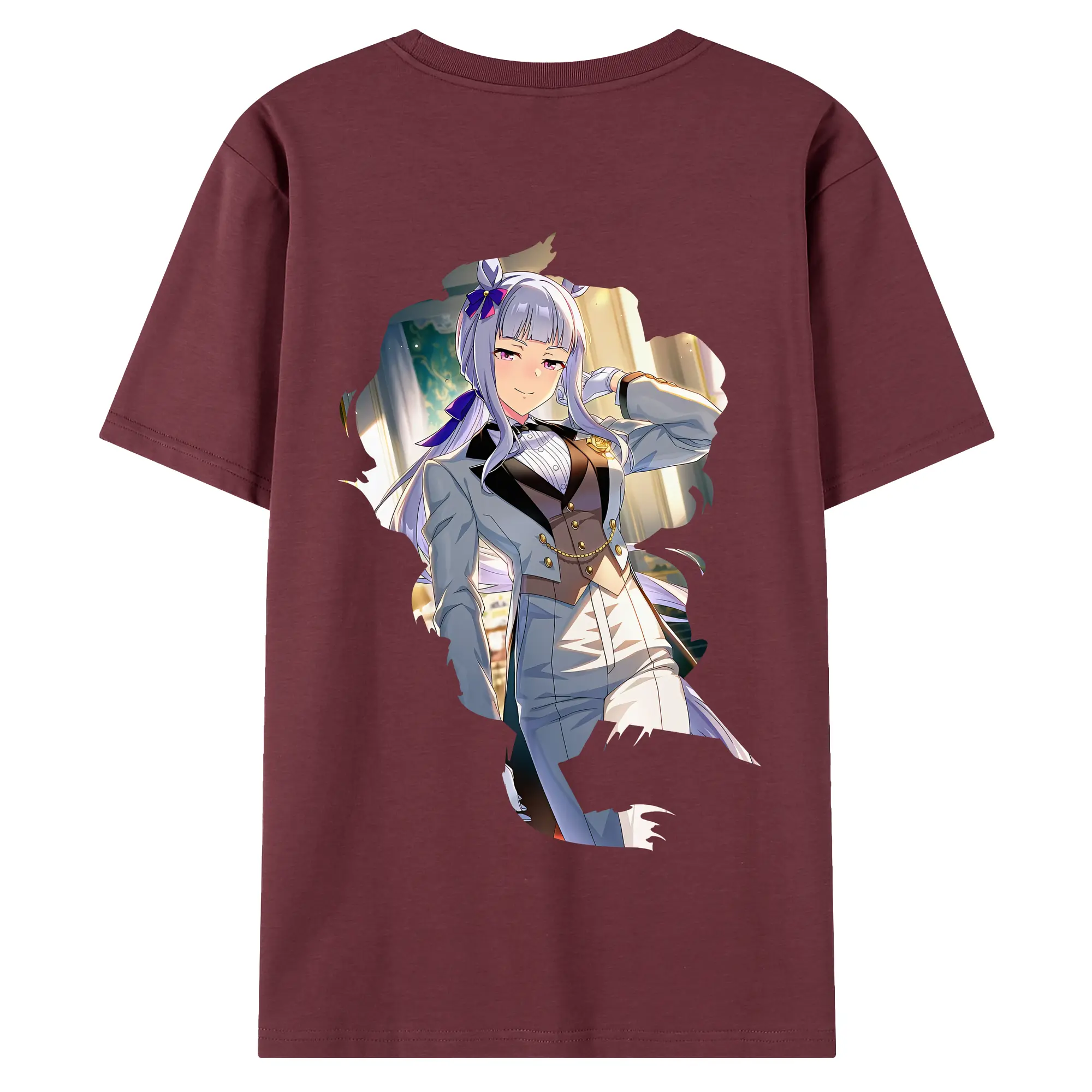 ウマ娘 プリティーダービー グッズ ゴールドシップ - 綿100% ヴィンテージ風 半袖Tシャツ ・ 背面プリント ・ 柔らか肌触り ・ 通気性 快適 ・ スポーツ カジュアル 外出用