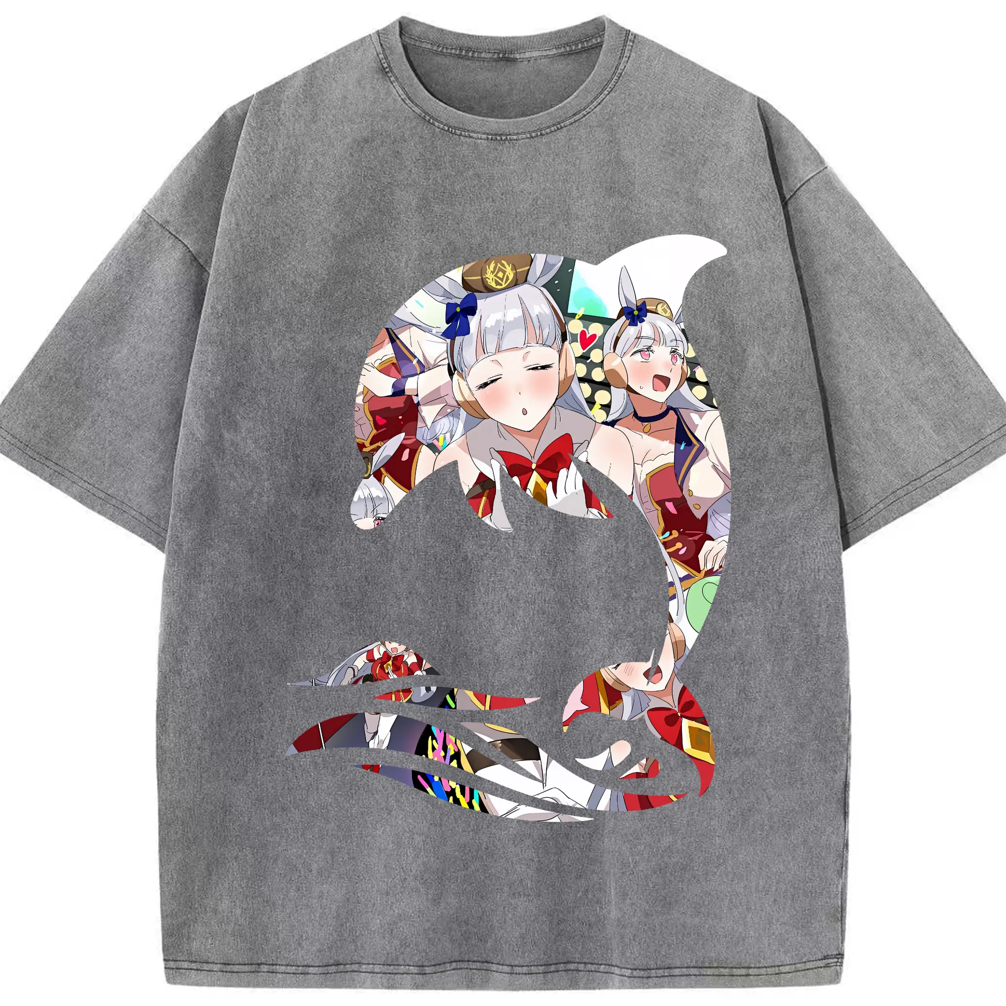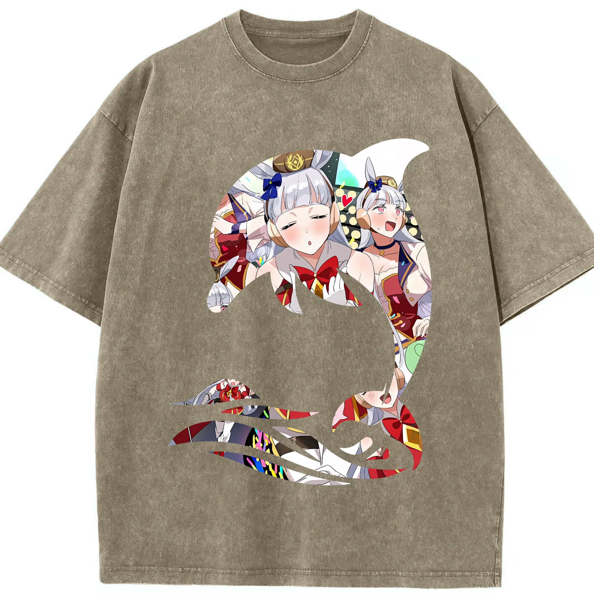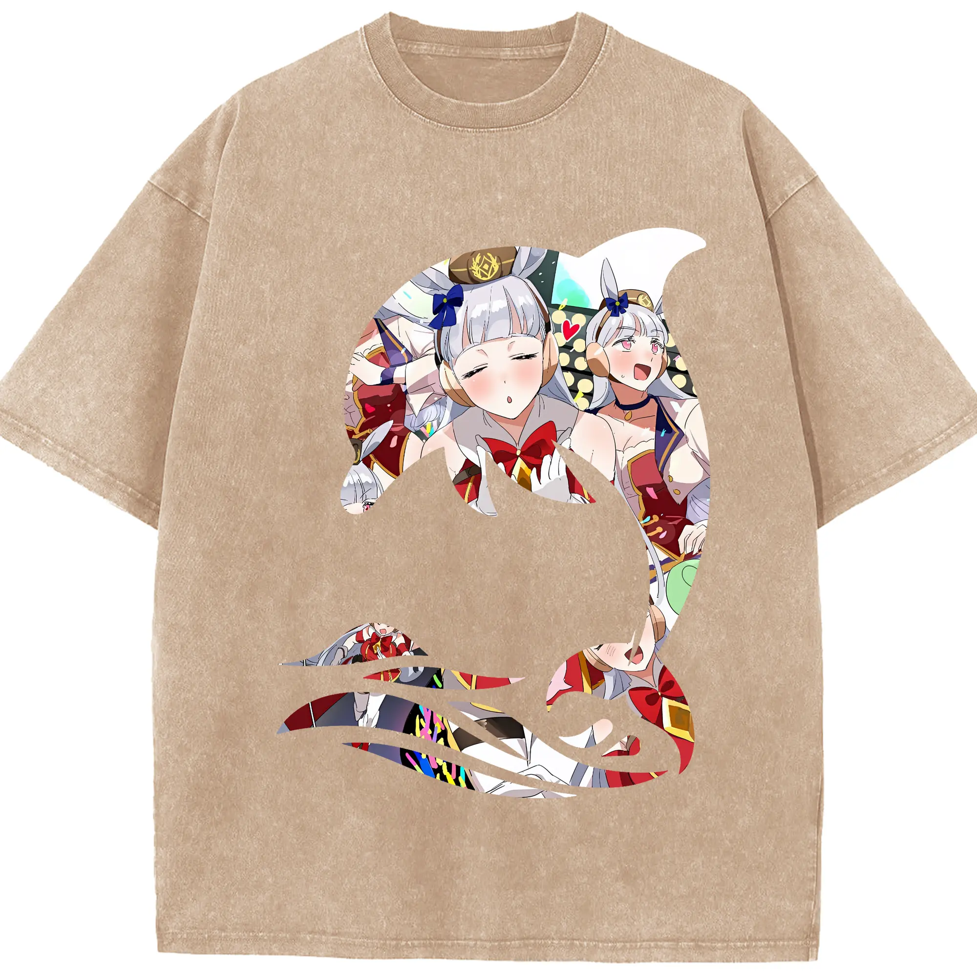 ウマ娘 プリティーダービー グッズ ゴールドシップ - 綿100% ヴィンテージ風 半袖Tシャツ ・ 背面プリント ・ 柔らか肌触り ・ 通気性 快適 ・ スポーツ カジュアル 外出用