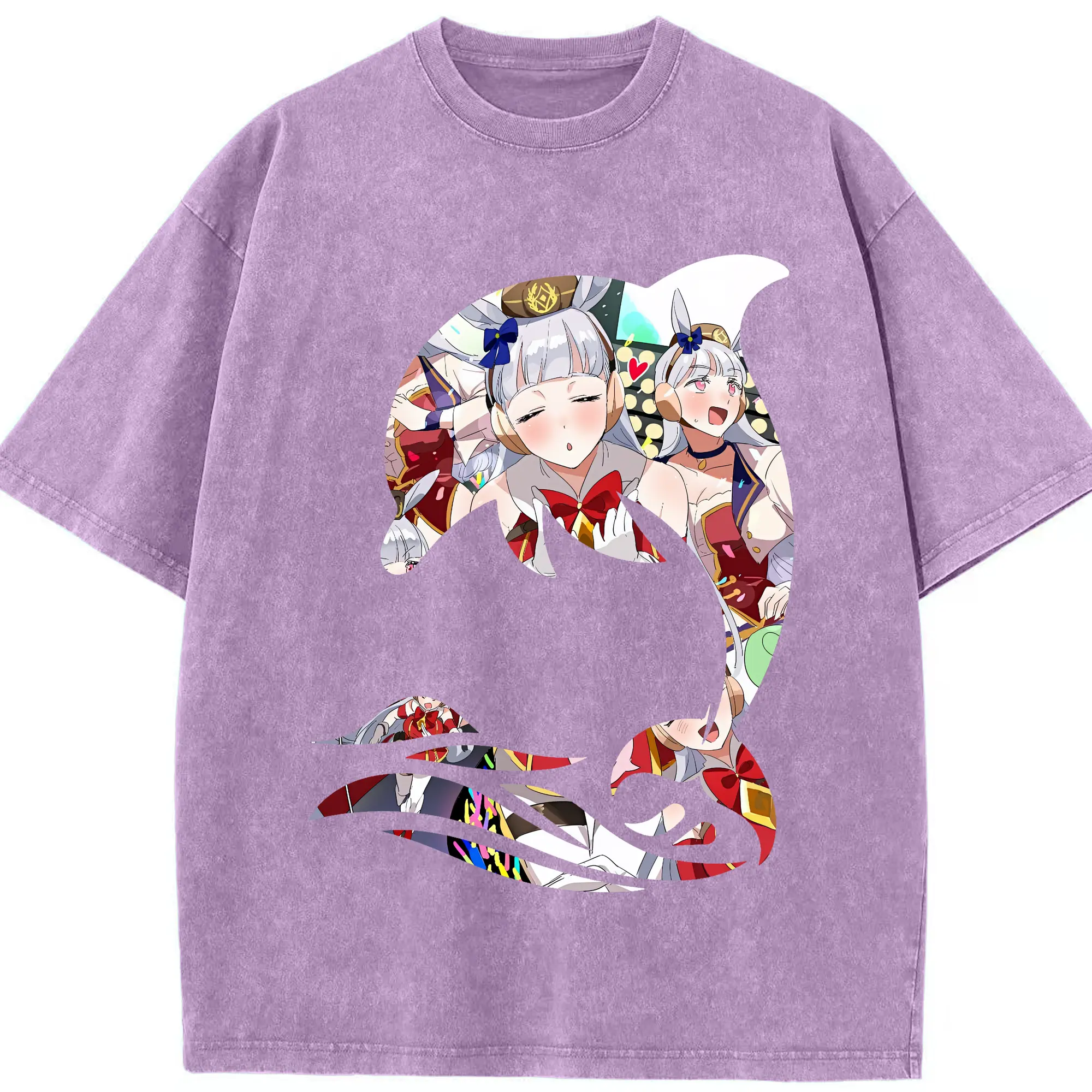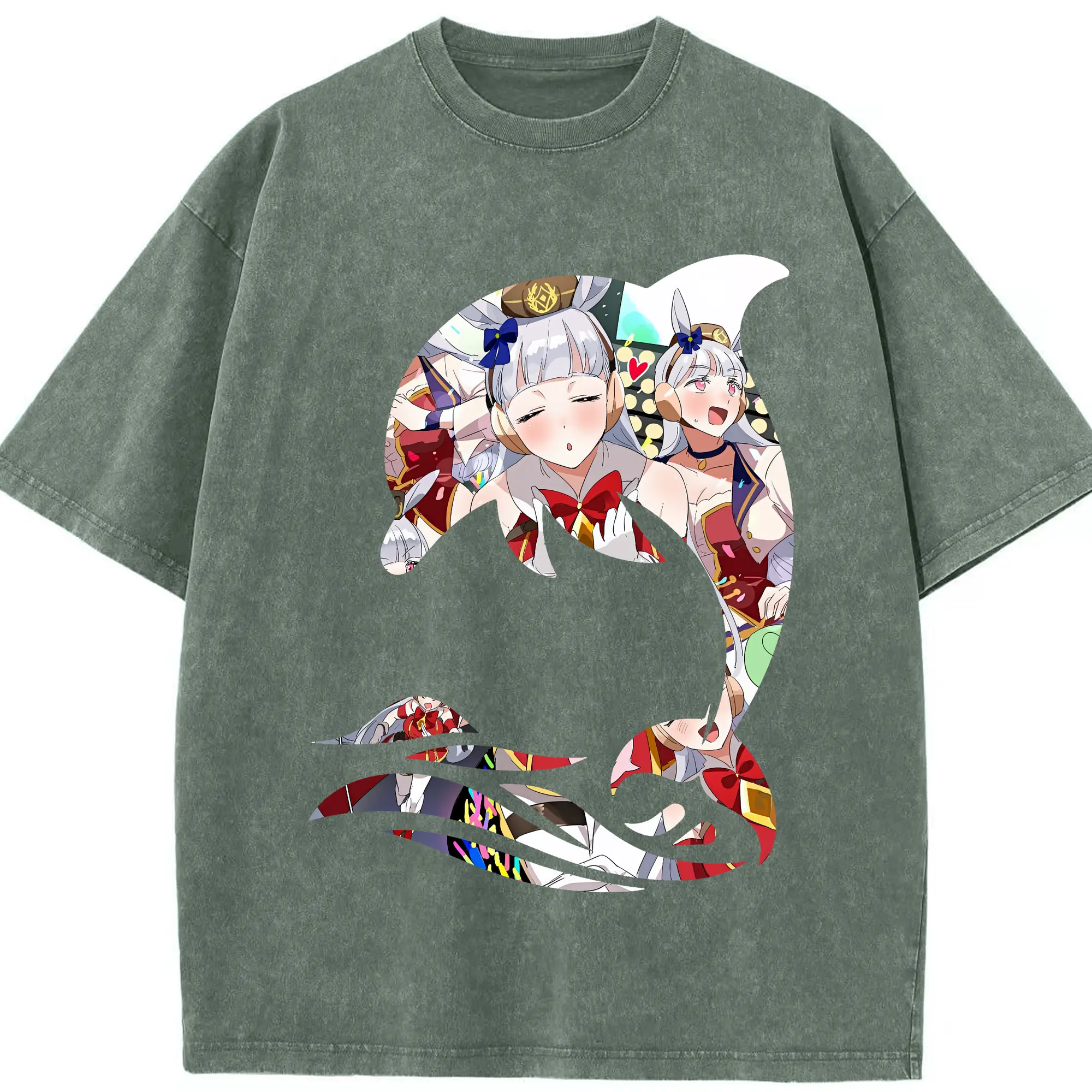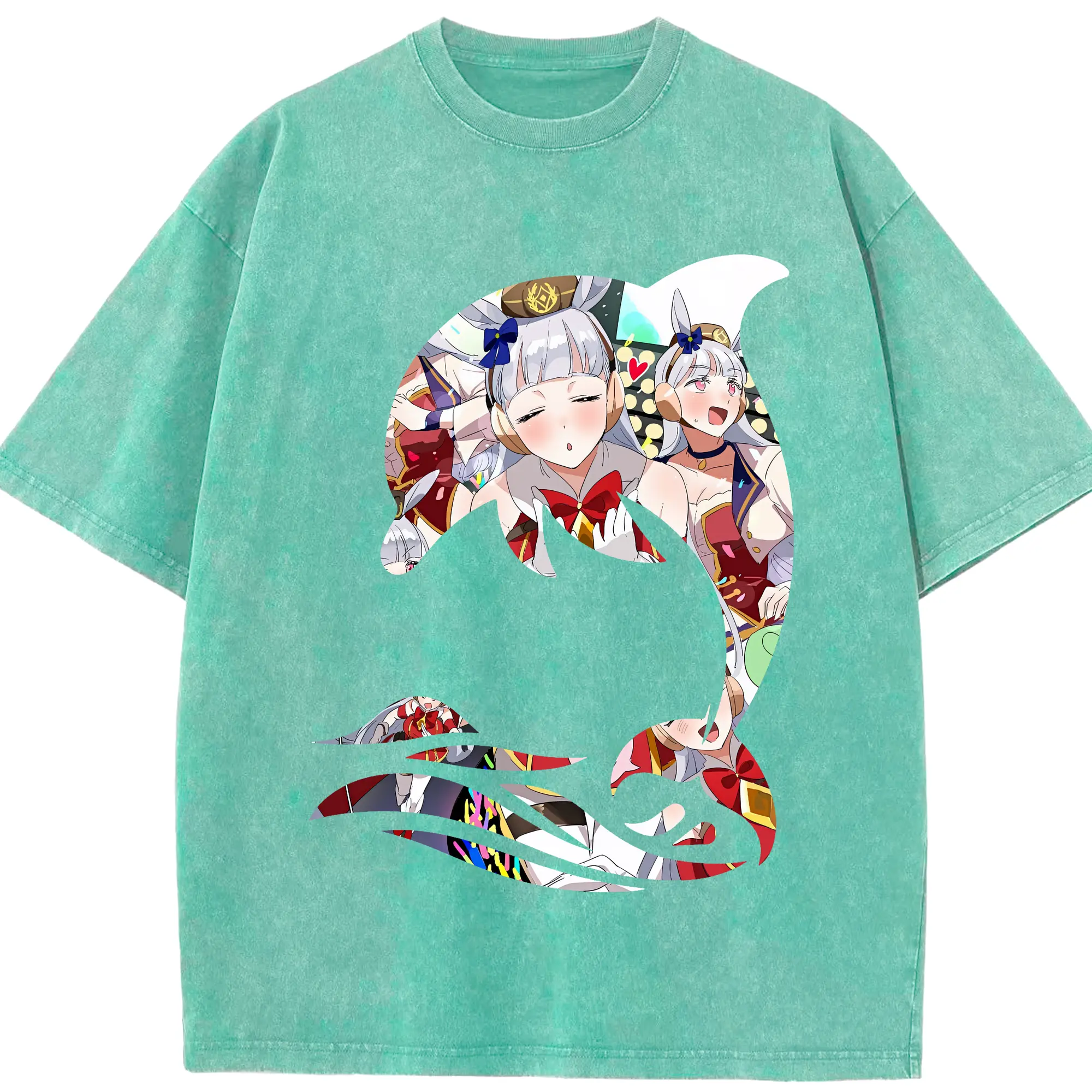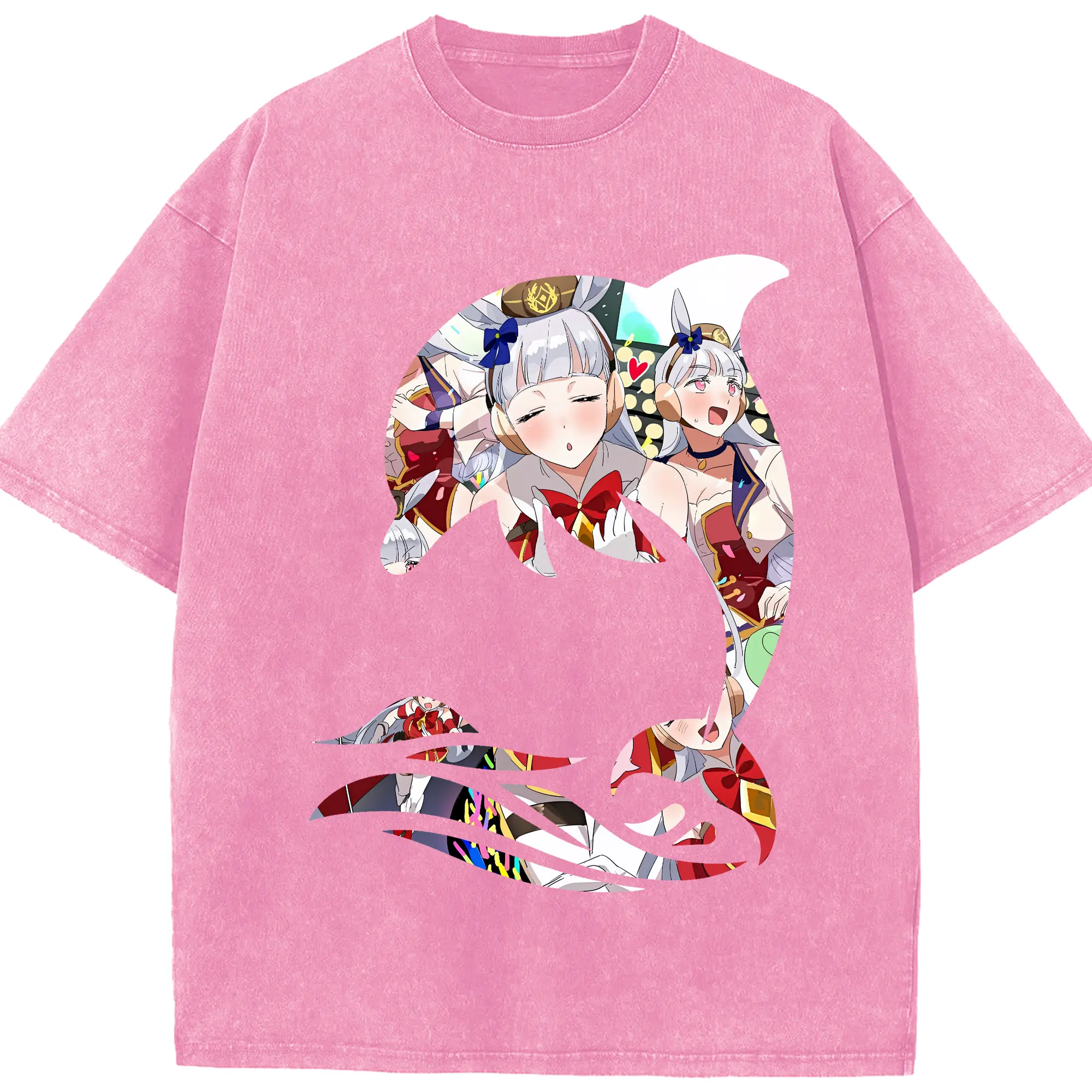 ウマ娘 プリティーダービー グッズ ゴールドシップ - 綿100% ヴィンテージ風 半袖Tシャツ ・ 背面プリント ・ 柔らか肌触り ・ 通気性 快適 ・ スポーツ カジュアル 外出用