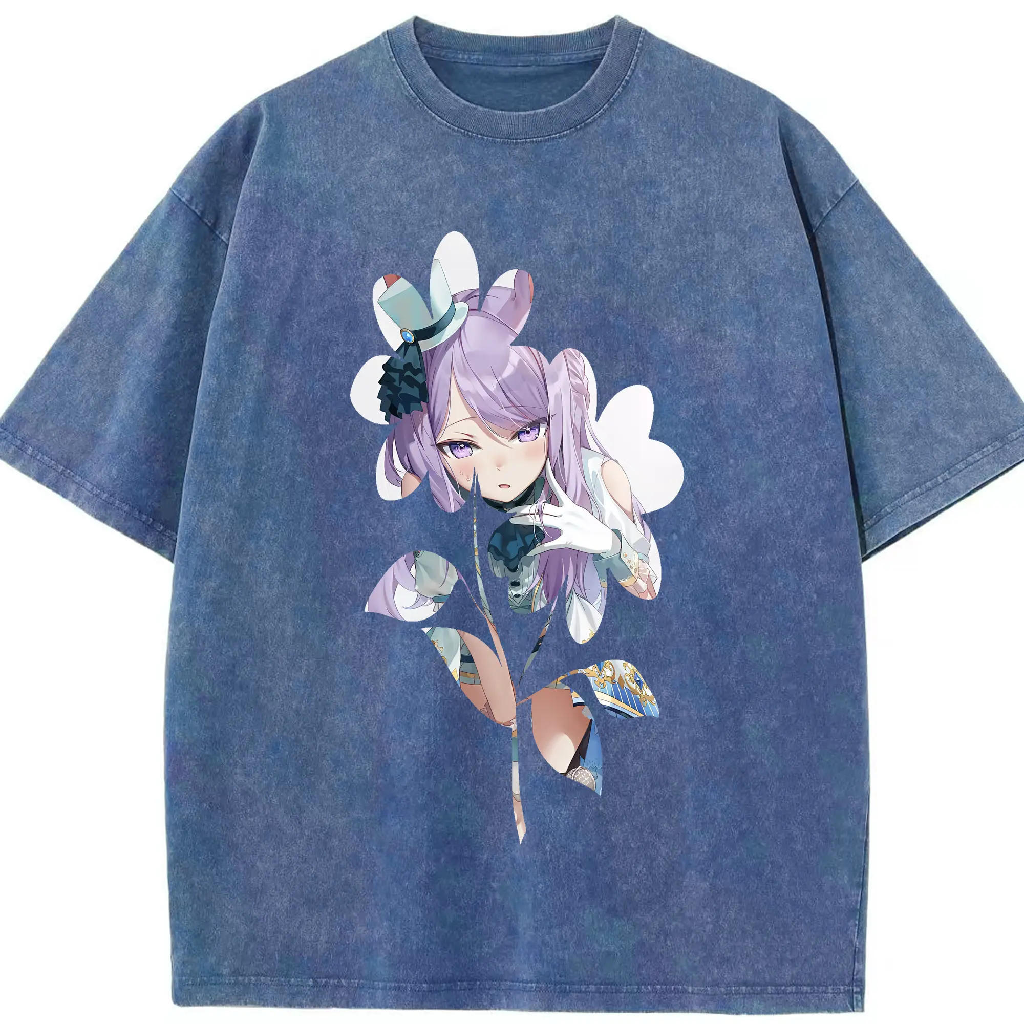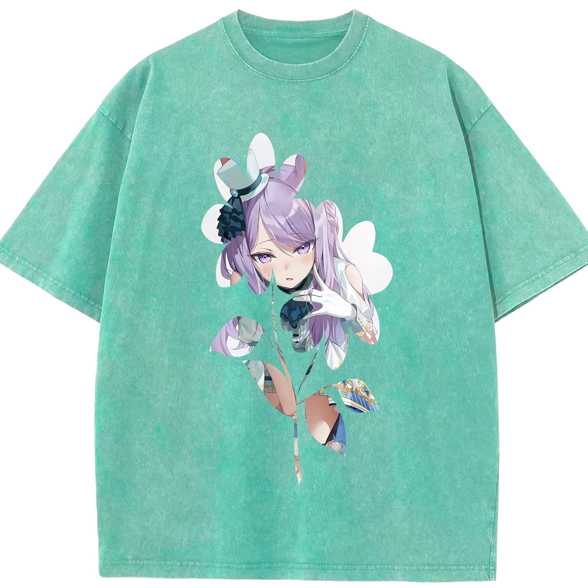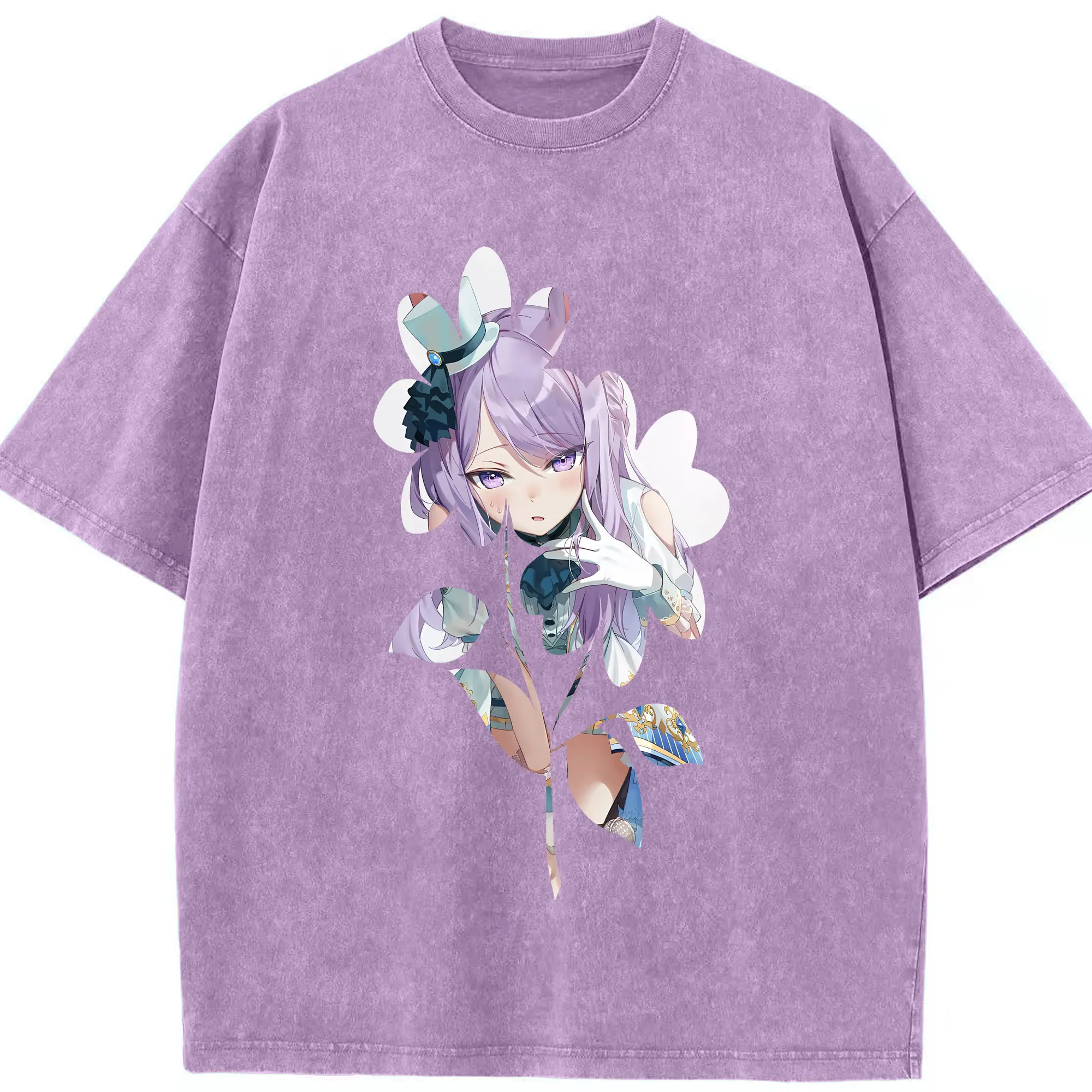 ウマ娘 プリティーダービー グッズ メジロマックイーン - 綿100% ヴィンテージ風 半袖Tシャツ ・ 背面プリント ・ 柔らか肌触り ・ 通気性 快適 ・ スポーツ カジュアル 外出用