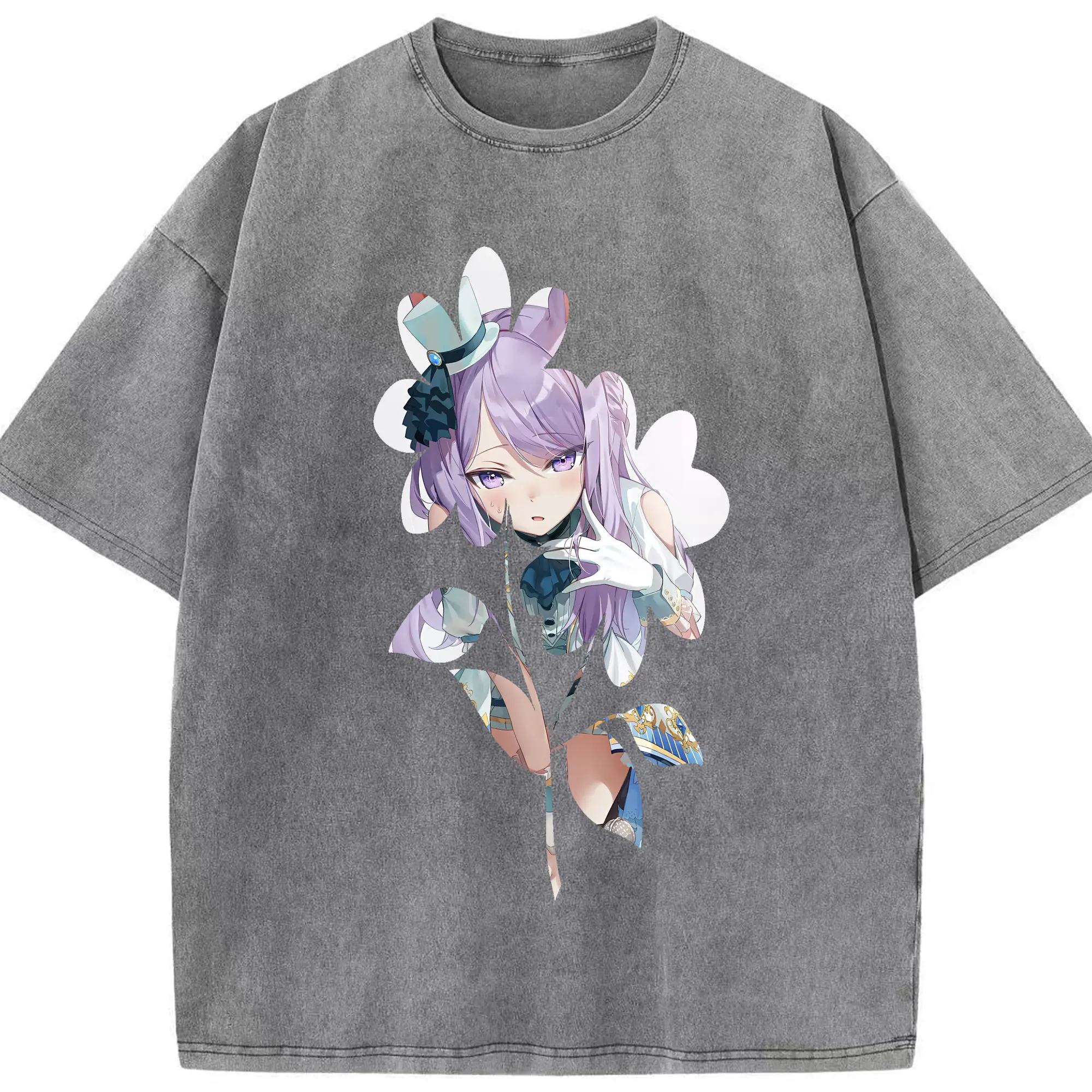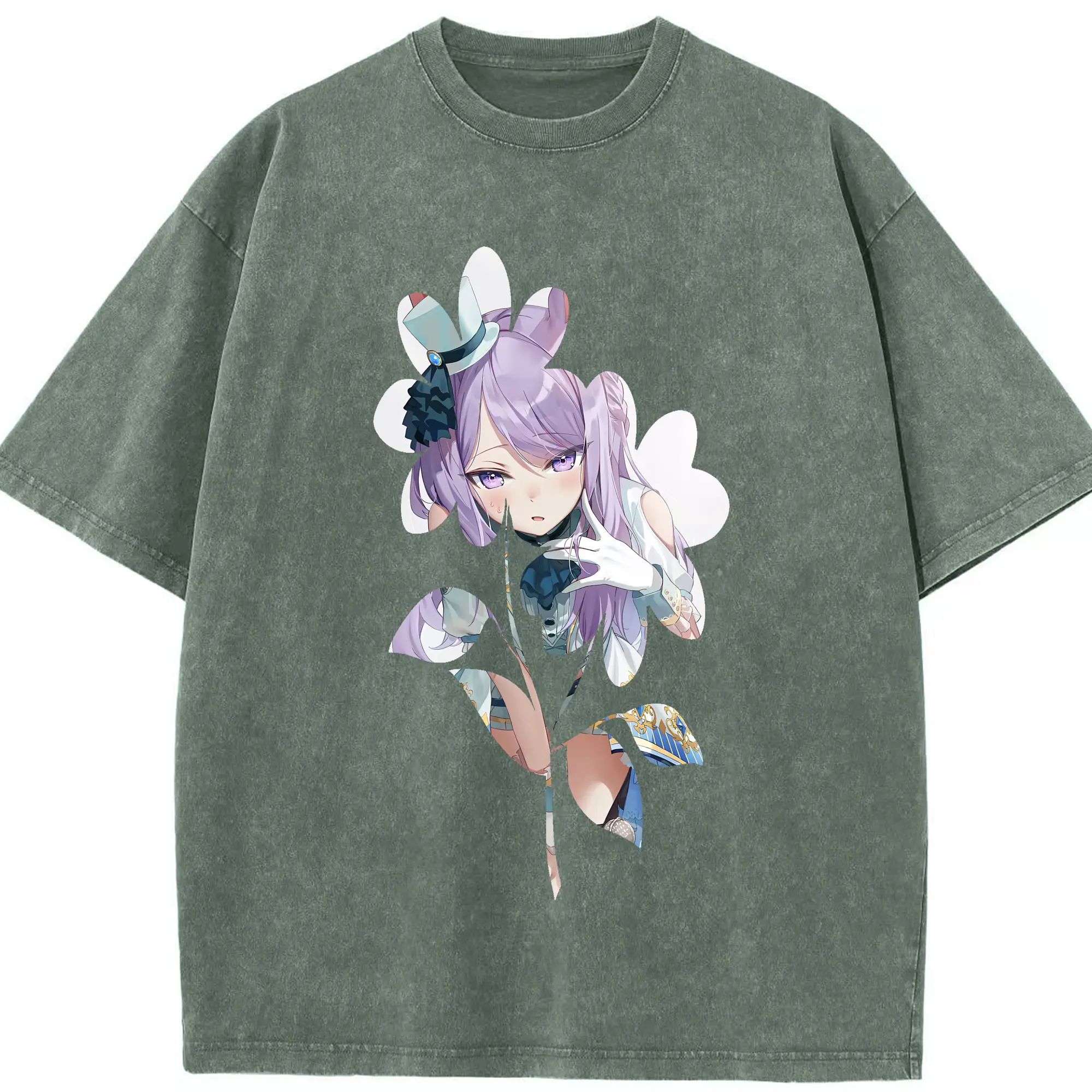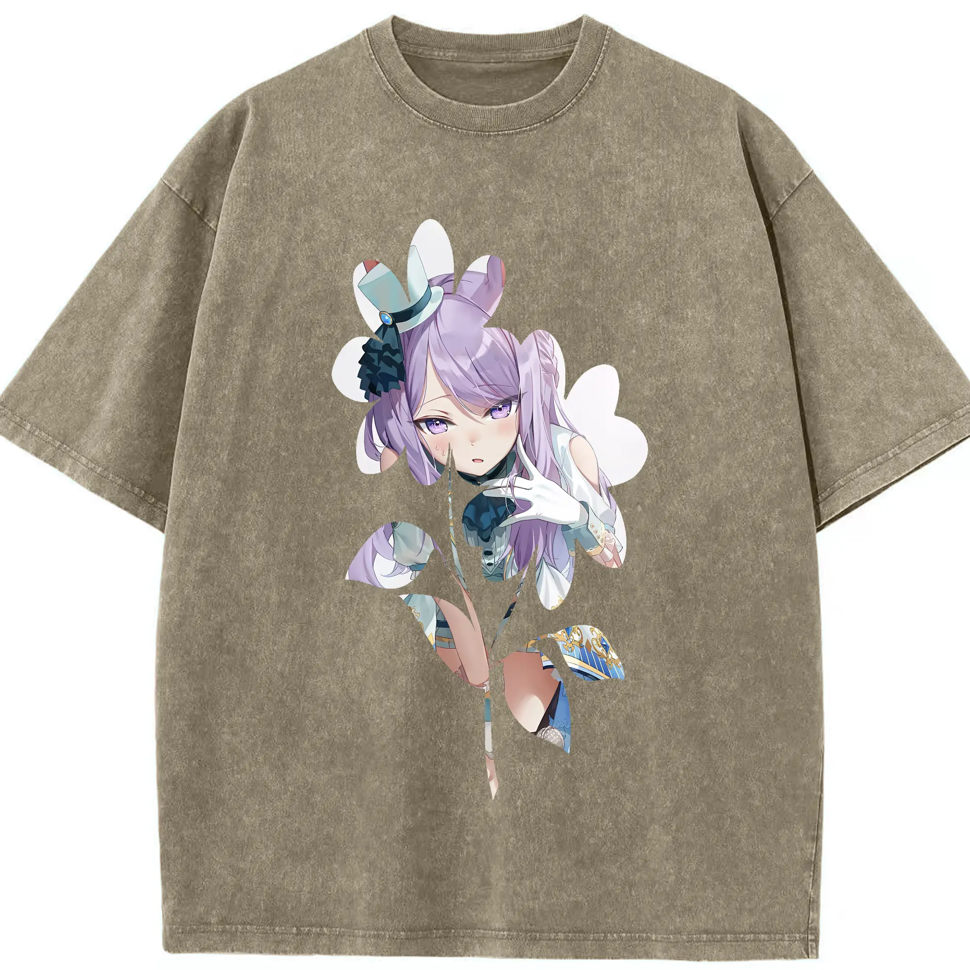 ウマ娘 プリティーダービー グッズ メジロマックイーン - 綿100% ヴィンテージ風 半袖Tシャツ ・ 背面プリント ・ 柔らか肌触り ・ 通気性 快適 ・ スポーツ カジュアル 外出用