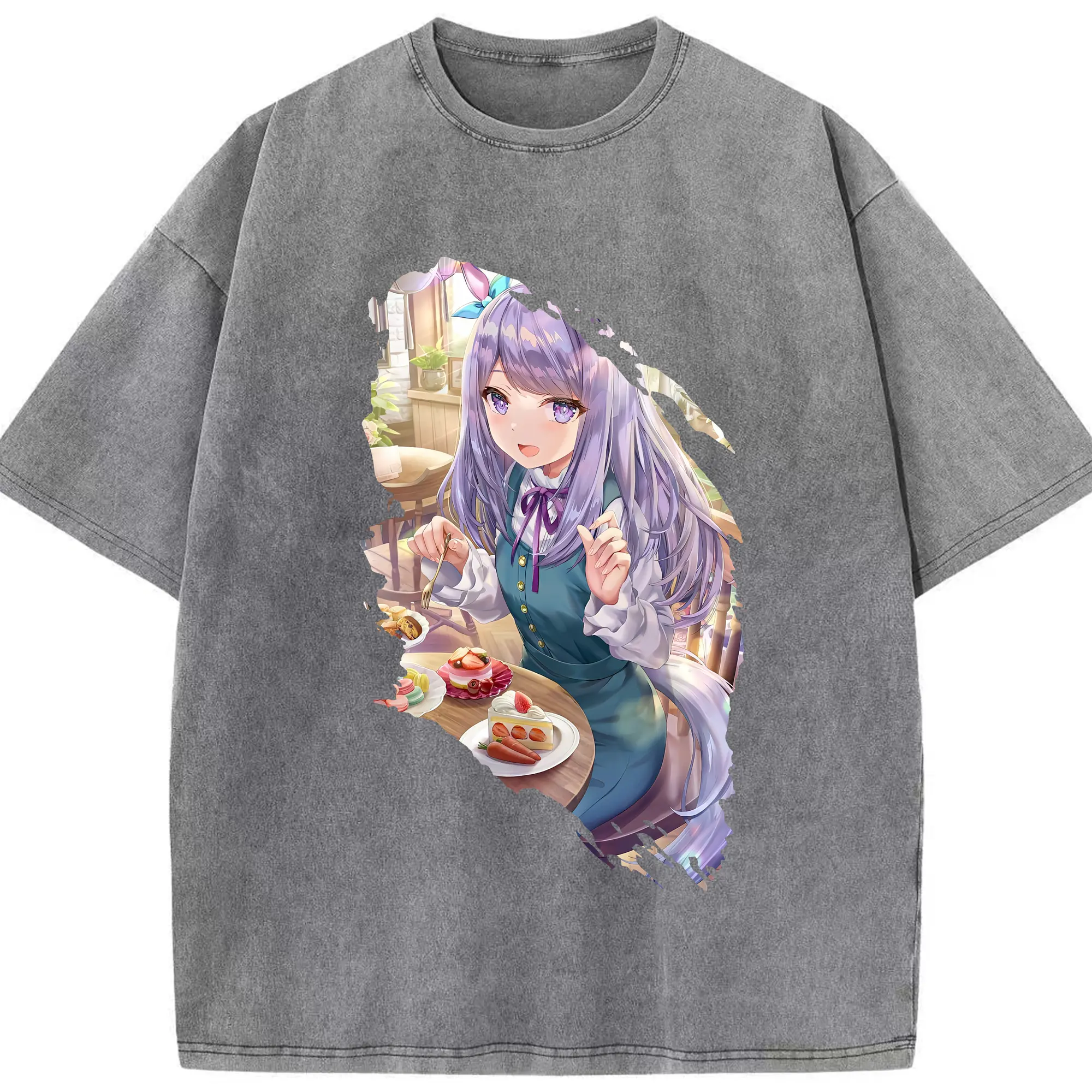 原 神 グッズ フリーナ - 綿100% ヴィンテージ風 半袖Tシャツ ・ フロントプリント ・ 柔らか肌触り ・ 通気性 快適 ・ スポーツ カジュアル 外出用