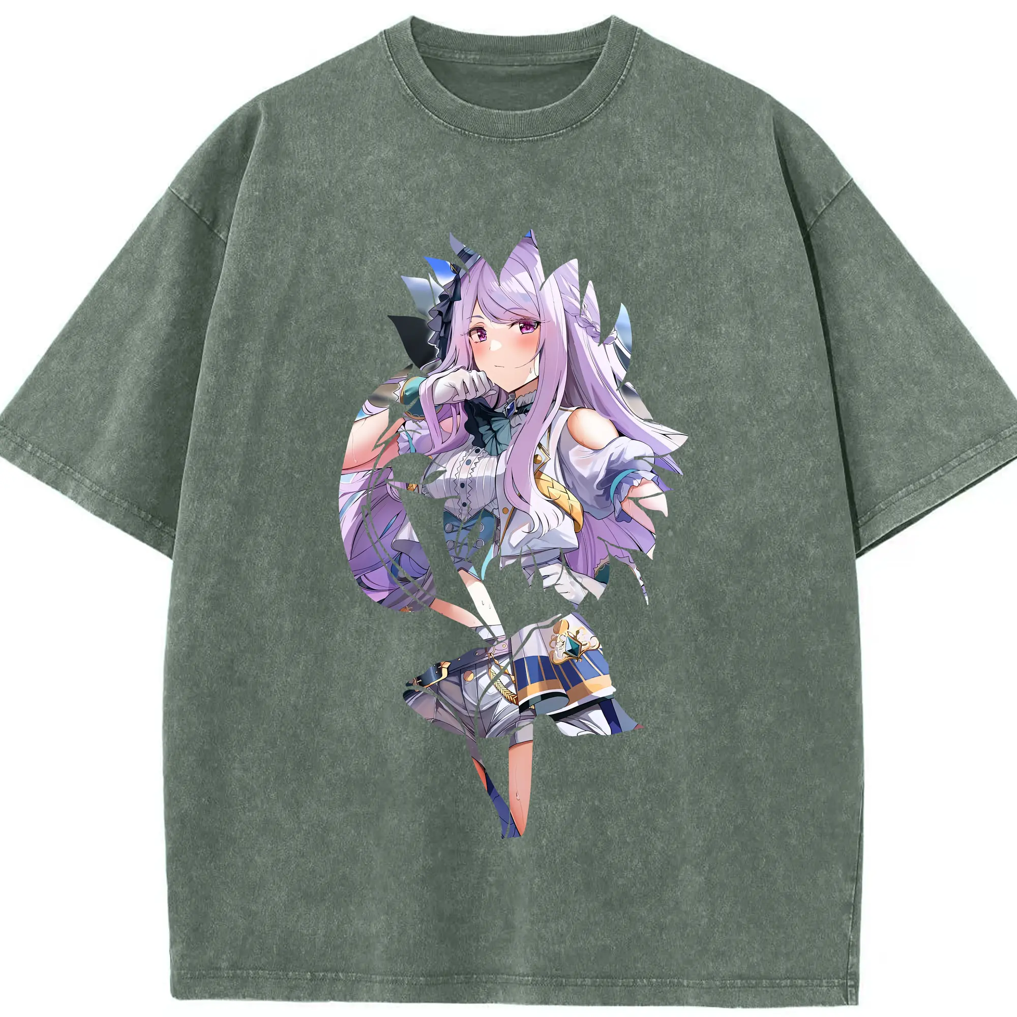 ウマ娘 プリティーダービー グッズ メジロマックイーン - 綿100% ヴィンテージ風 半袖Tシャツ ・ 背面プリント ・ 柔らか肌触り ・ 通気性 快適 ・ スポーツ カジュアル 外出用