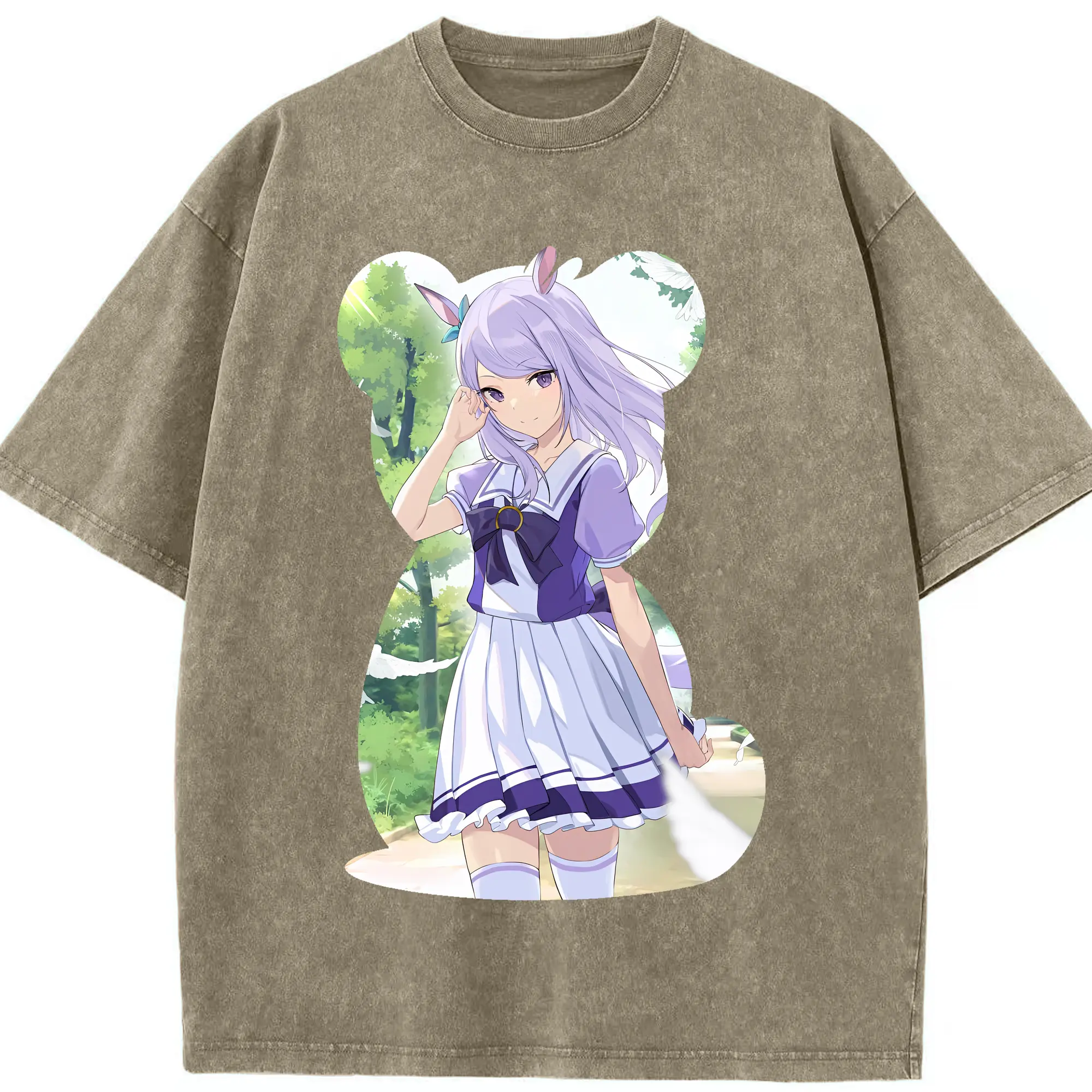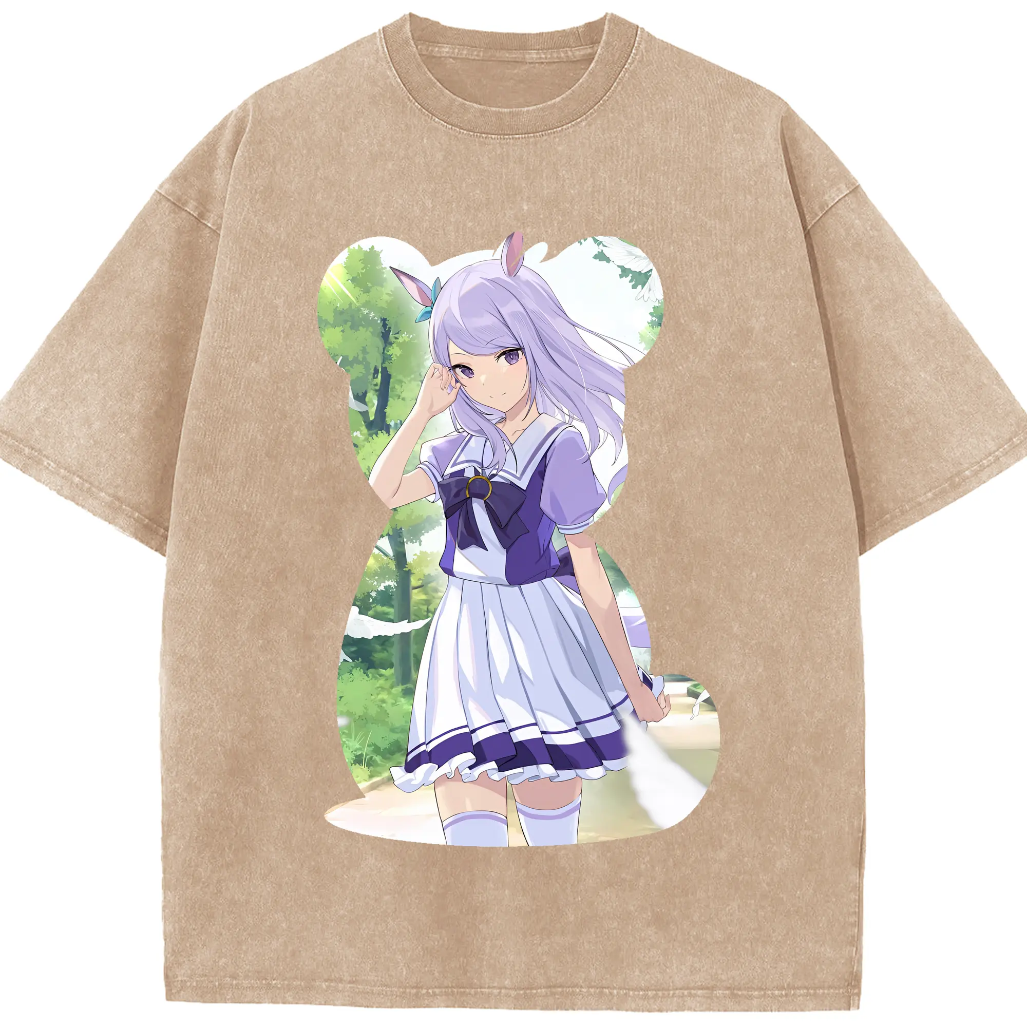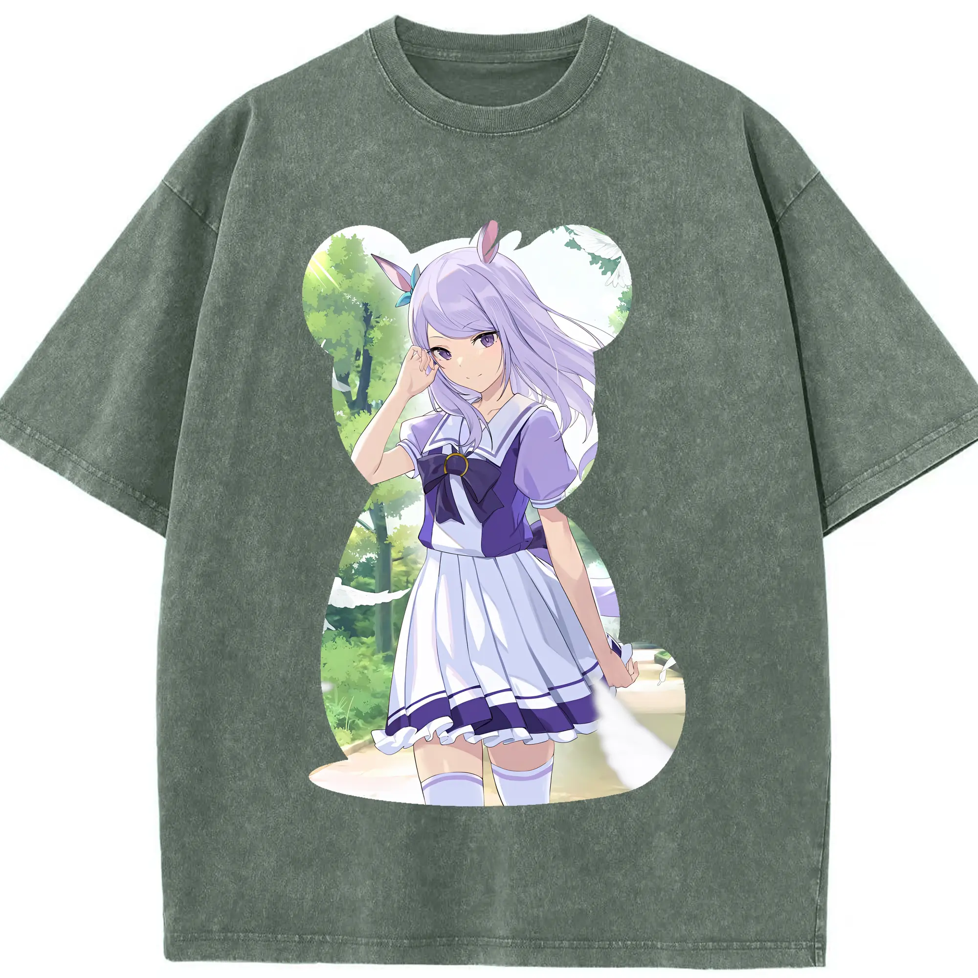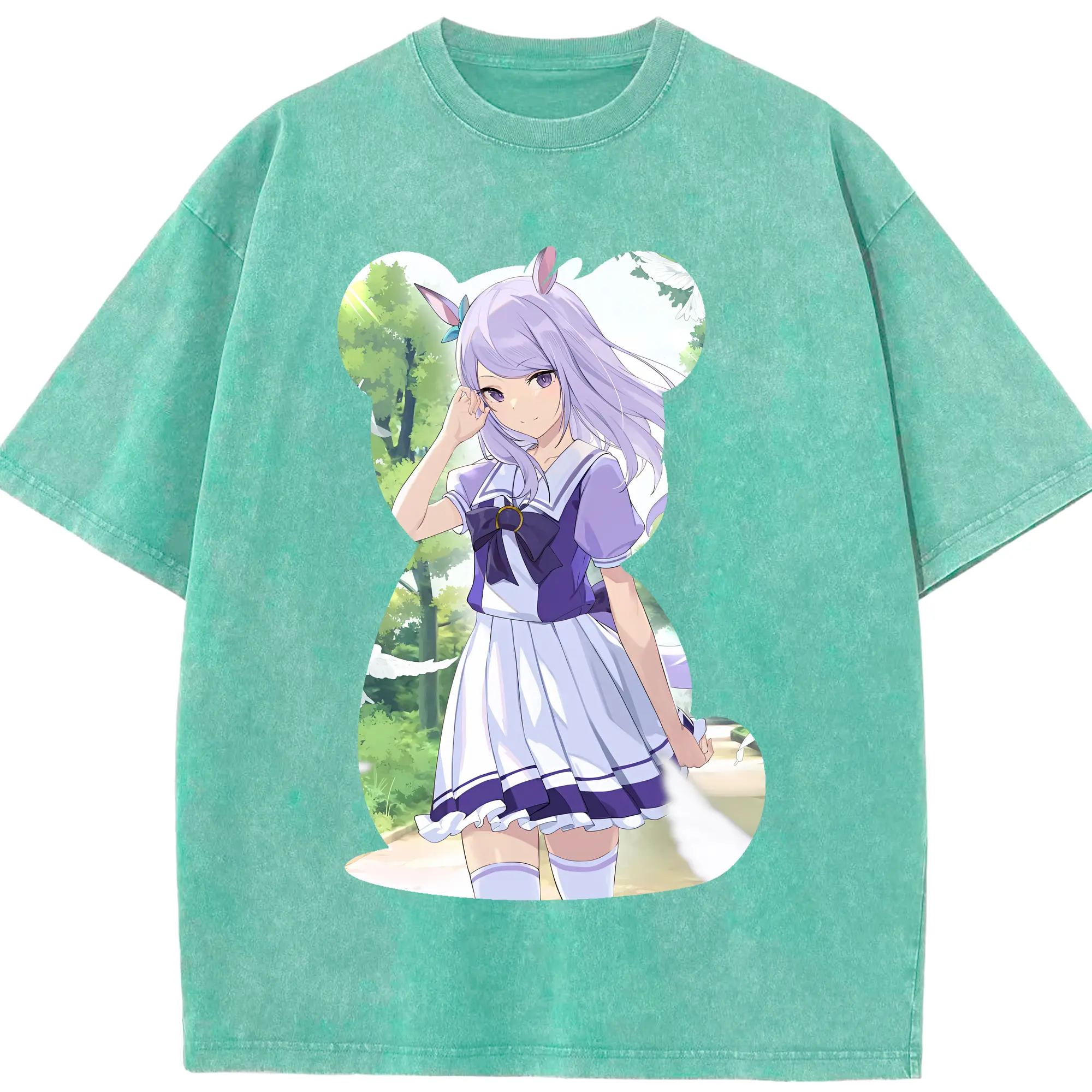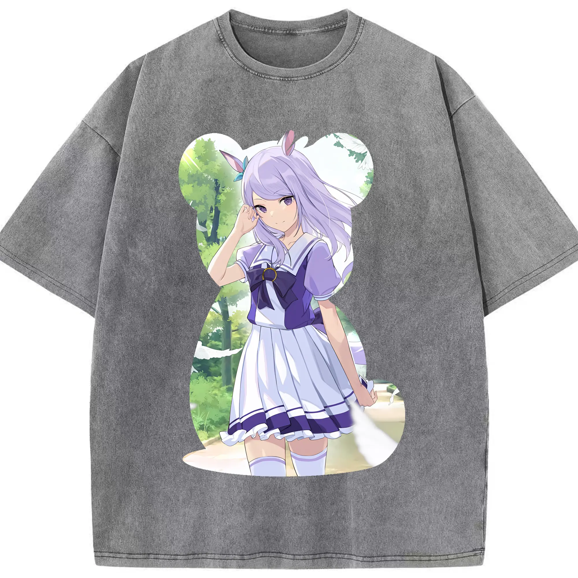 ウマ娘 プリティーダービー グッズ メジロマックイーン - 綿100% ヴィンテージ風 半袖Tシャツ ・ 背面プリント ・ 柔らか肌触り ・ 通気性 快適 ・ スポーツ カジュアル 外出用