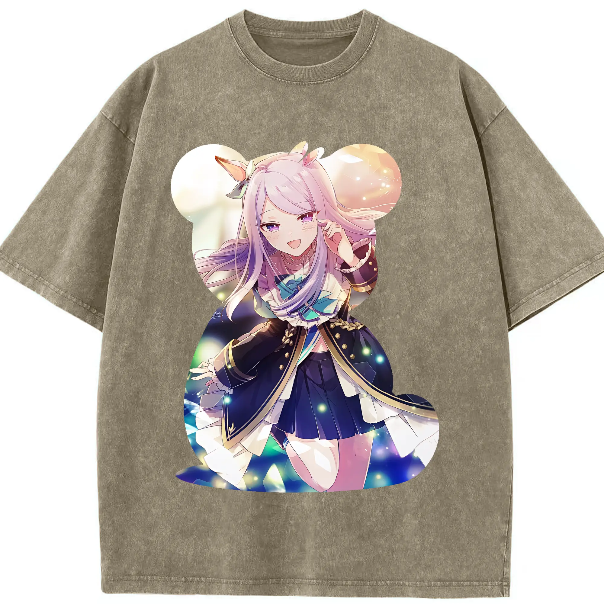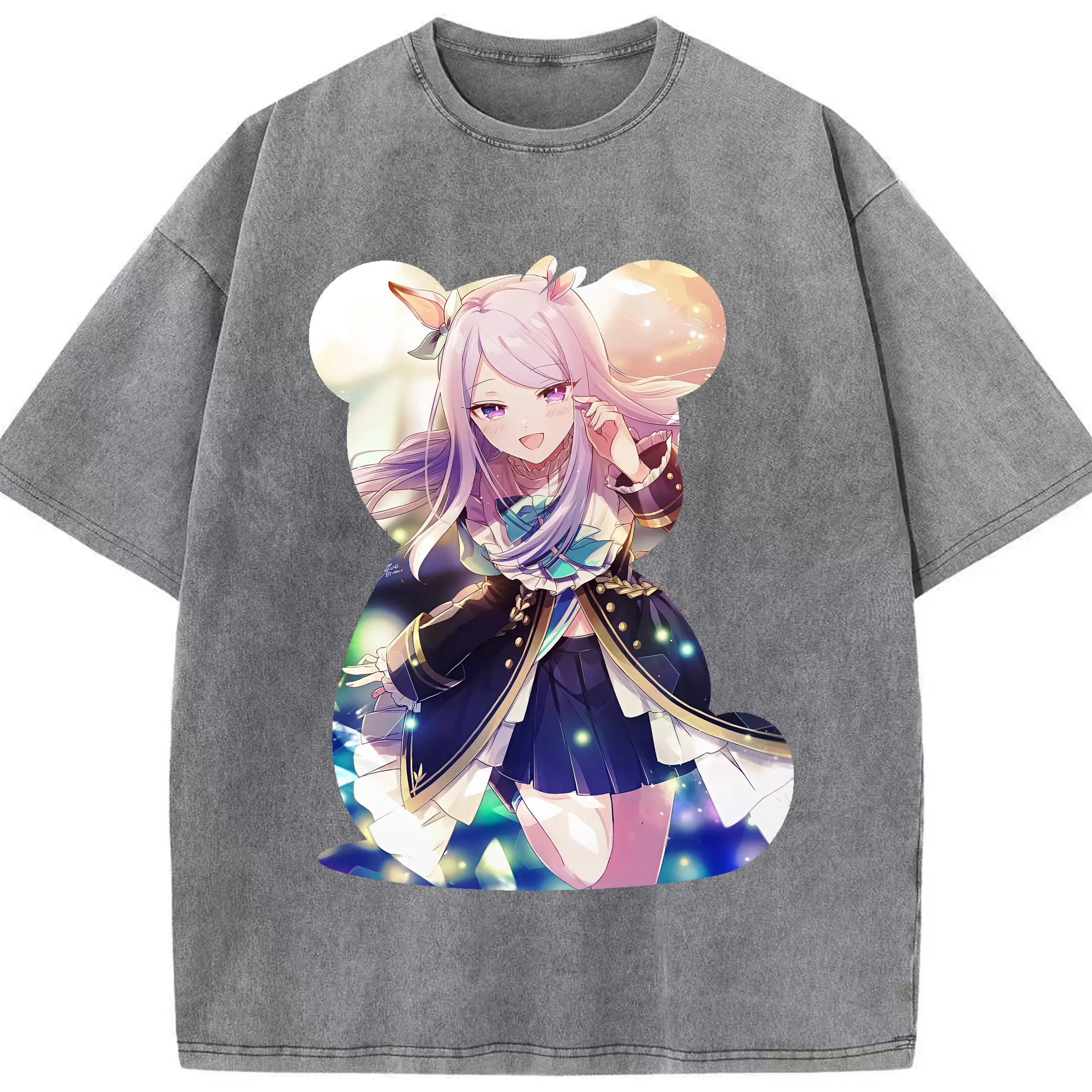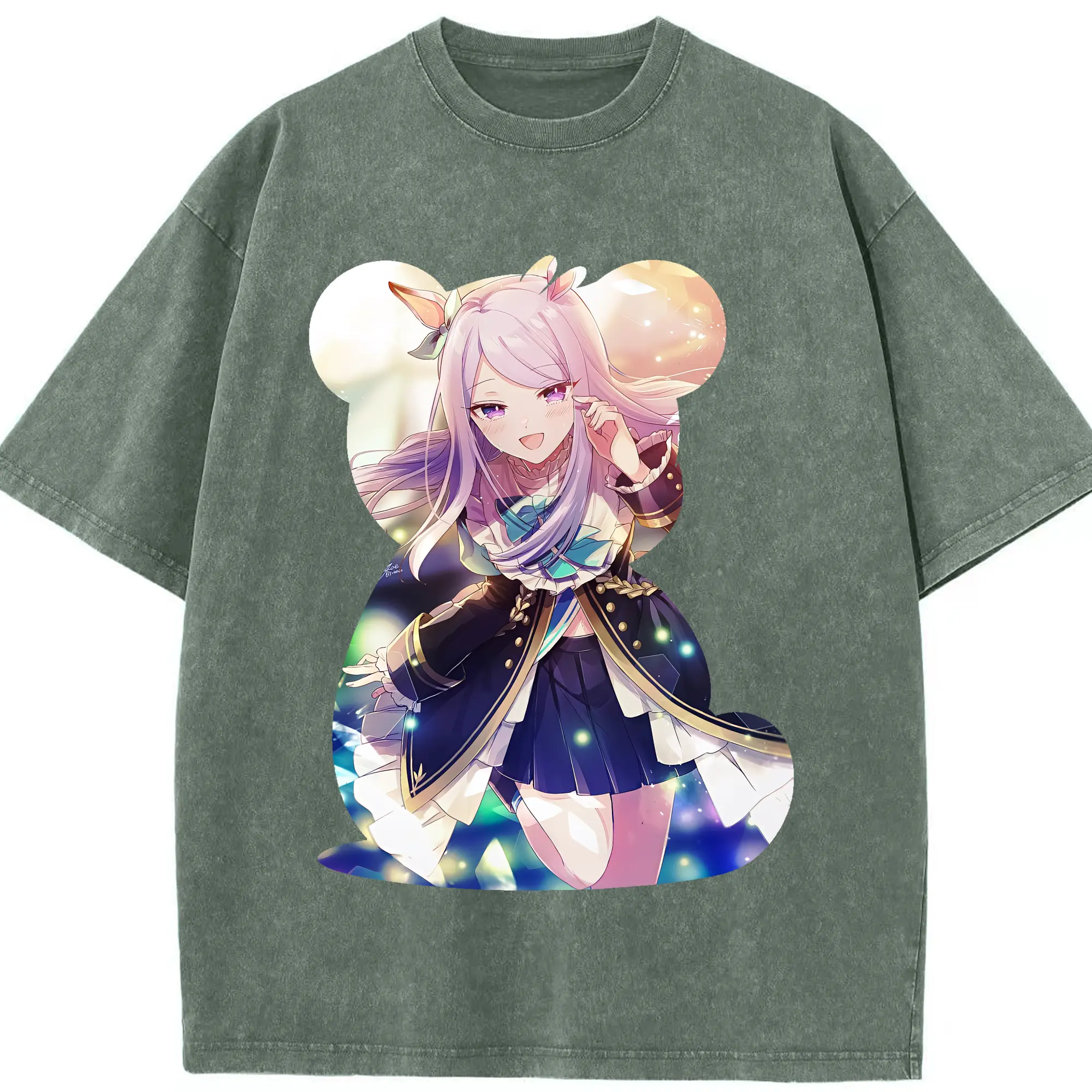ウマ娘 プリティーダービー グッズ メジロマックイーン - 綿100% ヴィンテージ風 半袖Tシャツ ・ 背面プリント ・ 柔らか肌触り ・ 通気性 快適 ・ スポーツ カジュアル 外出用