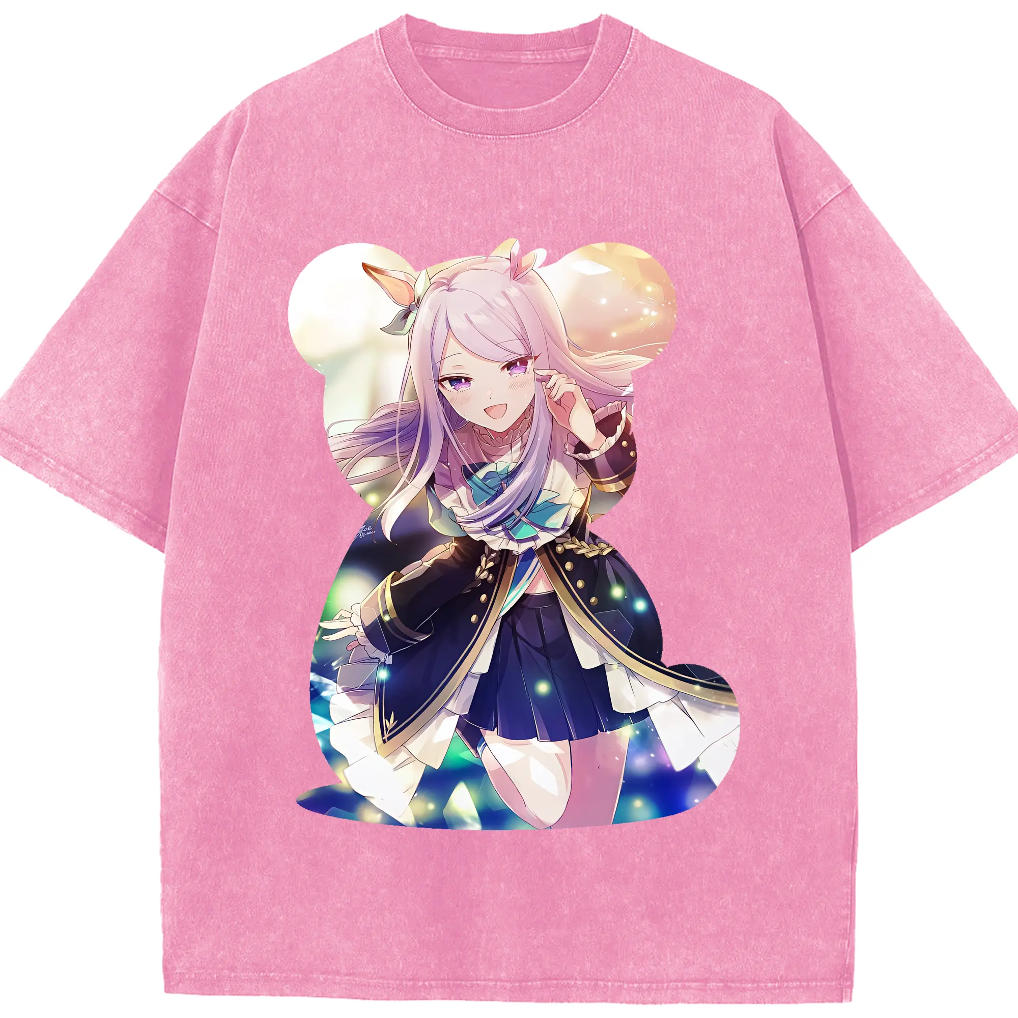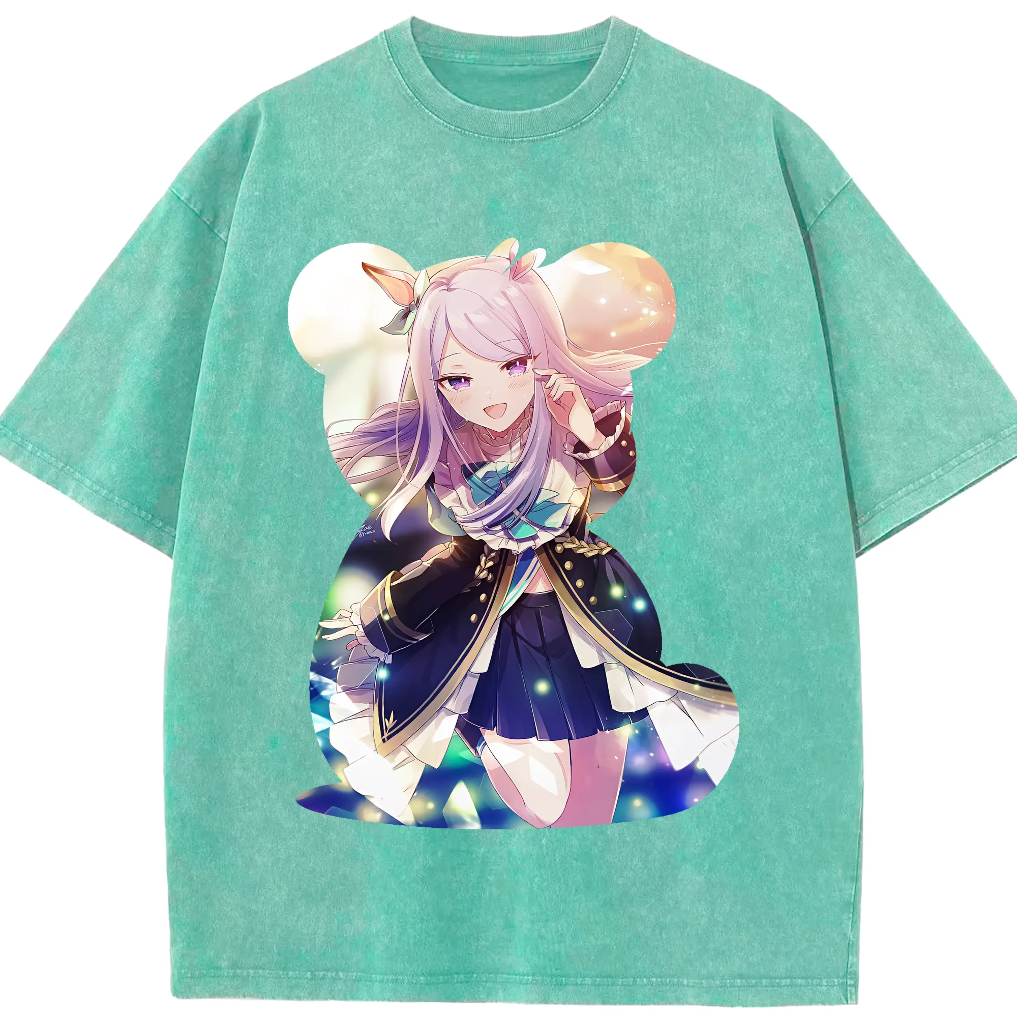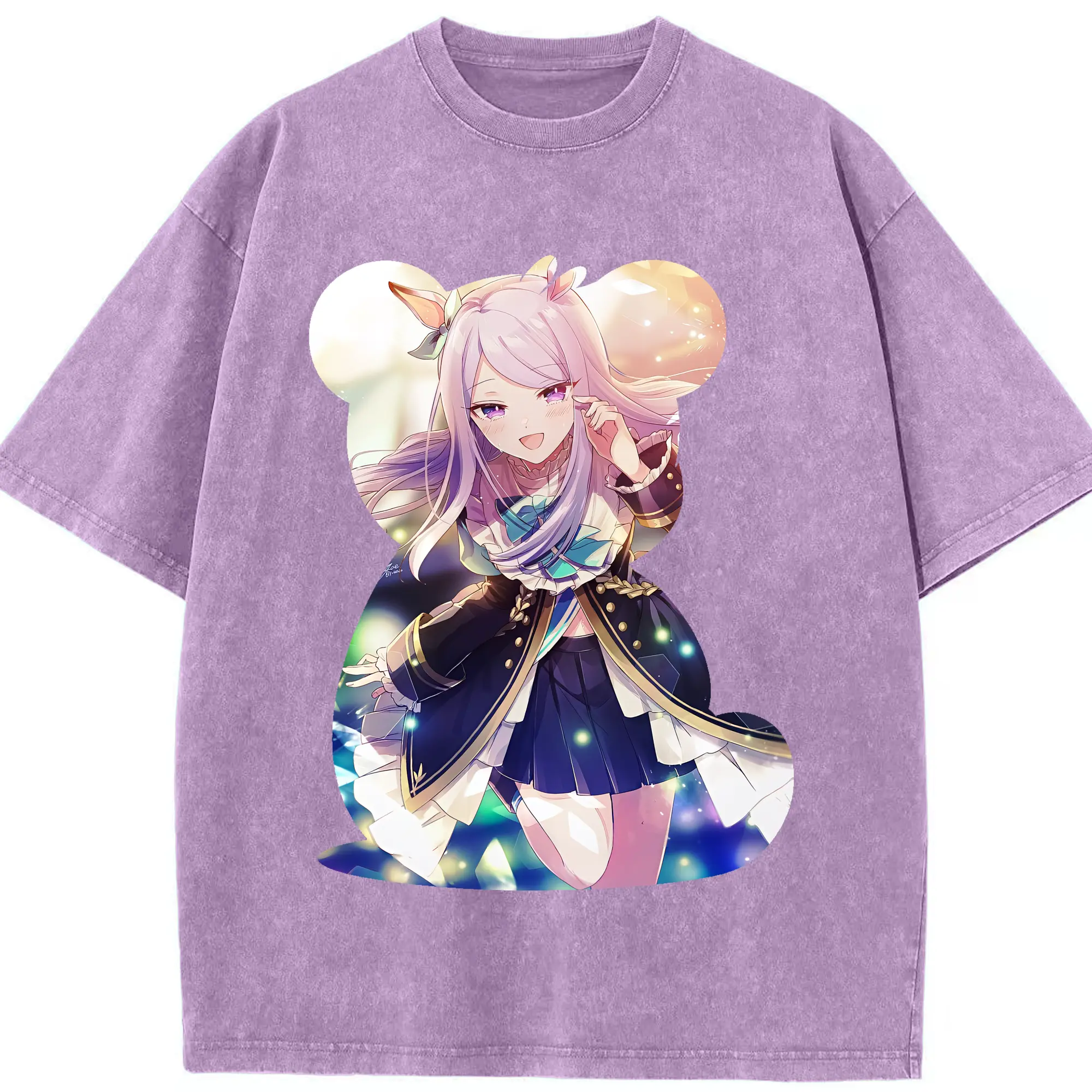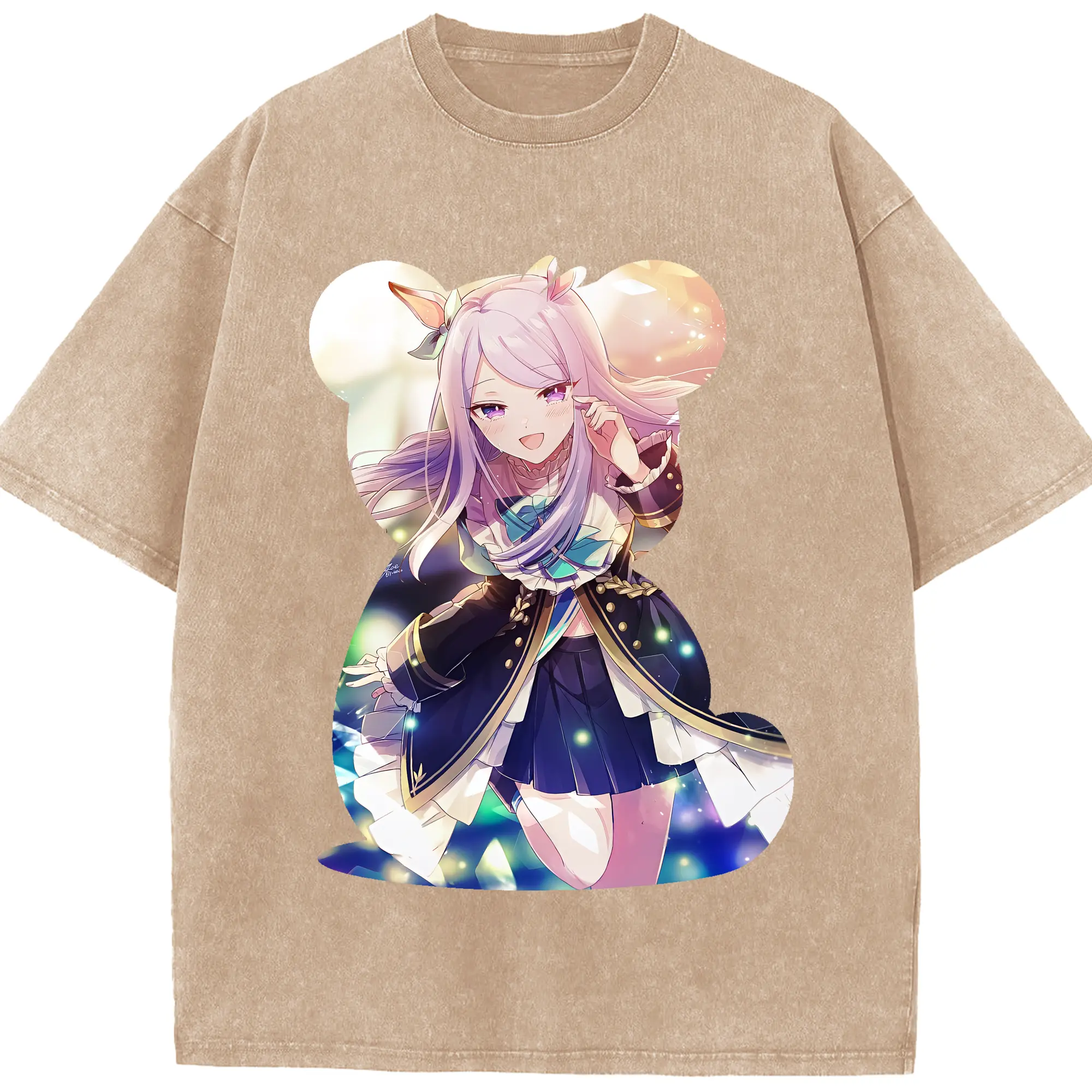 ウマ娘 プリティーダービー グッズ メジロマックイーン - 綿100% ヴィンテージ風 半袖Tシャツ ・ 背面プリント ・ 柔らか肌触り ・ 通気性 快適 ・ スポーツ カジュアル 外出用