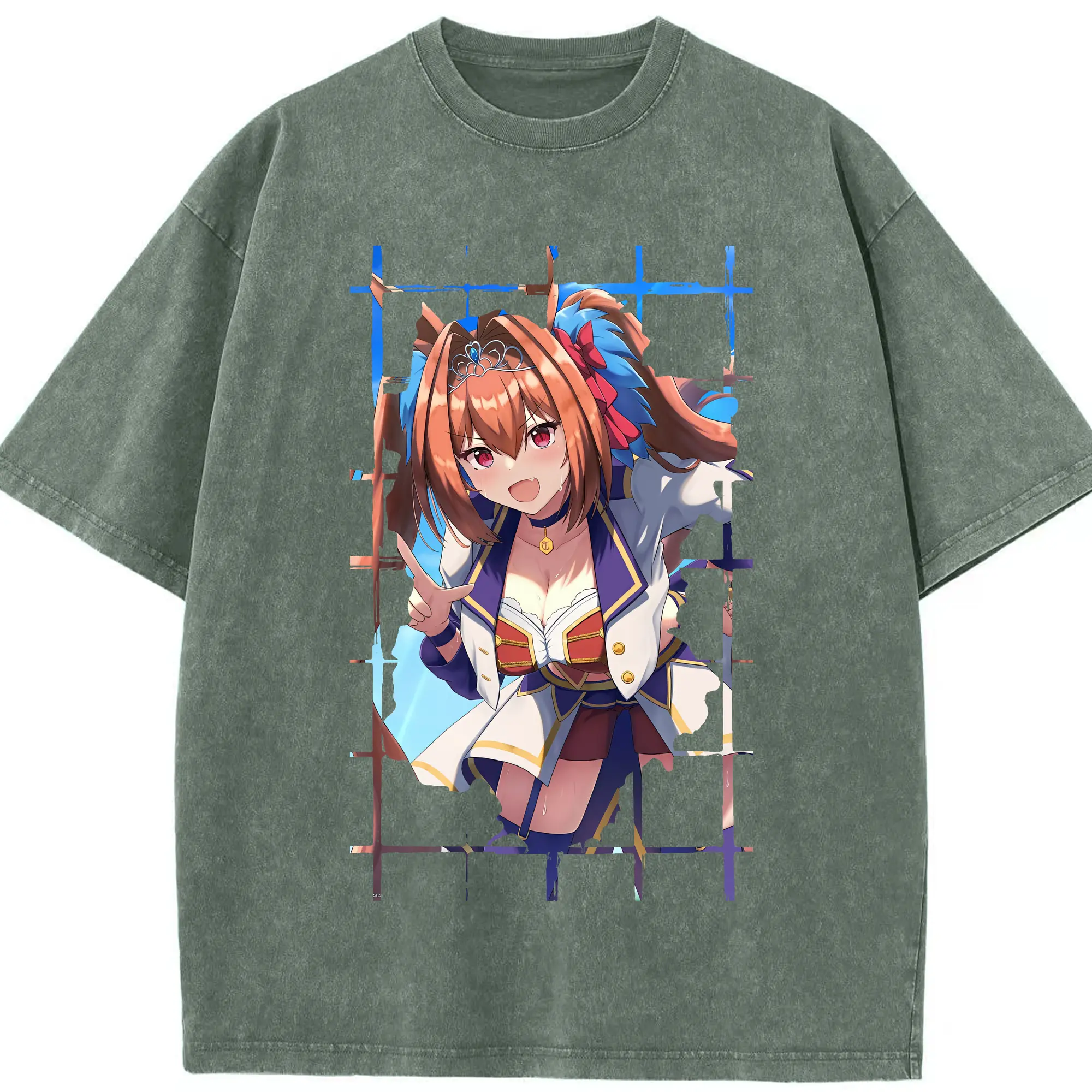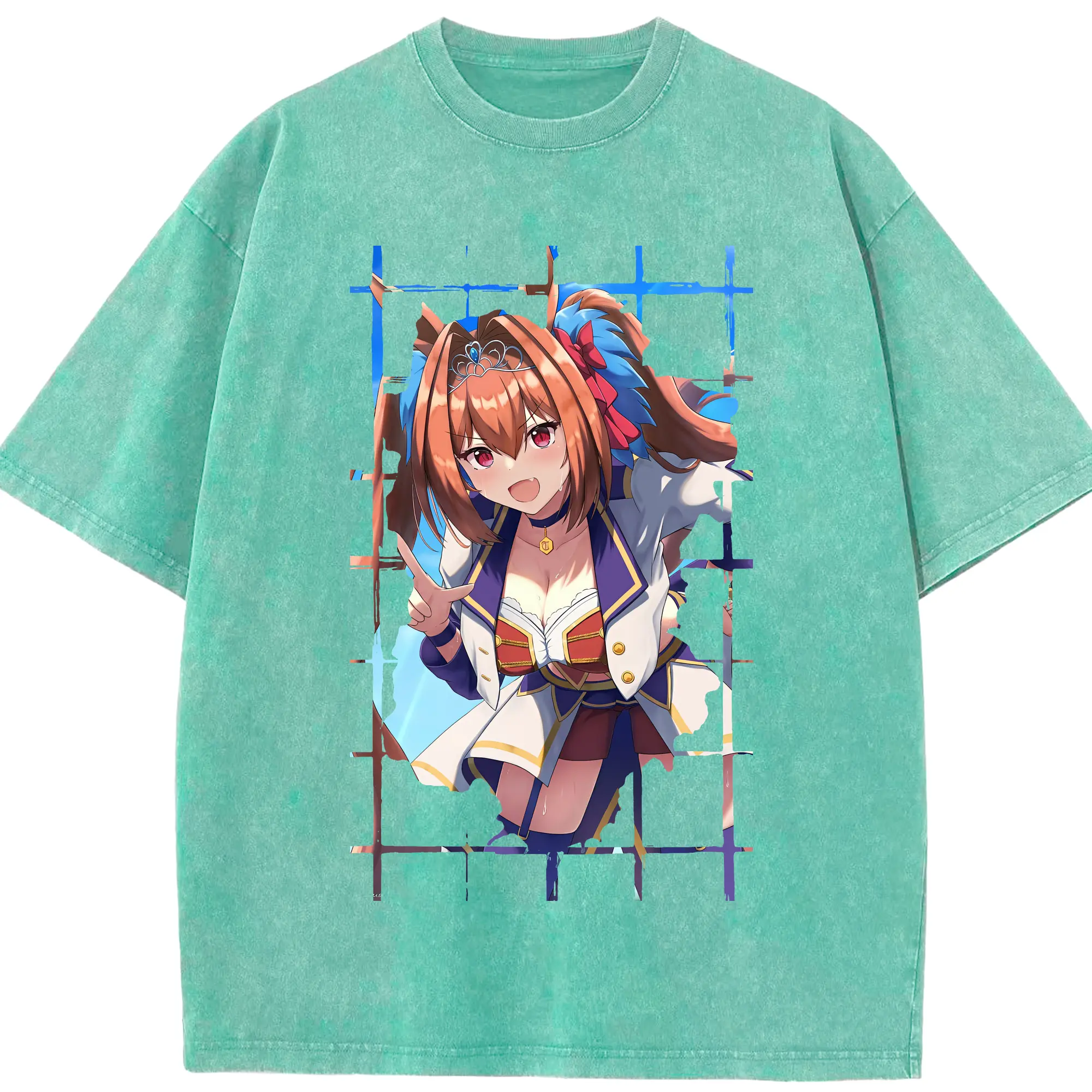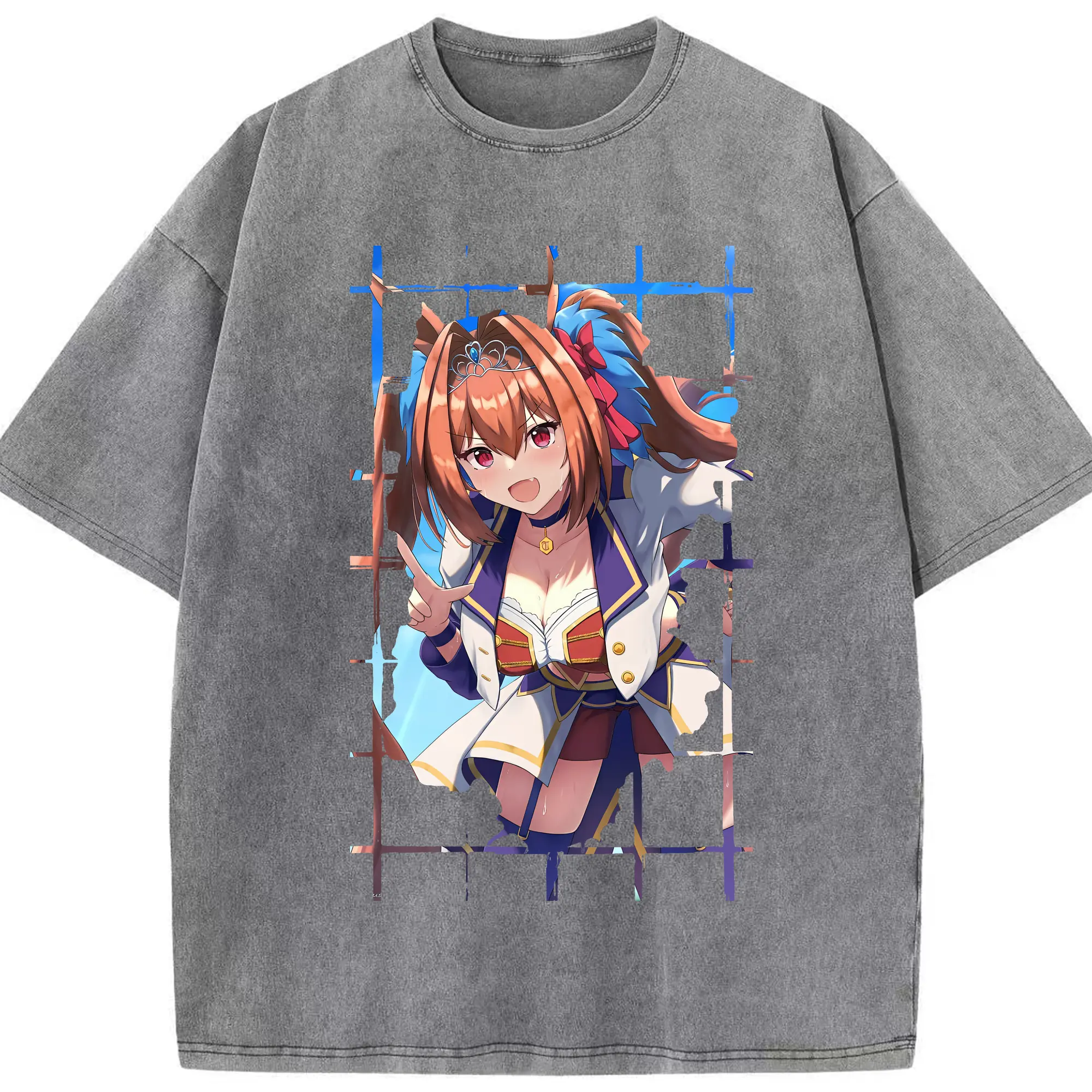 ウマ娘 プリティーダービー グッズ ダイワスカーレット - 綿100% ヴィンテージ風 半袖Tシャツ ・ 背面プリント ・ 柔らか肌触り ・ 通気性 快適 ・ スポーツ カジュアル 外出用