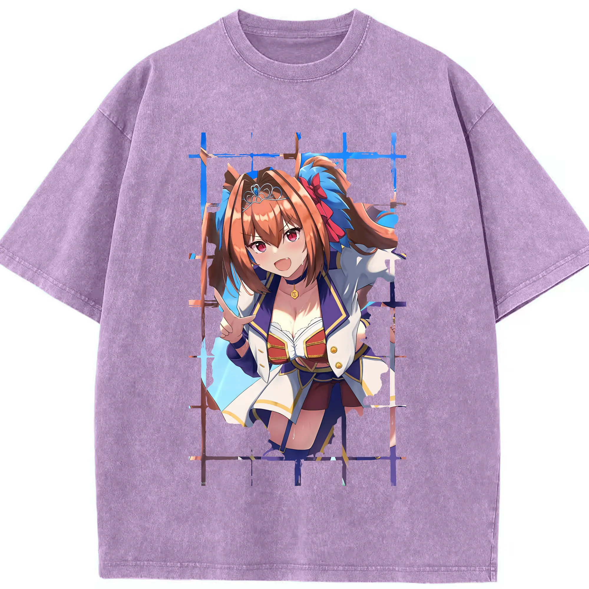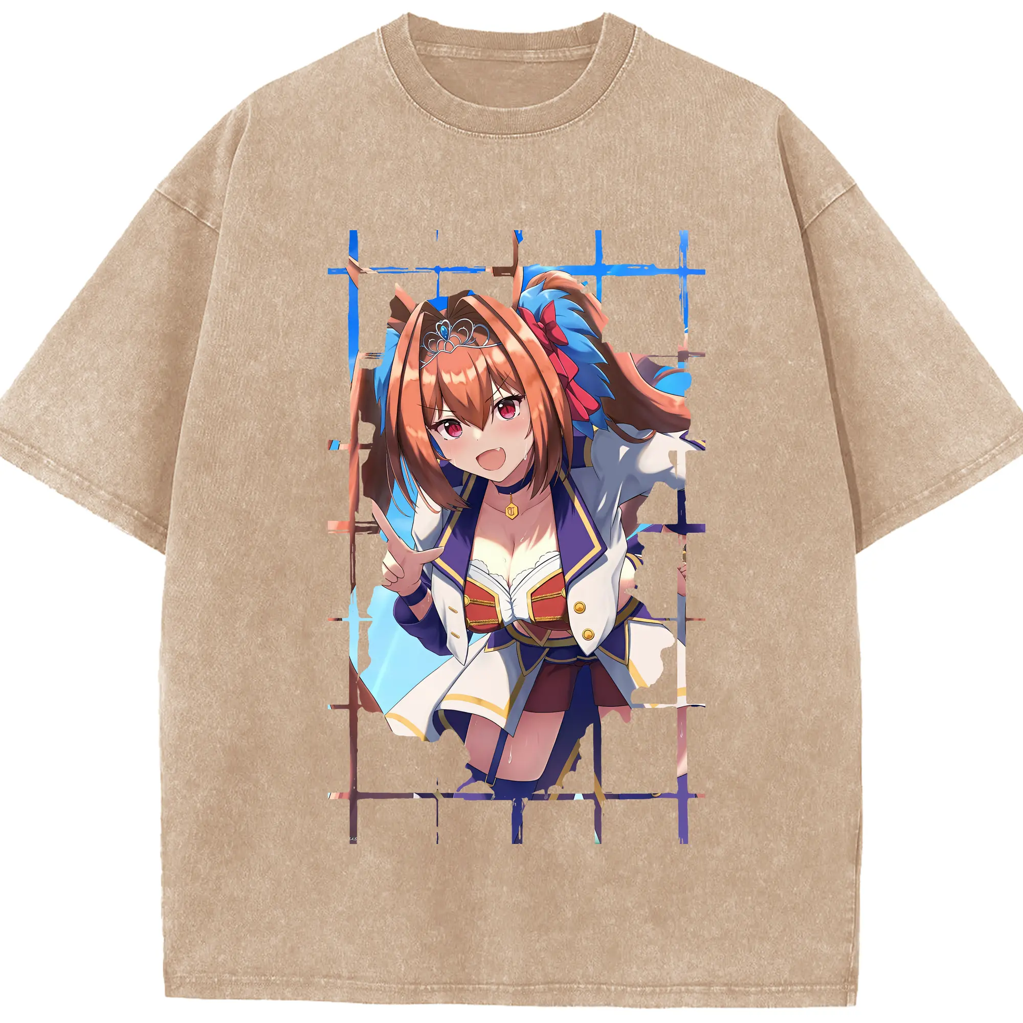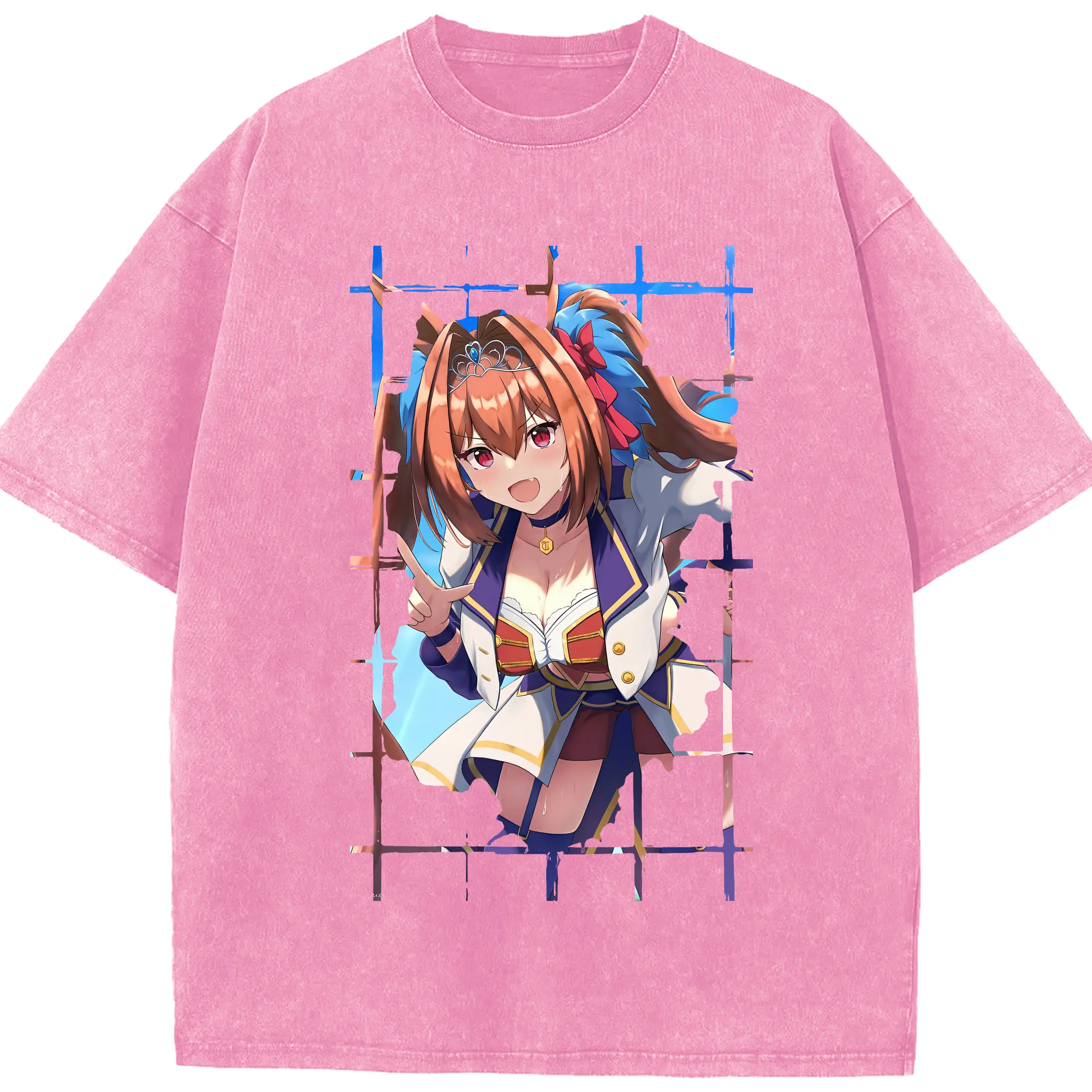 ウマ娘 プリティーダービー グッズ ダイワスカーレット - 綿100% ヴィンテージ風 半袖Tシャツ ・ 背面プリント ・ 柔らか肌触り ・ 通気性 快適 ・ スポーツ カジュアル 外出用