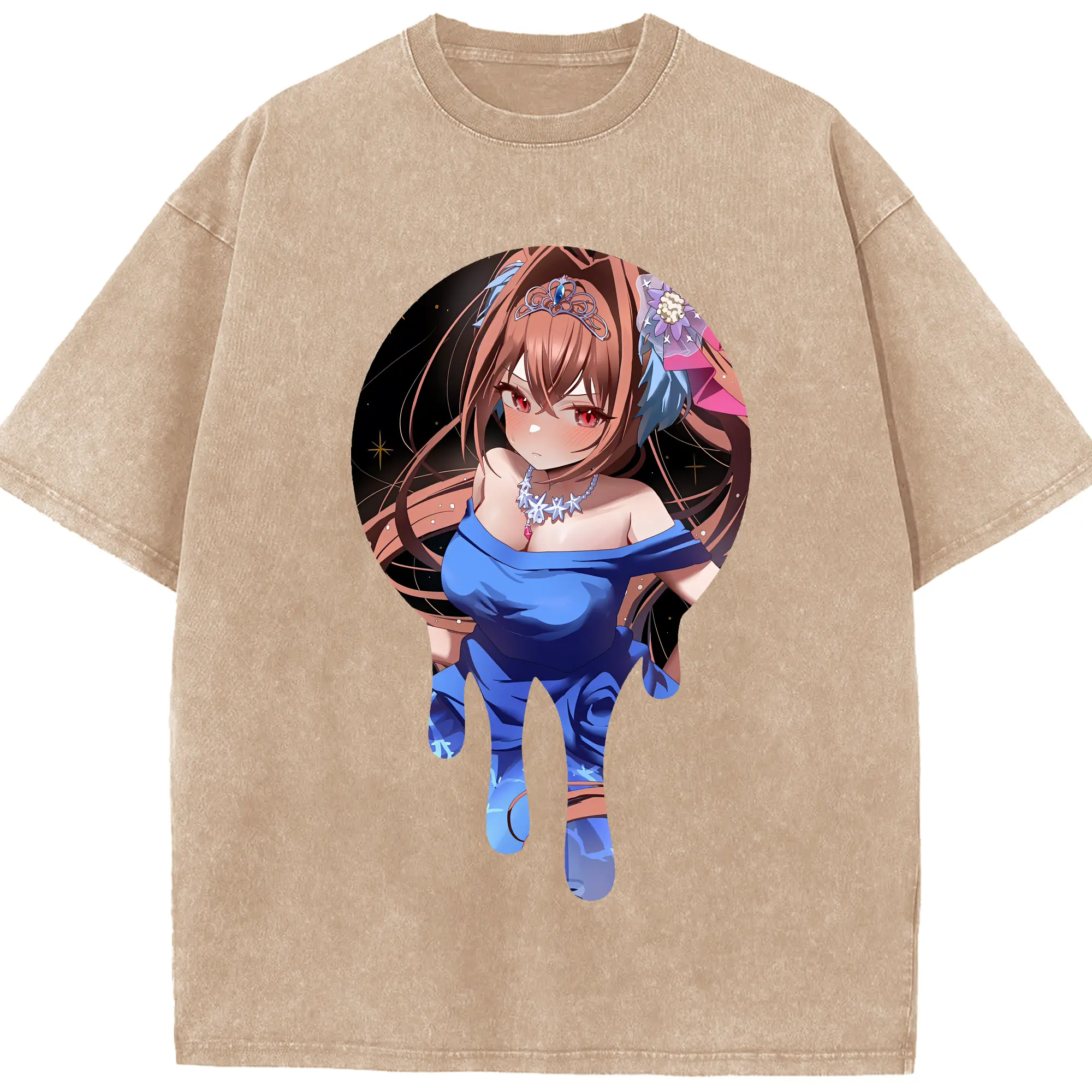 鳴潮 グッズ アンコ - 綿100% ヴィンテージ風 半袖Tシャツ ・ フロントプリント ・ 柔らか肌触り ・ 通気性 快適 ・ スポーツ カジュアル 外出用
