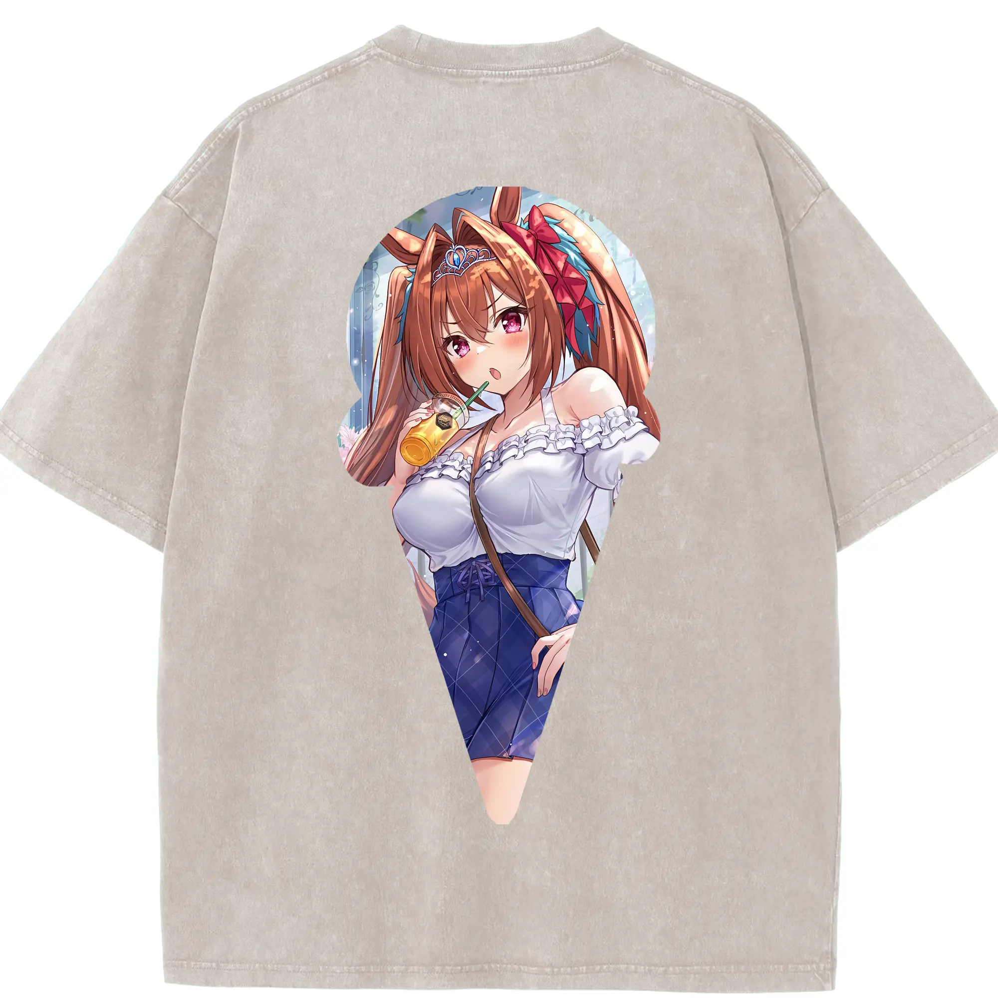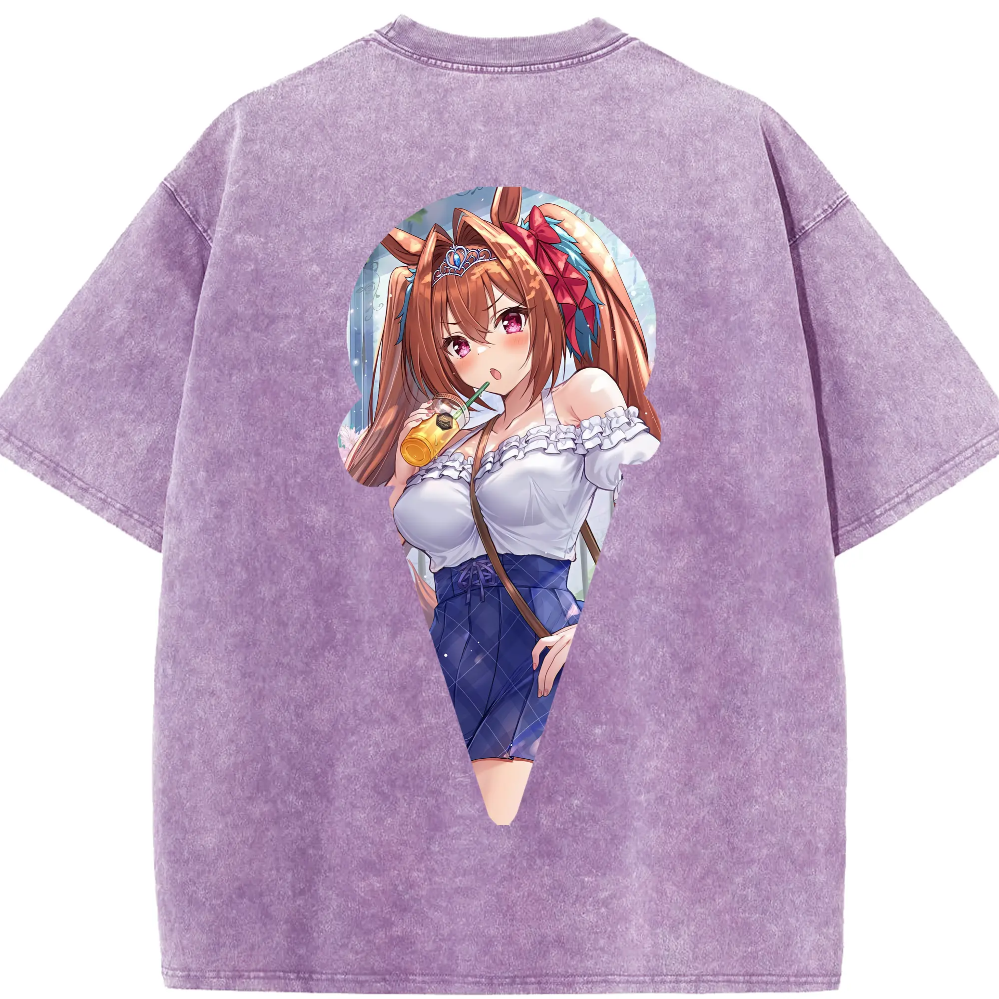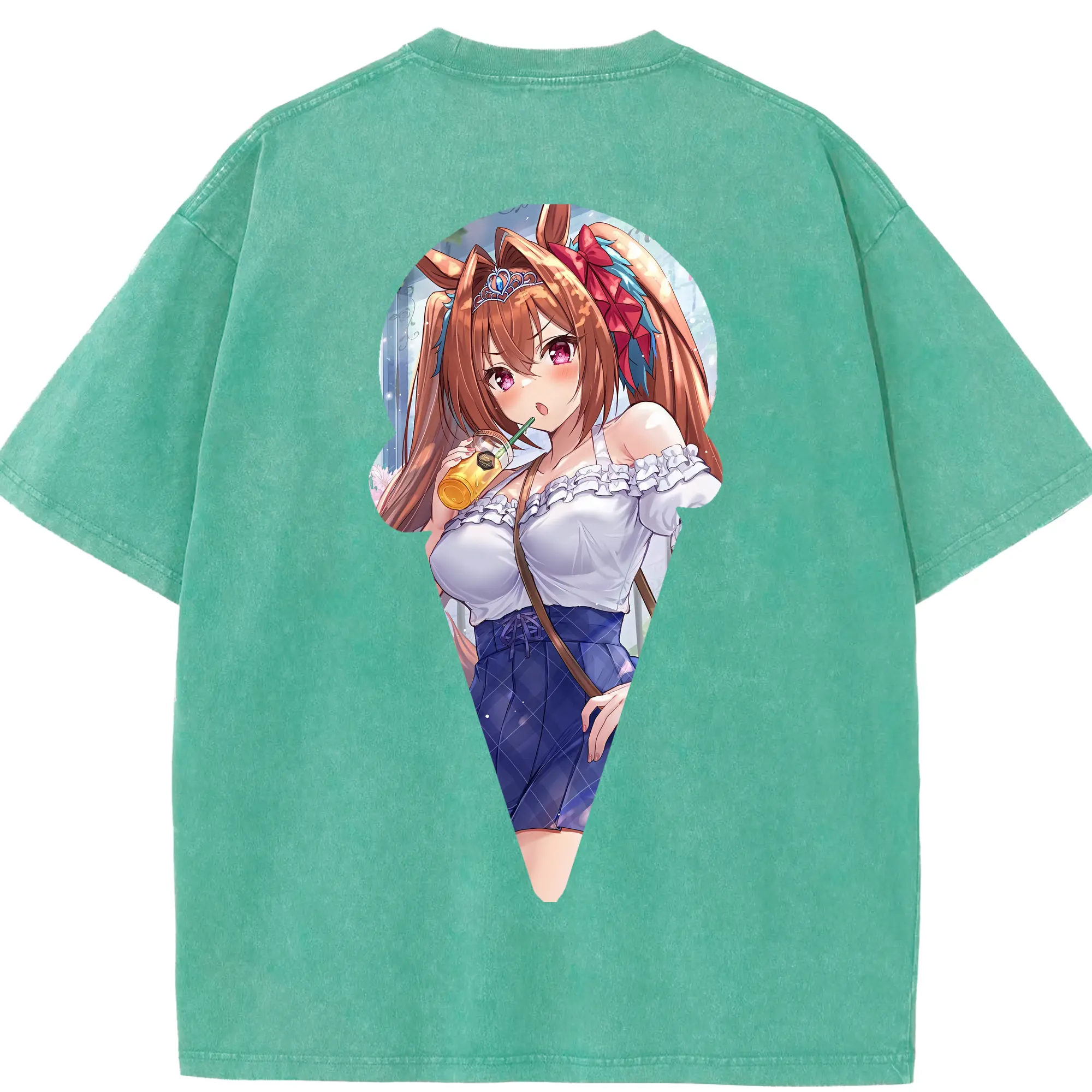 ウマ娘 プリティーダービー グッズ トウカイテイオー - 綿100% ヴィンテージ風 半袖Tシャツ ・ 背面プリント ・ 柔らか肌触り ・ 通気性 快適 ・ スポーツ カジュアル 外出用