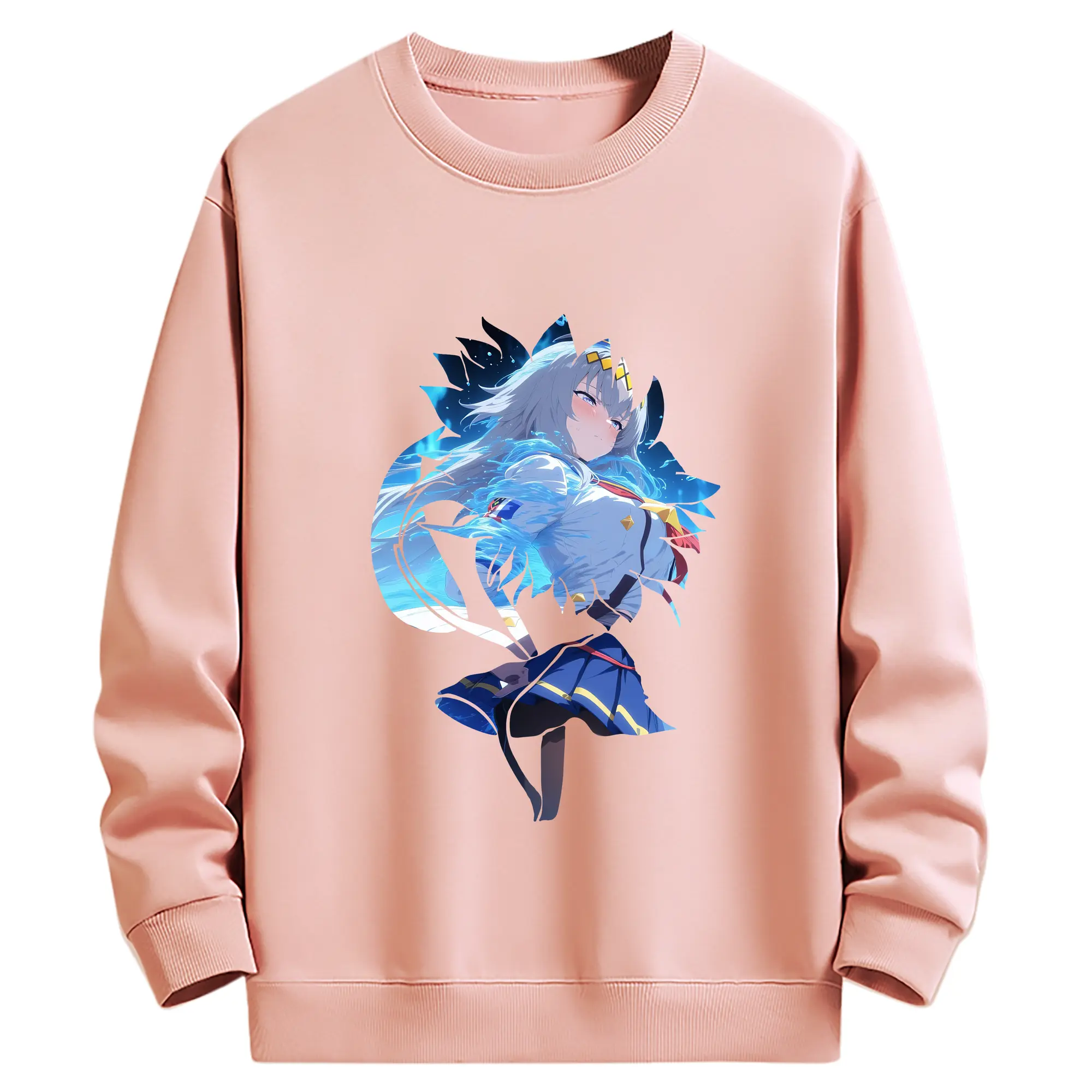 ブルーアーカイブ グッズ 聖園ミカ - キッズ クルーネックスウェットシャツ ・ フロントプリント ・ 綿80% ポリエステル20% ・ 快適 通学 スポーツ 日常使い お散歩用