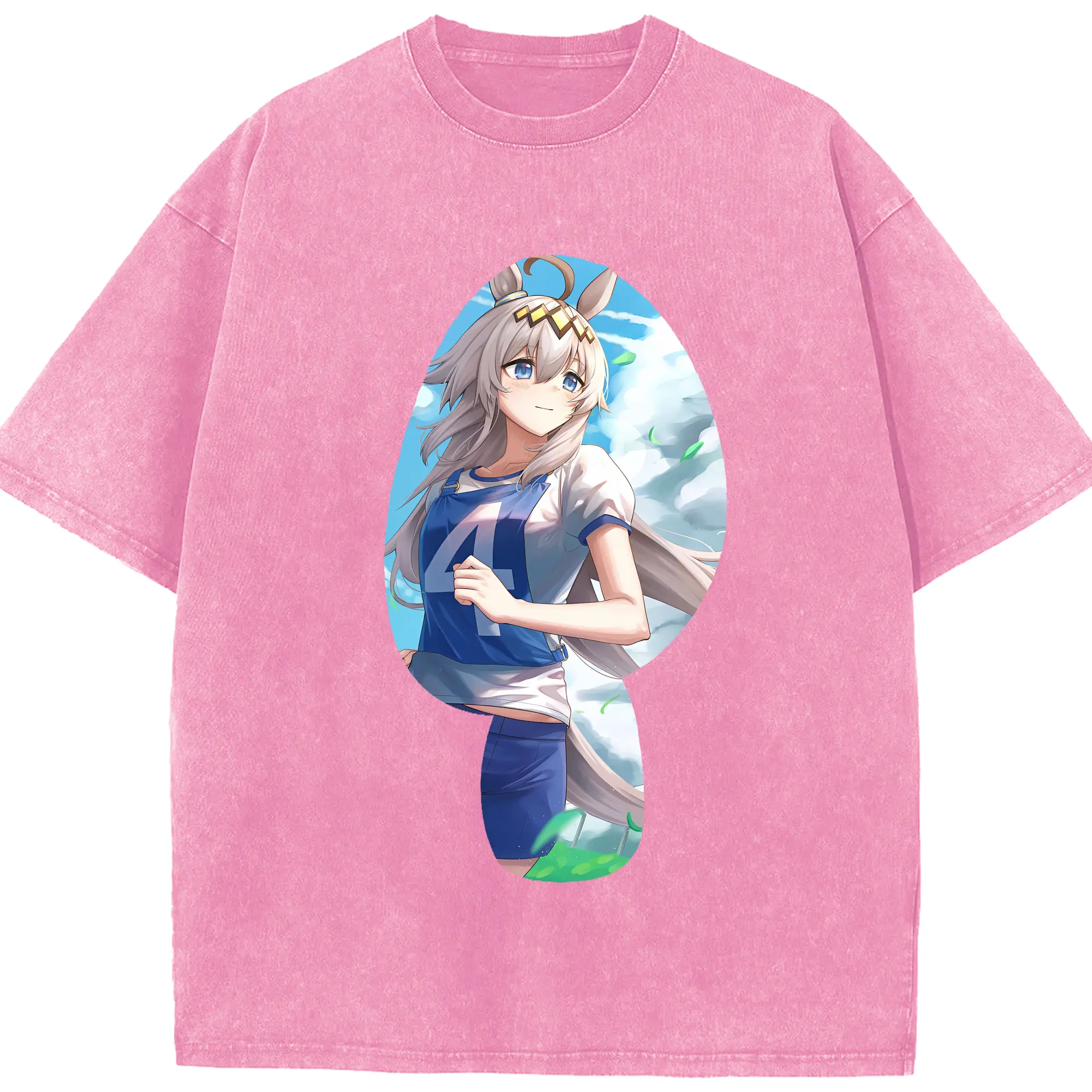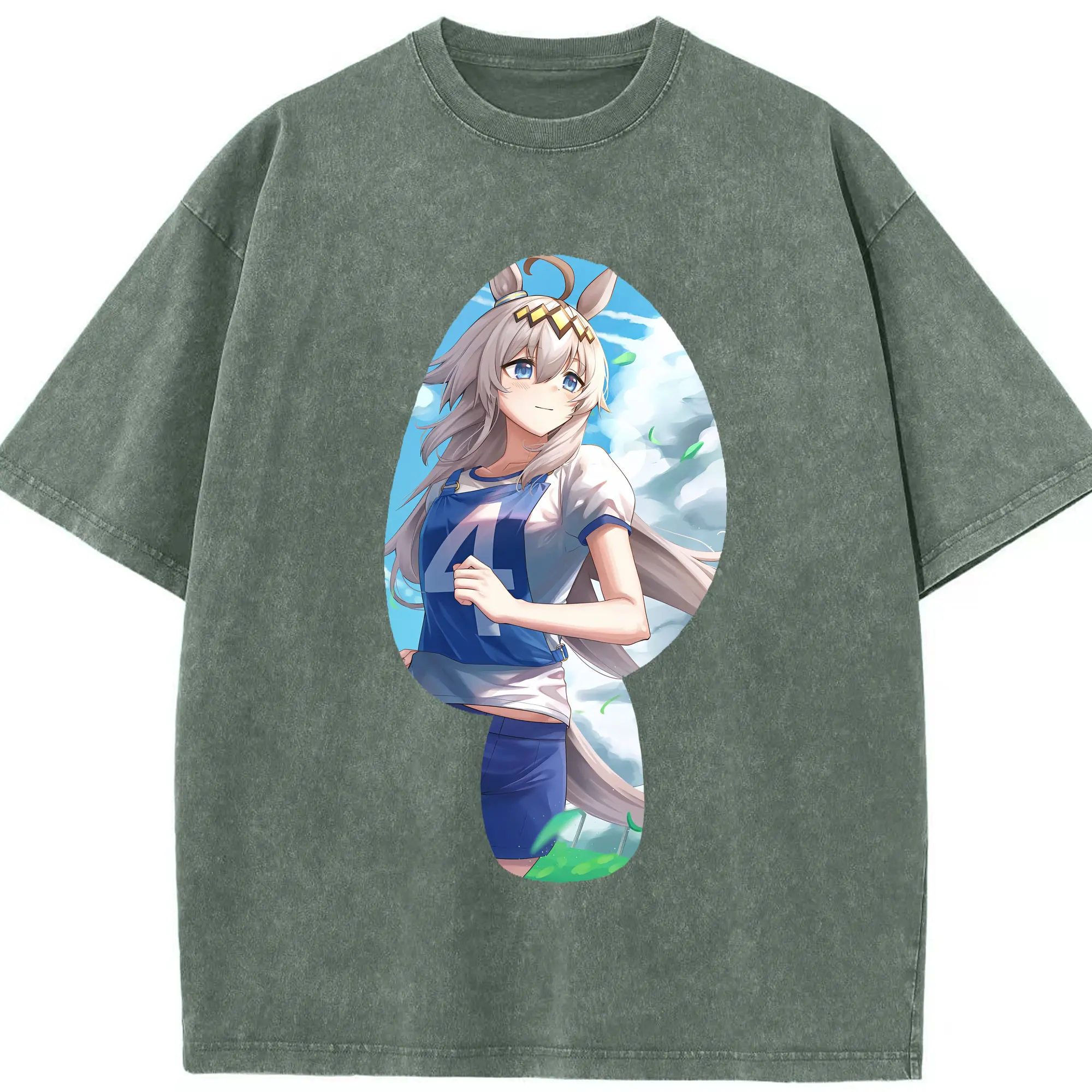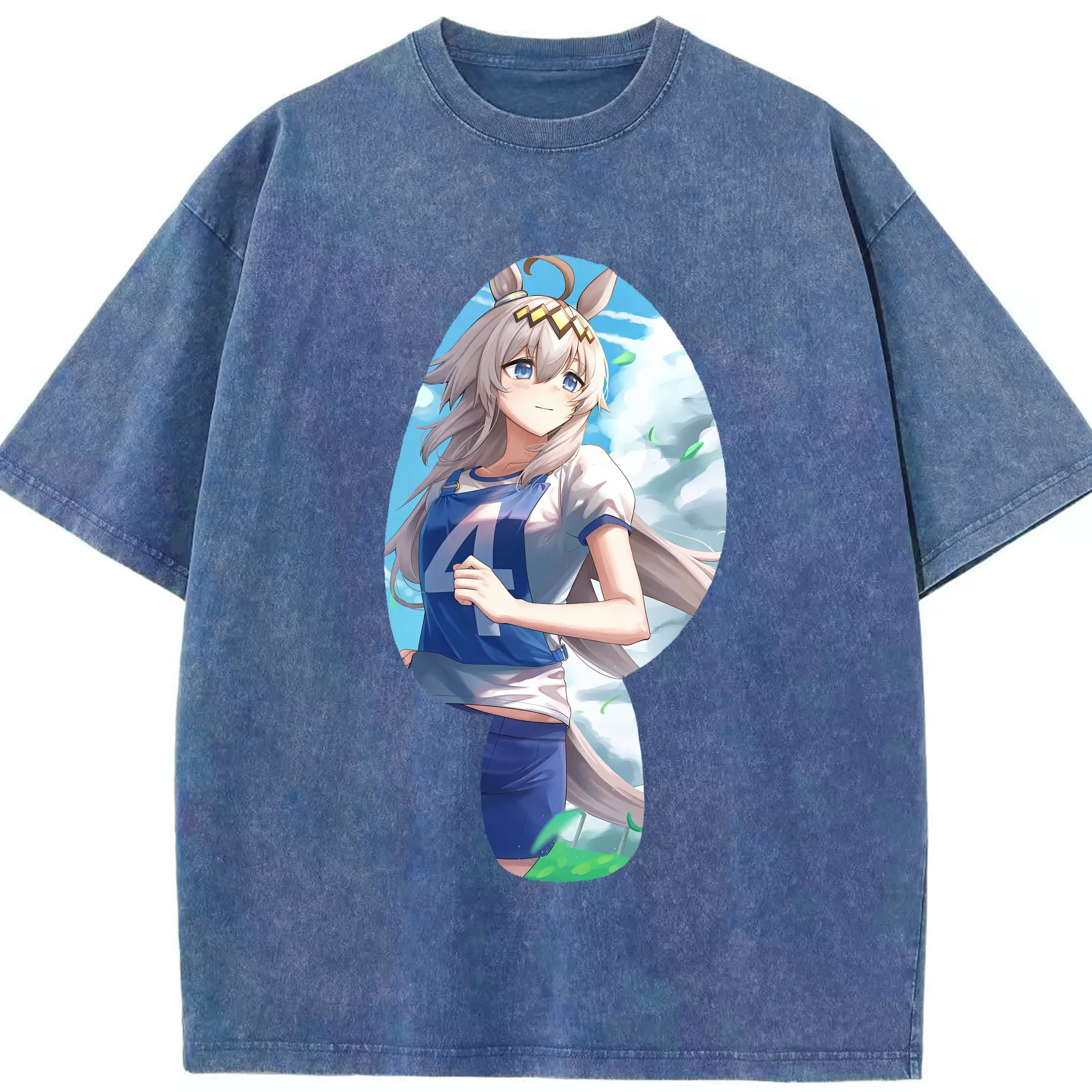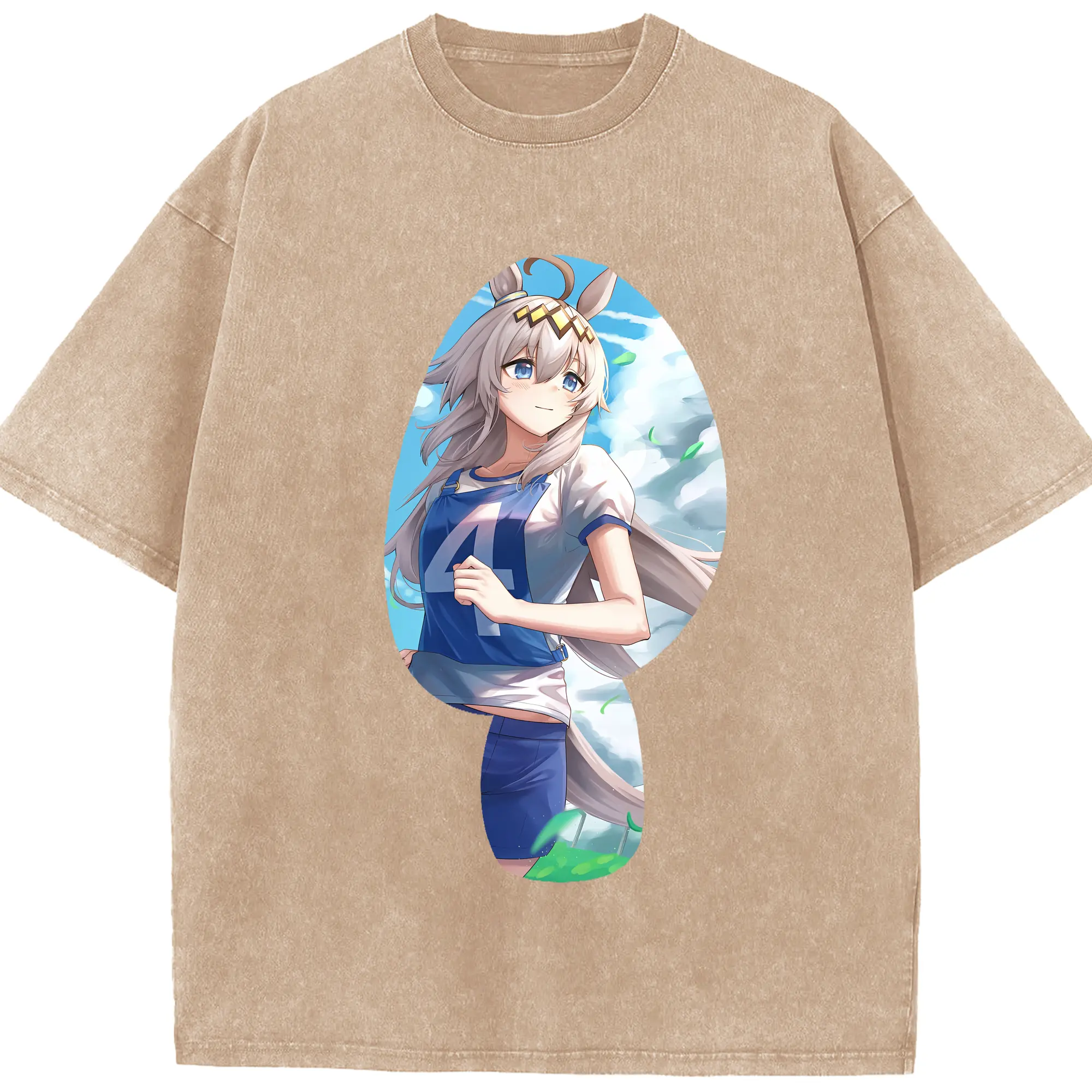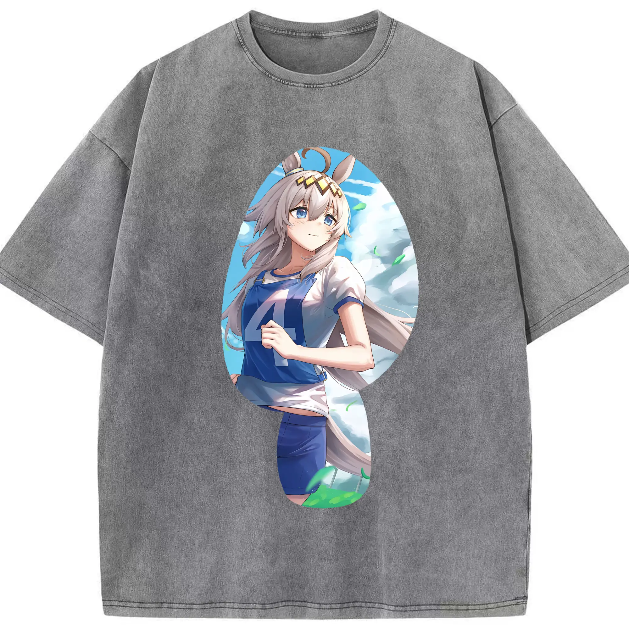 ウマ娘 プリティーダービー グッズ オグリキャップ - 綿100% ヴィンテージ風 半袖Tシャツ ・ 背面プリント ・ 柔らか肌触り ・ 通気性 快適 ・ スポーツ カジュアル 外出用