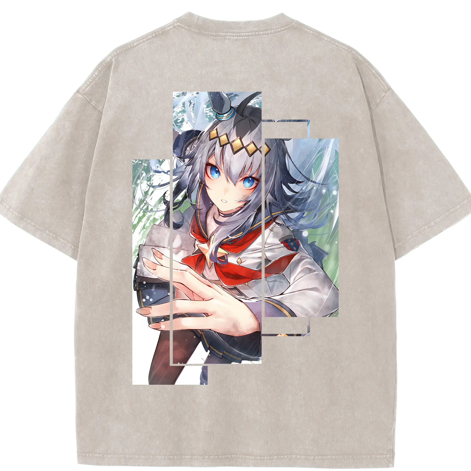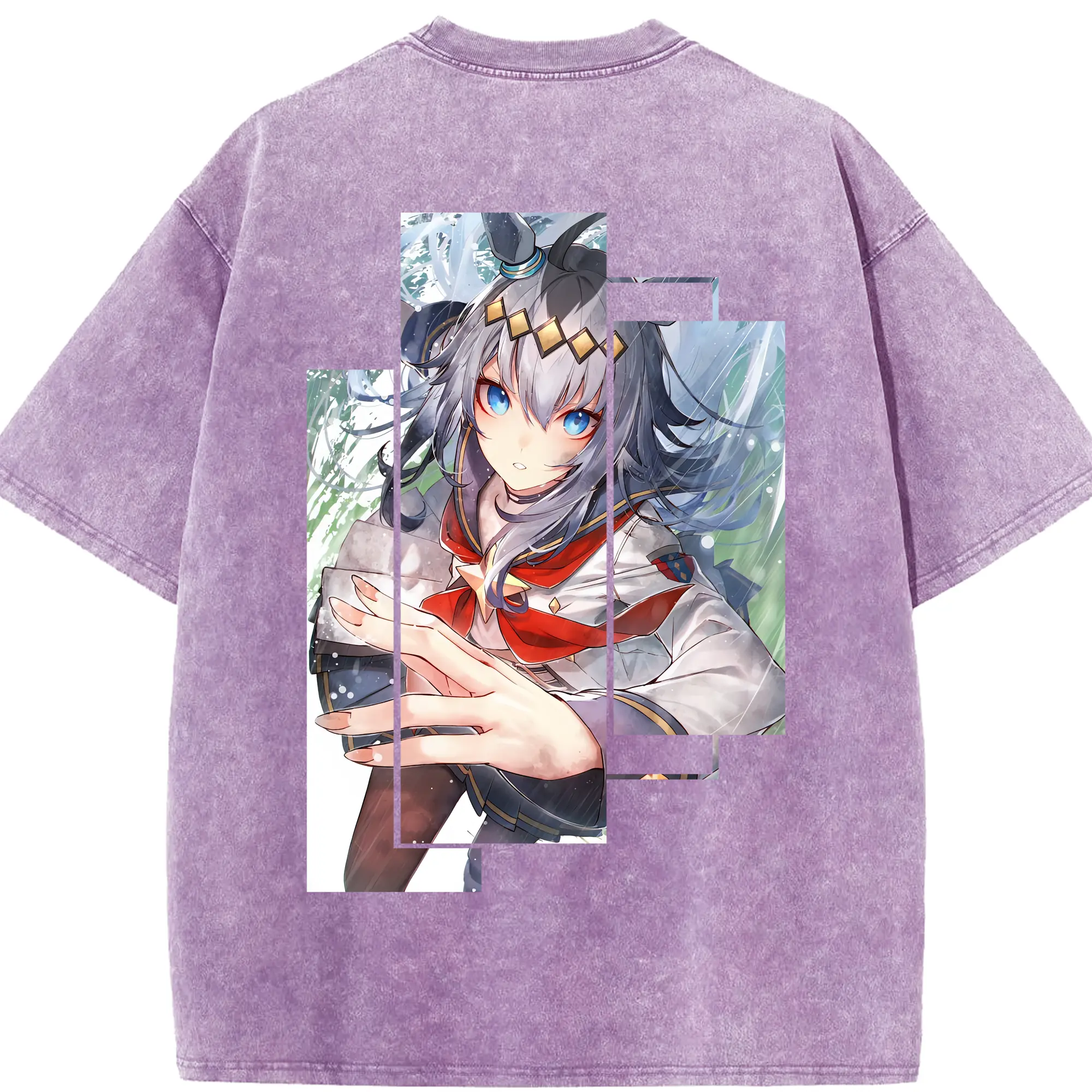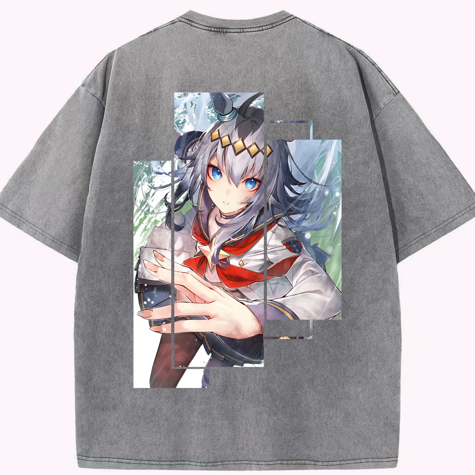 ウマ娘 プリティーダービー グッズ オグリキャップ - 綿100% ヴィンテージ風 半袖Tシャツ ・ フロントプリント ・ 柔らか肌触り ・ 通気性 快適 ・ スポーツ カジュアル 外出用