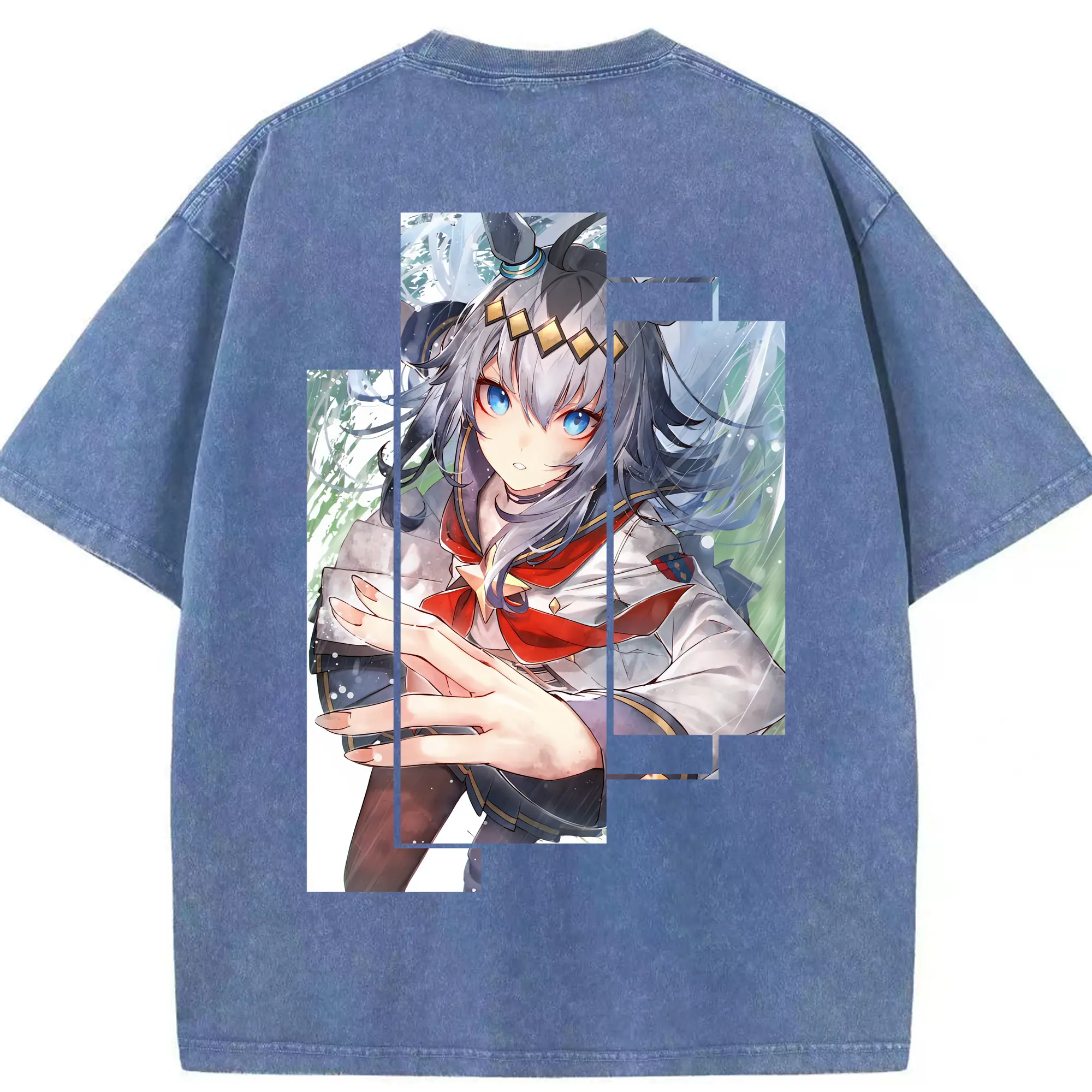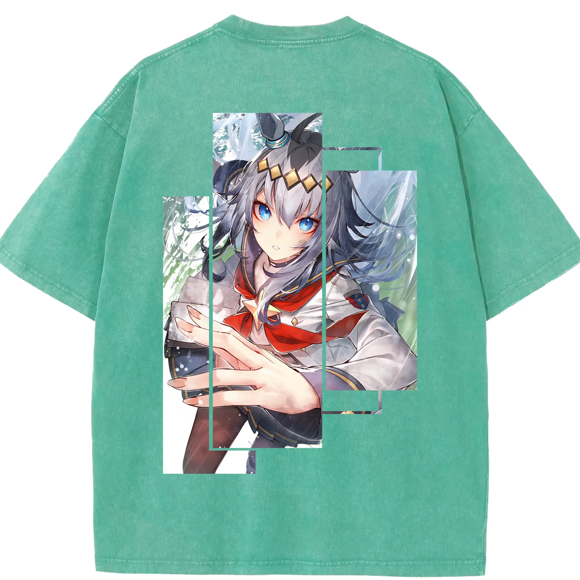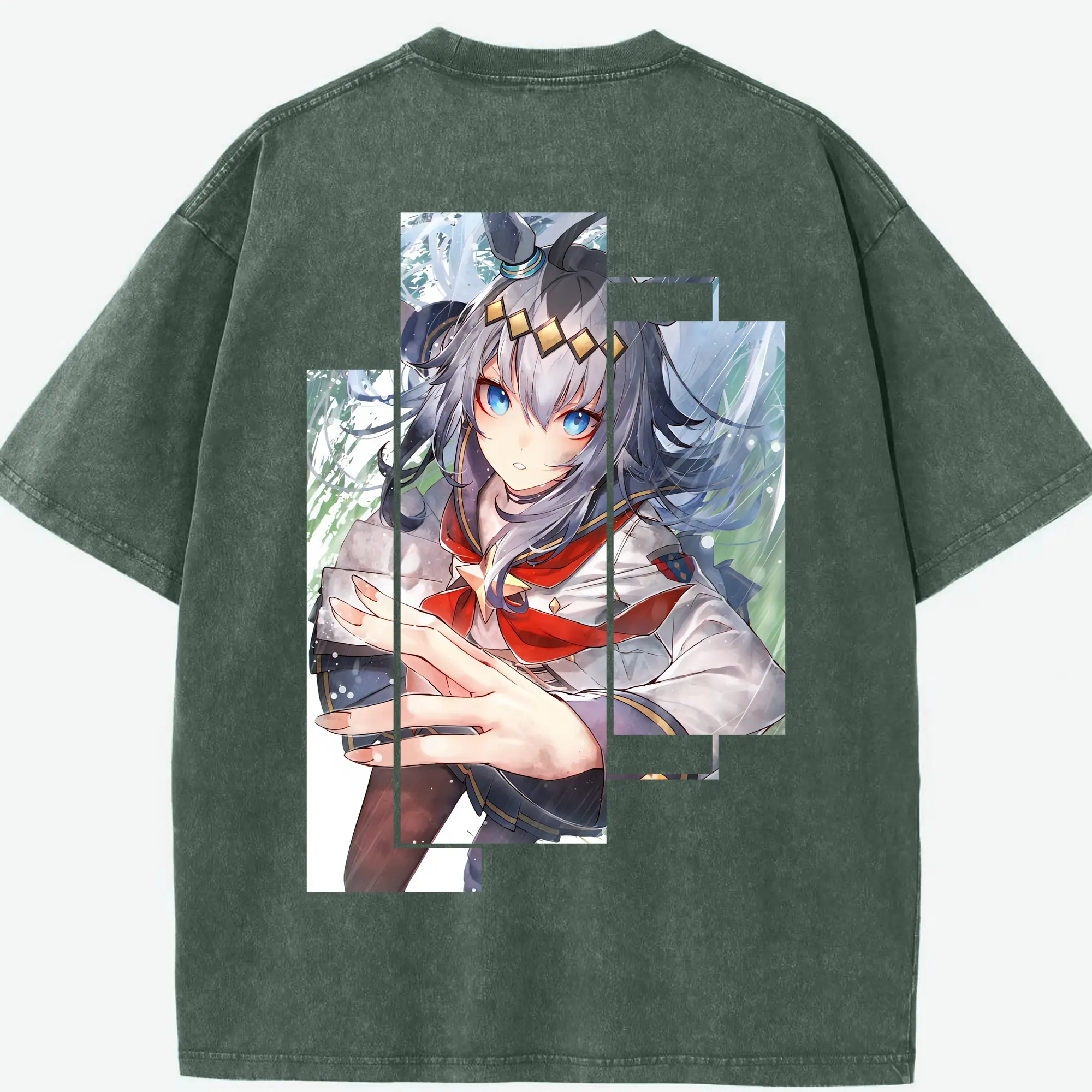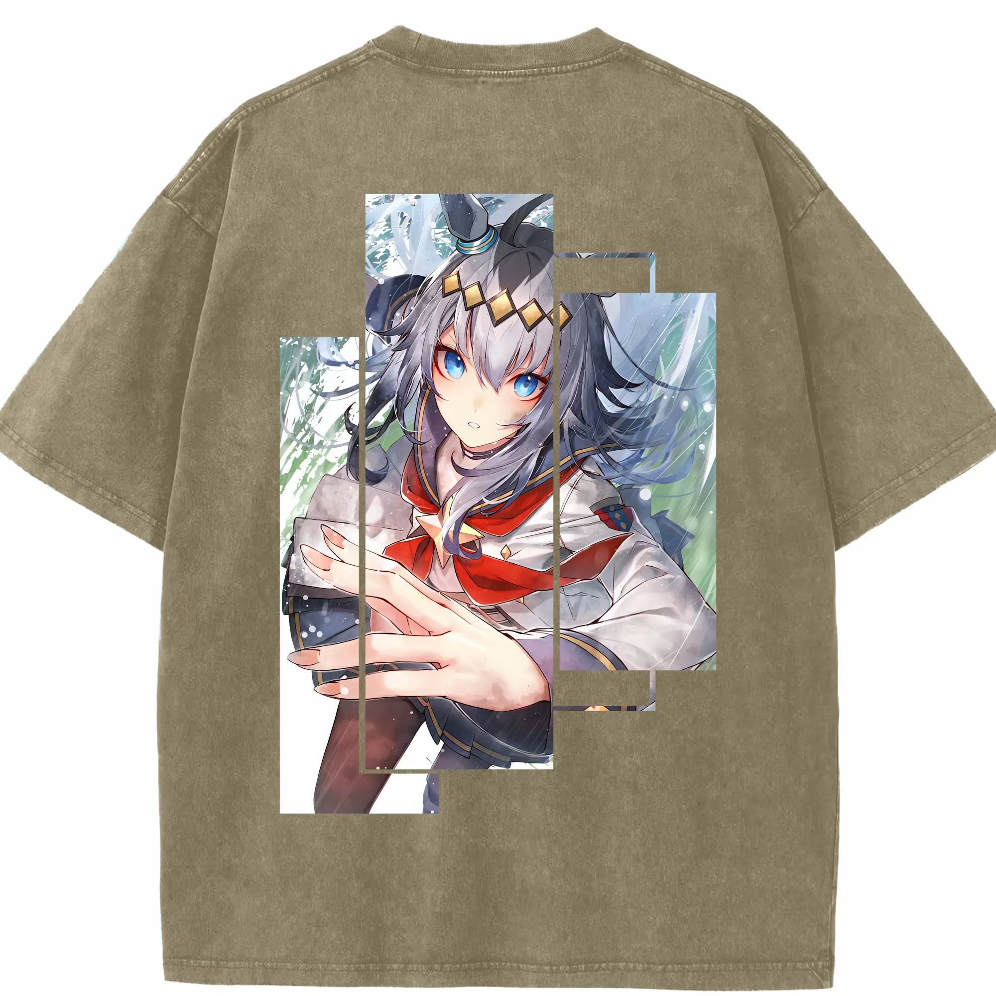 ウマ娘 プリティーダービー グッズ オグリキャップ - 綿100% ヴィンテージ風 半袖Tシャツ ・ フロントプリント ・ 柔らか肌触り ・ 通気性 快適 ・ スポーツ カジュアル 外出用