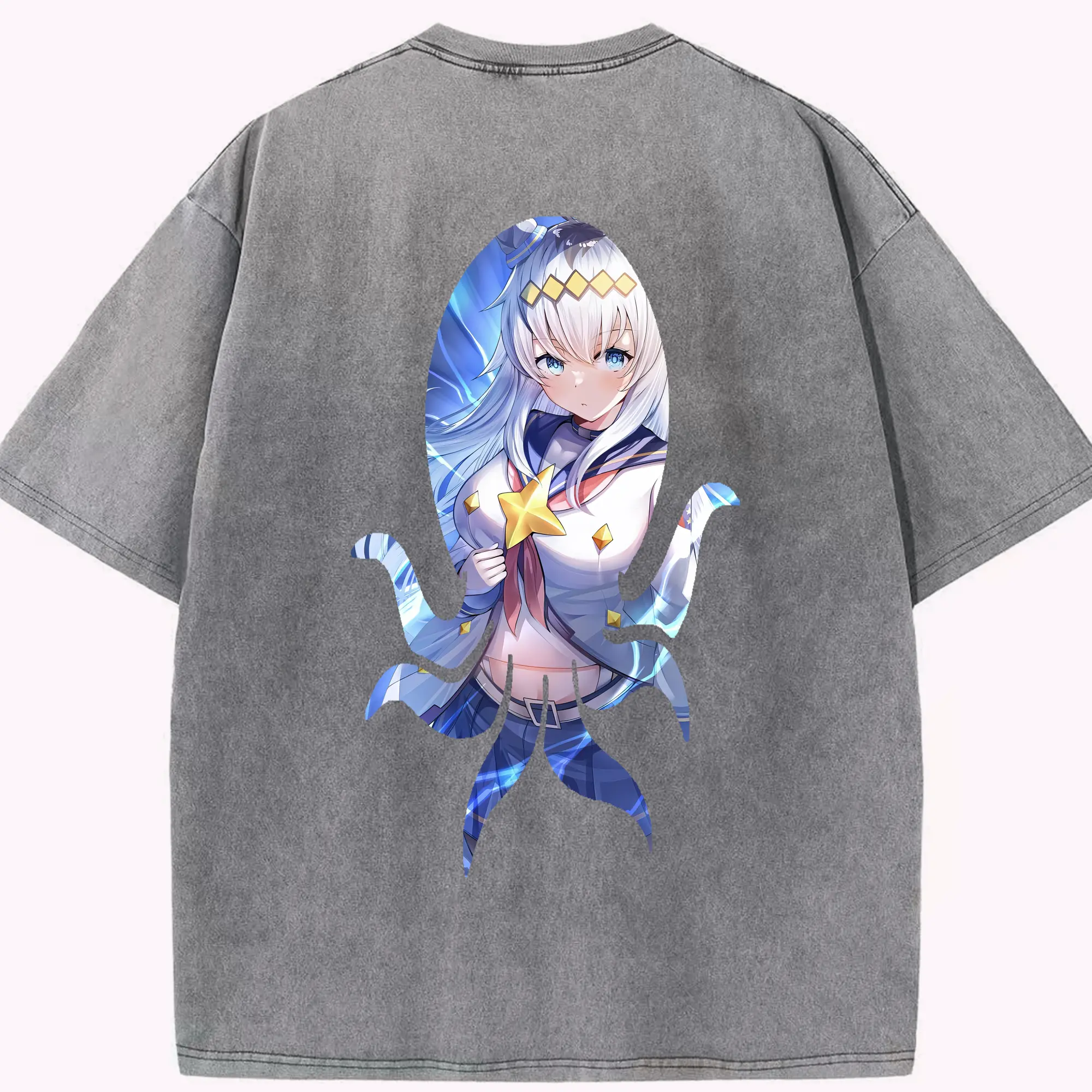 アイカツ グッズ 神崎 美月 - 綿100% ヴィンテージ風 半袖Tシャツ ・ 背面プリント ・ 柔らか肌触り ・ 通気性 快適 ・ スポーツ カジュアル 外出用