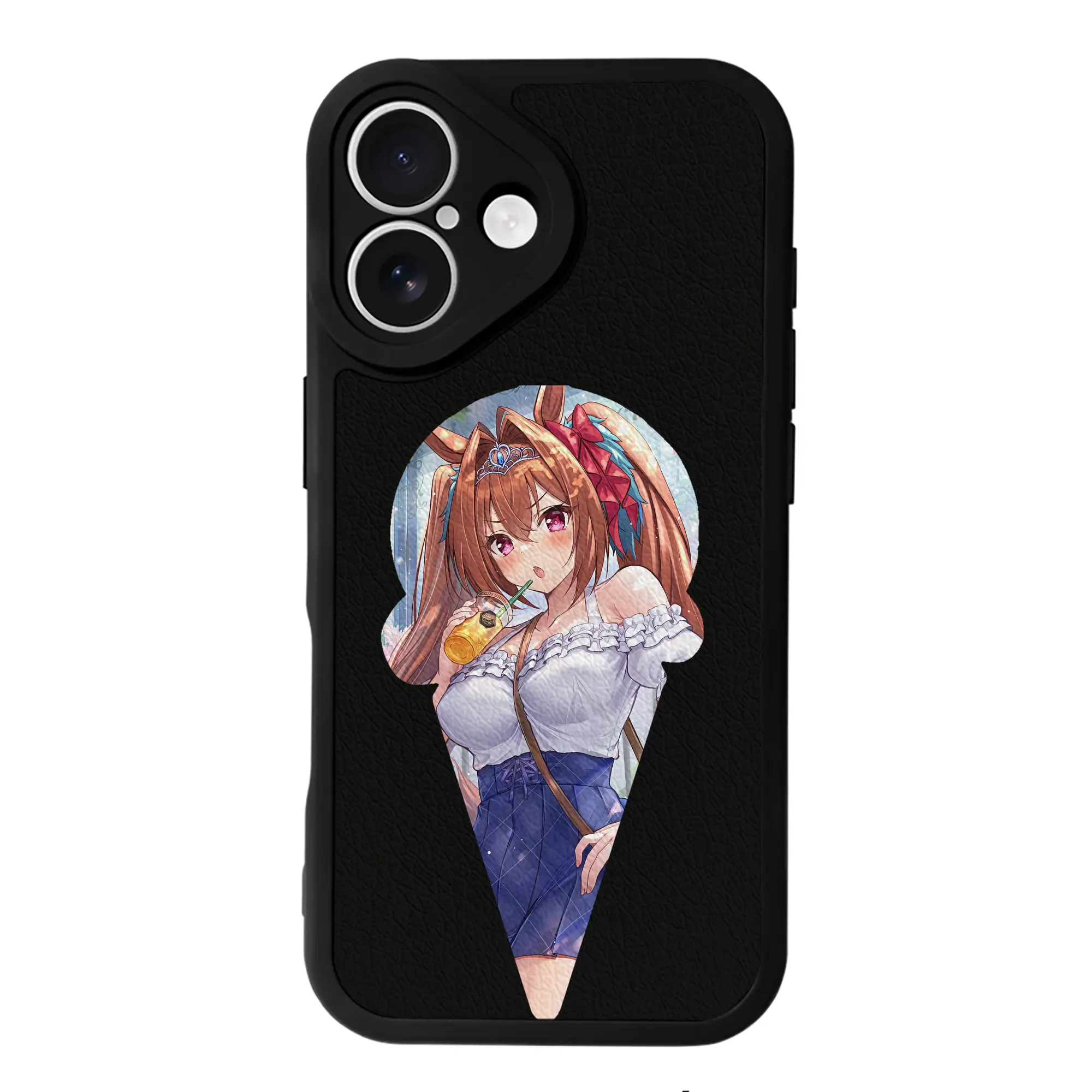 ウマ娘 プリティーダービー グッズ ダイワスカーレット - IPhone 16シリーズ対応 ・ シリコンスマホケース ・ レザー調 ・ 高精度フィット ・ 耐衝撃 ・ ワイヤレス充電対応 ・ 精密カット