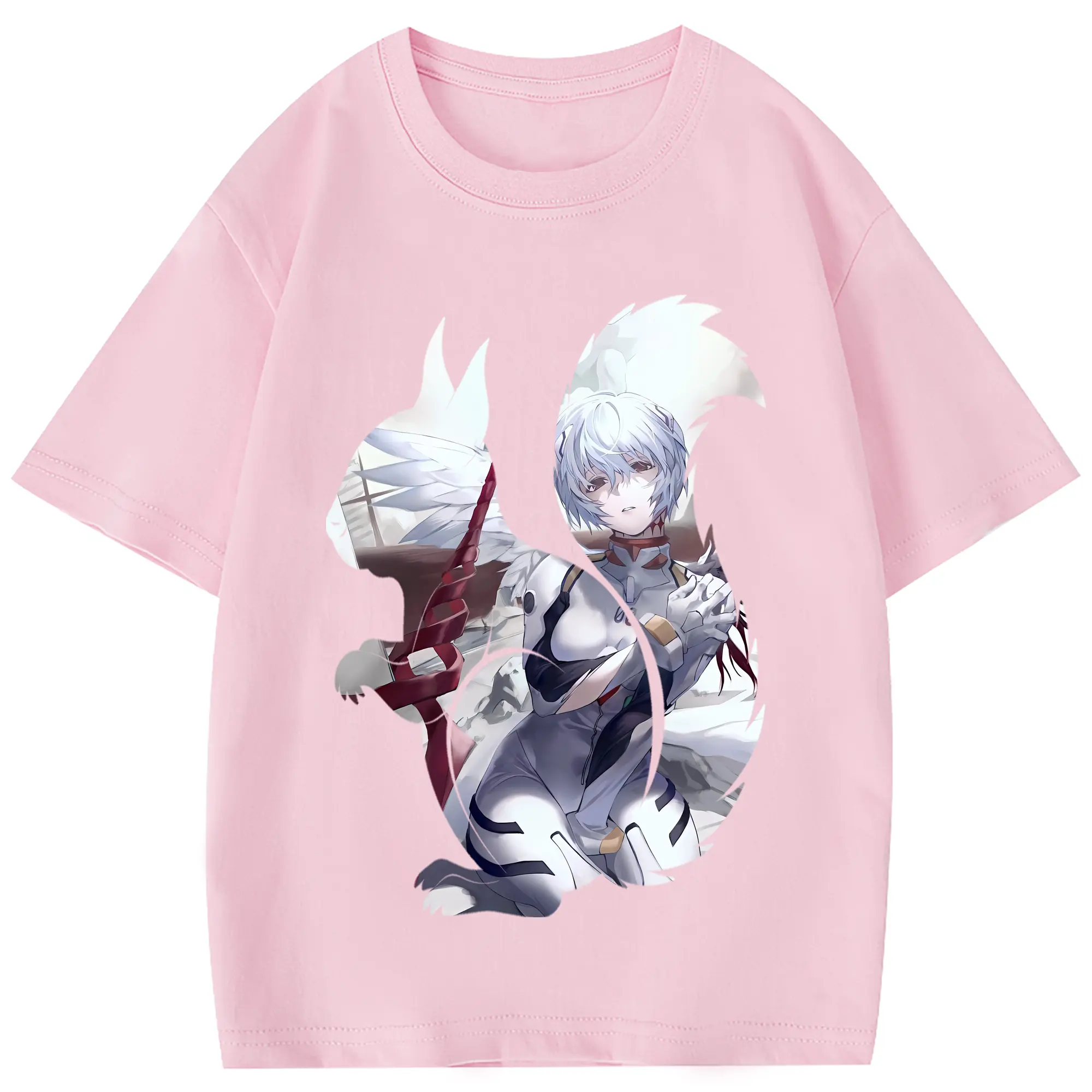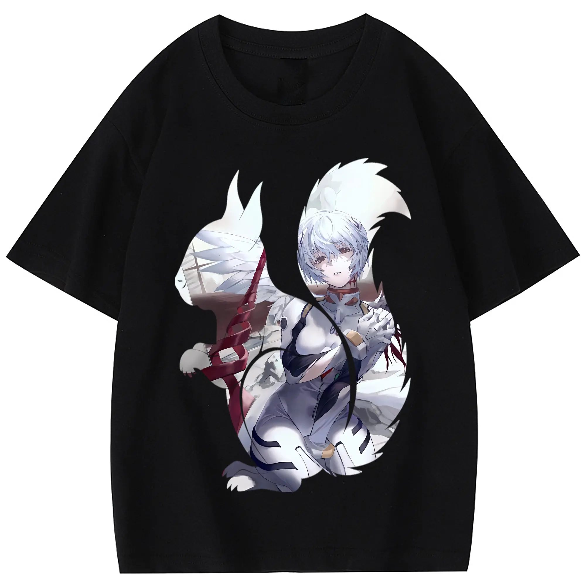 エヴァンゲリオン グッズ,綾波レイ - 綿100% 半袖Tシャツ ・ バックプリント ・ 快適 通気性 ・ 日常使い 散歩 スポーツ用
