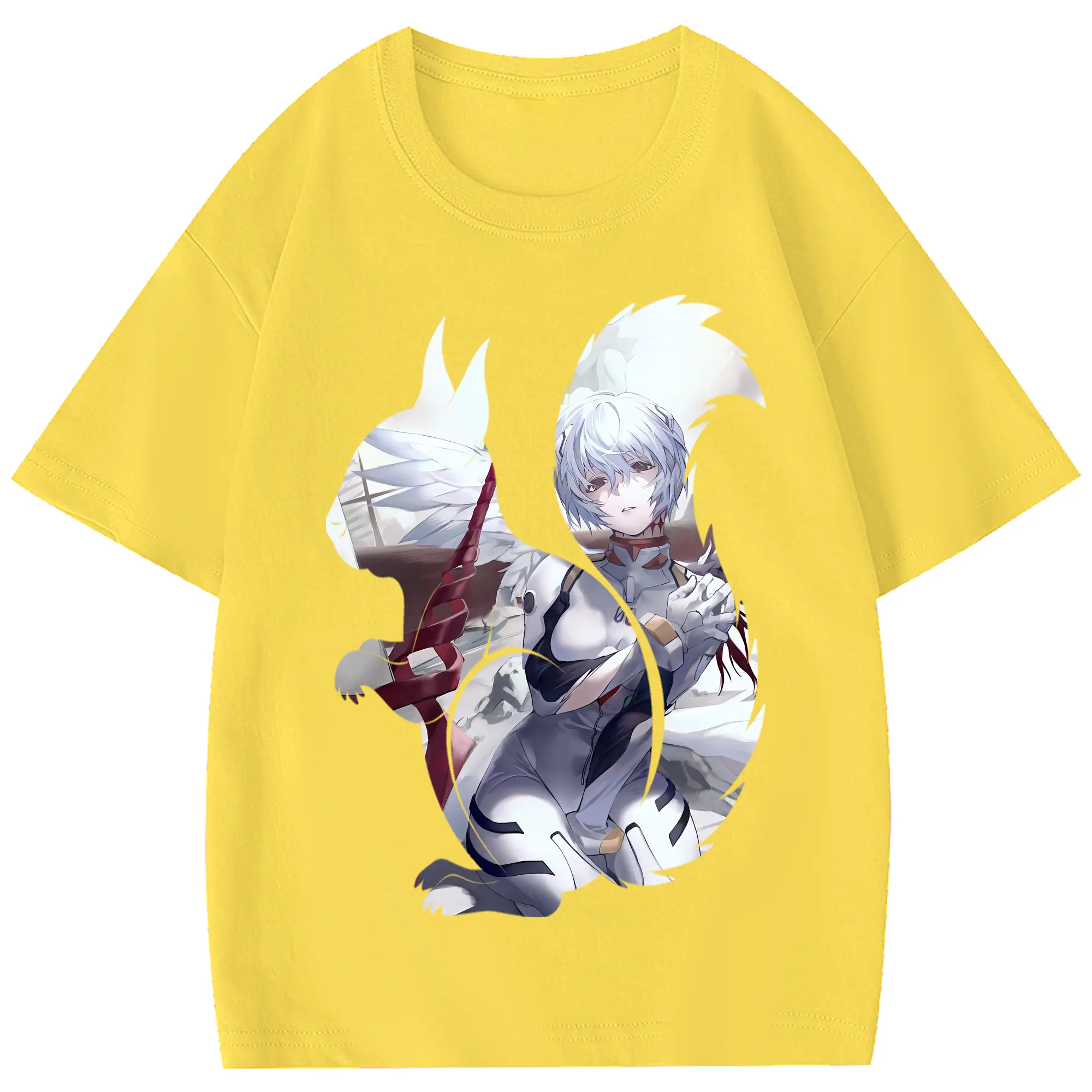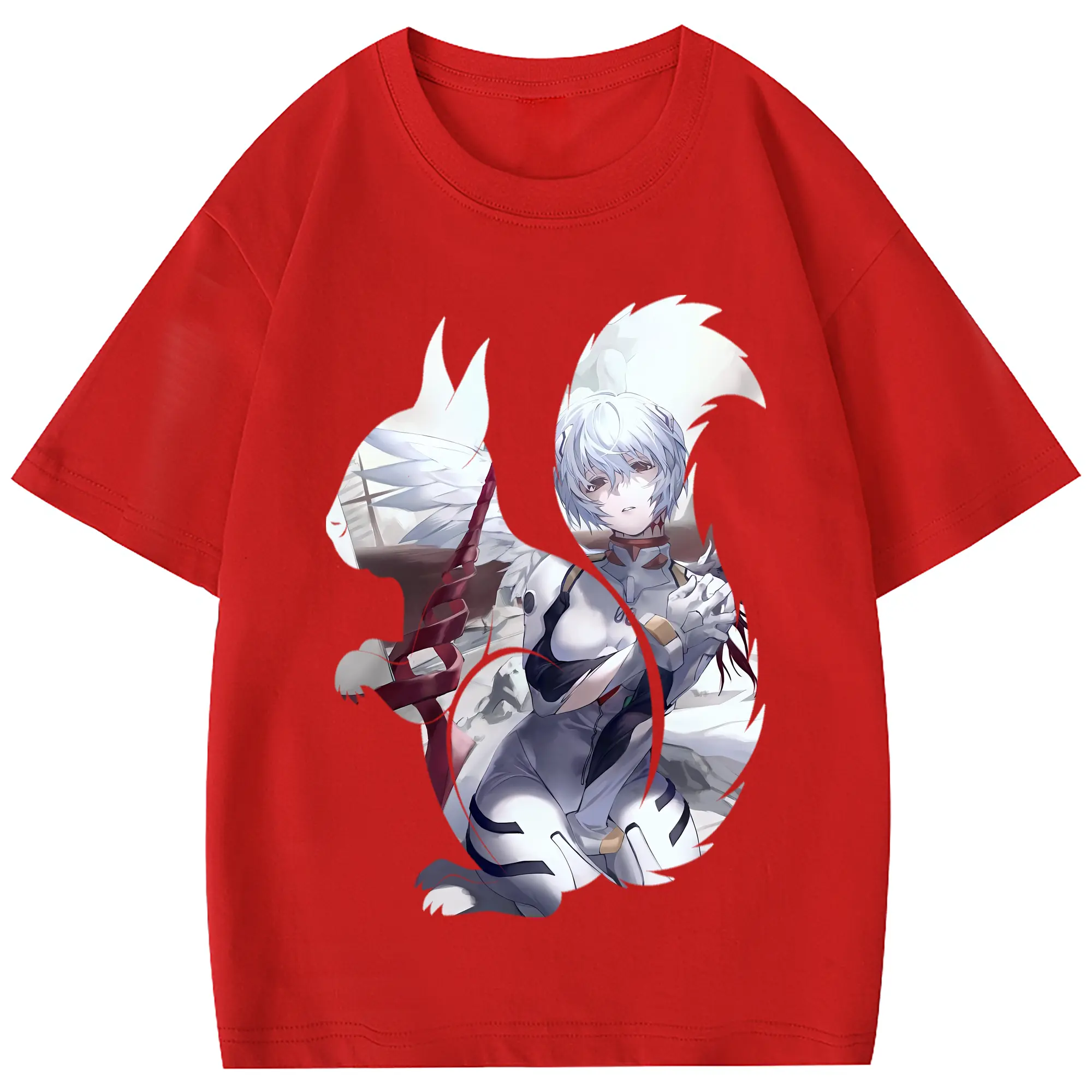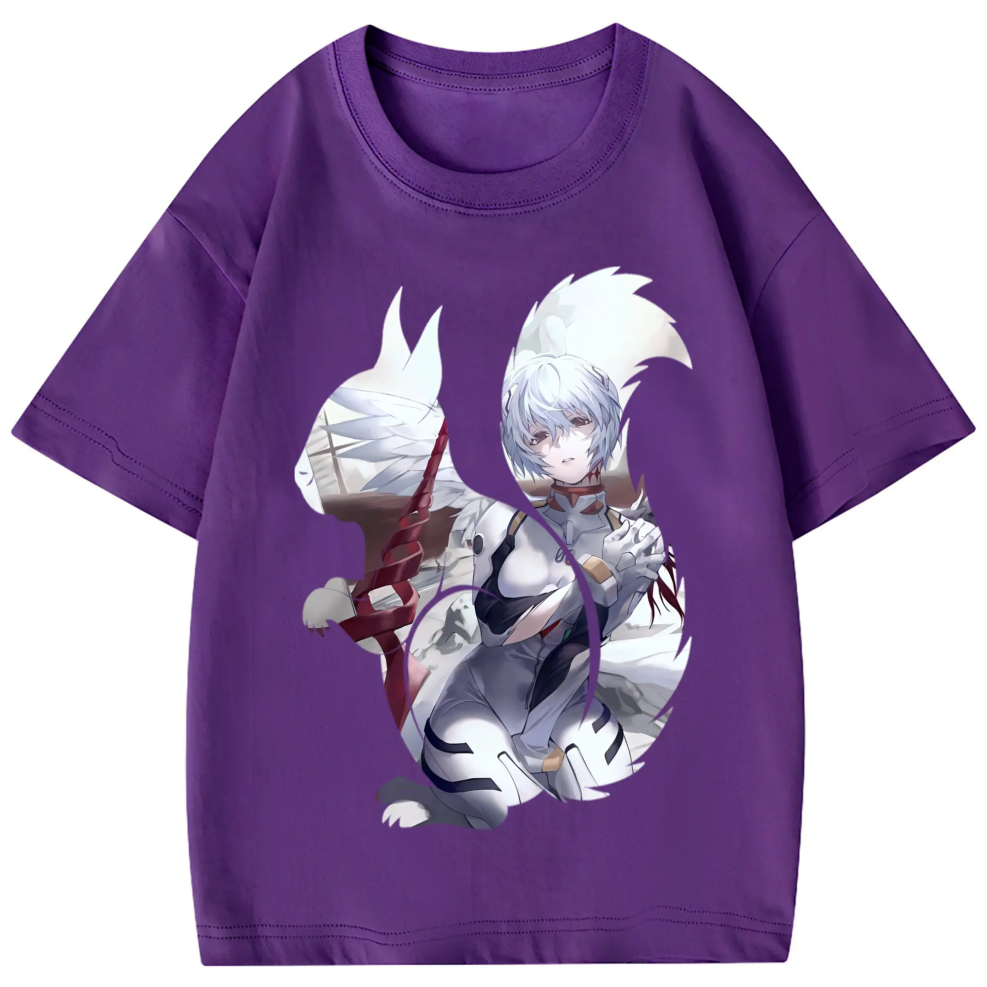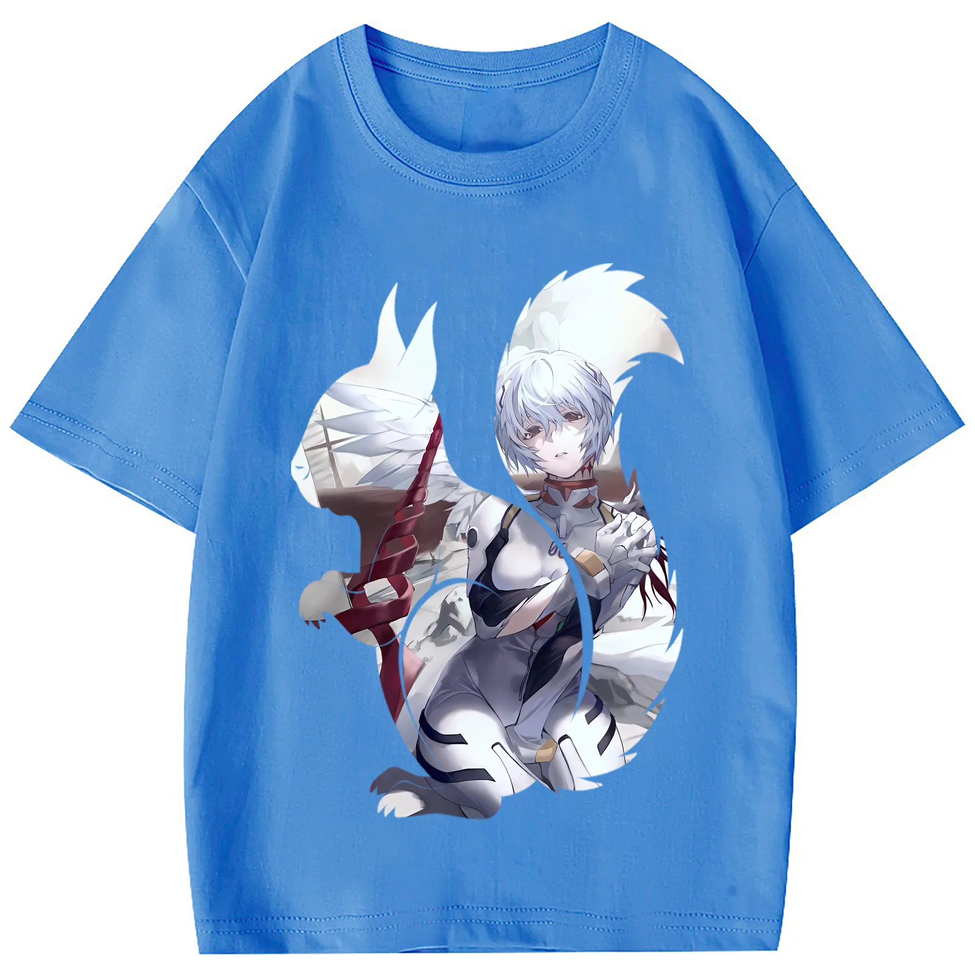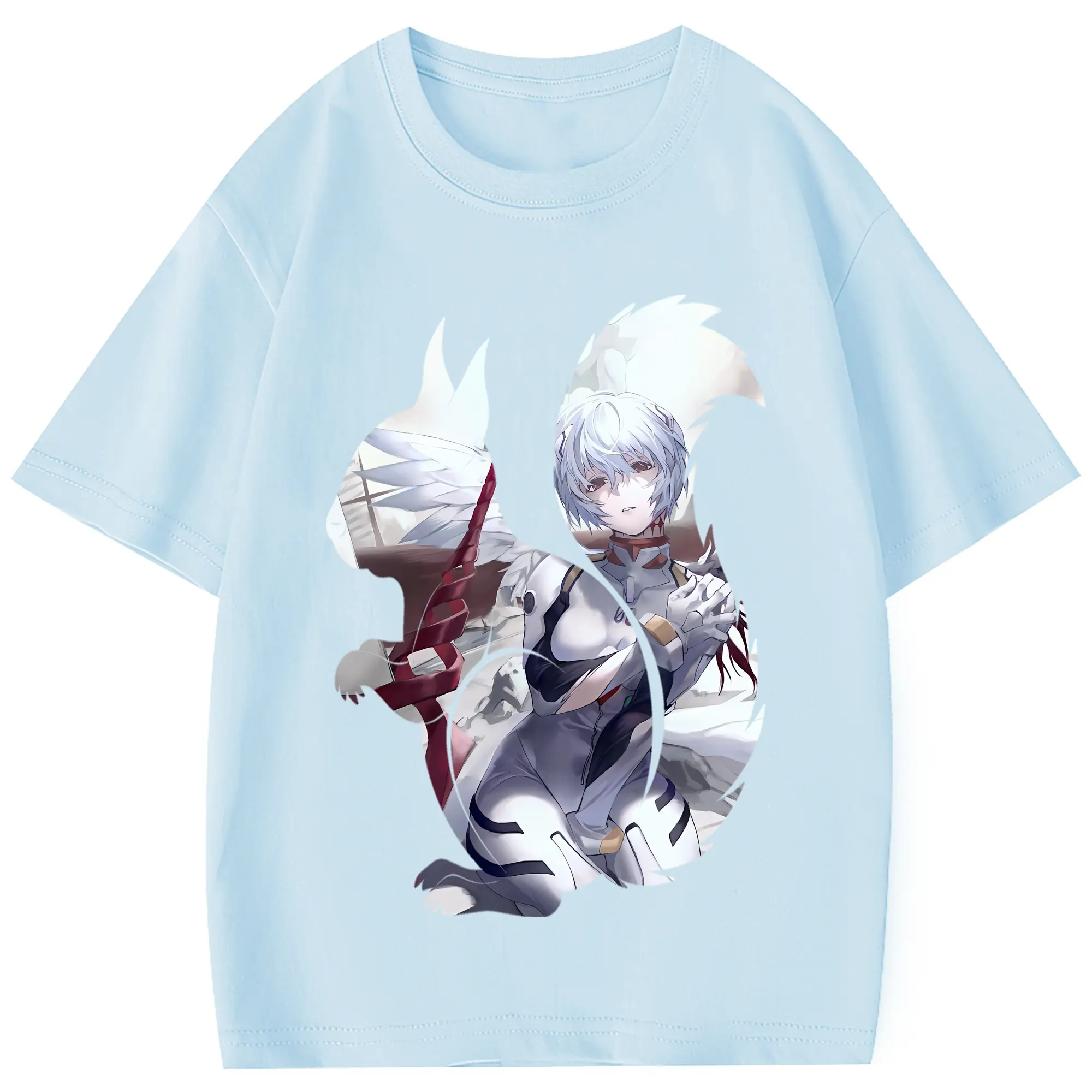 エヴァンゲリオン グッズ,綾波レイ - 綿100% 半袖Tシャツ ・ フロントプリント ・ 快適 通気性 ・ 日常使い 散歩 スポーツ用