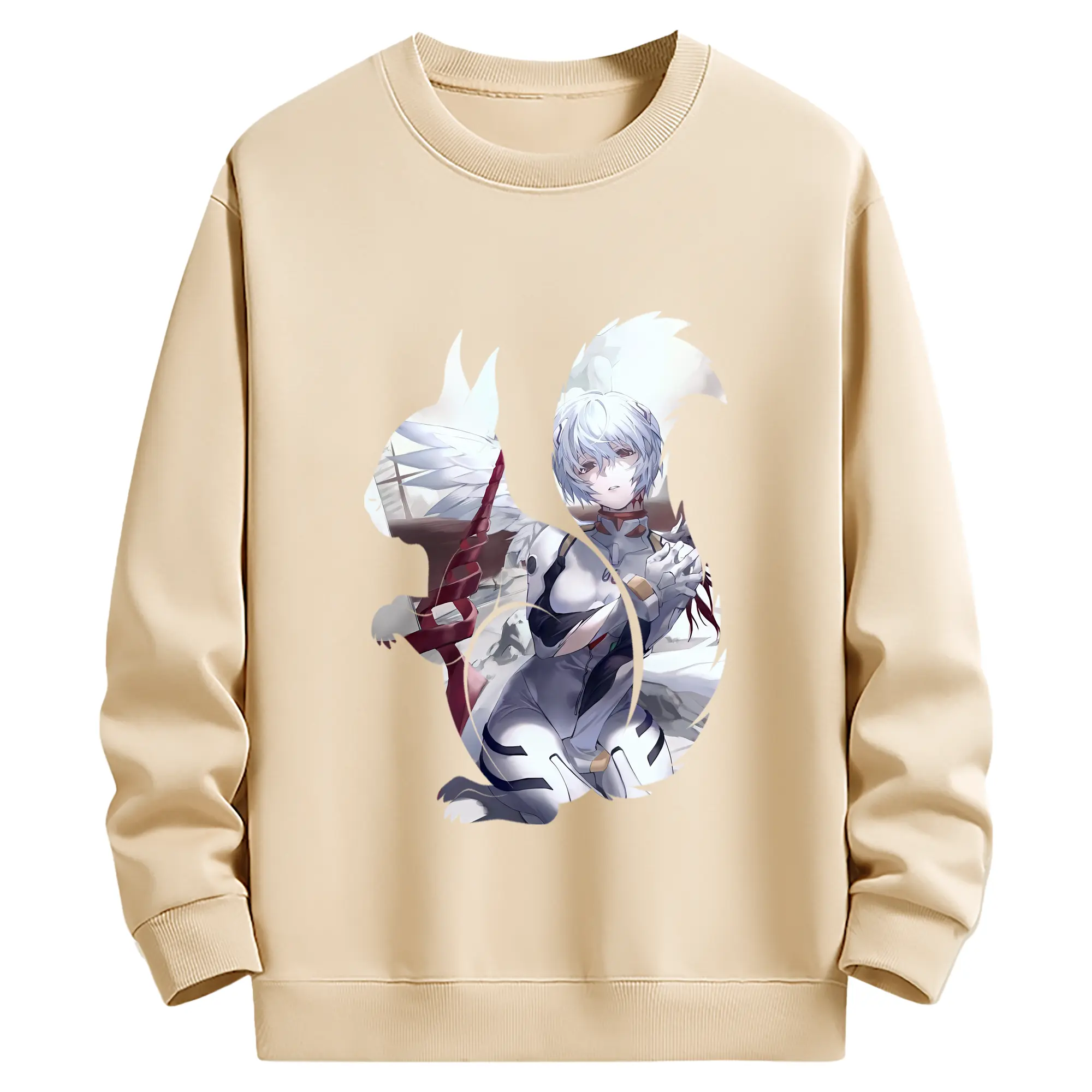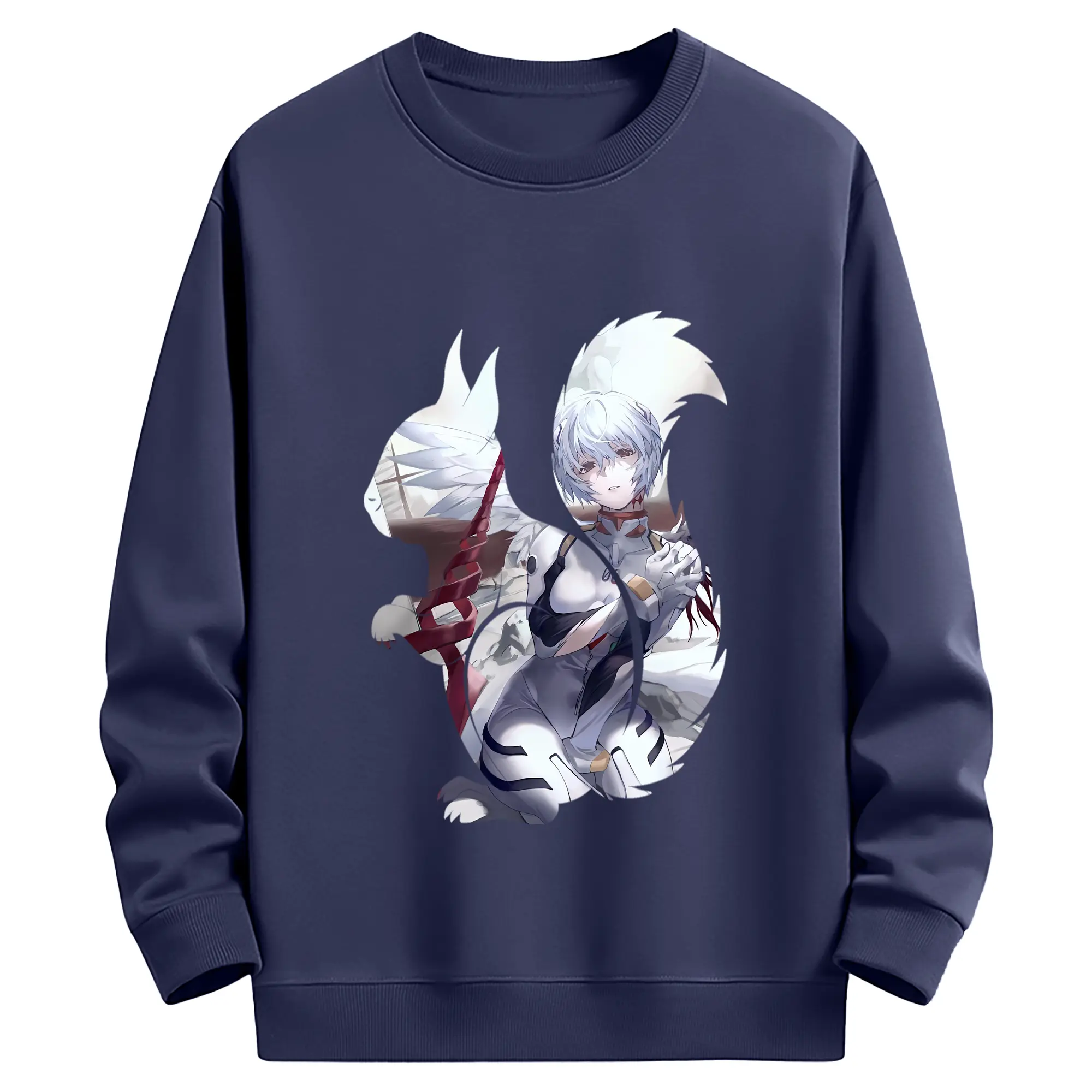 エヴァンゲリオン グッズ,綾波レイ - 薄手 クルーネック スウェット 裏毛260g · ポリエステル 春秋向け カジュアル 男女兼用 · トレーナー デイリー スポーツ 散歩に最適