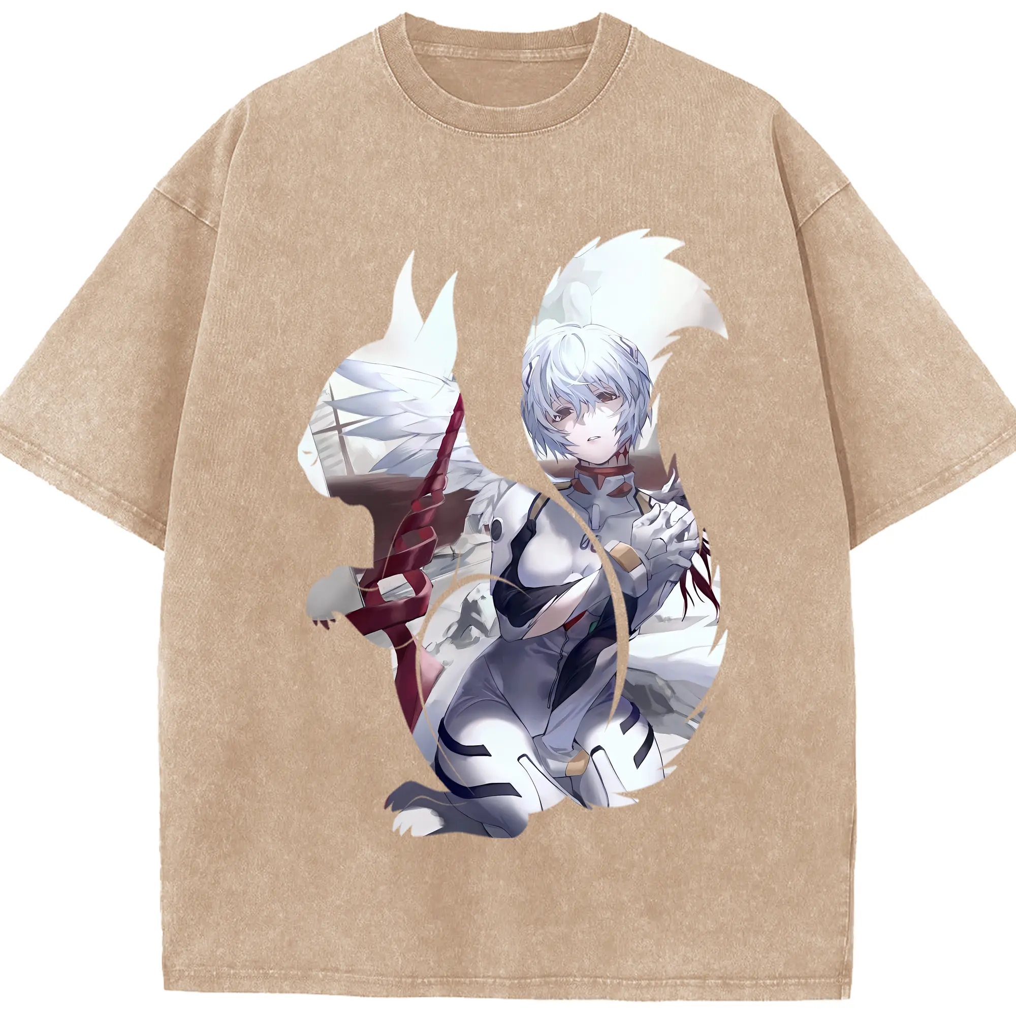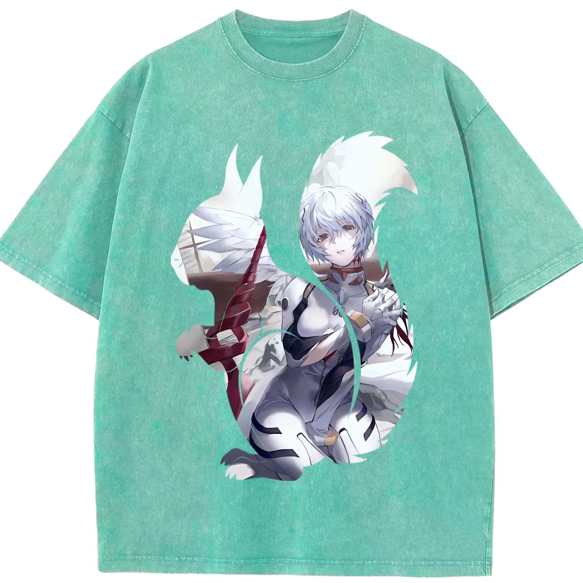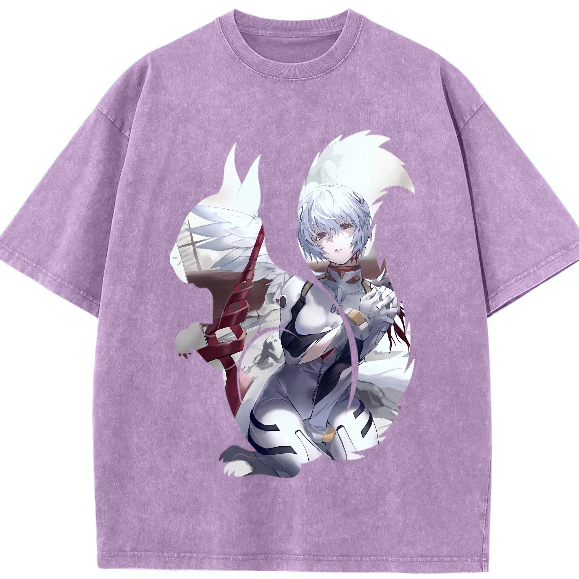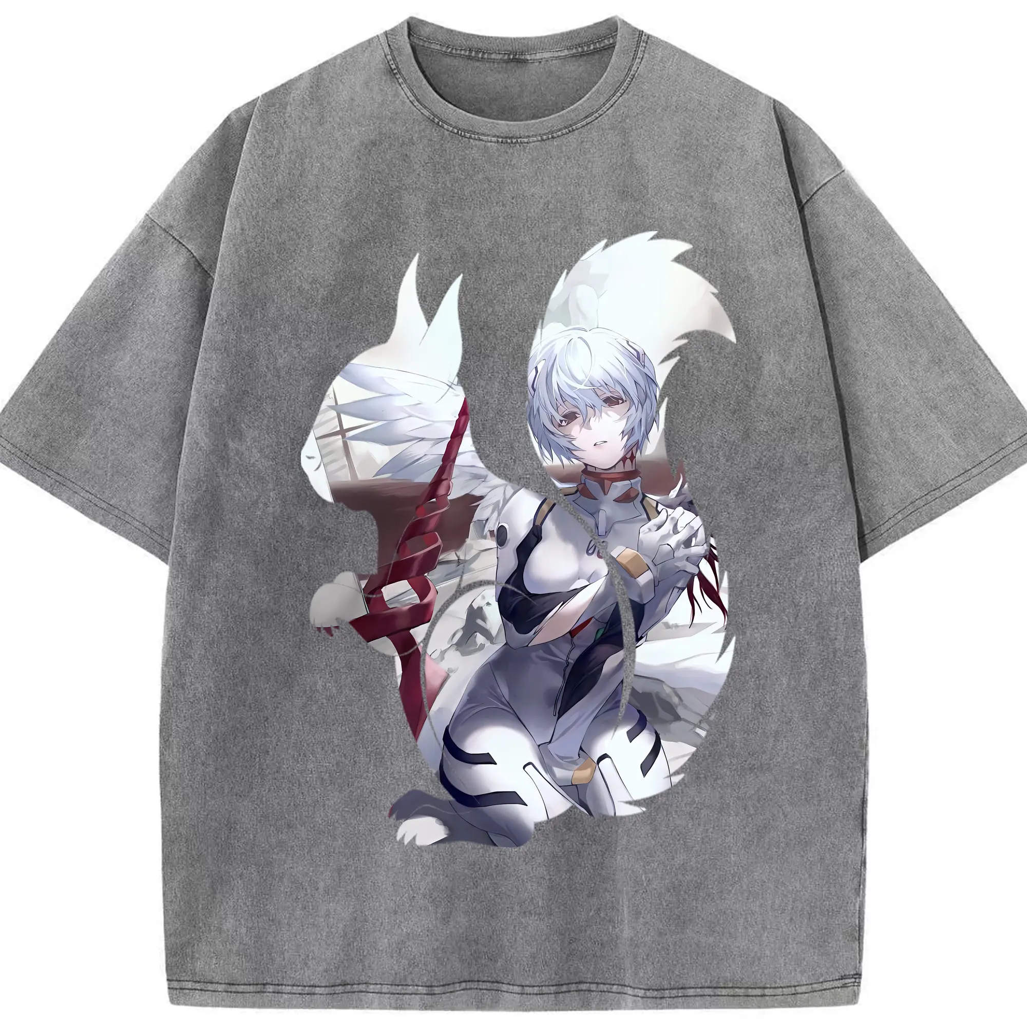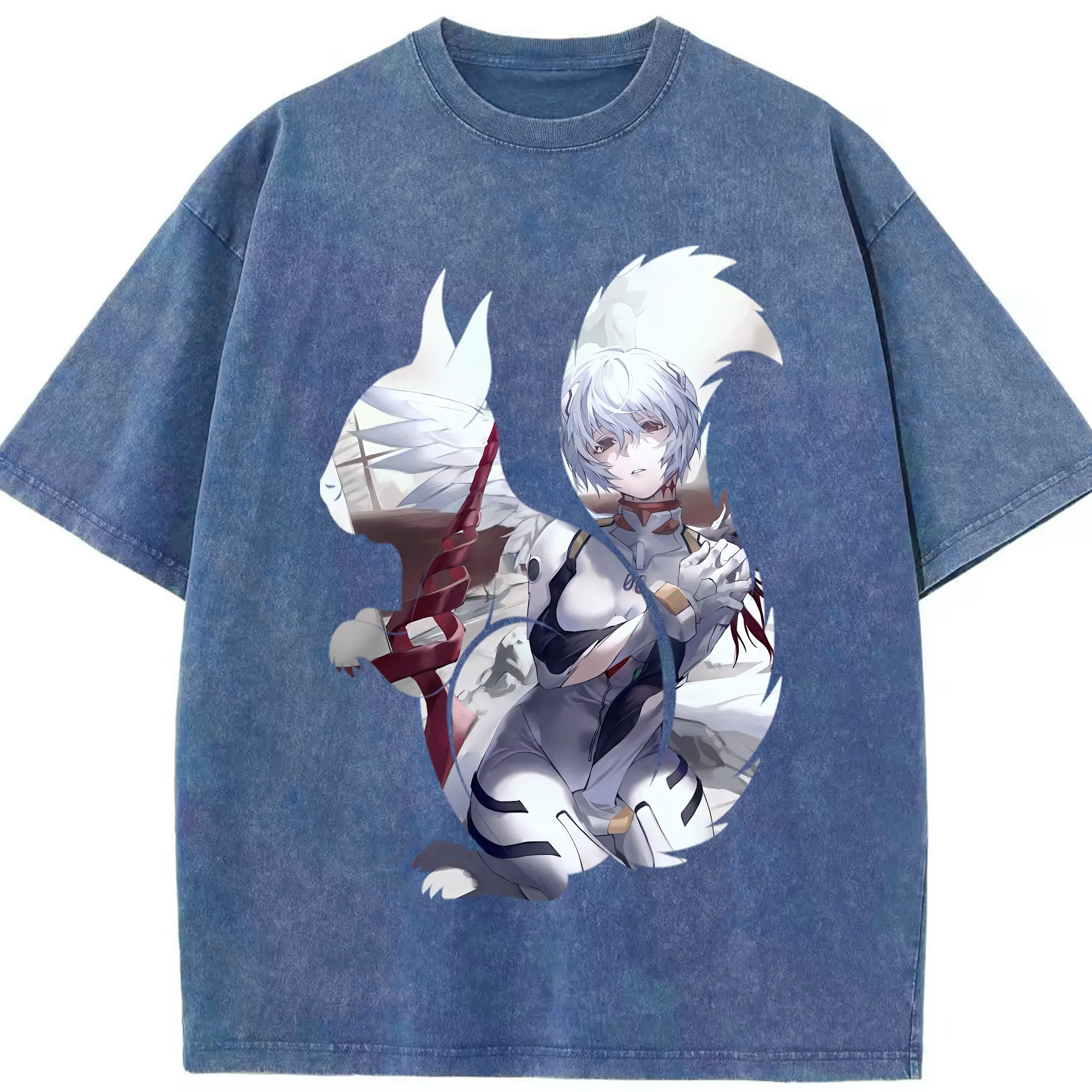 エヴァンゲリオン グッズ,綾波レイ - 綿100% ヴィンテージ風 半袖Tシャツ ・ 背面プリント ・ 柔らか肌触り ・ 通気性 快適 ・ スポーツ カジュアル 外出用