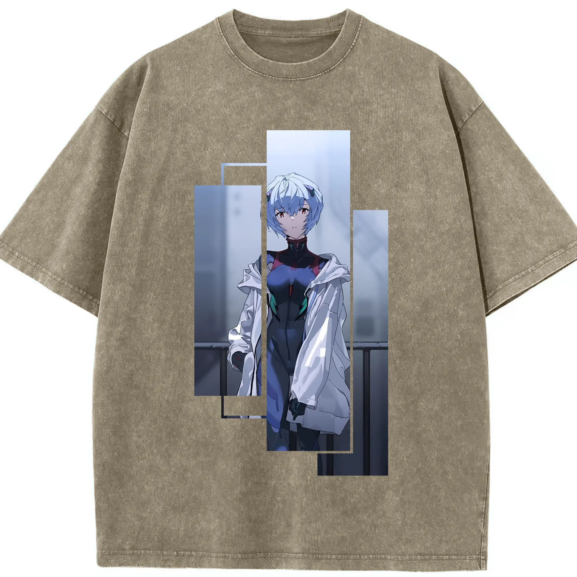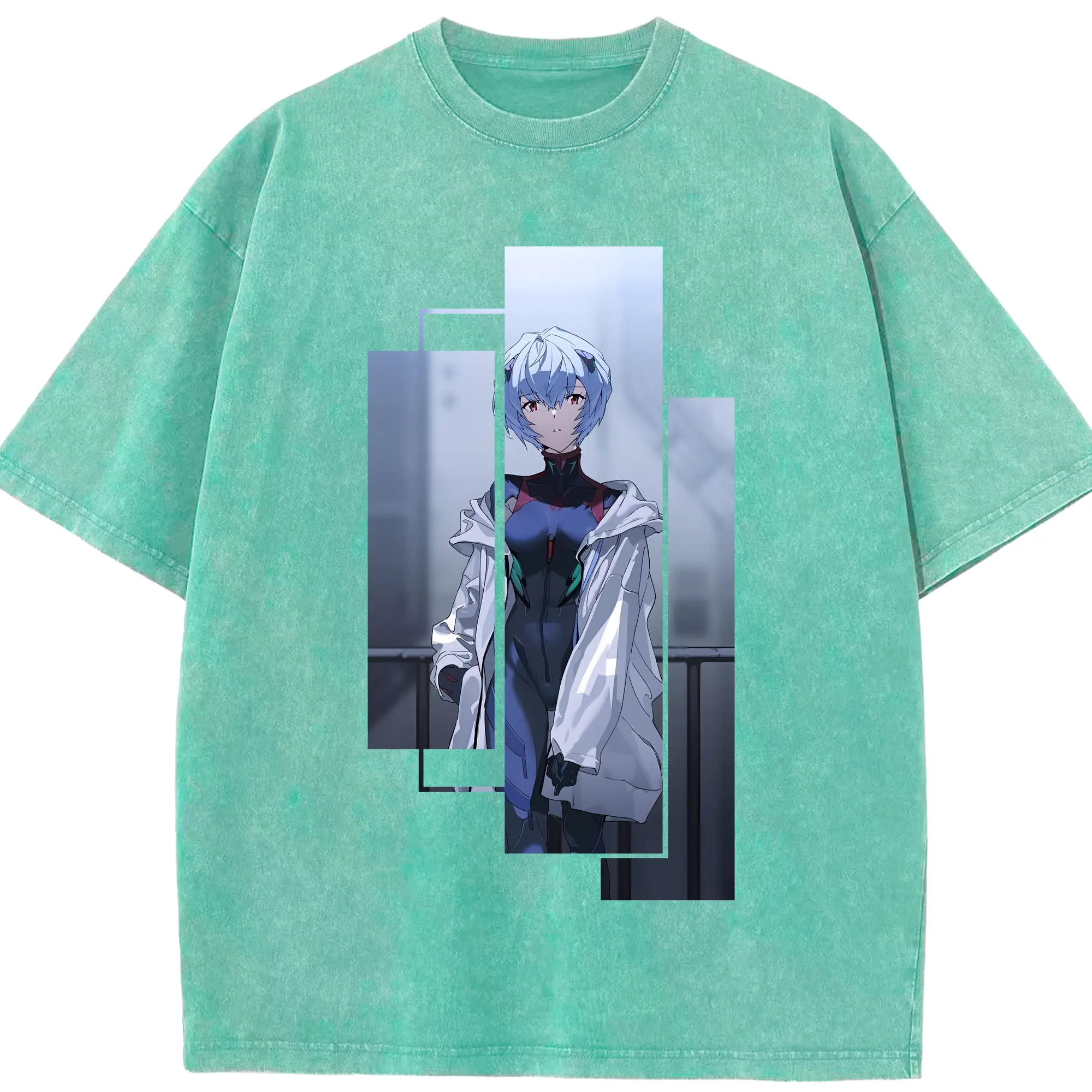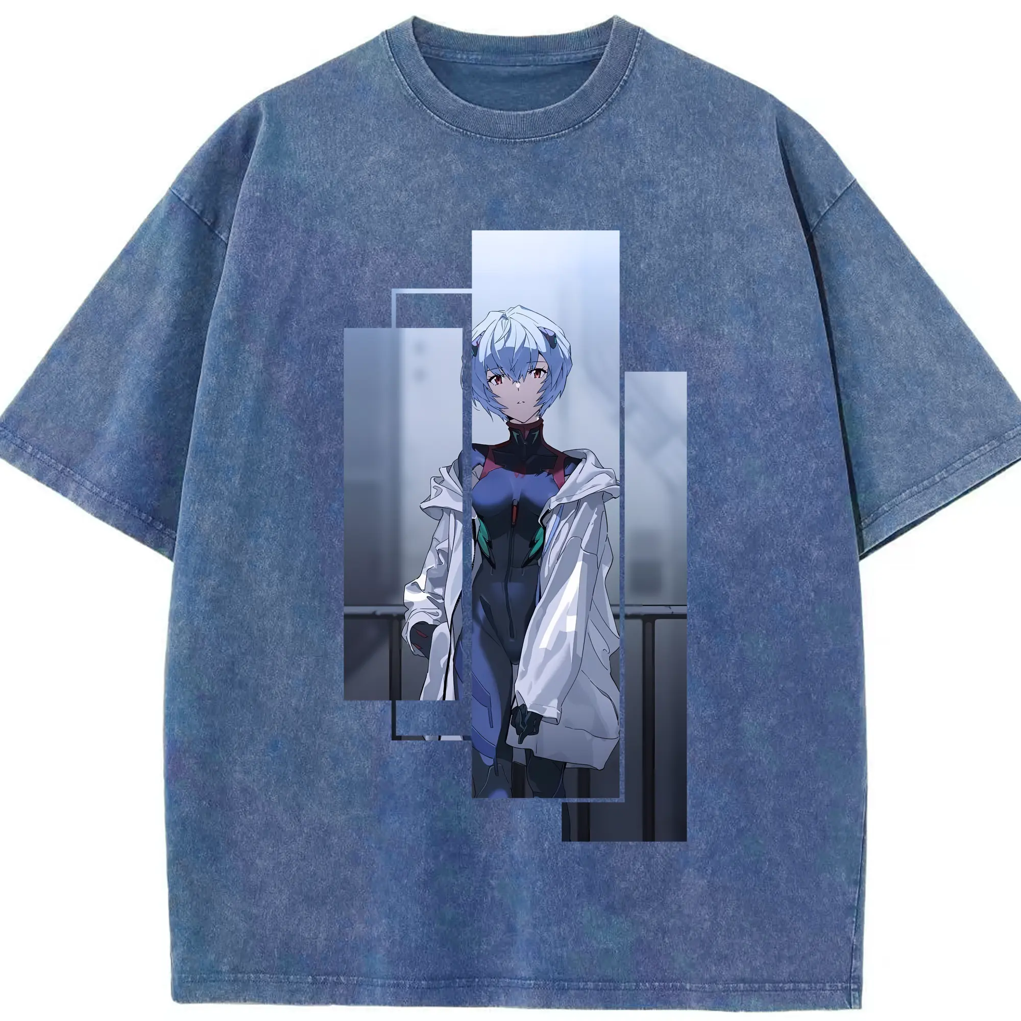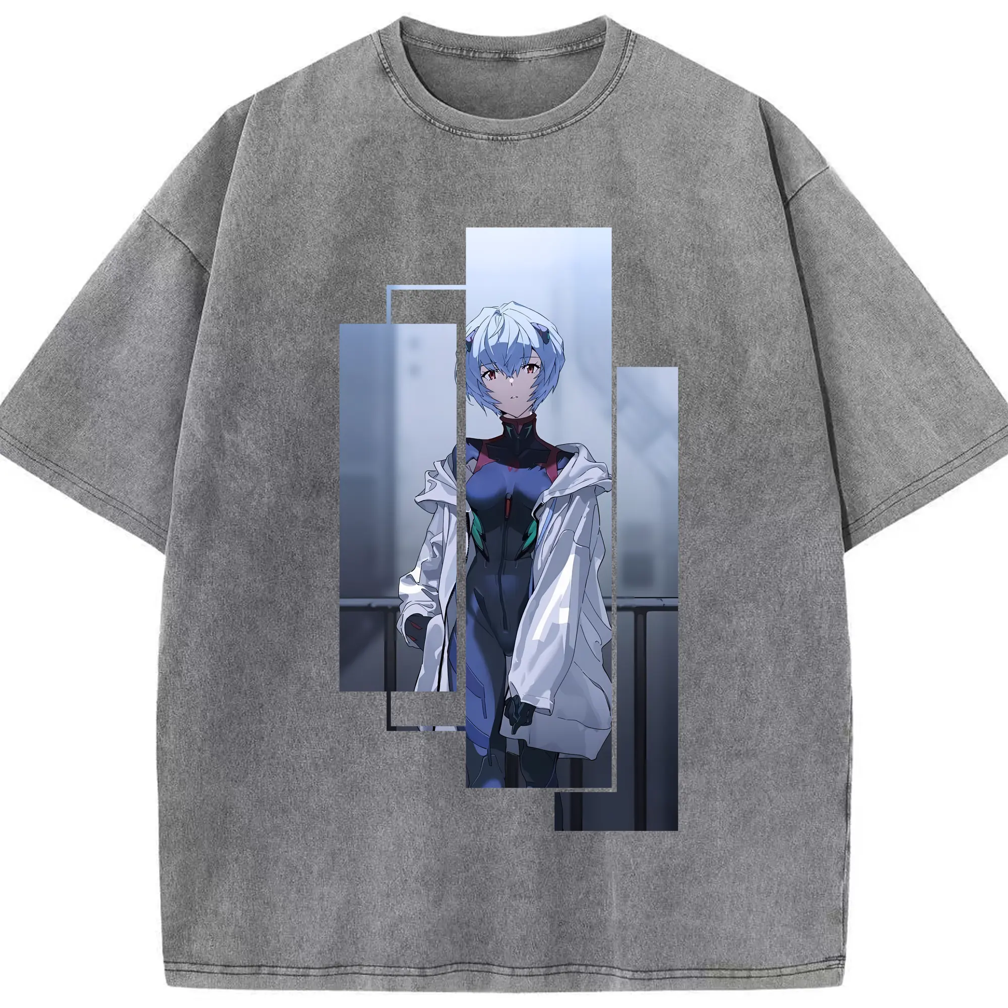 エヴァンゲリオン グッズ,綾波レイ - 綿100% ヴィンテージ風 半袖Tシャツ ・ 背面プリント ・ 柔らか肌触り ・ 通気性 快適 ・ スポーツ カジュアル 外出用